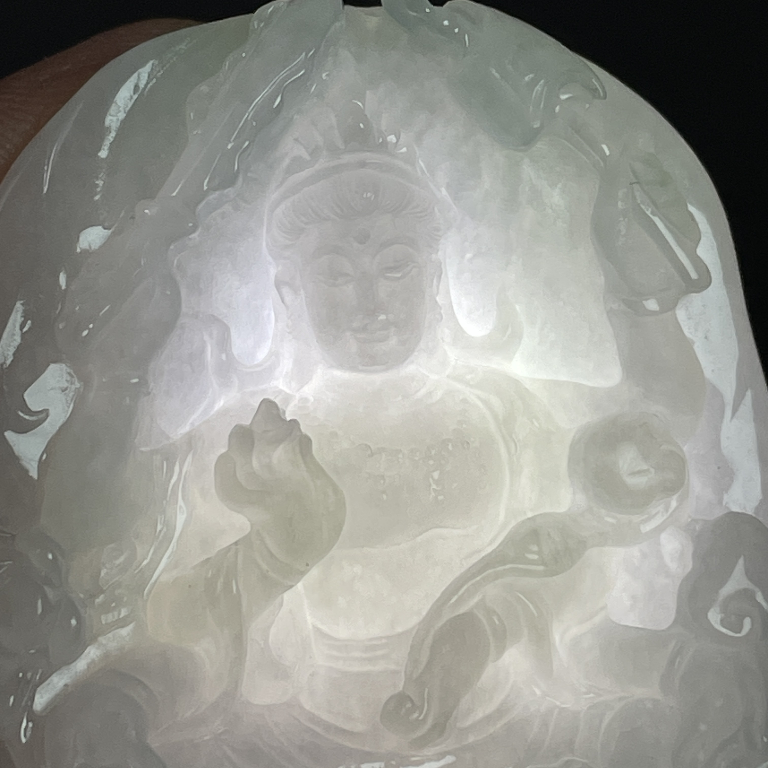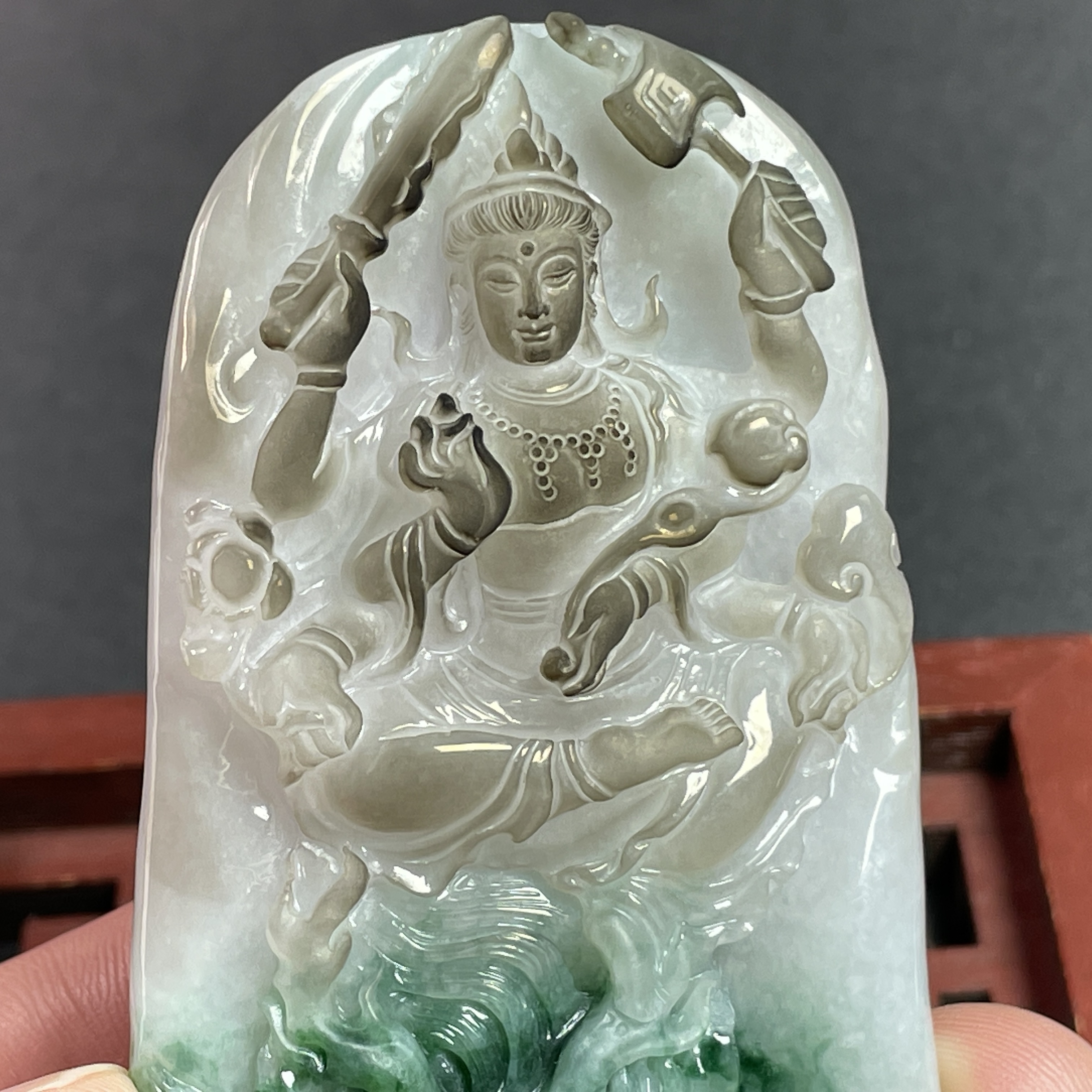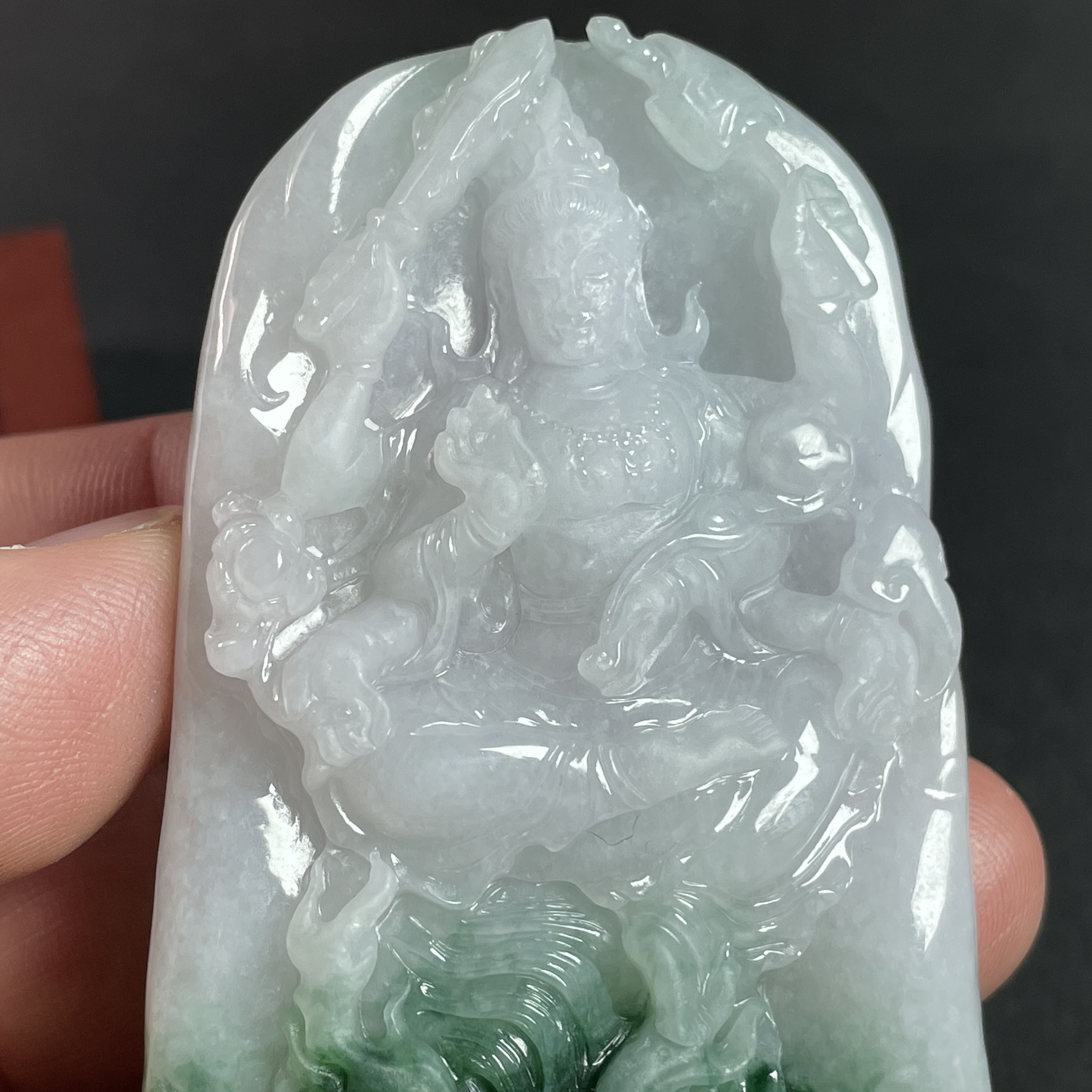 翡翠玉雕的六臂御龍觀音,不僅擁有觀音菩薩本身的豐富寓意,還結合了玉的美好象徵,更顯珍貴和吉祥。