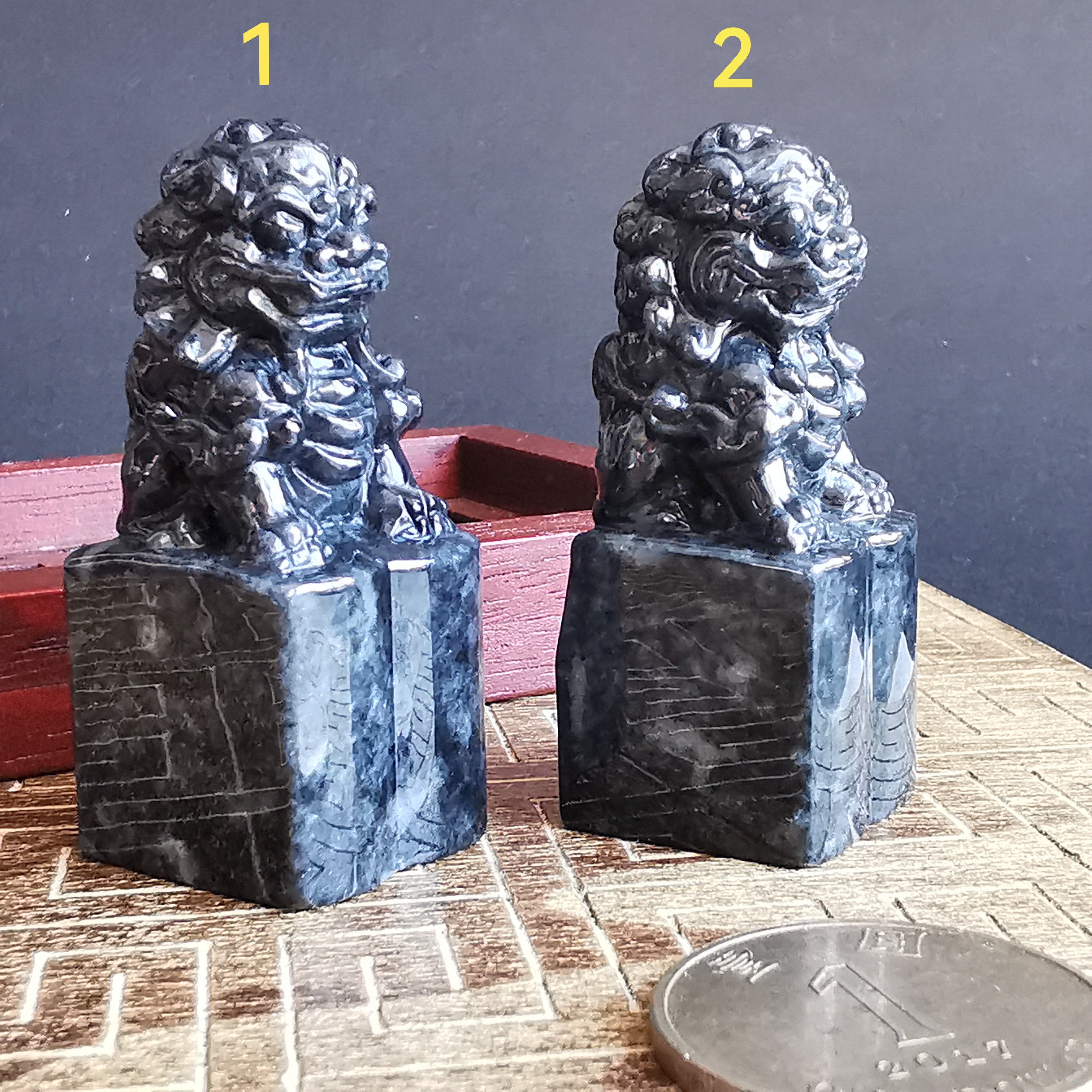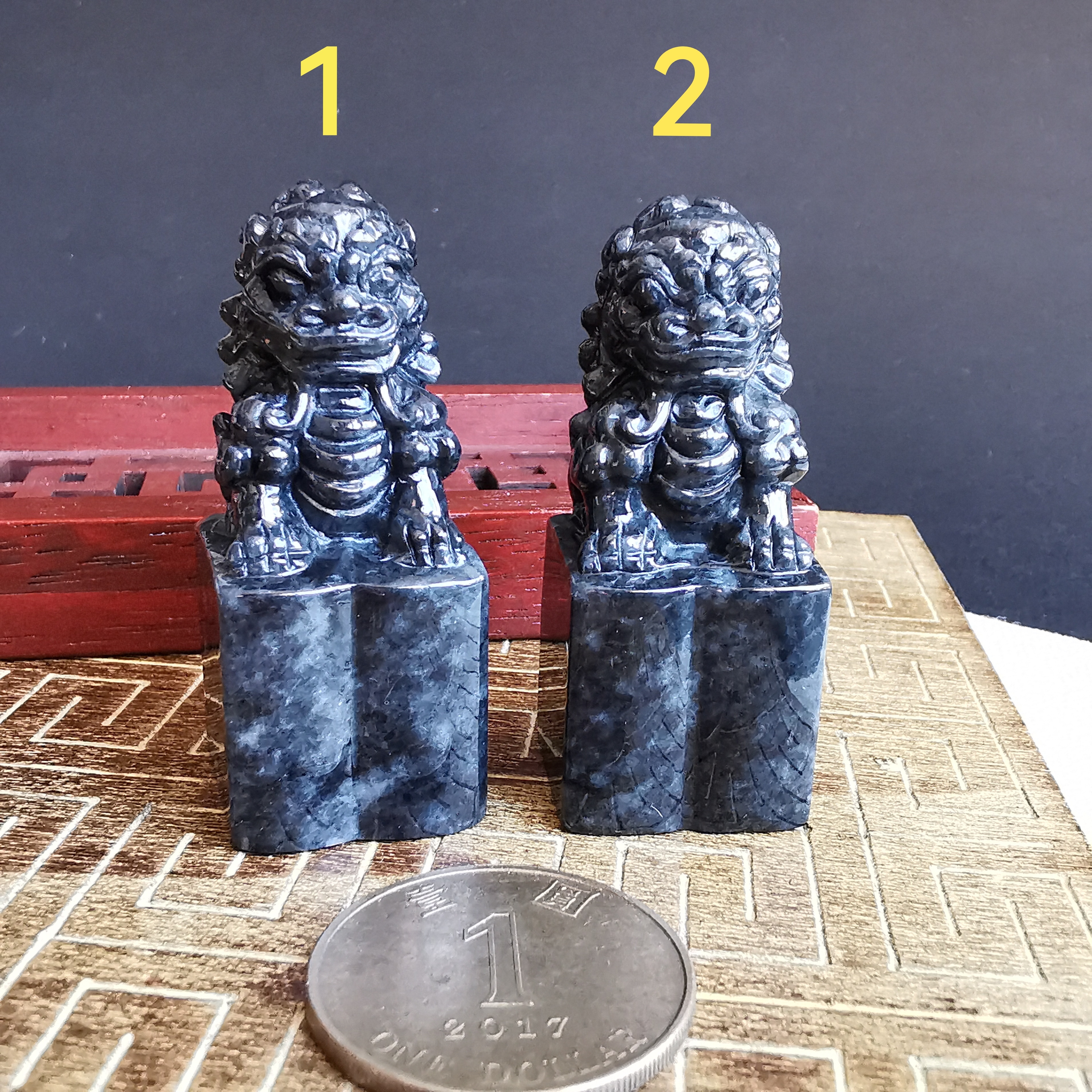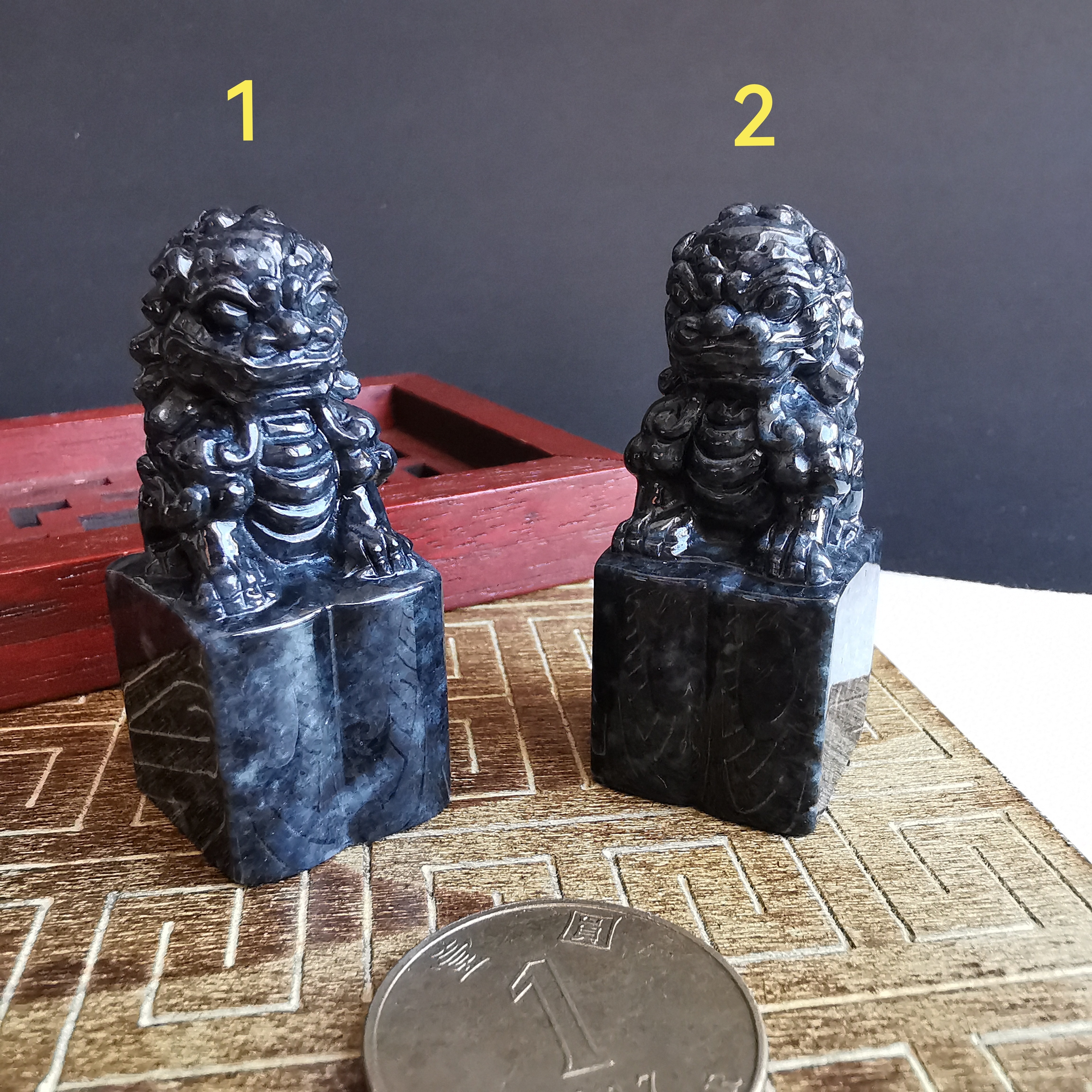 • 烏雞獅子印章, 天然翡翠A玉, 緬甸玉, Jade, Jadeite