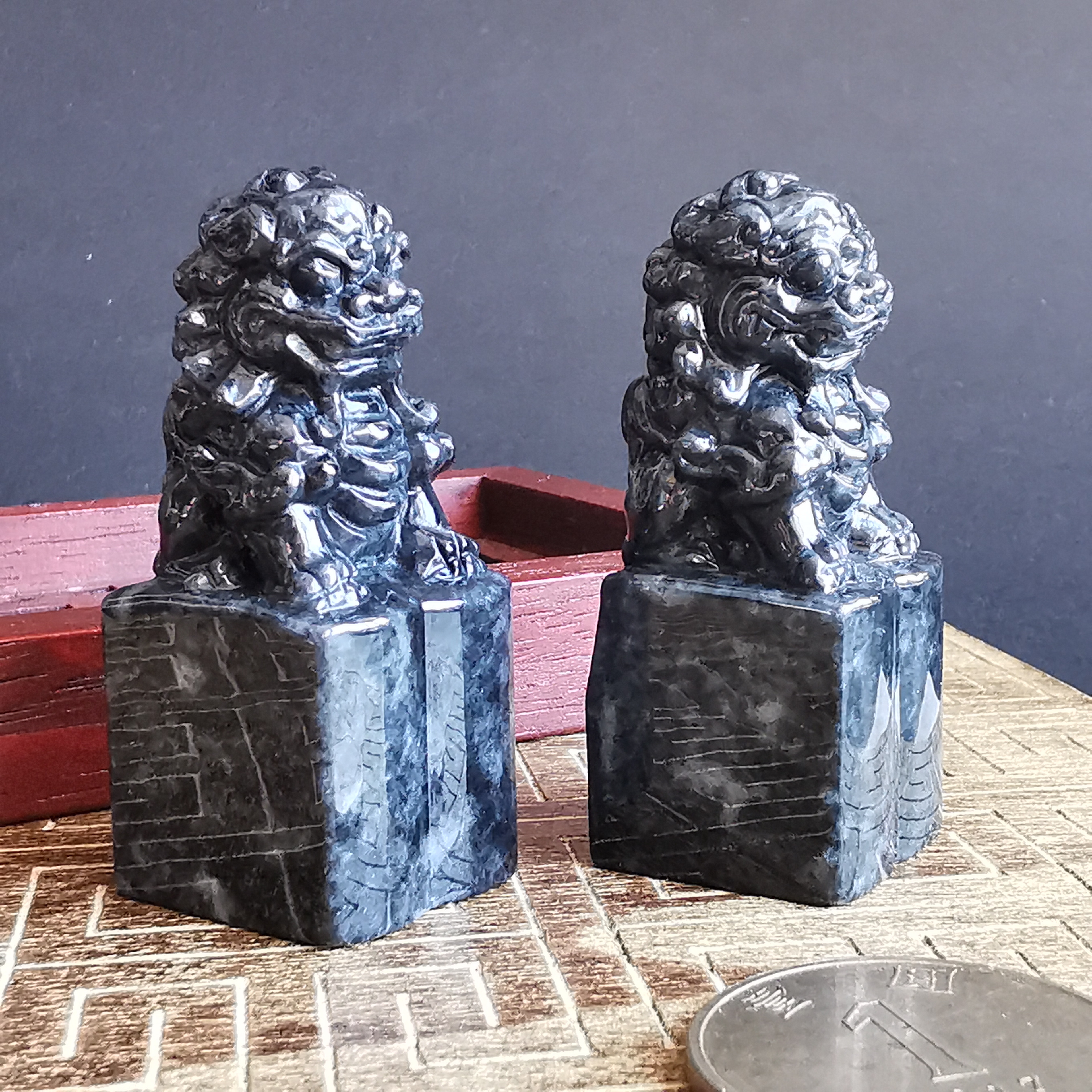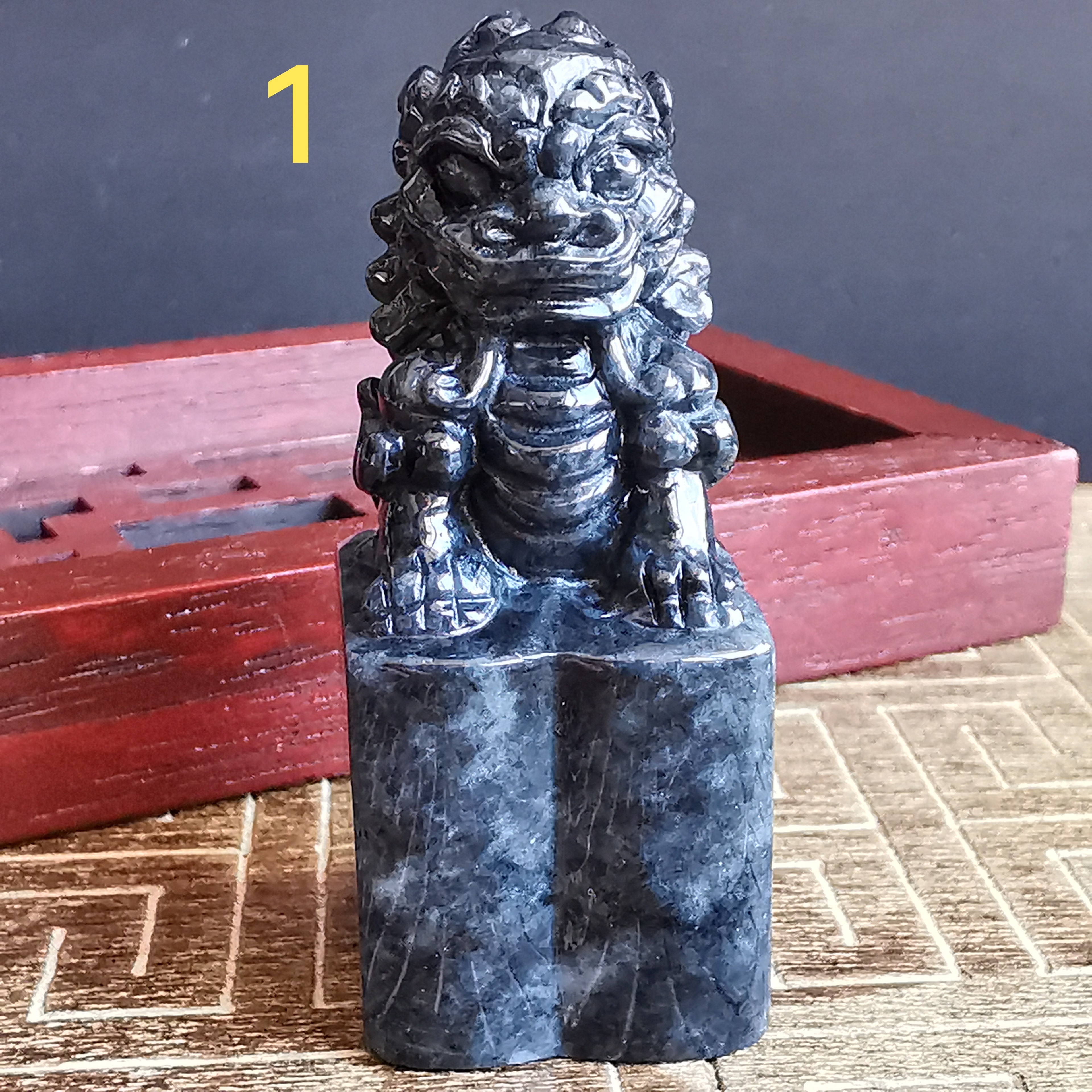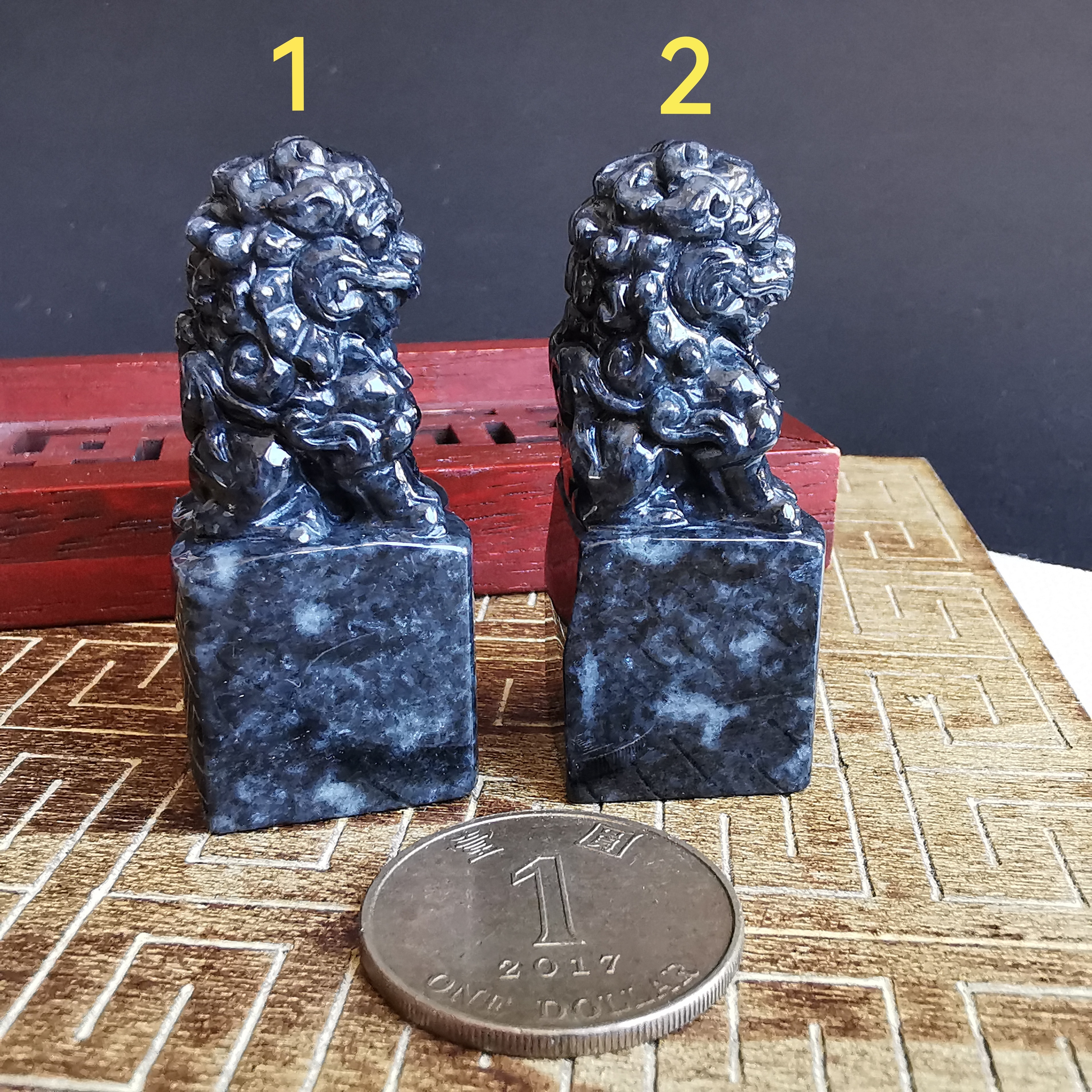 • 烏雞獅子印章, 天然翡翠A玉, 緬甸玉, Jade, Jadeite