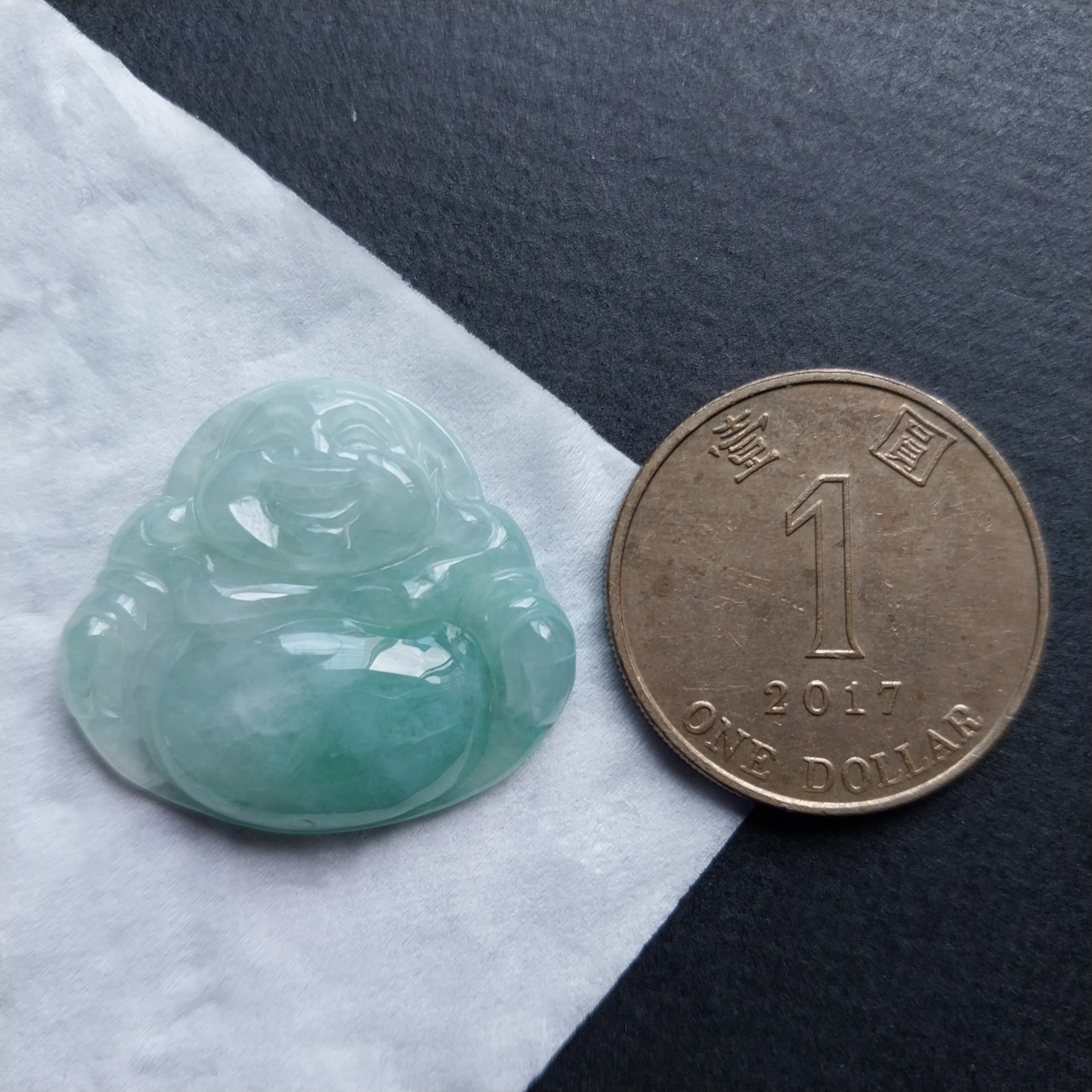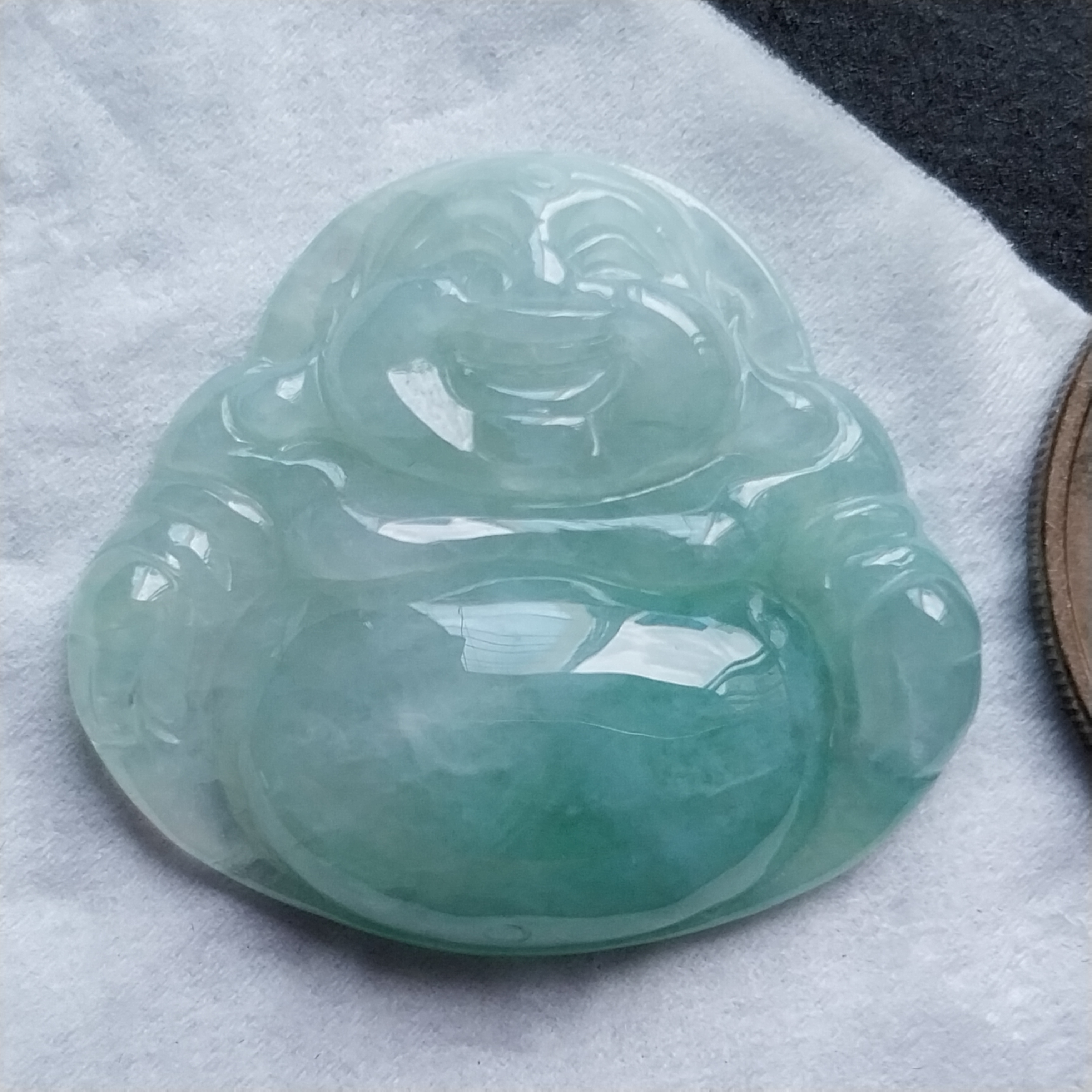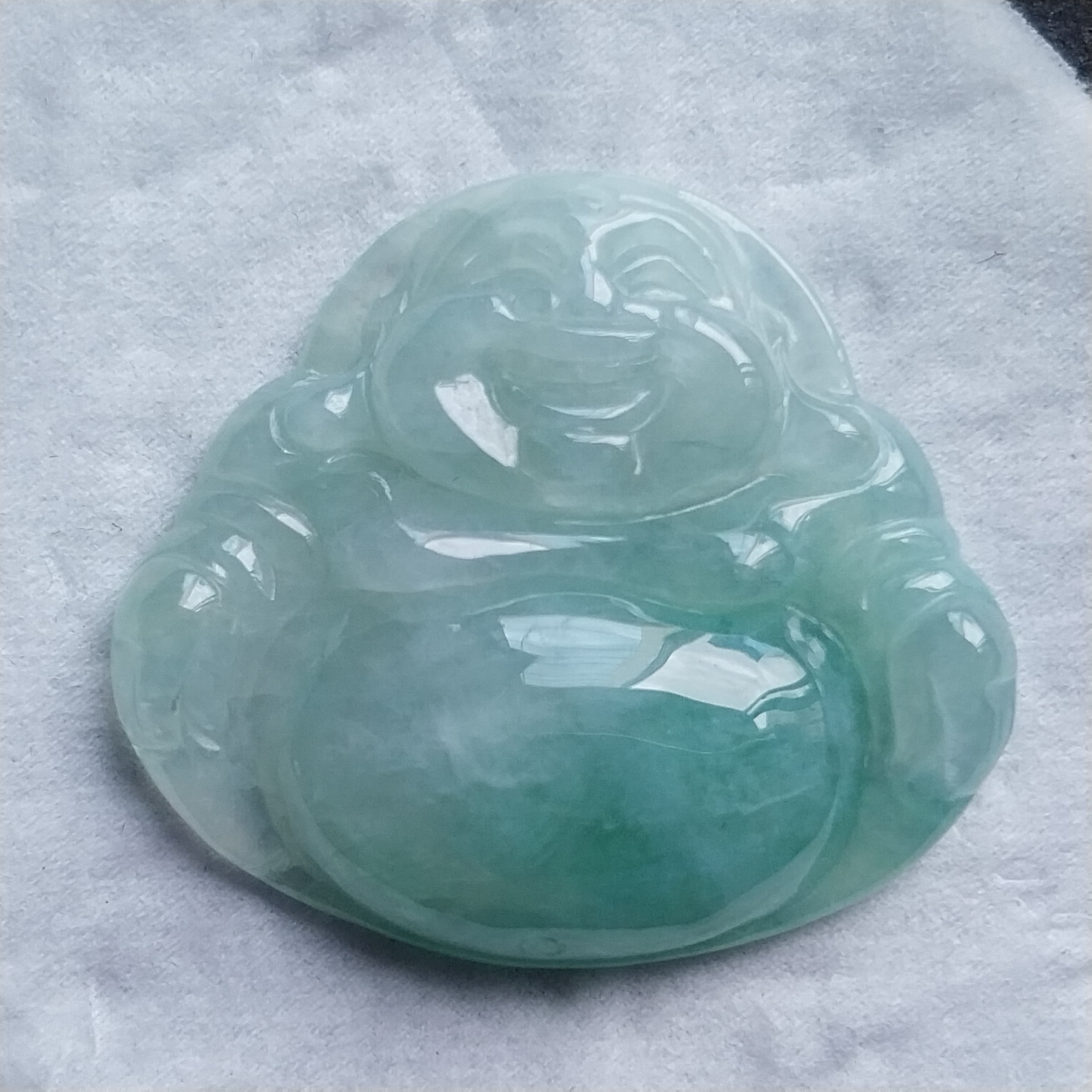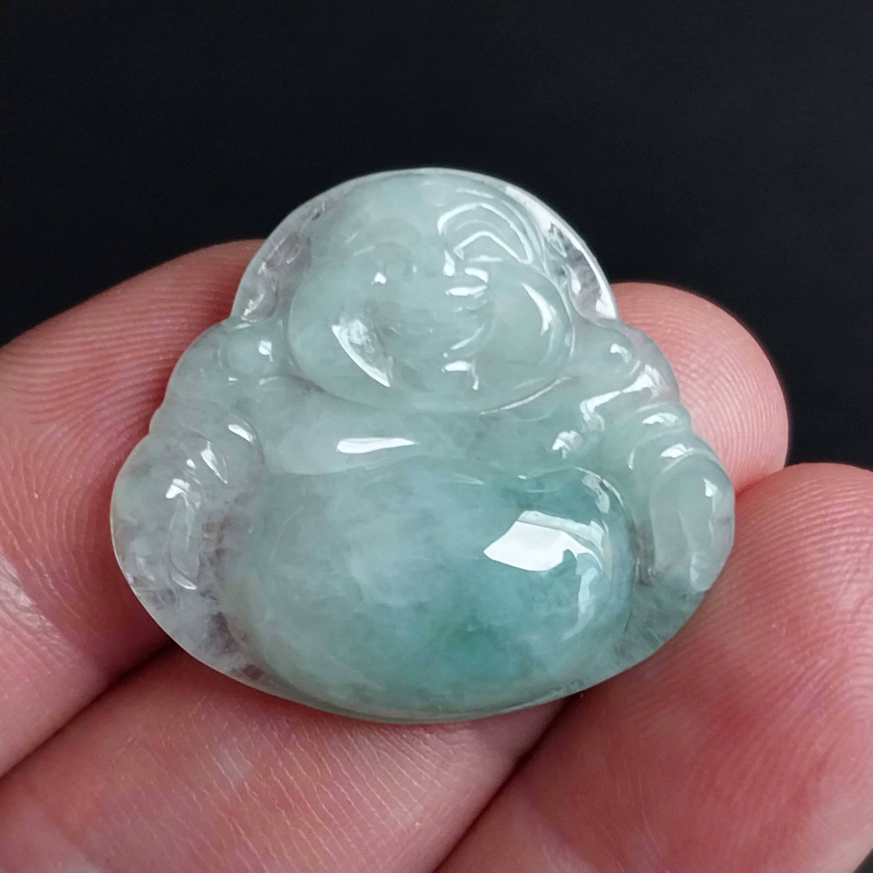 • 冰糯飄綠笑佛, 天然翡翠A玉, 緬甸玉, Jade, Jadeite