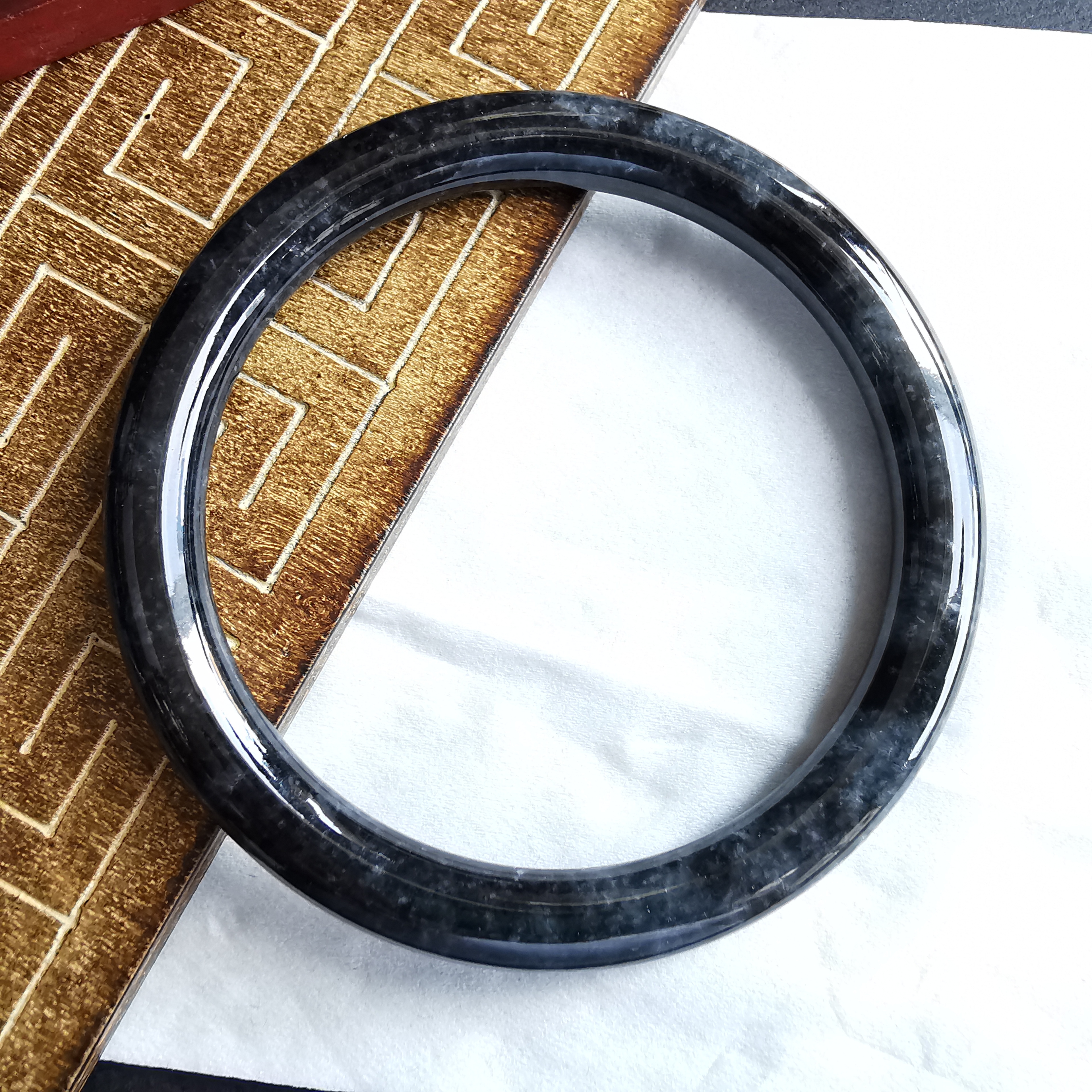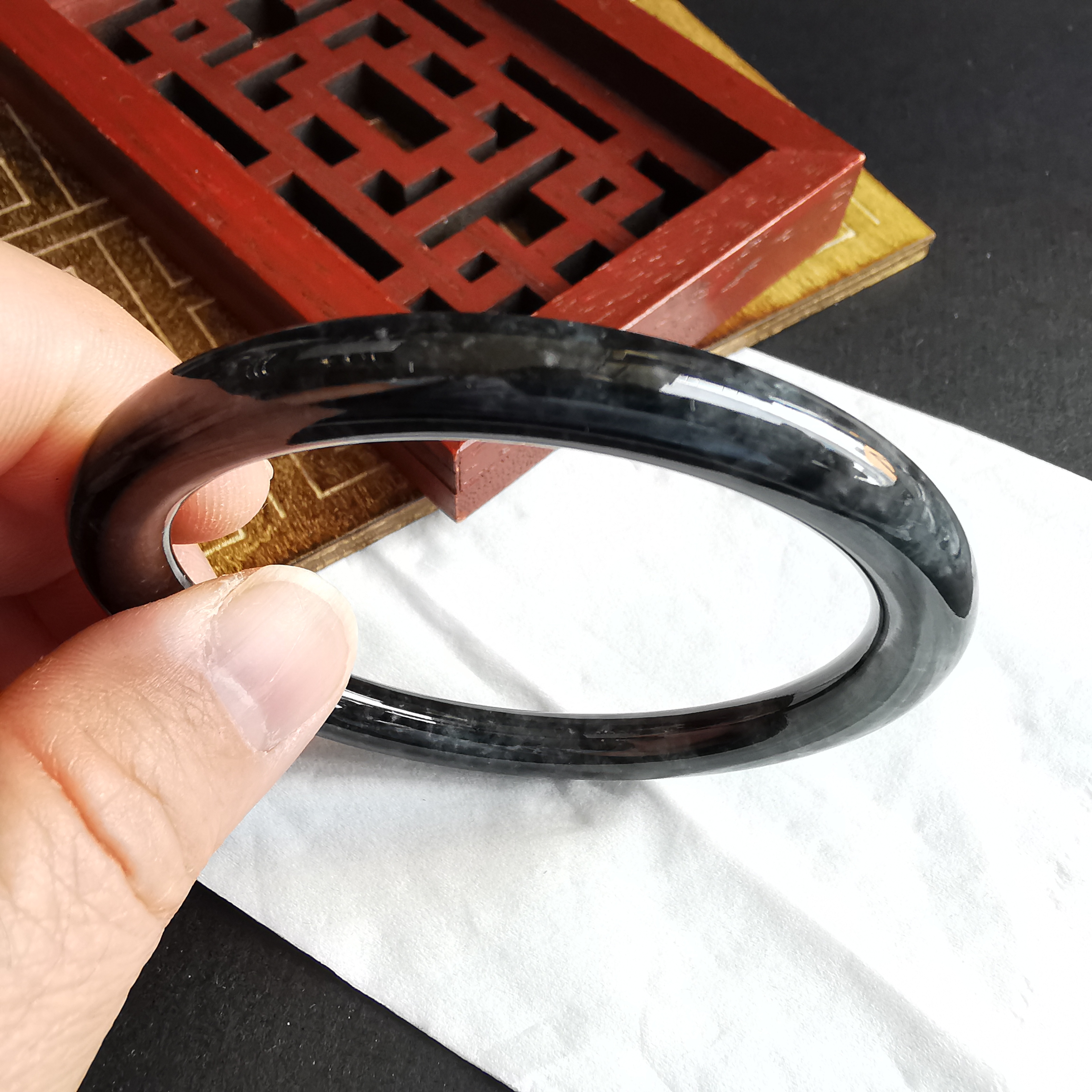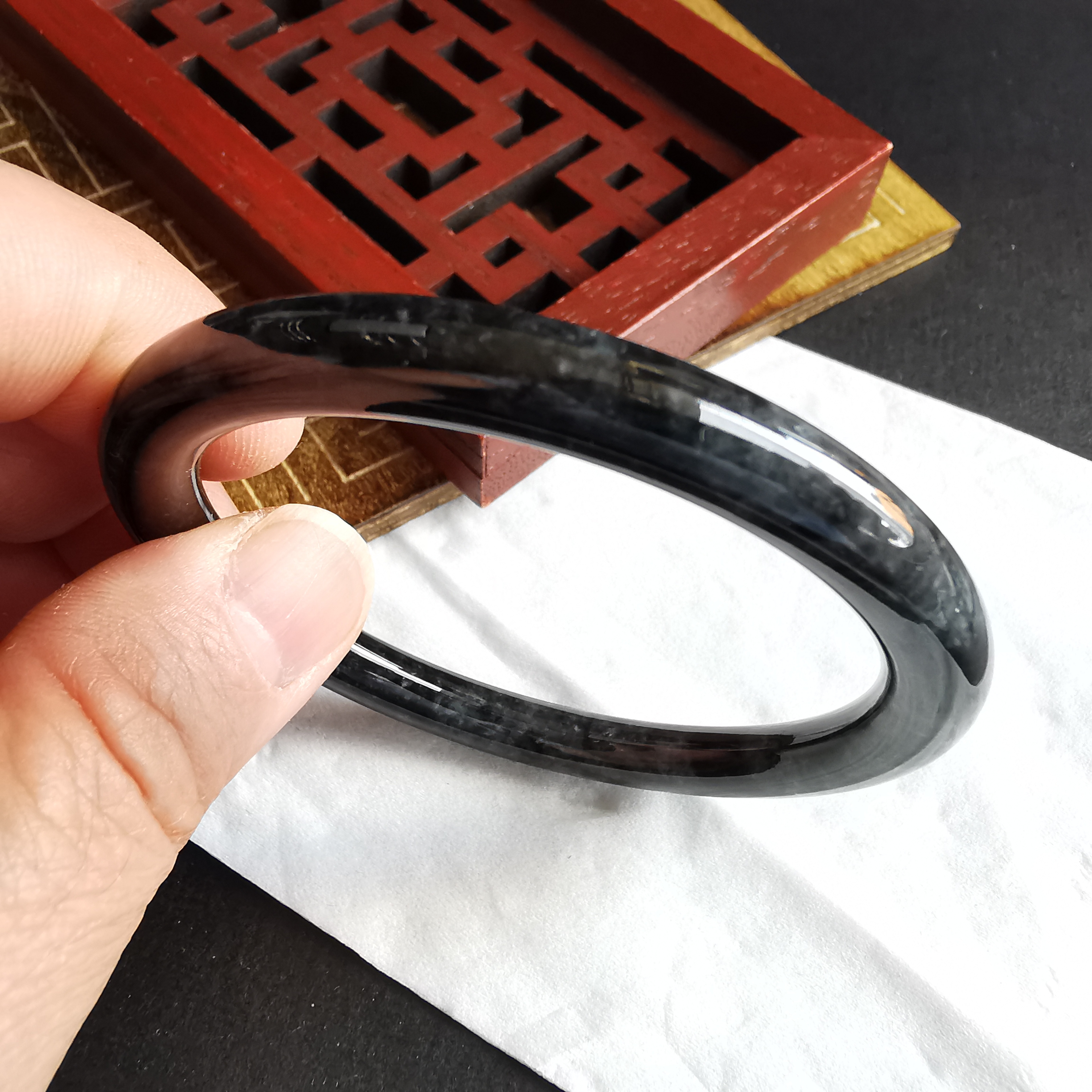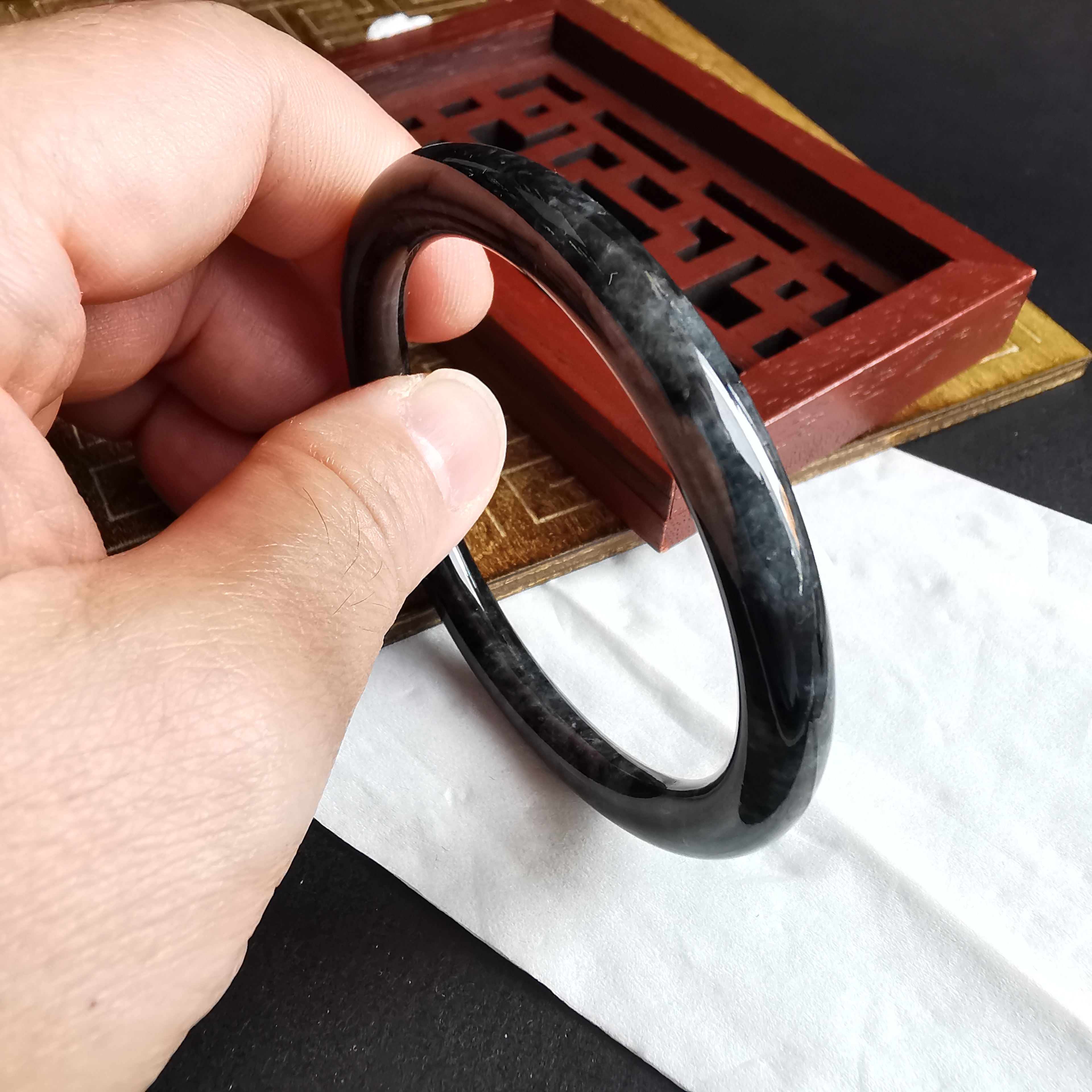 • 冰烏雞圓條玉鐲 53.5mm, 天然翡翠A玉, 緬甸玉, Jade, Jadeite