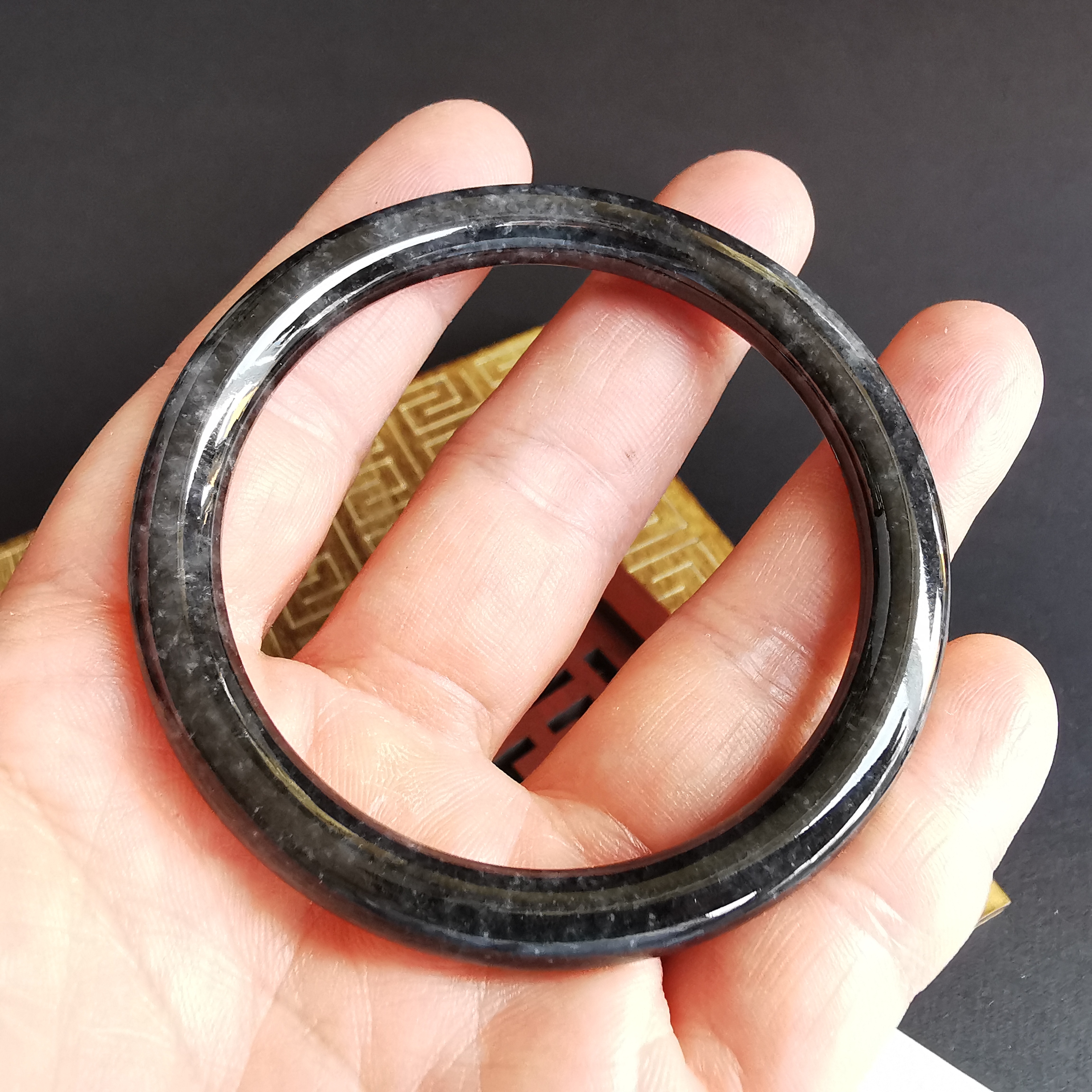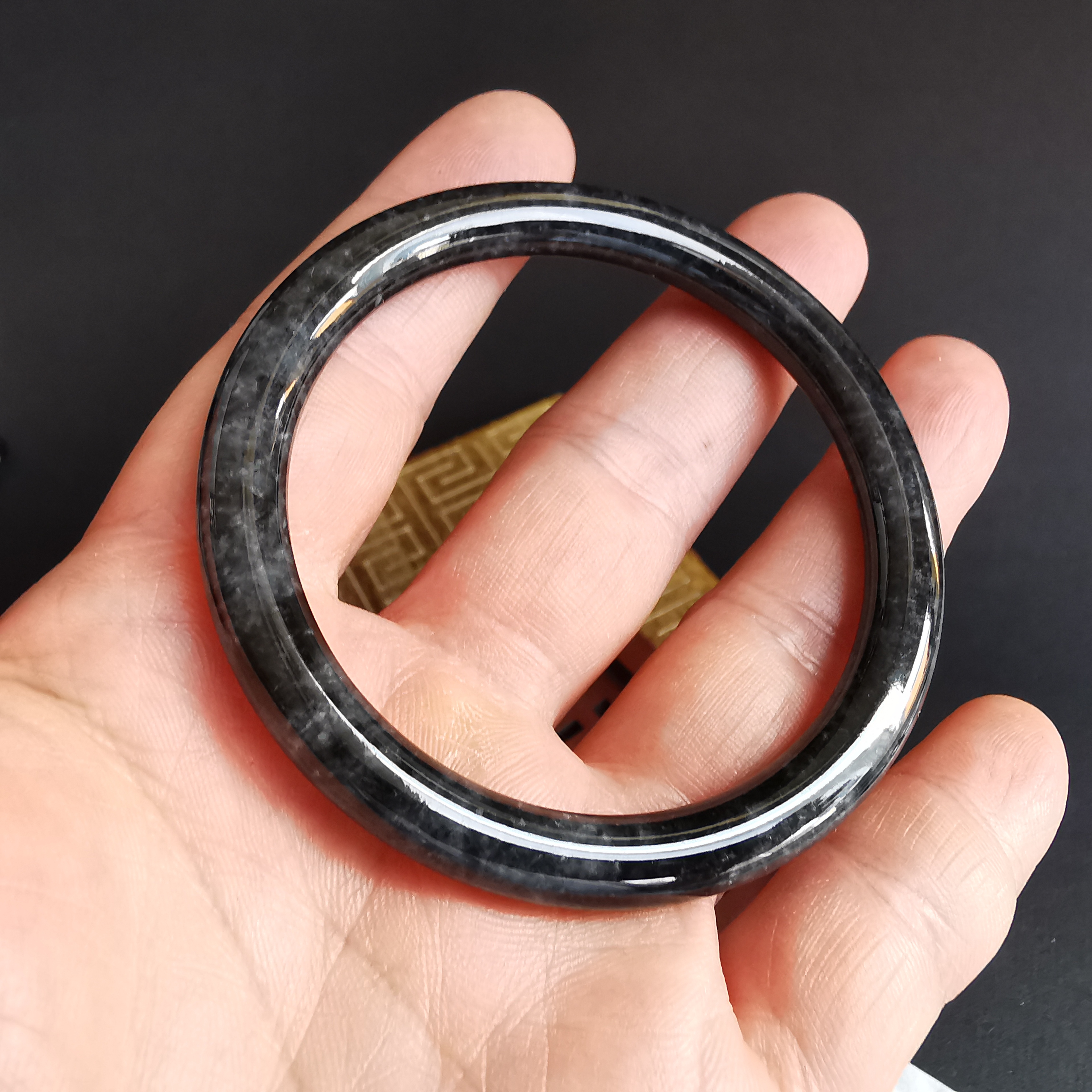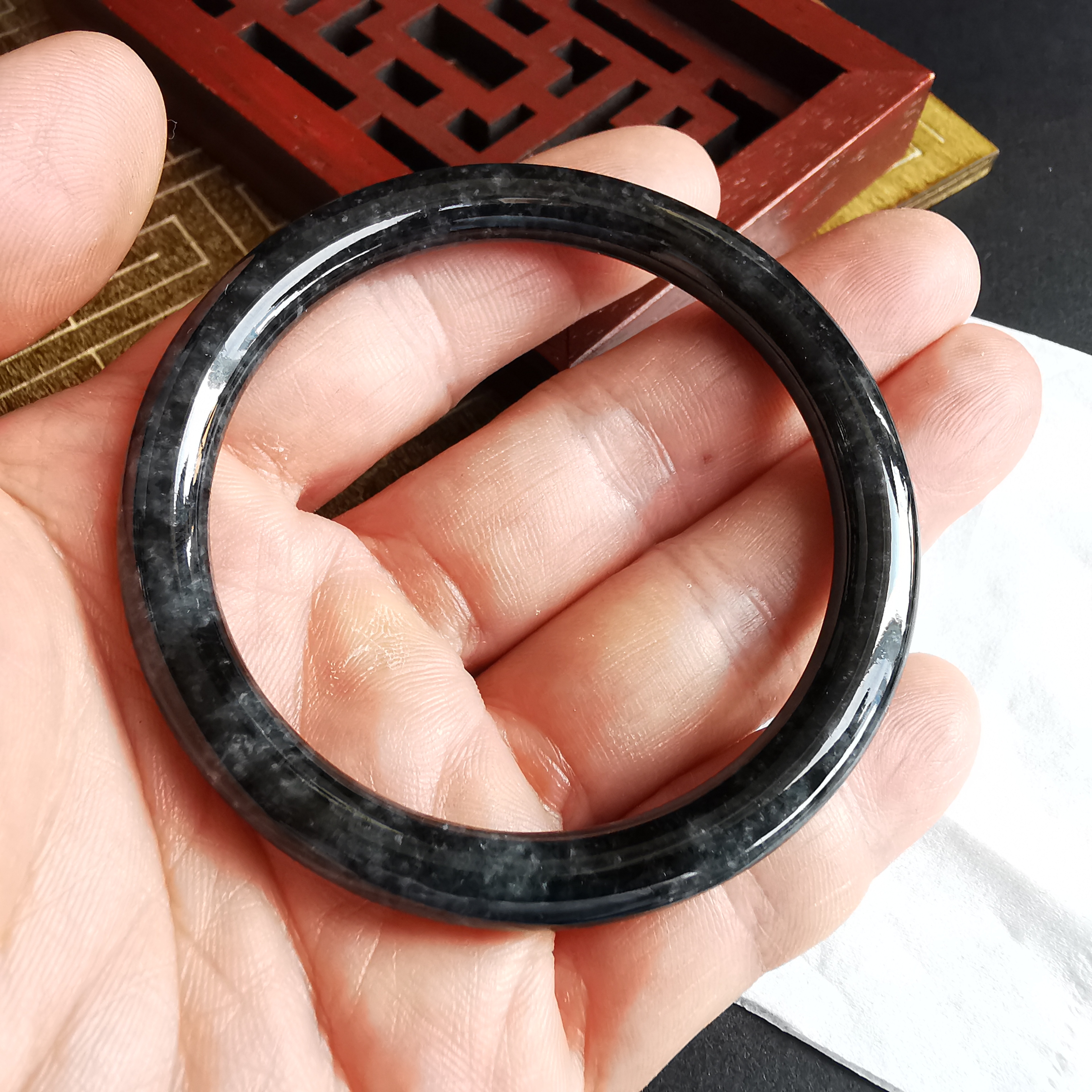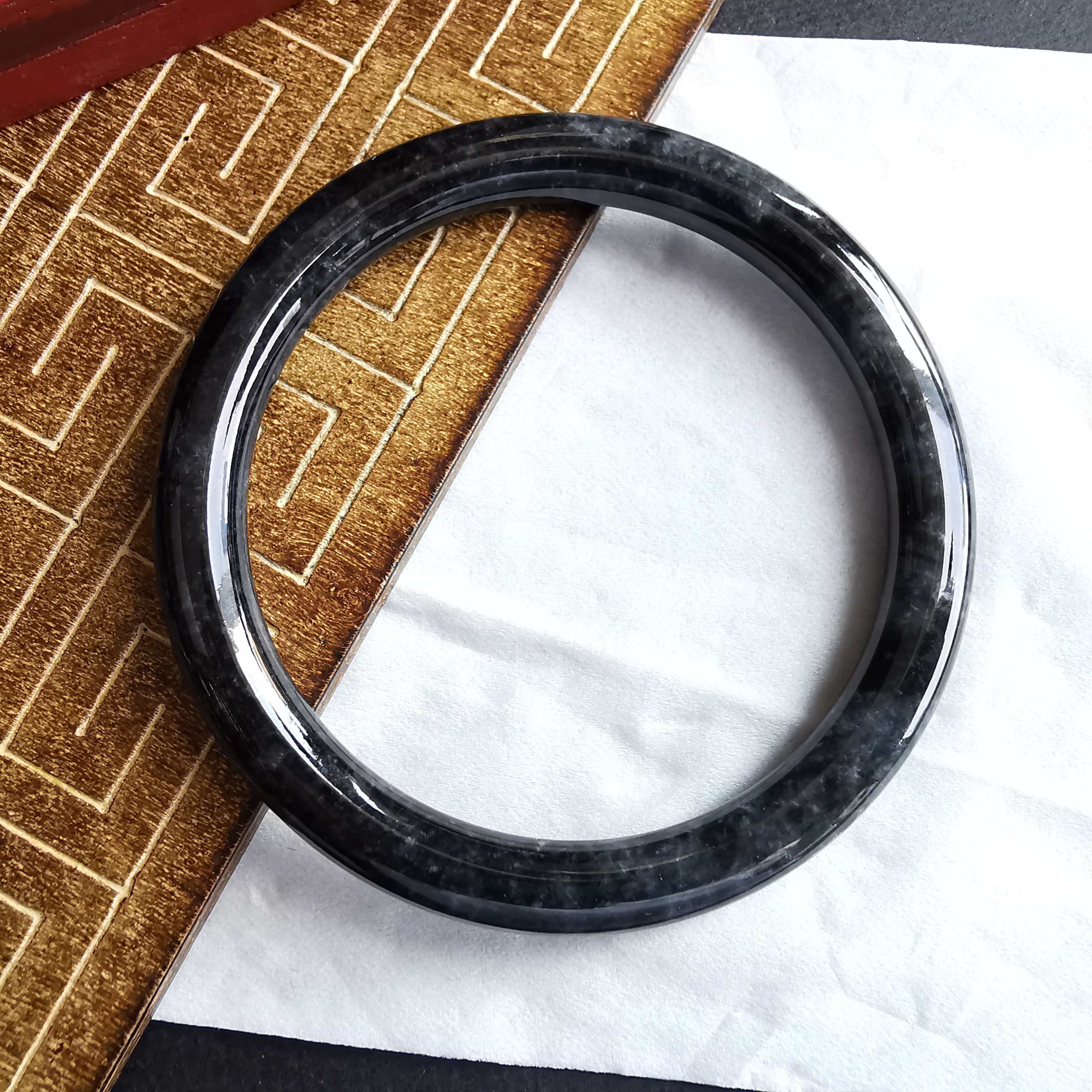 • 冰烏雞圓條玉鐲 53.5mm, 天然翡翠A玉, 緬甸玉, Jade, Jadeite