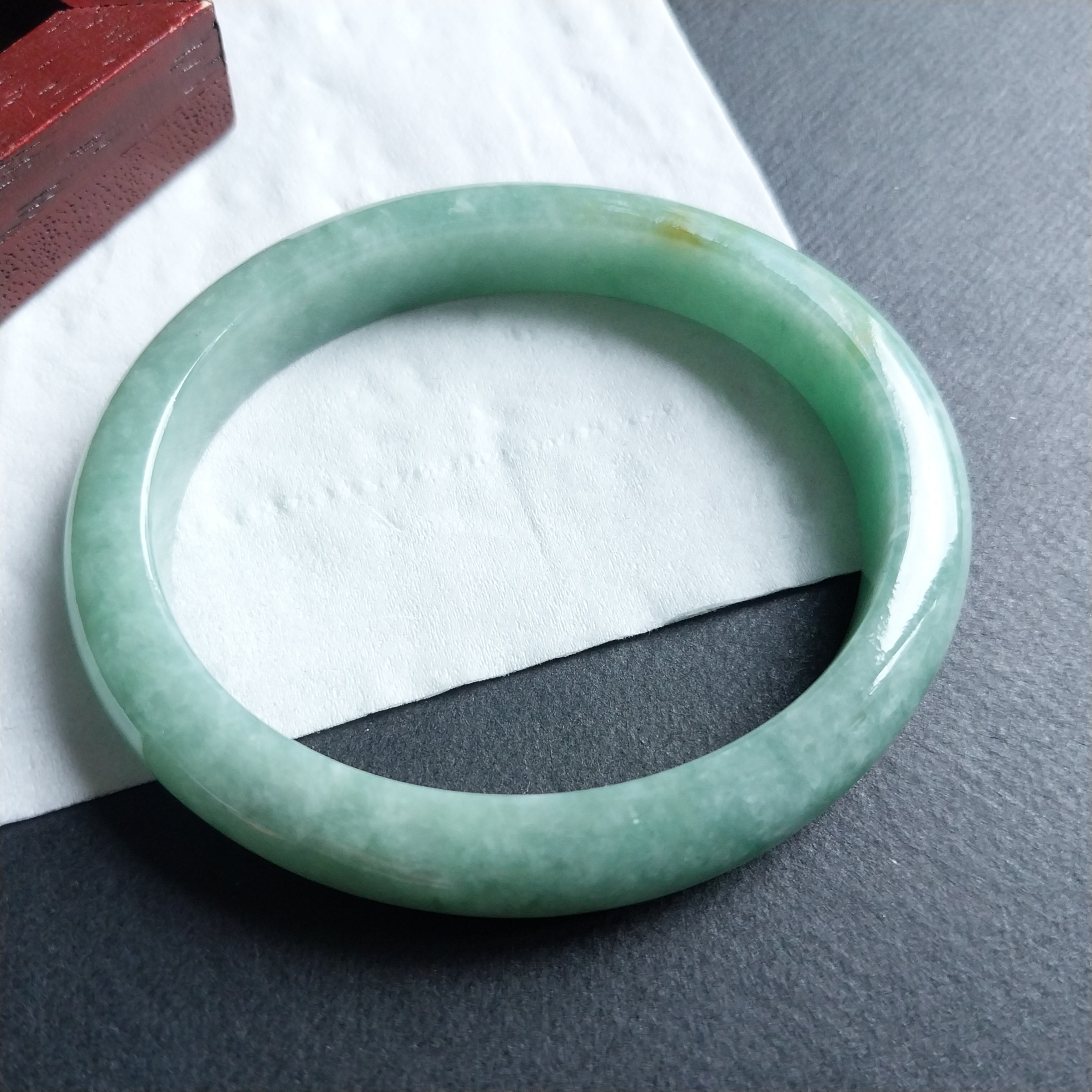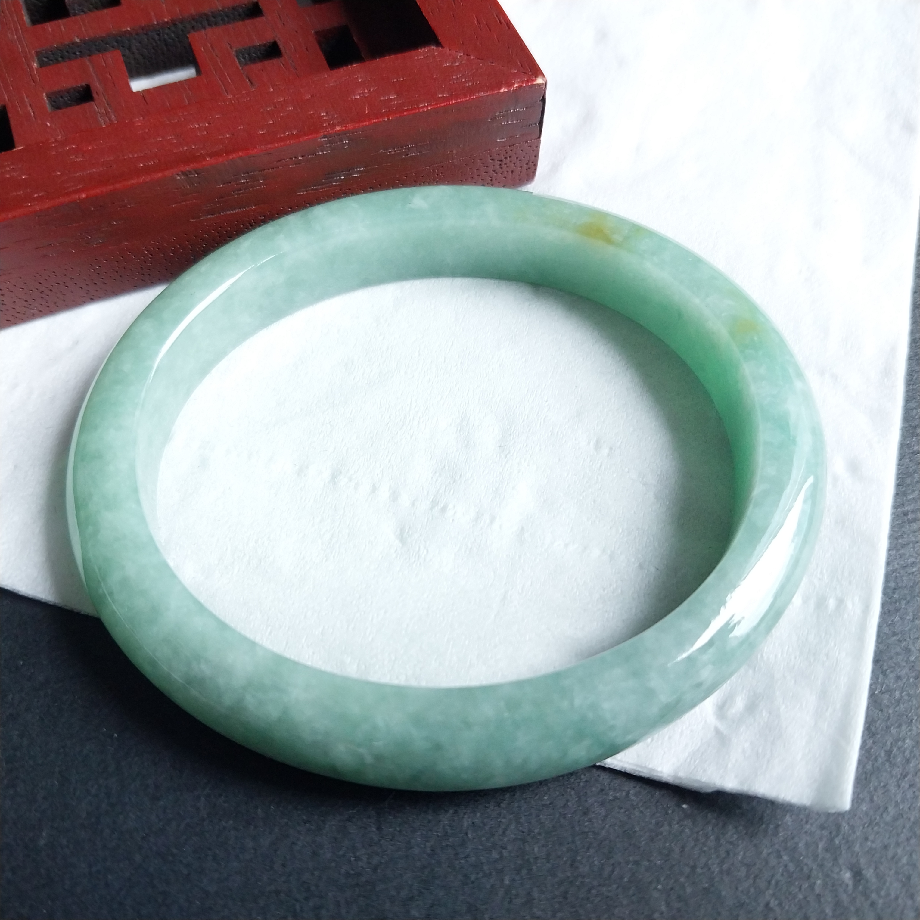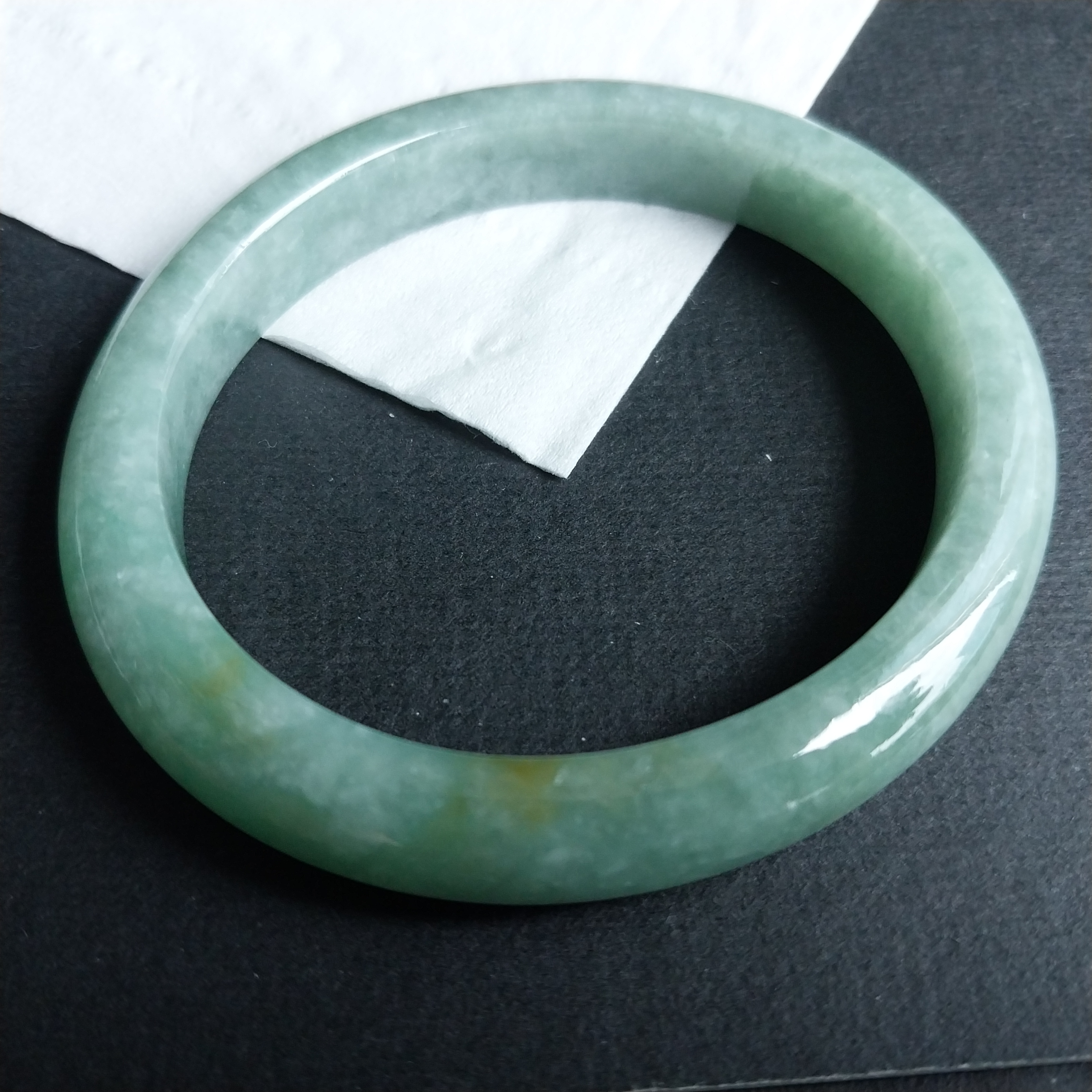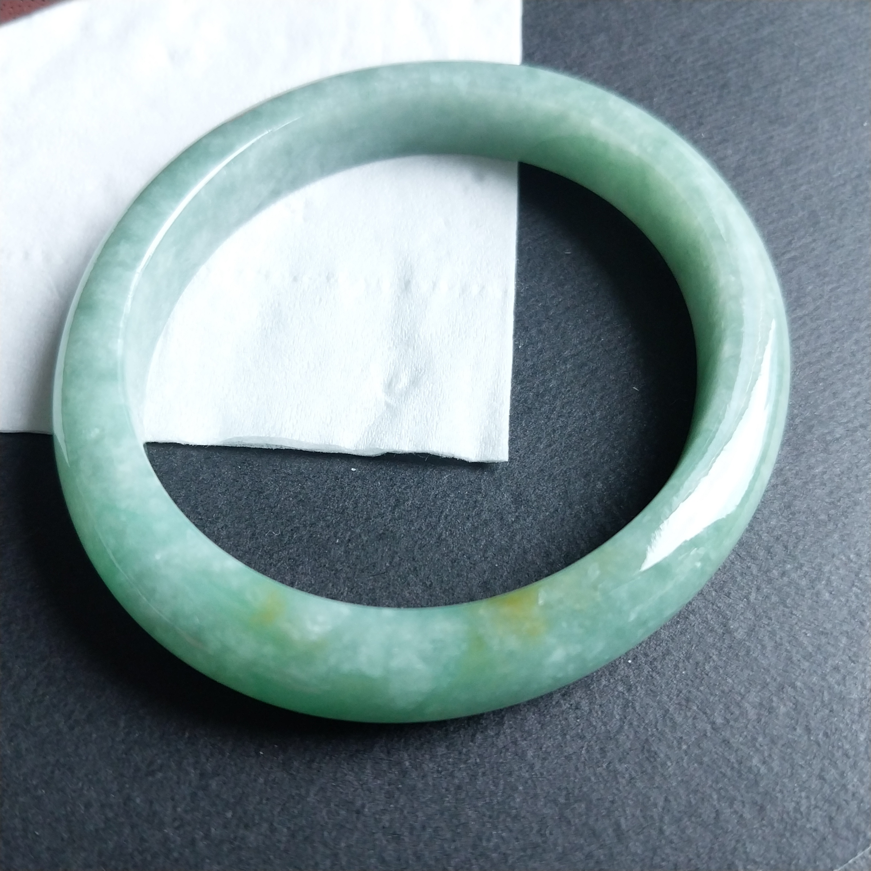 • 冰糯豆綠貴妃玉鐲 52mm, 天然翡翠A玉, 緬甸玉, Jade, Jadeite