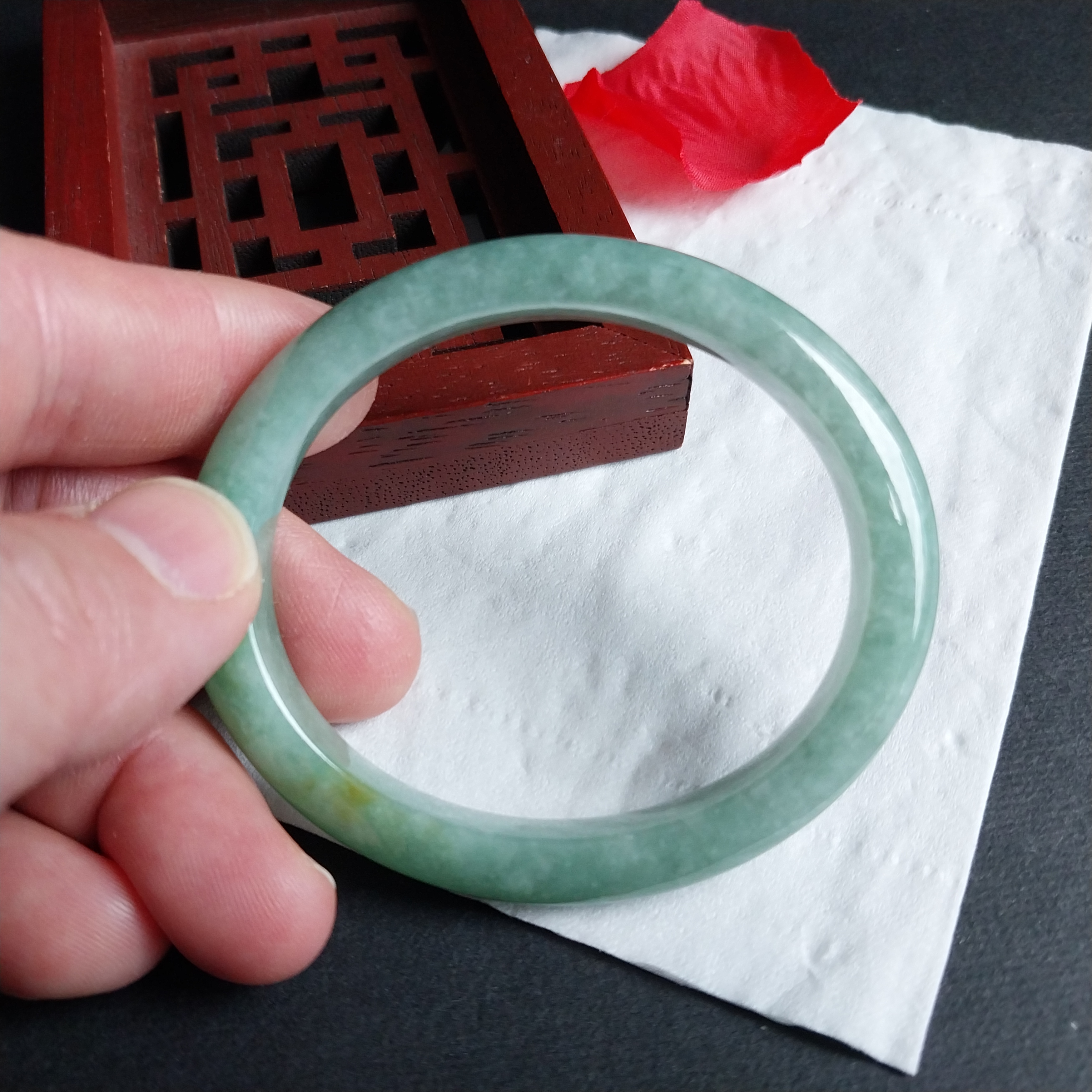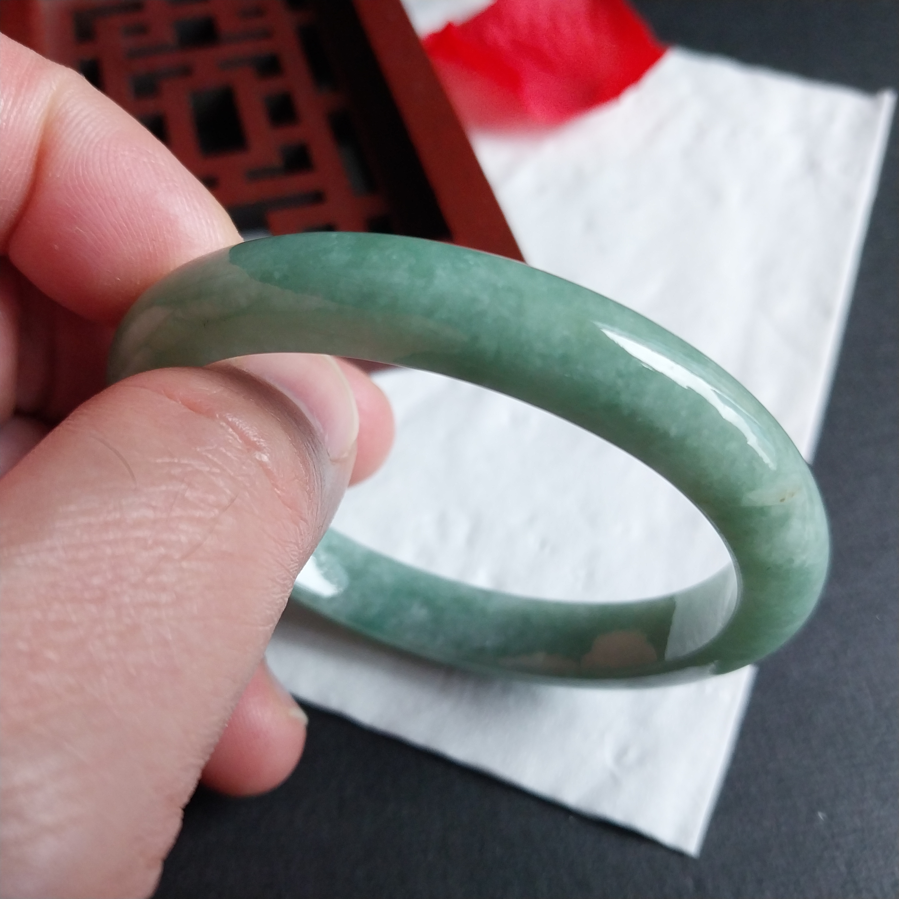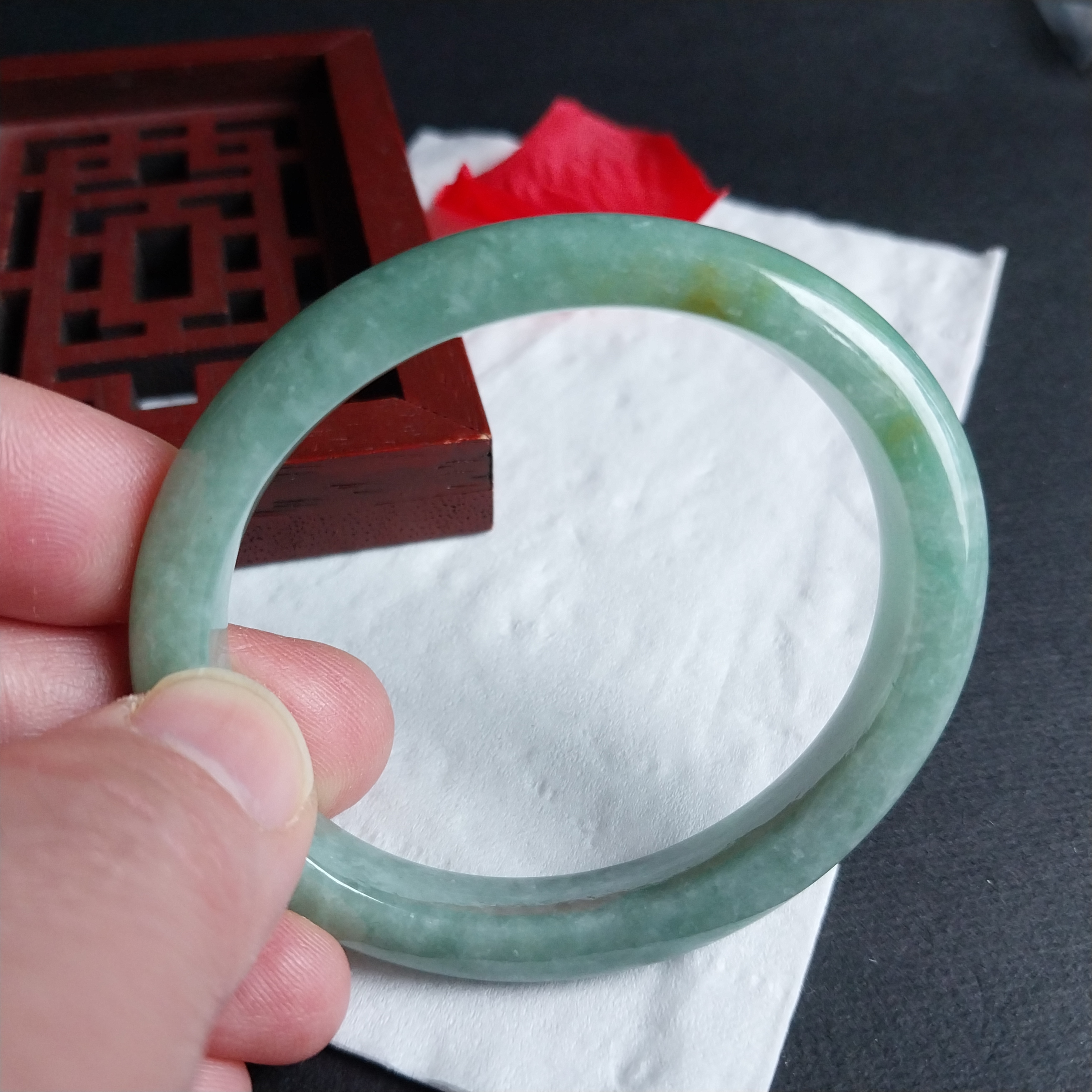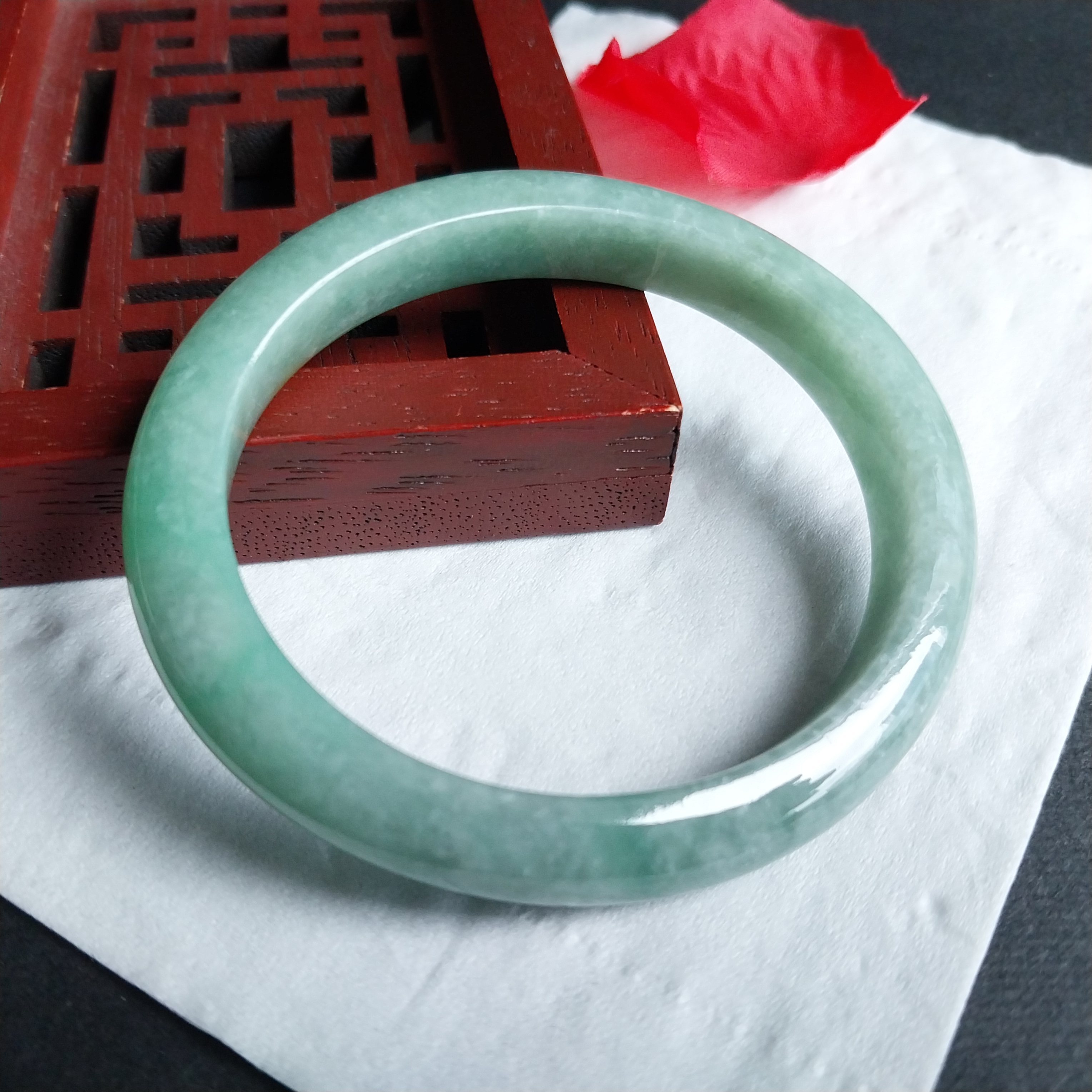 J2078 冰糯豆綠貴妃玉鐲 52mm (50-52)
