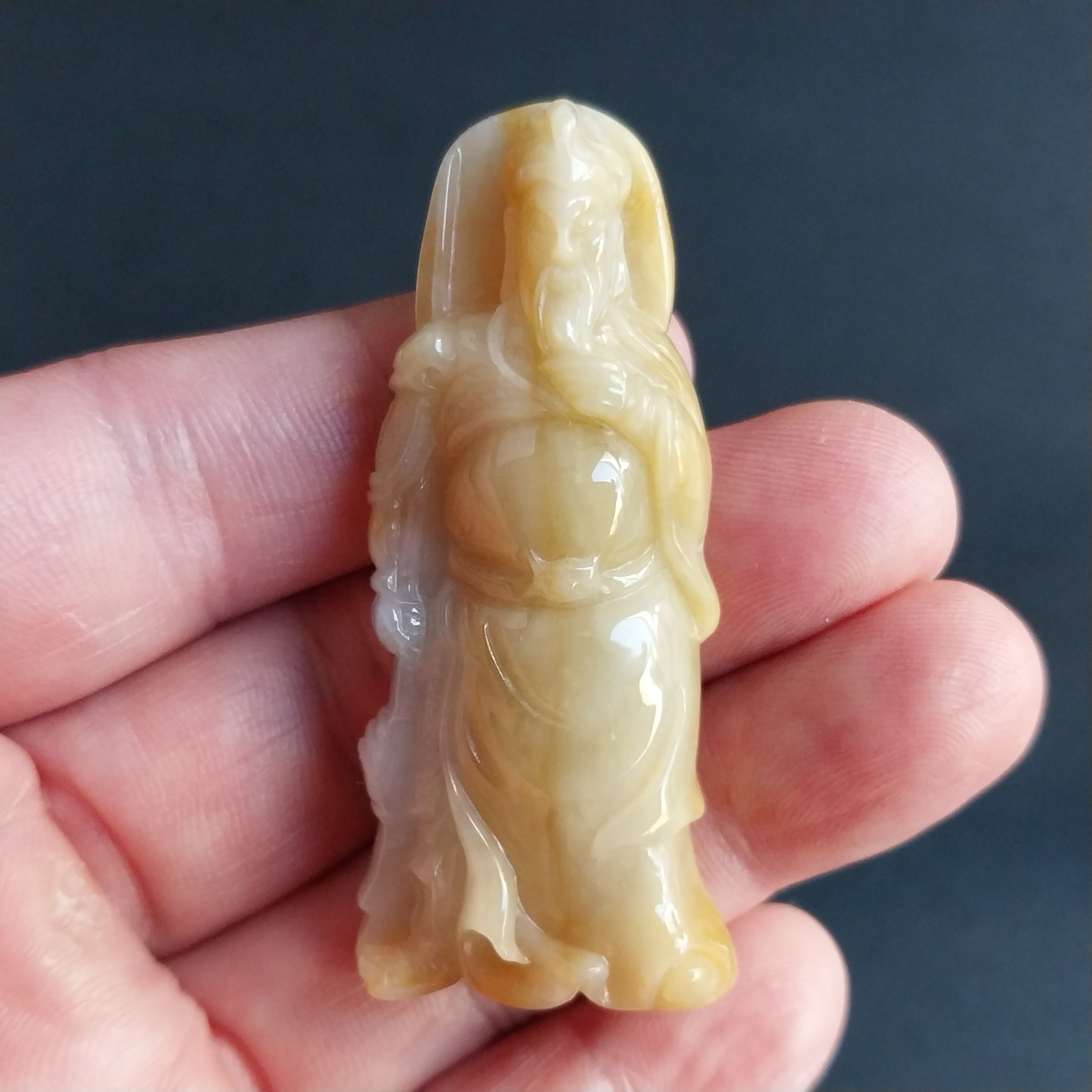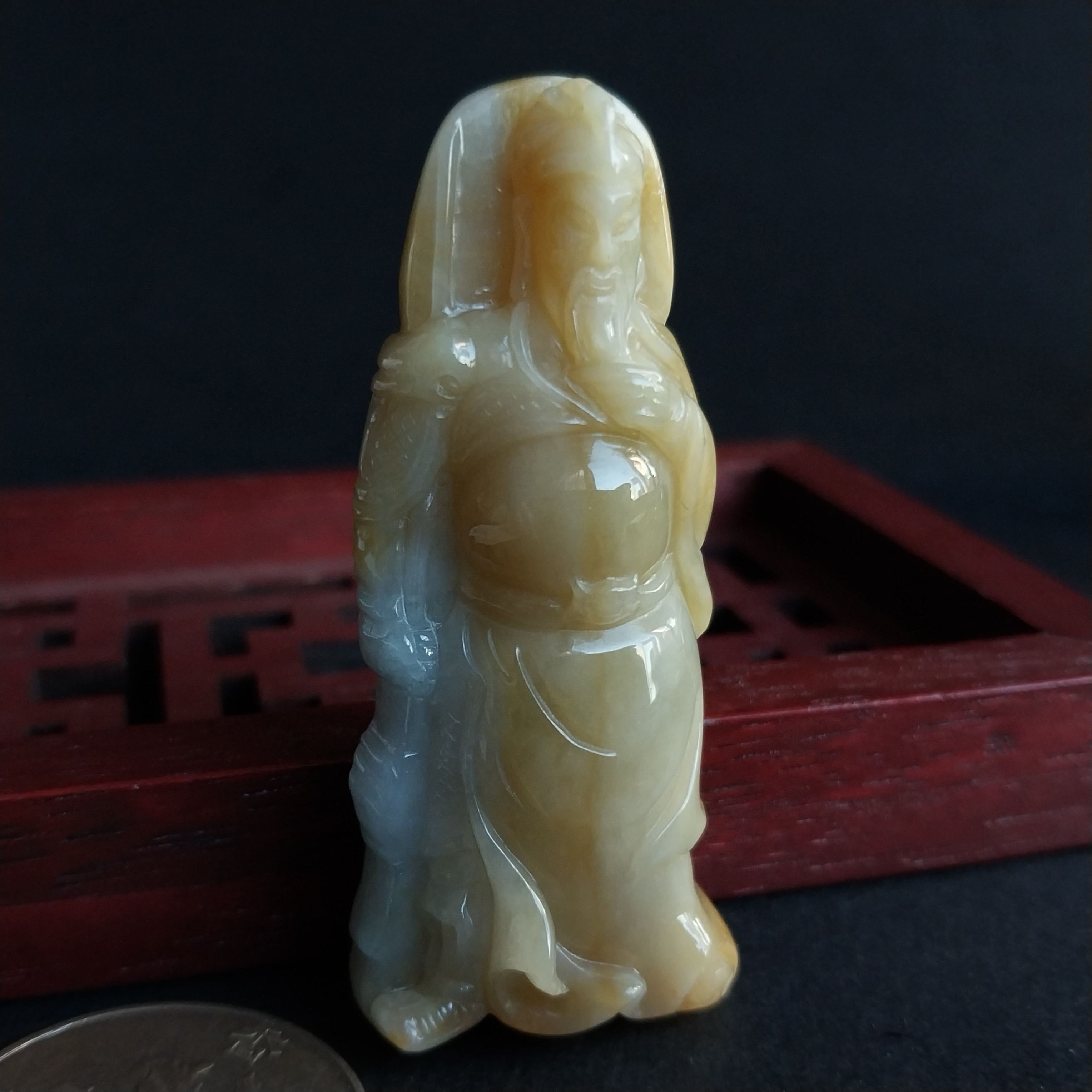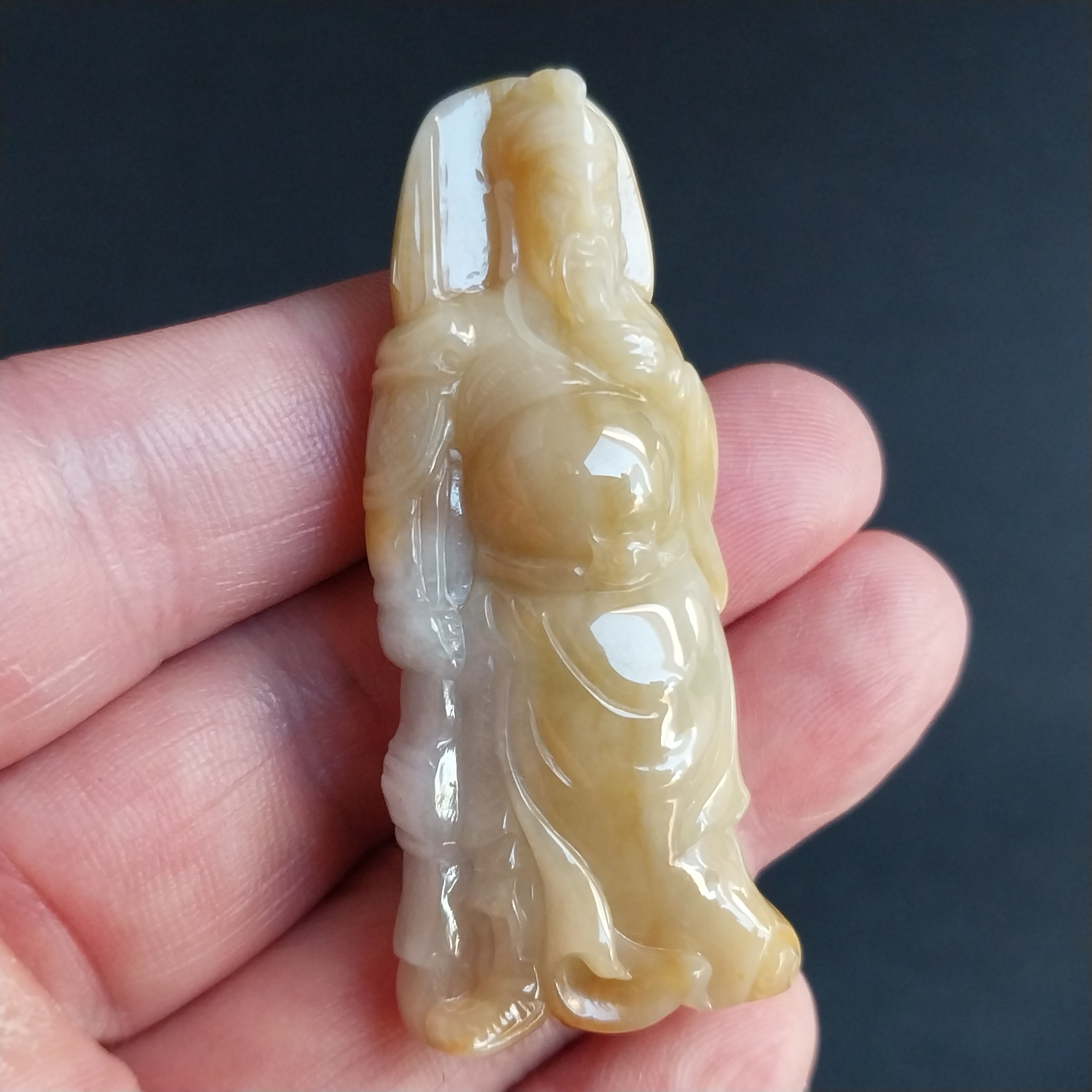 • 黃翡立體關公, 天然翡翠A玉, 緬甸玉, Jade, Jadeite
