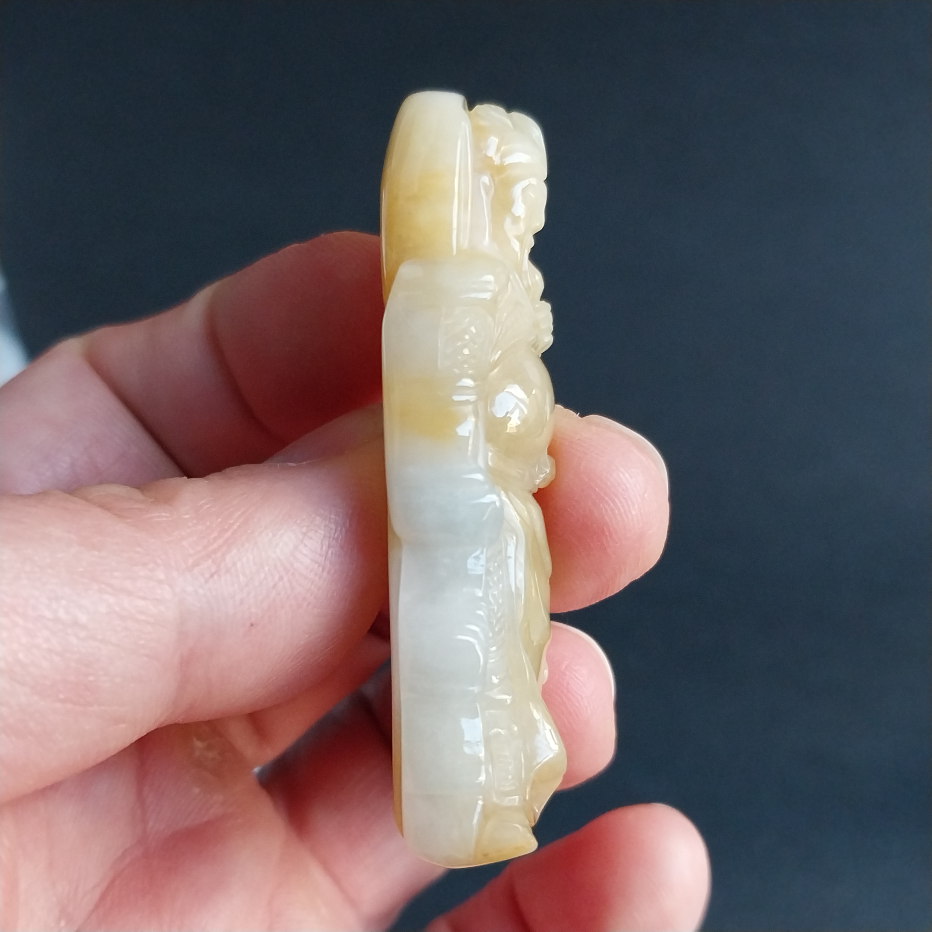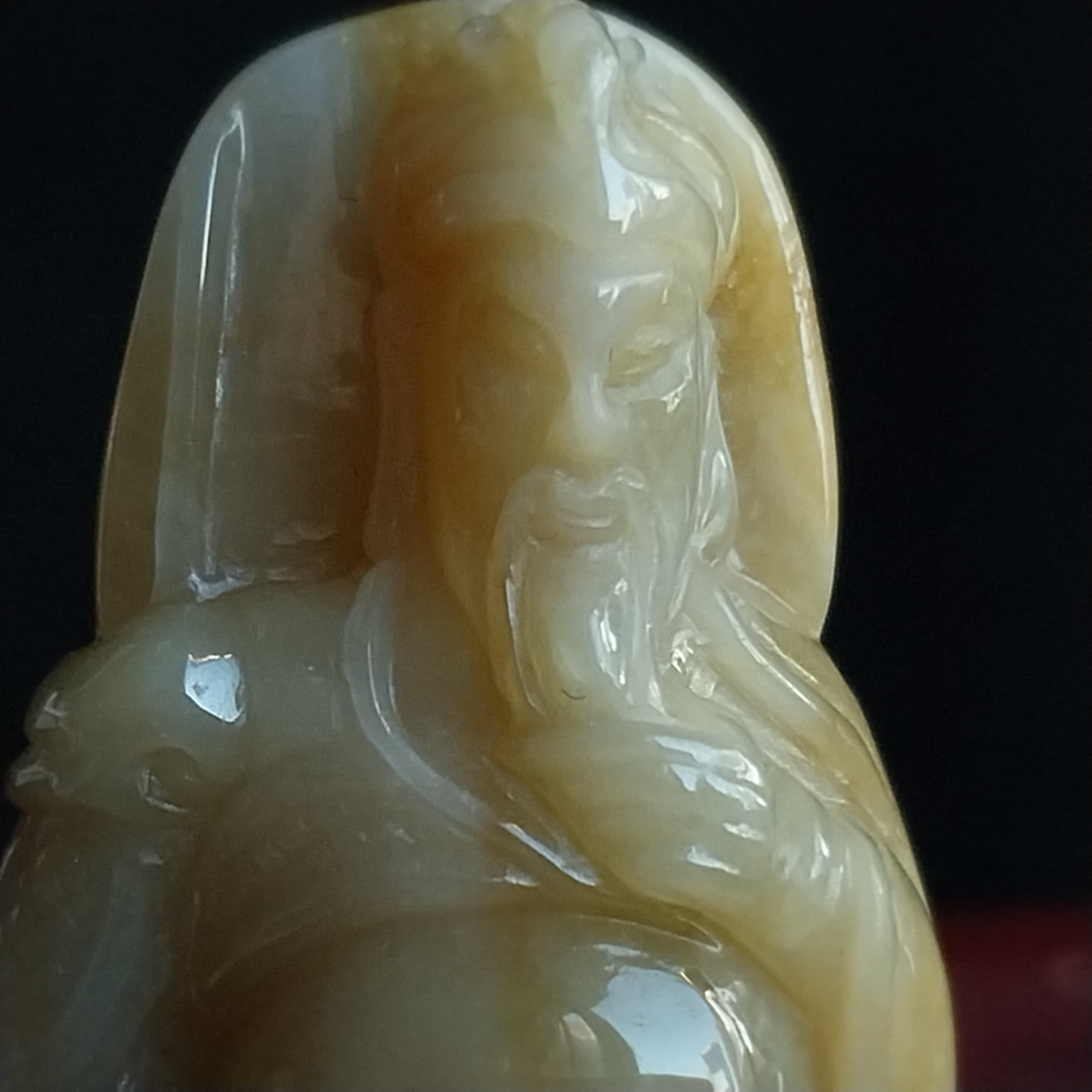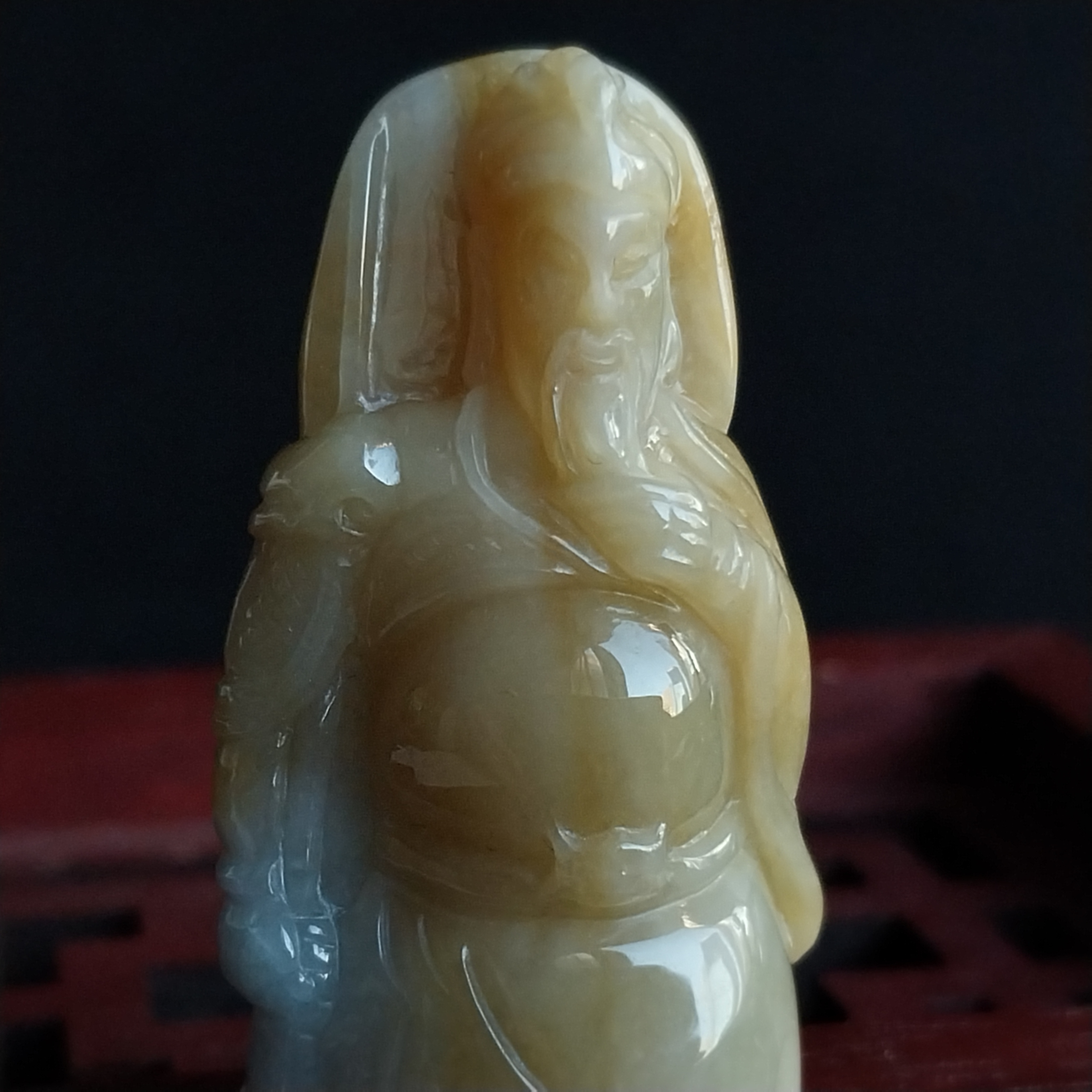 • 黃翡立體關公, 天然翡翠A玉, 緬甸玉, Jade, Jadeite