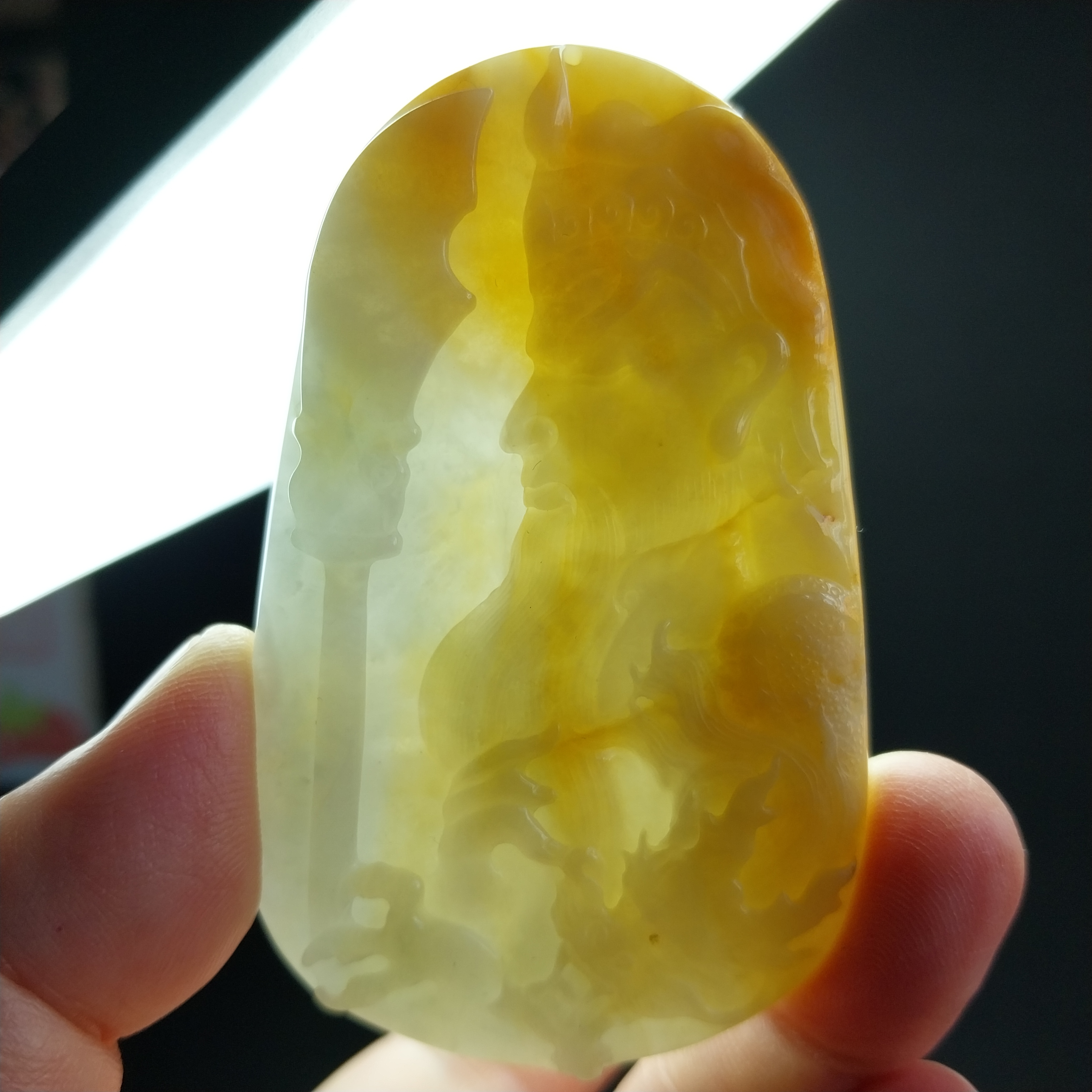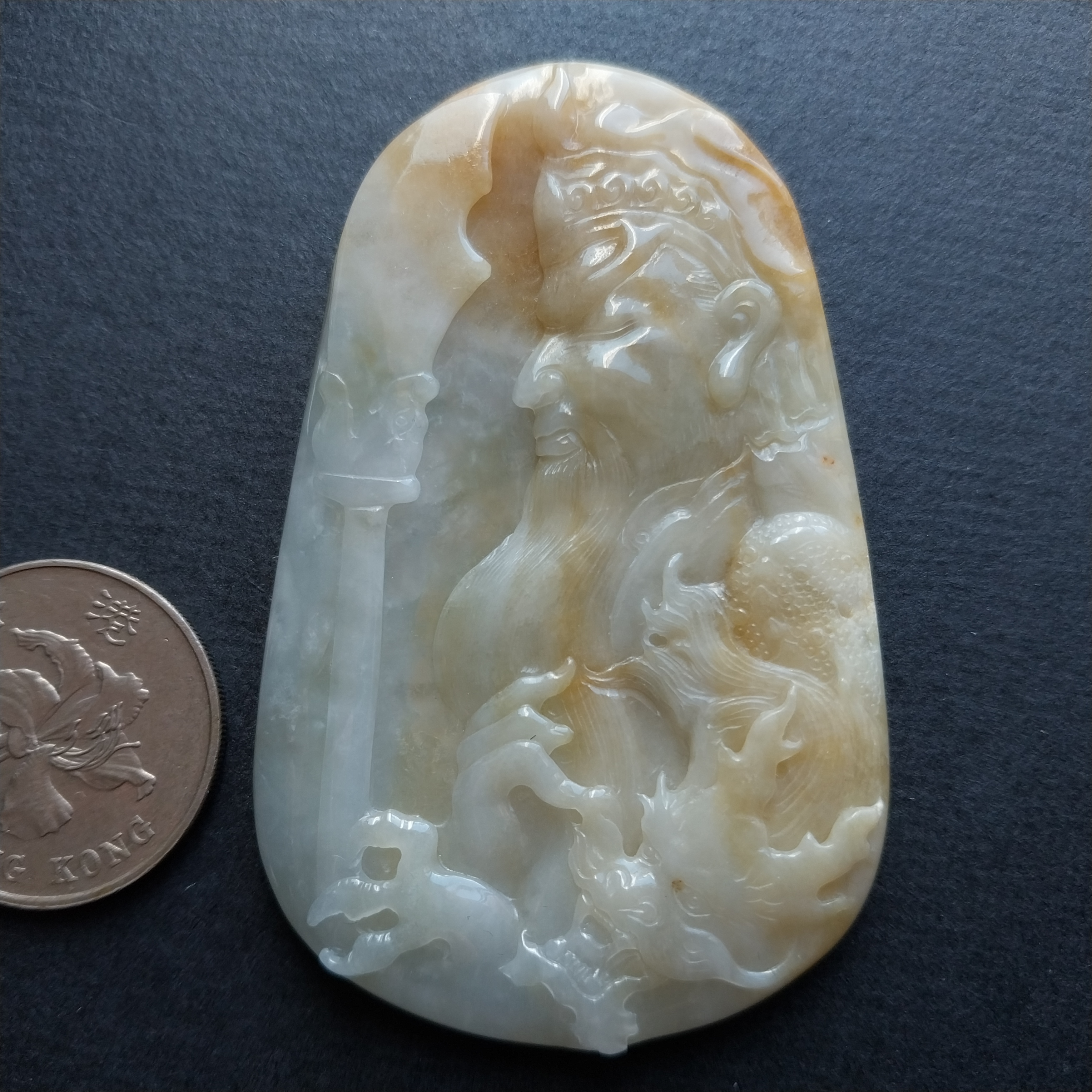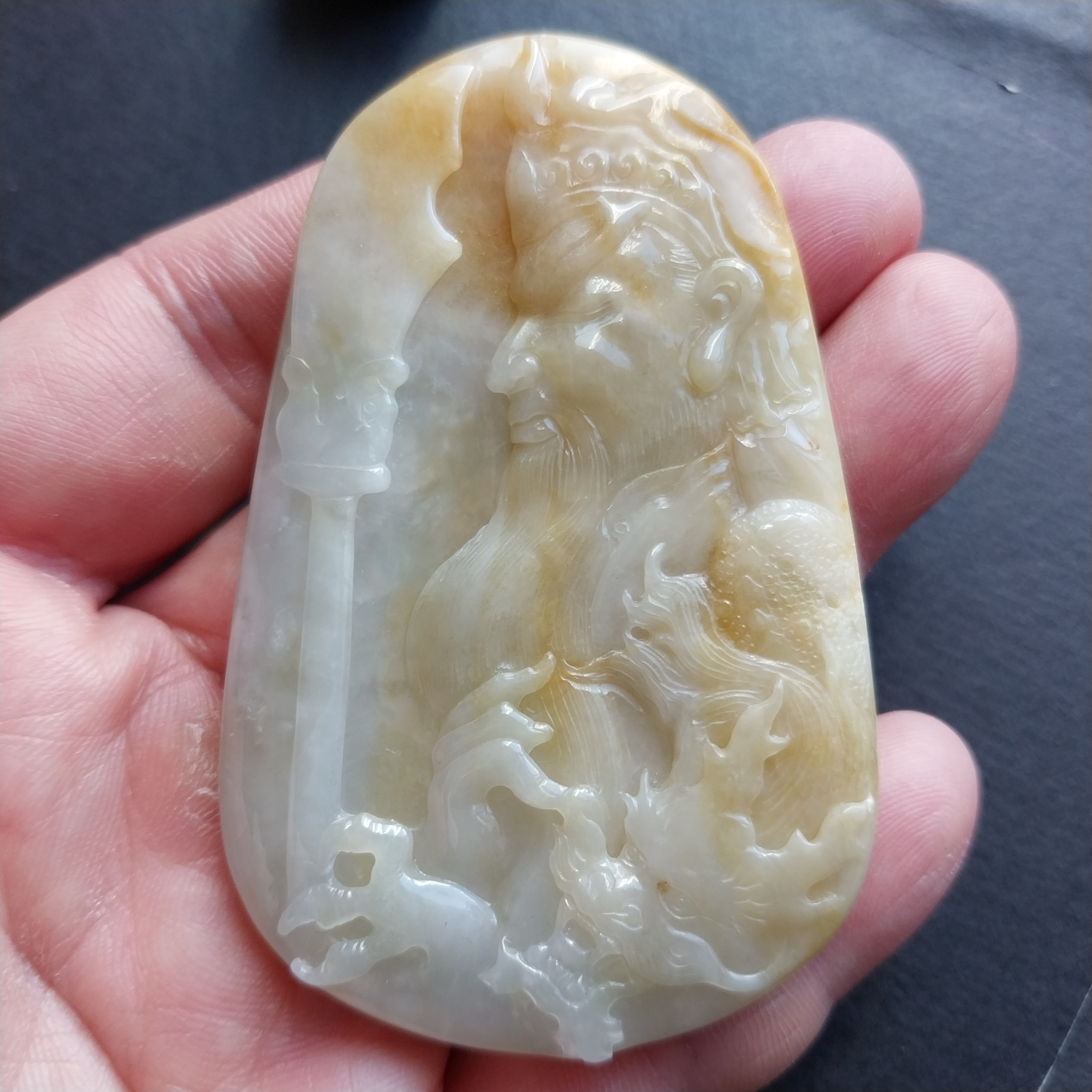 • 黃翡關公牌, 天然翡翠A玉, 緬甸玉, Jade, Jadeite