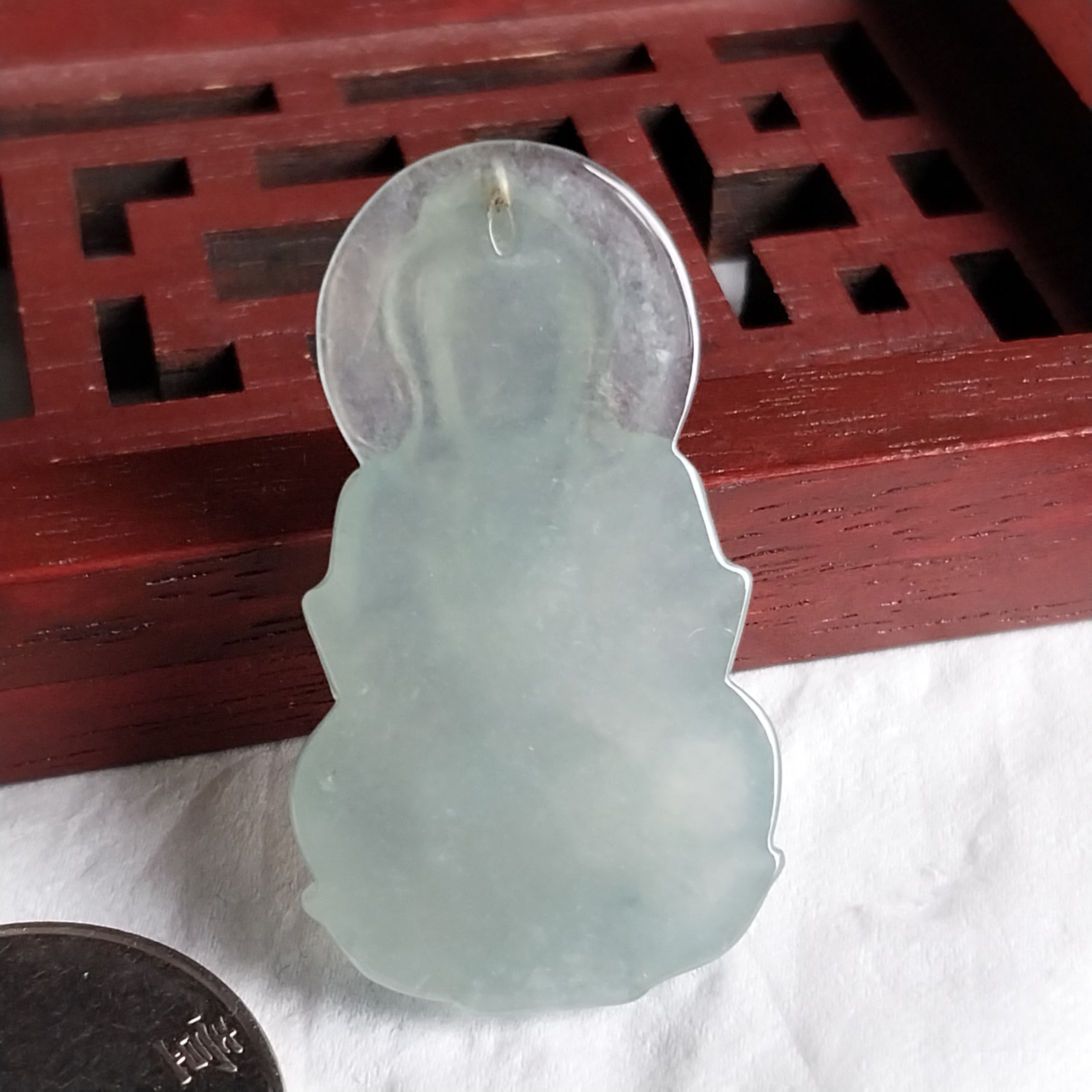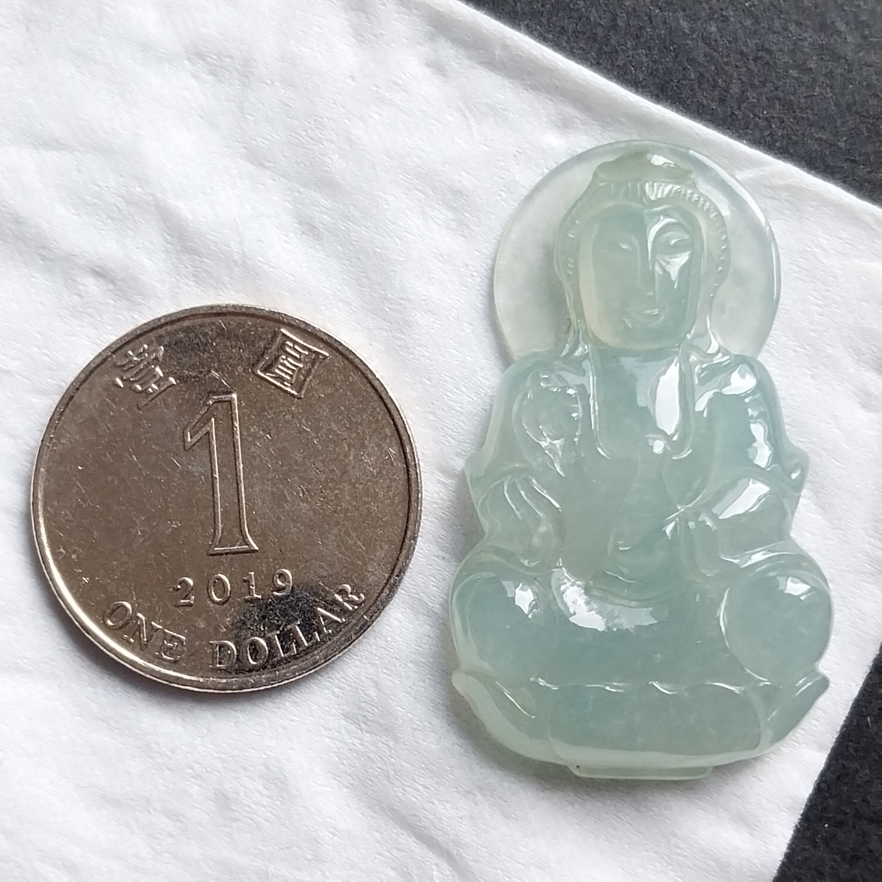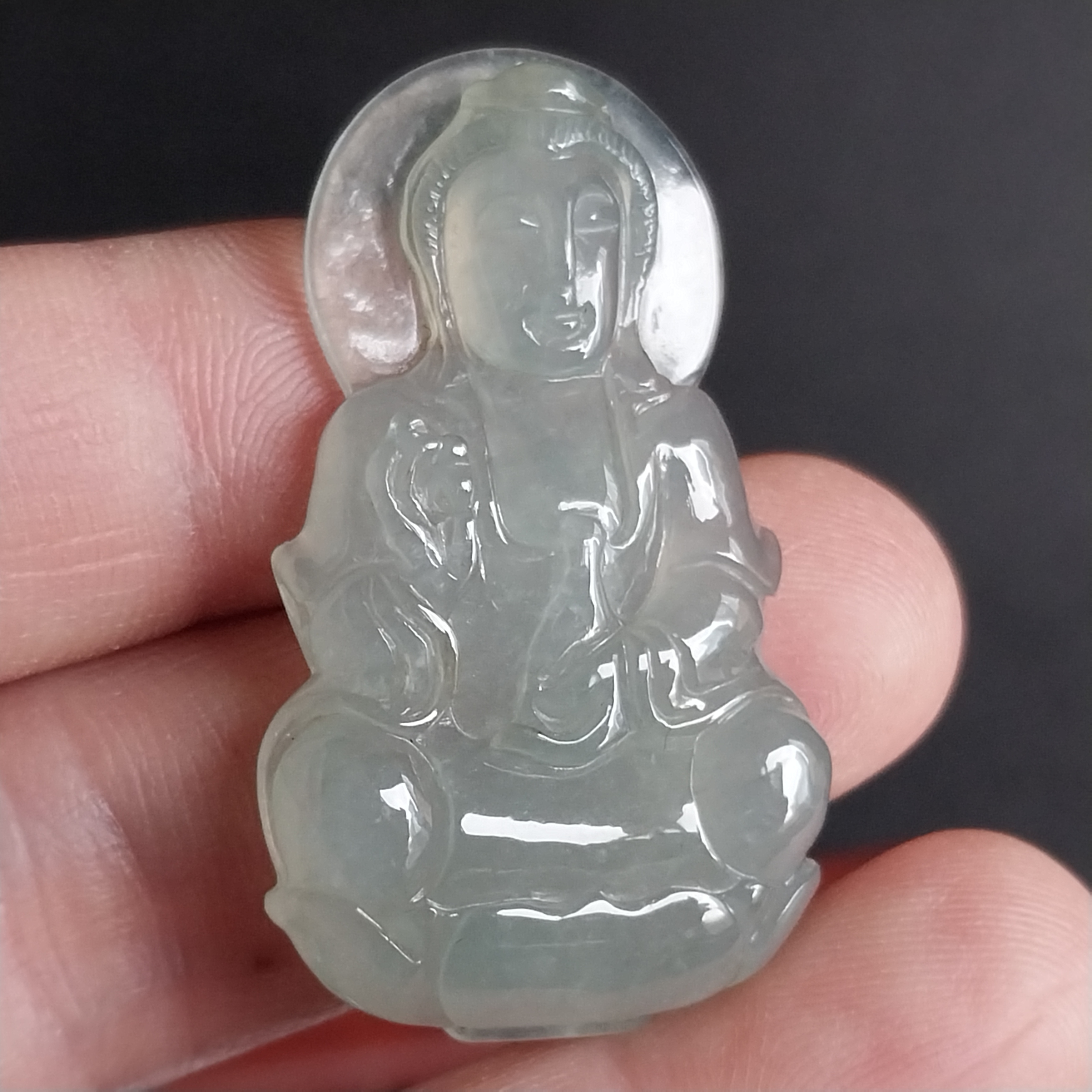• 冰晴水綠坐蓮觀音吊墜, 天然翡翠A玉, 緬甸玉, Jade, Jadeite