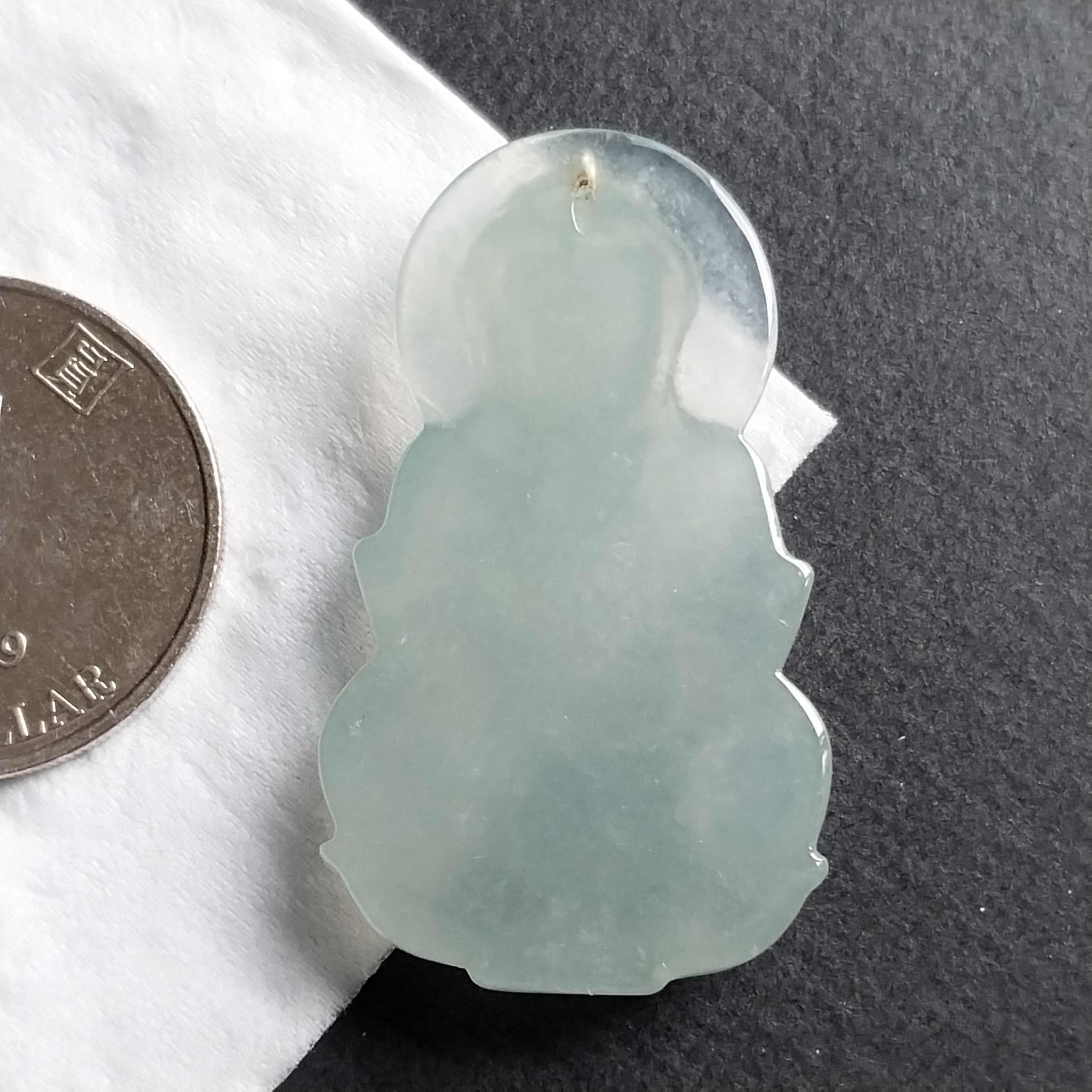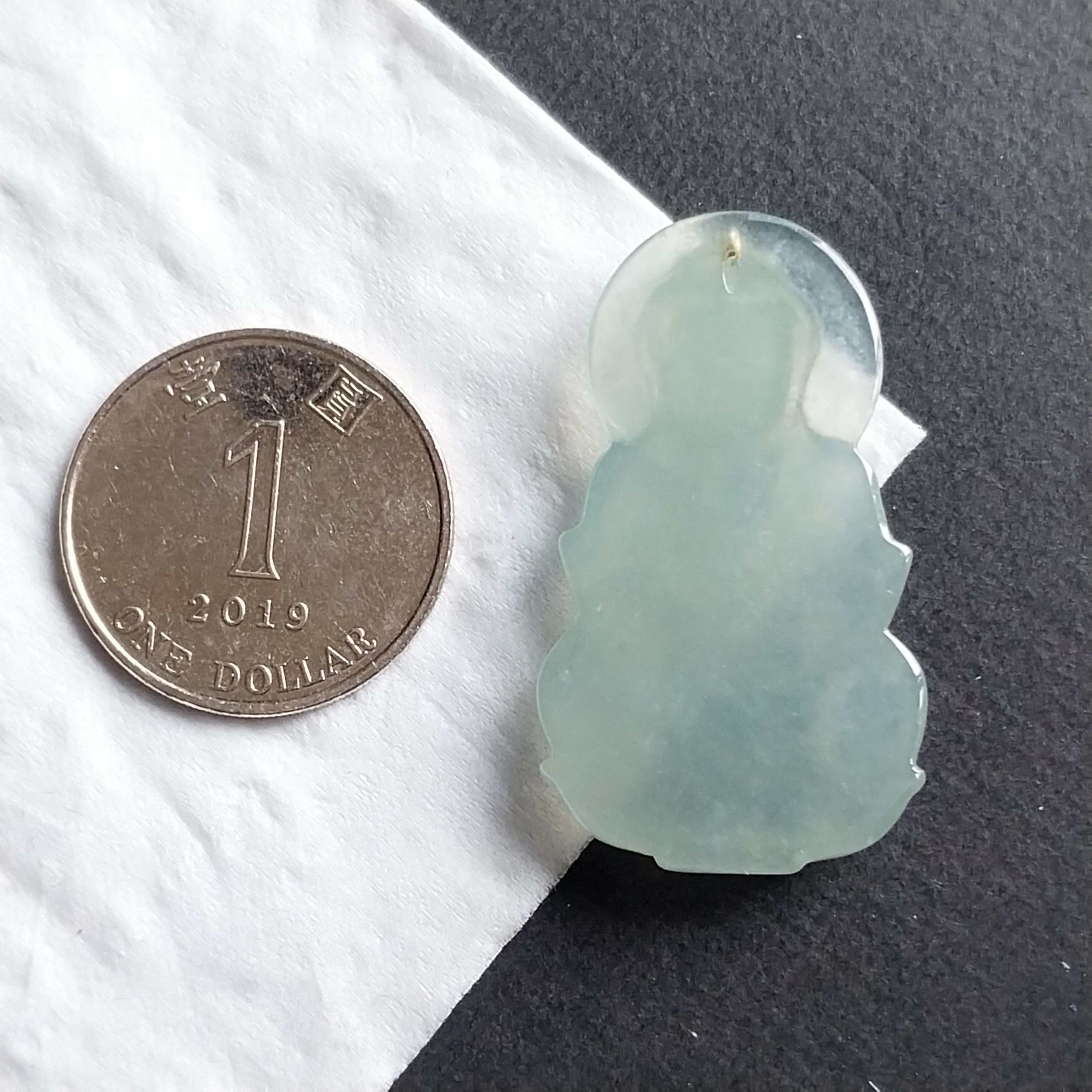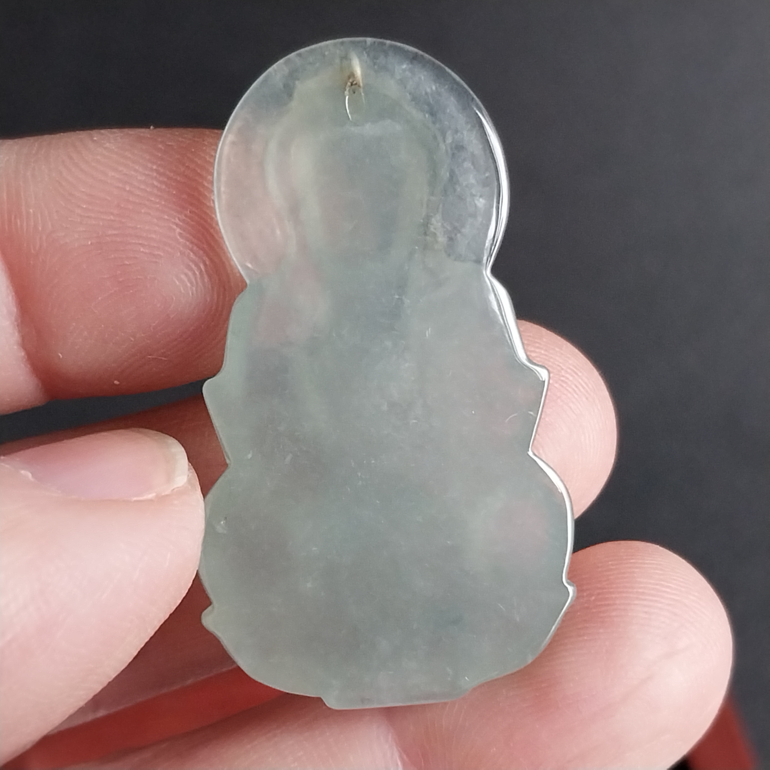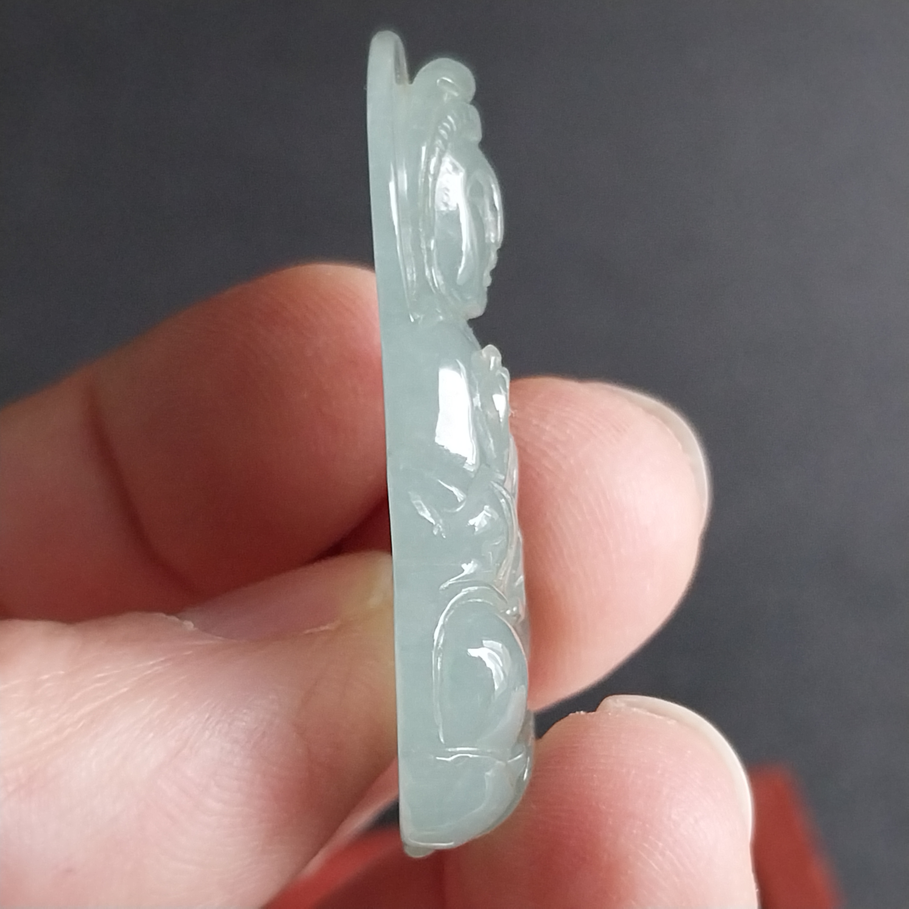 • 冰晴水綠坐蓮觀音吊墜, 天然翡翠A玉, 緬甸玉, Jade, Jadeite
