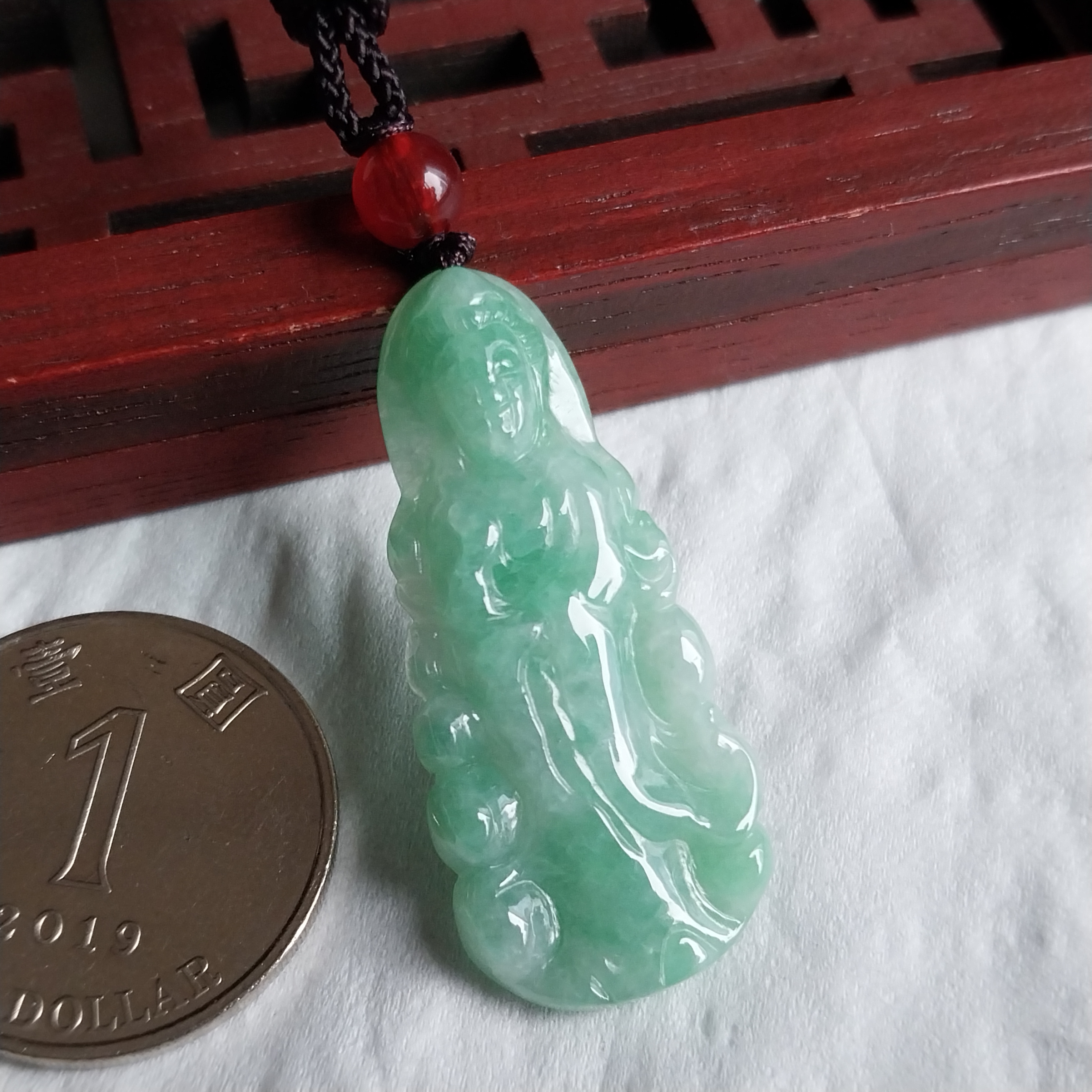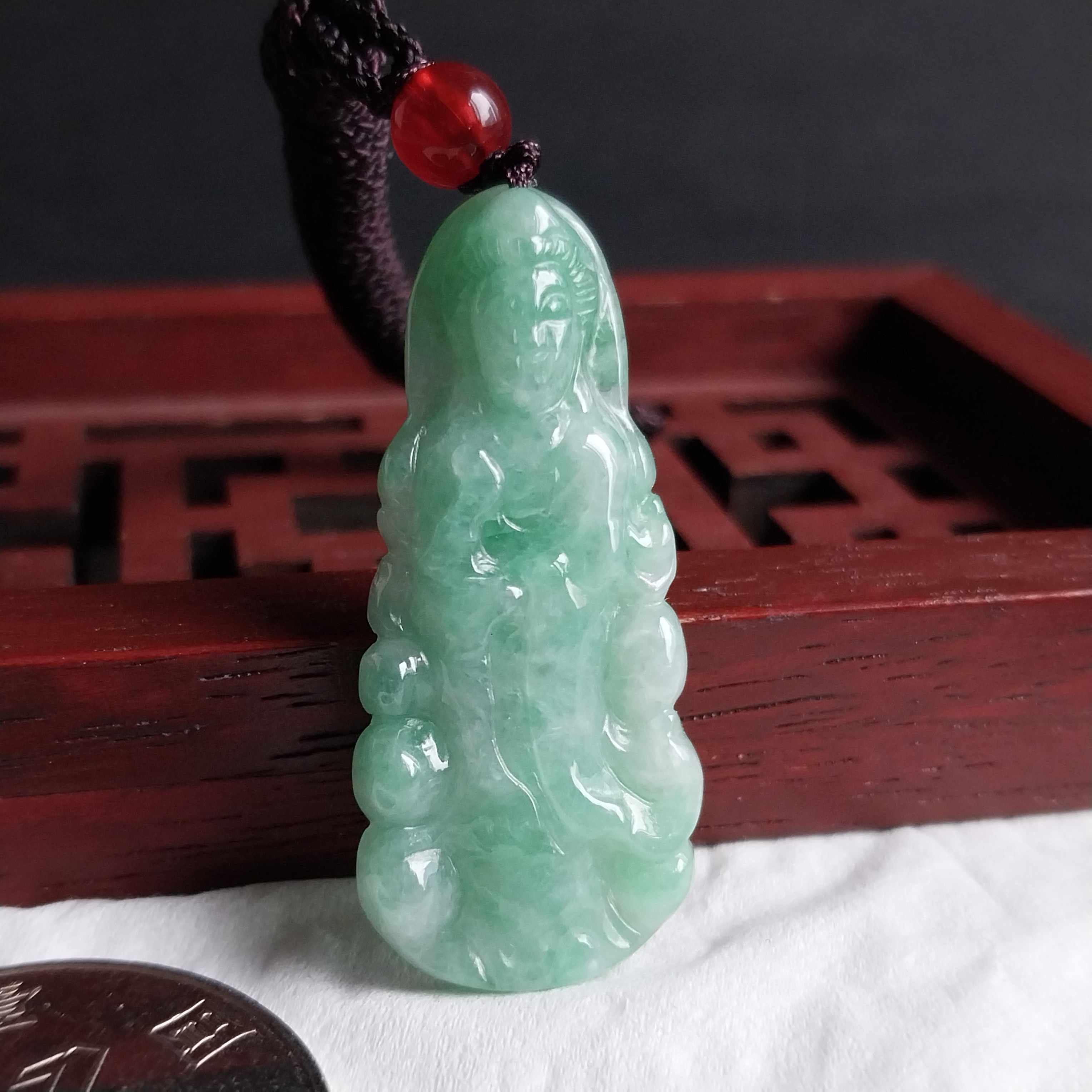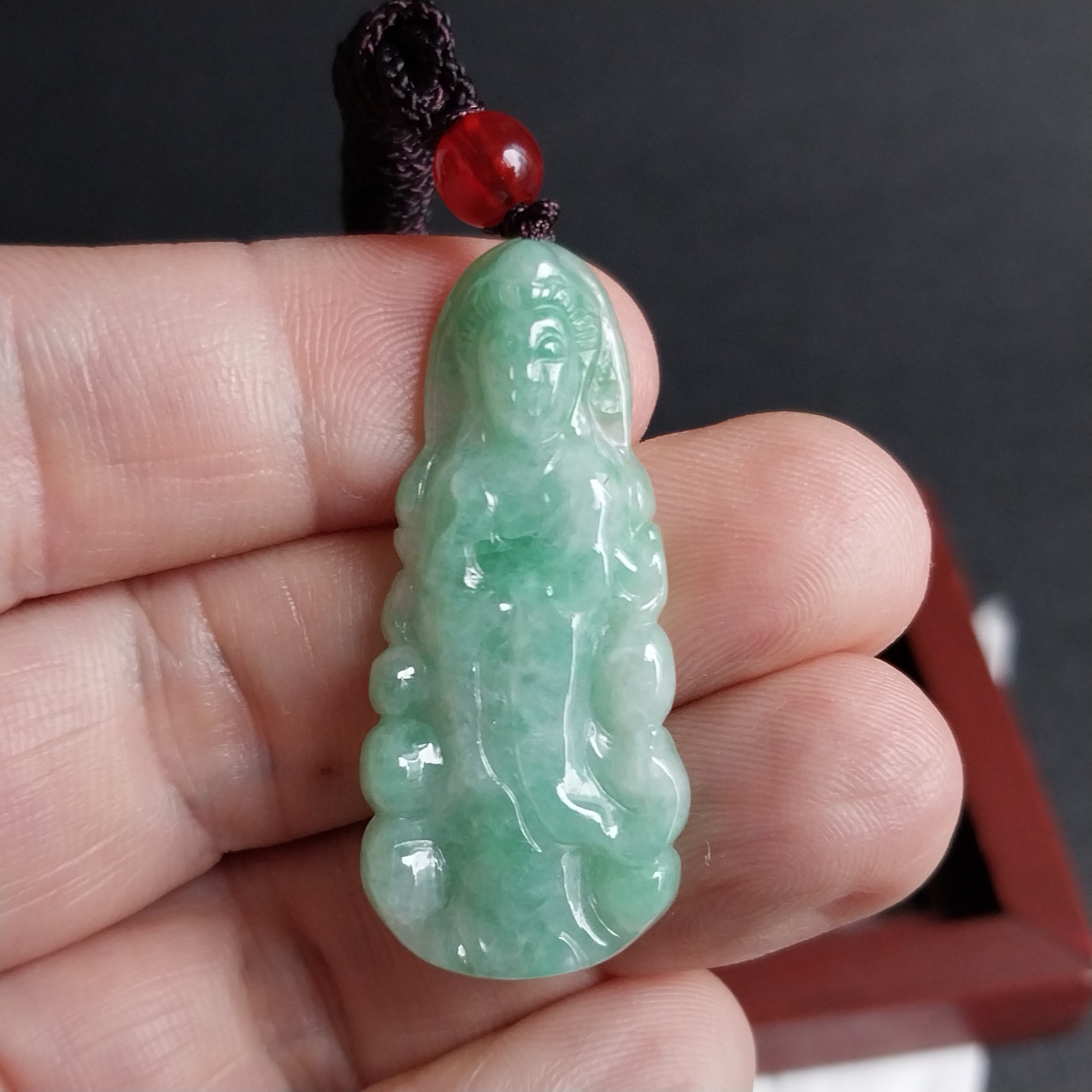 • 冰糯綠小觀音吊墜, 天然翡翠A玉, 緬甸玉, Jade, Jadeite