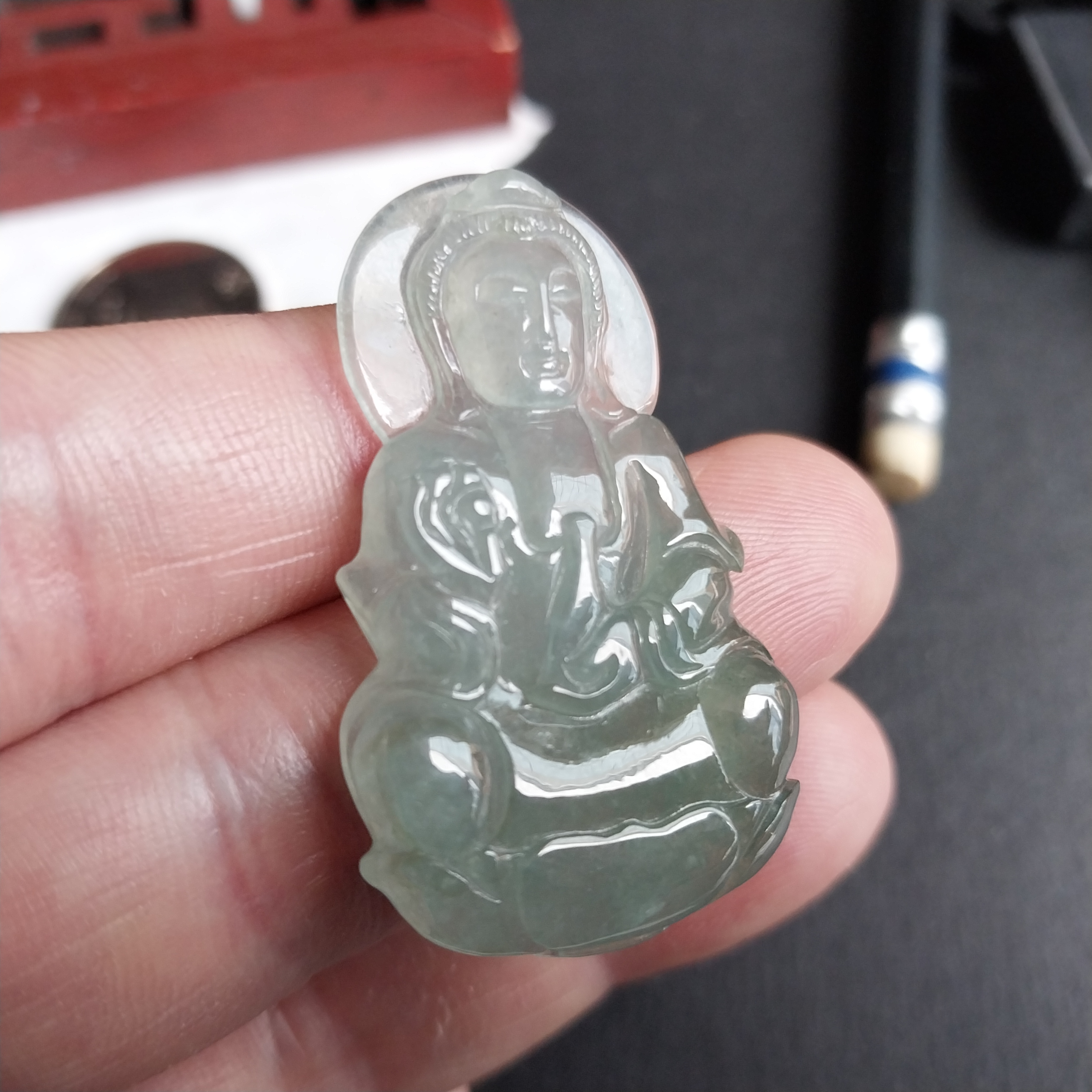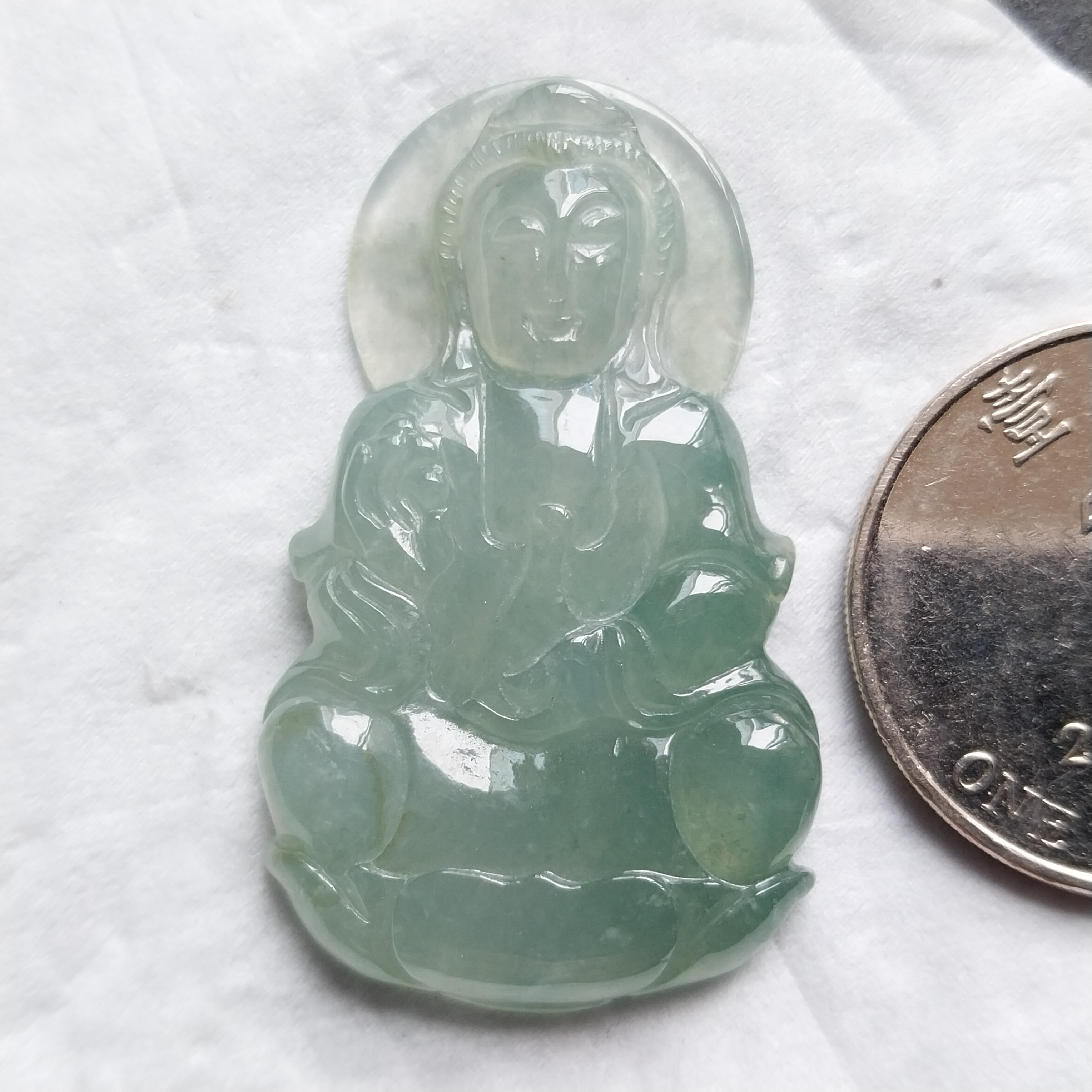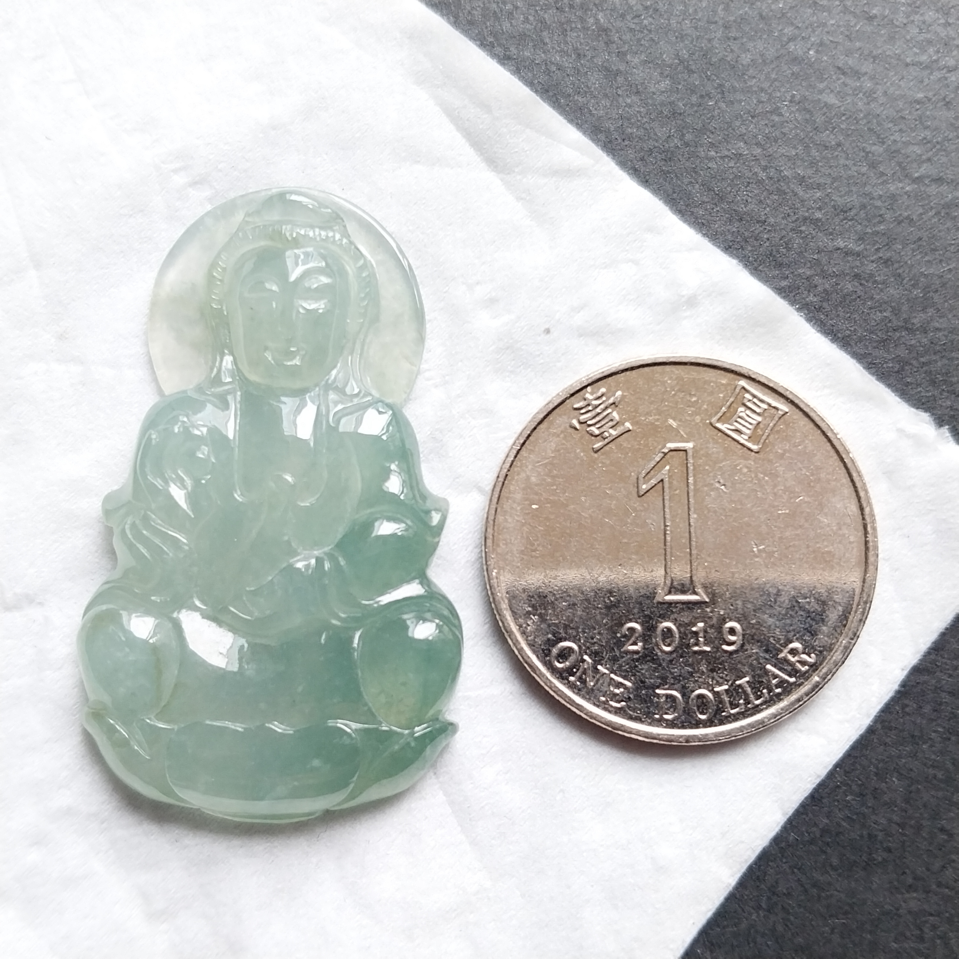 • 冰綠坐蓮觀音吊墜, 天然翡翠A玉, 緬甸玉, Jade, Jadeite