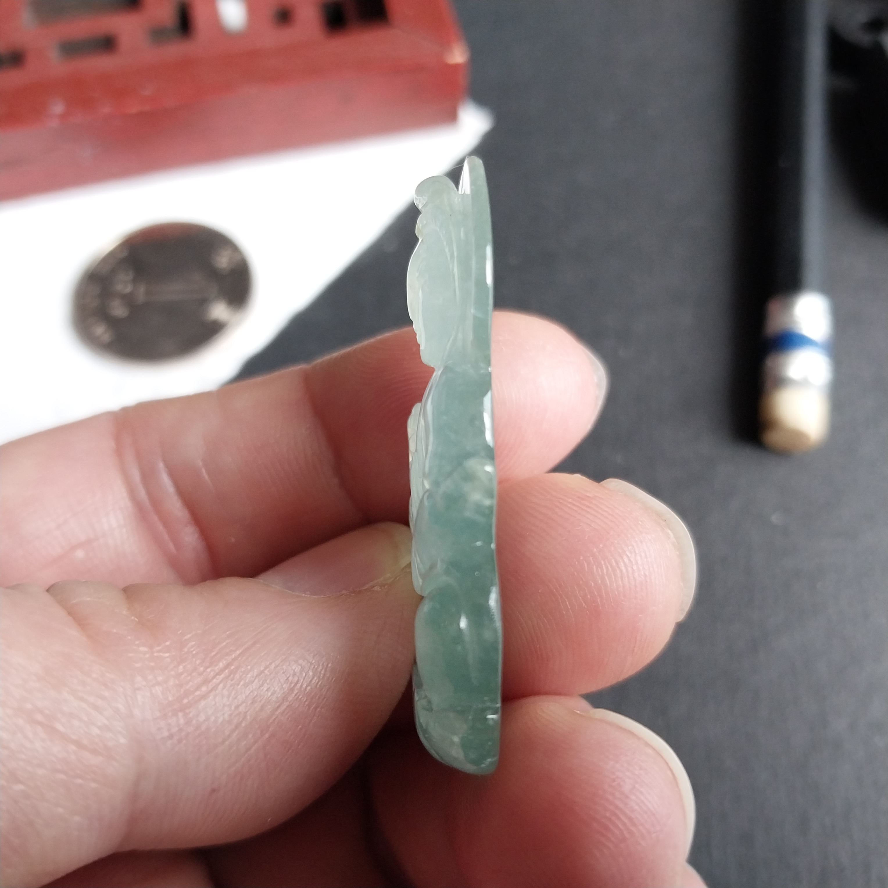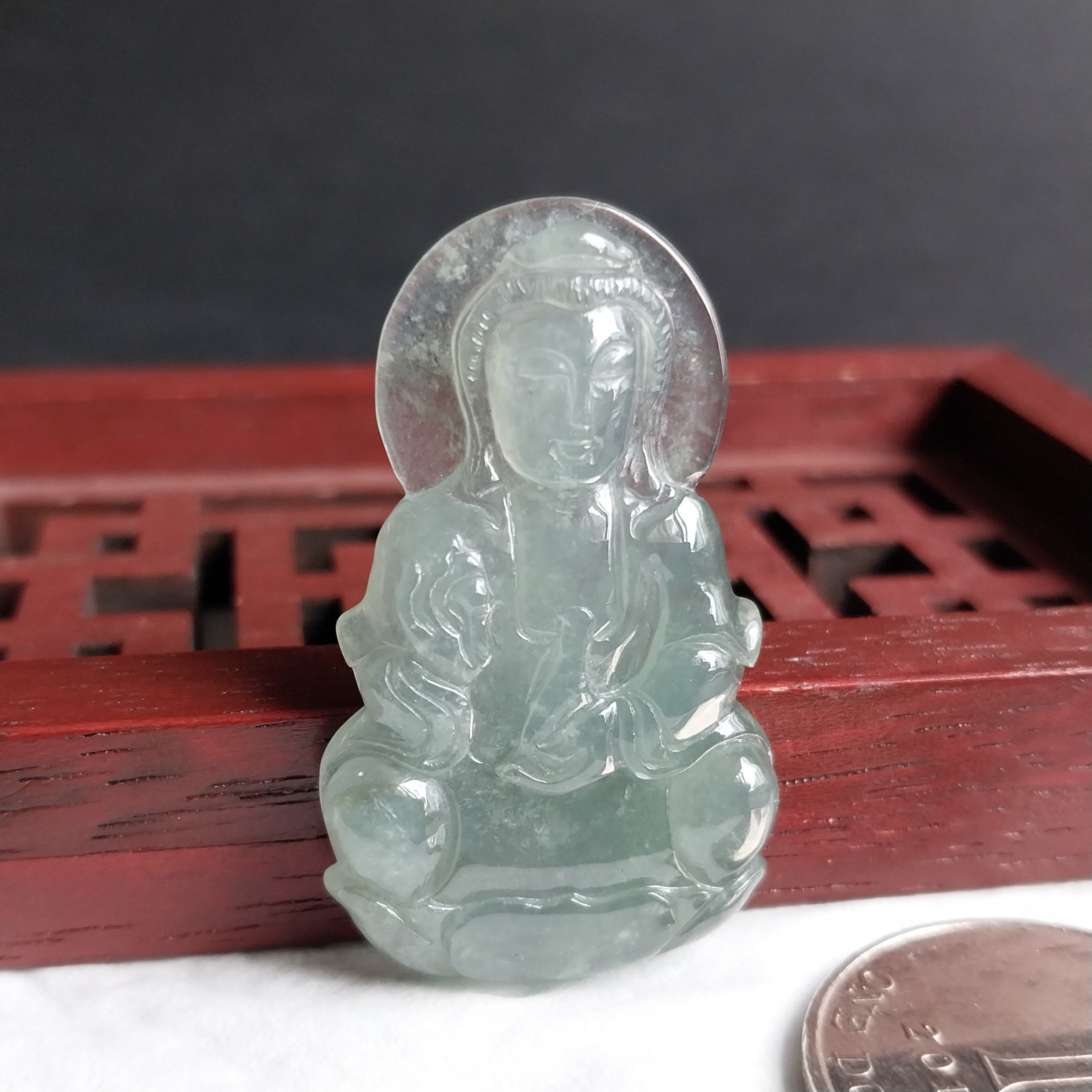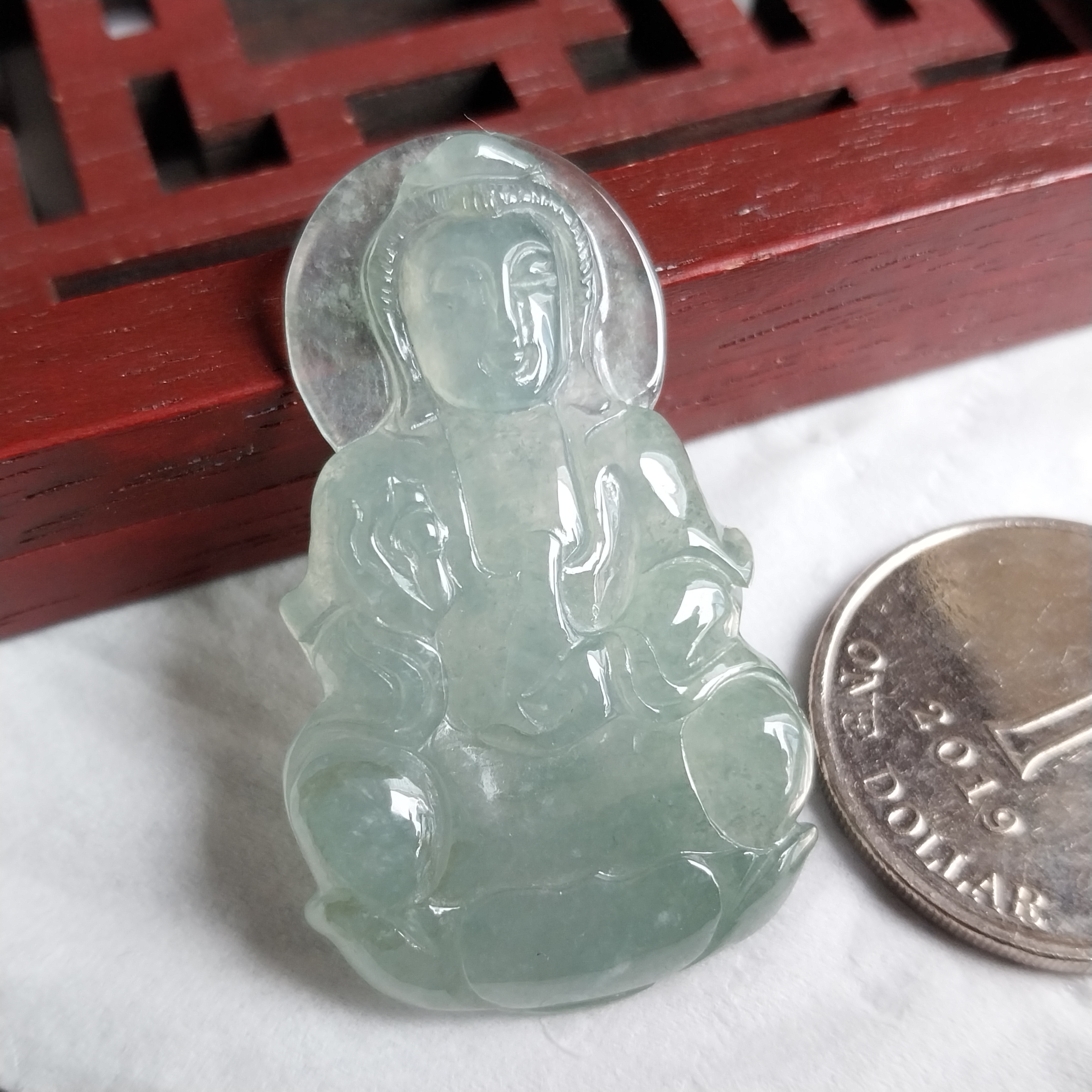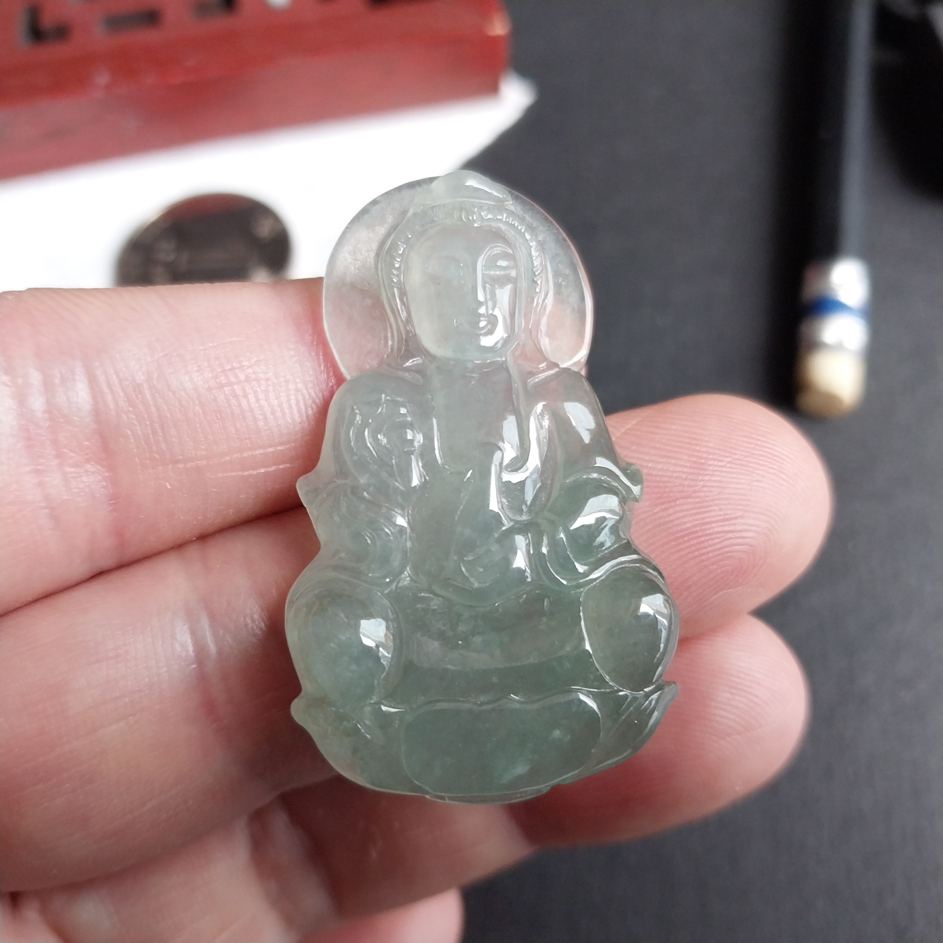 • 冰綠坐蓮觀音吊墜, 天然翡翠A玉, 緬甸玉, Jade, Jadeite