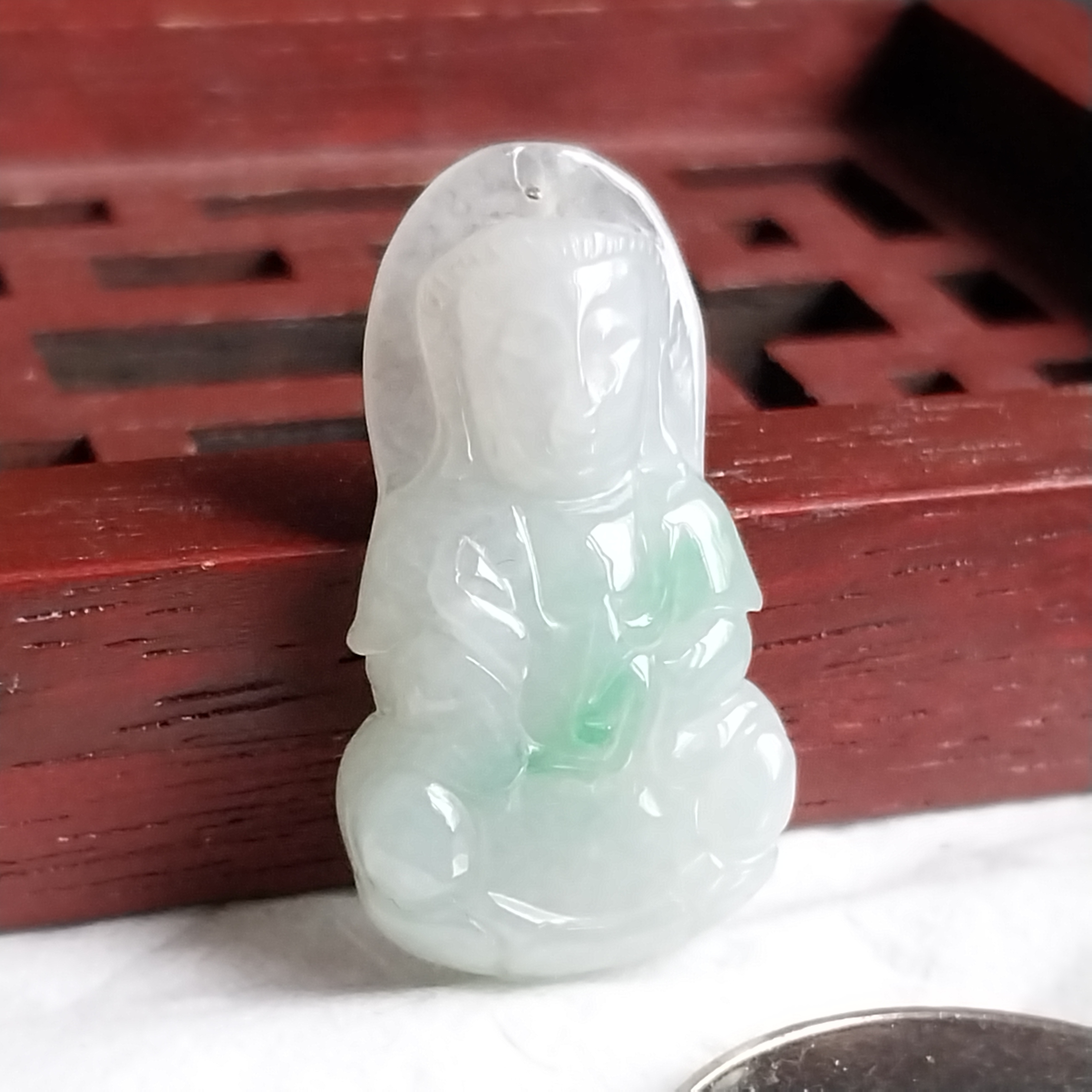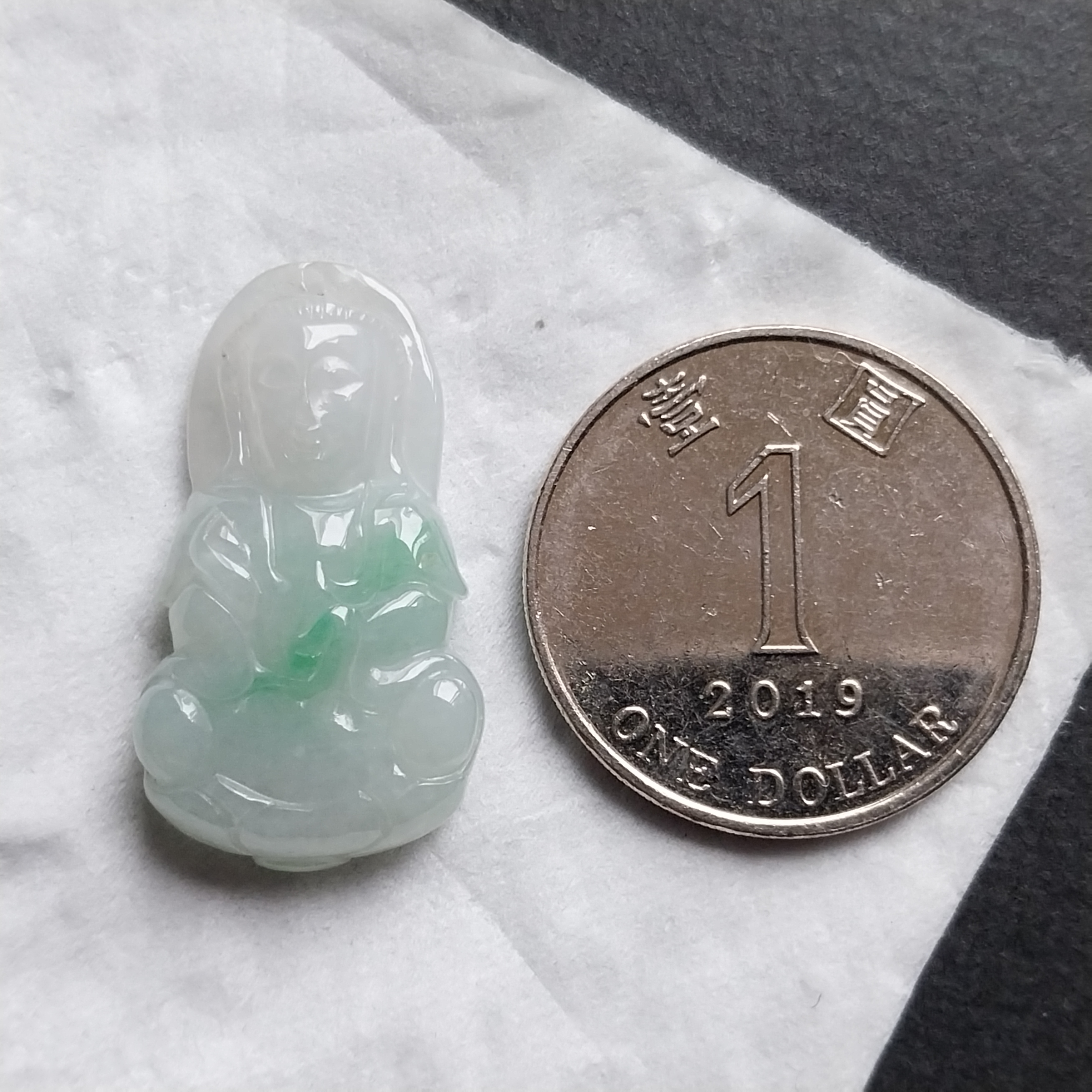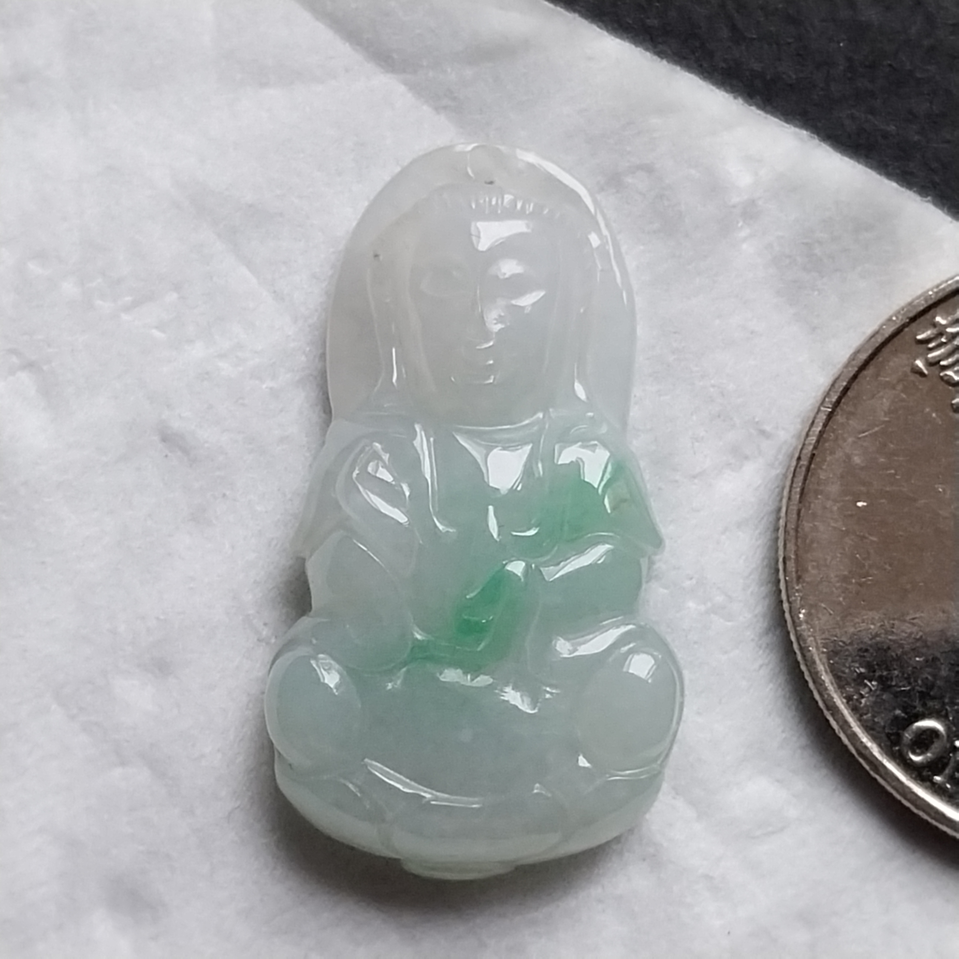 • 冰飄綠迷你蓮觀音吊墜, 天然翡翠A玉, 緬甸玉, Jade, Jadeite