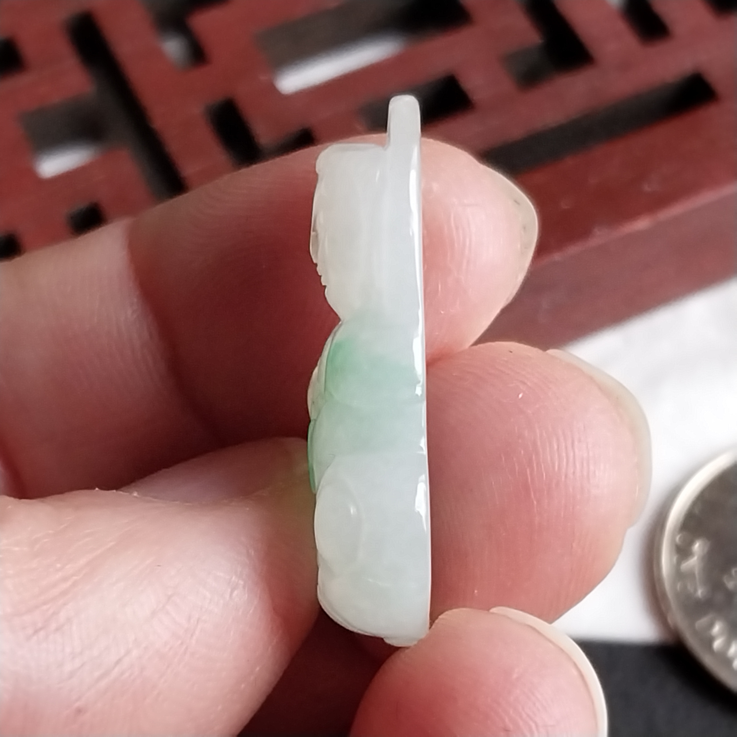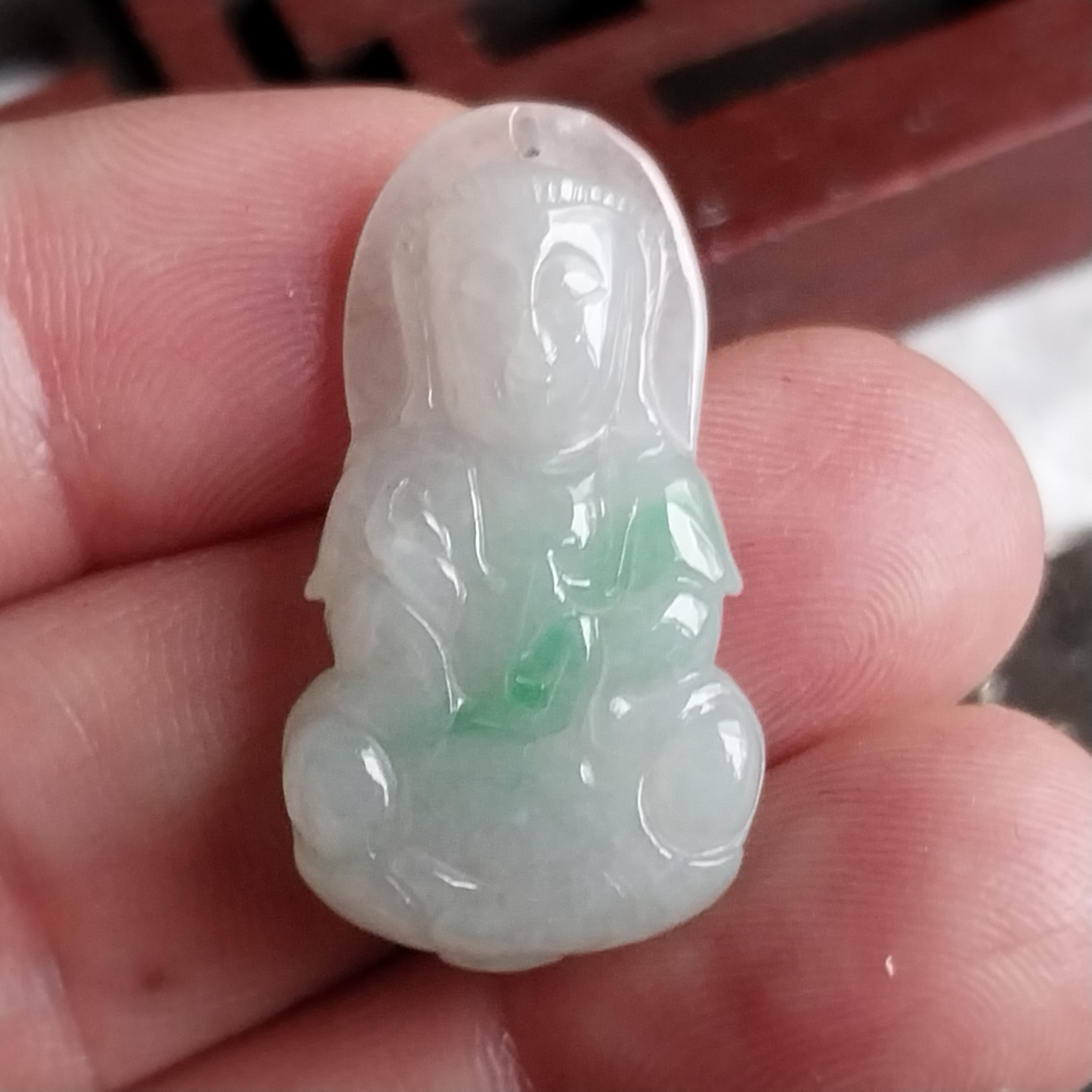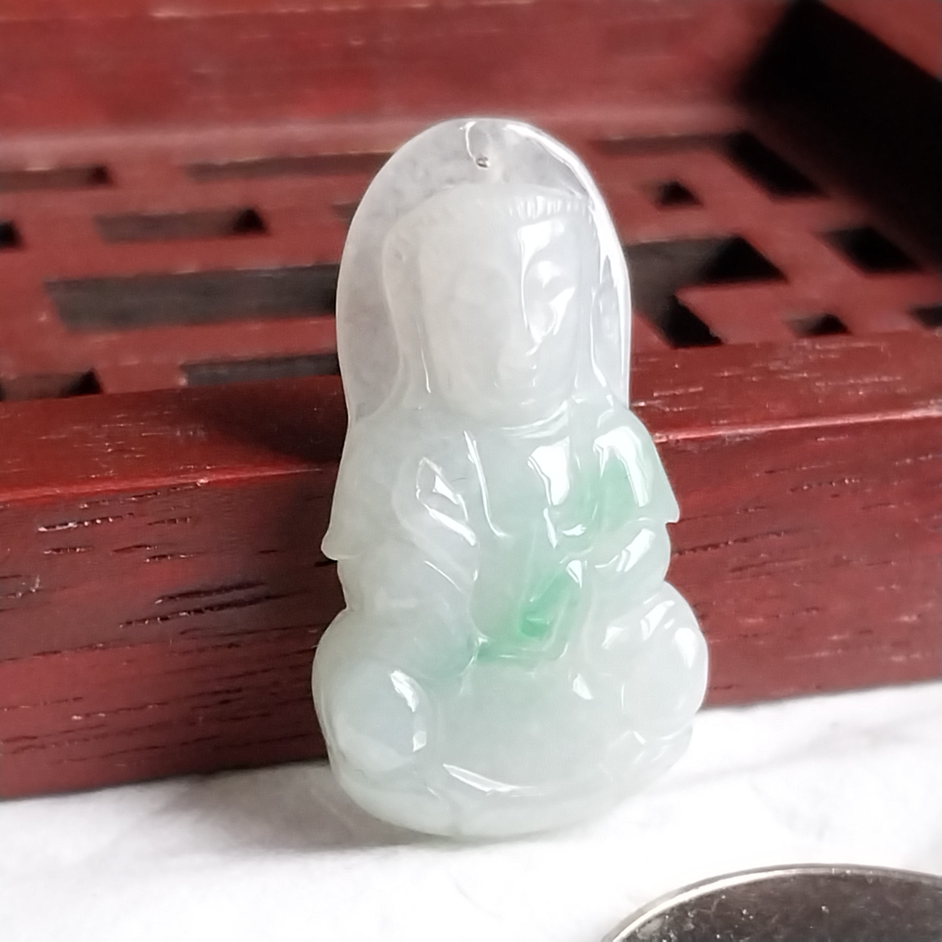 • 冰飄綠迷你蓮觀音吊墜, 天然翡翠A玉, 緬甸玉, Jade, Jadeite