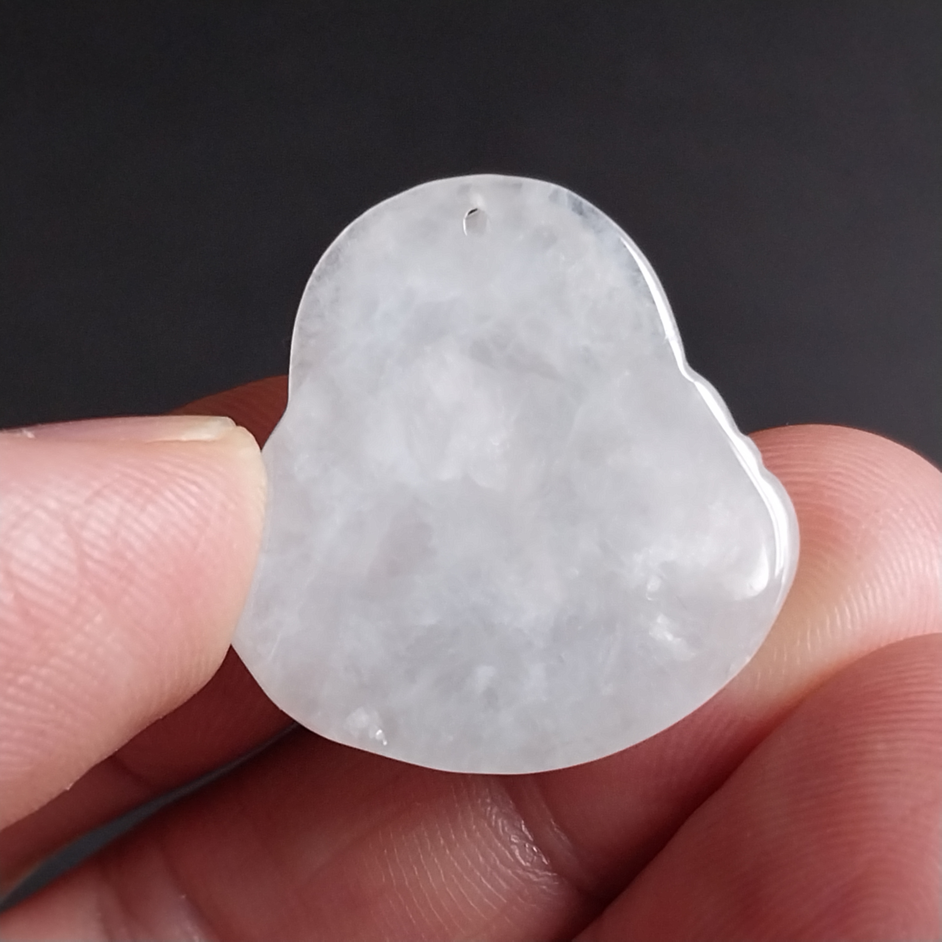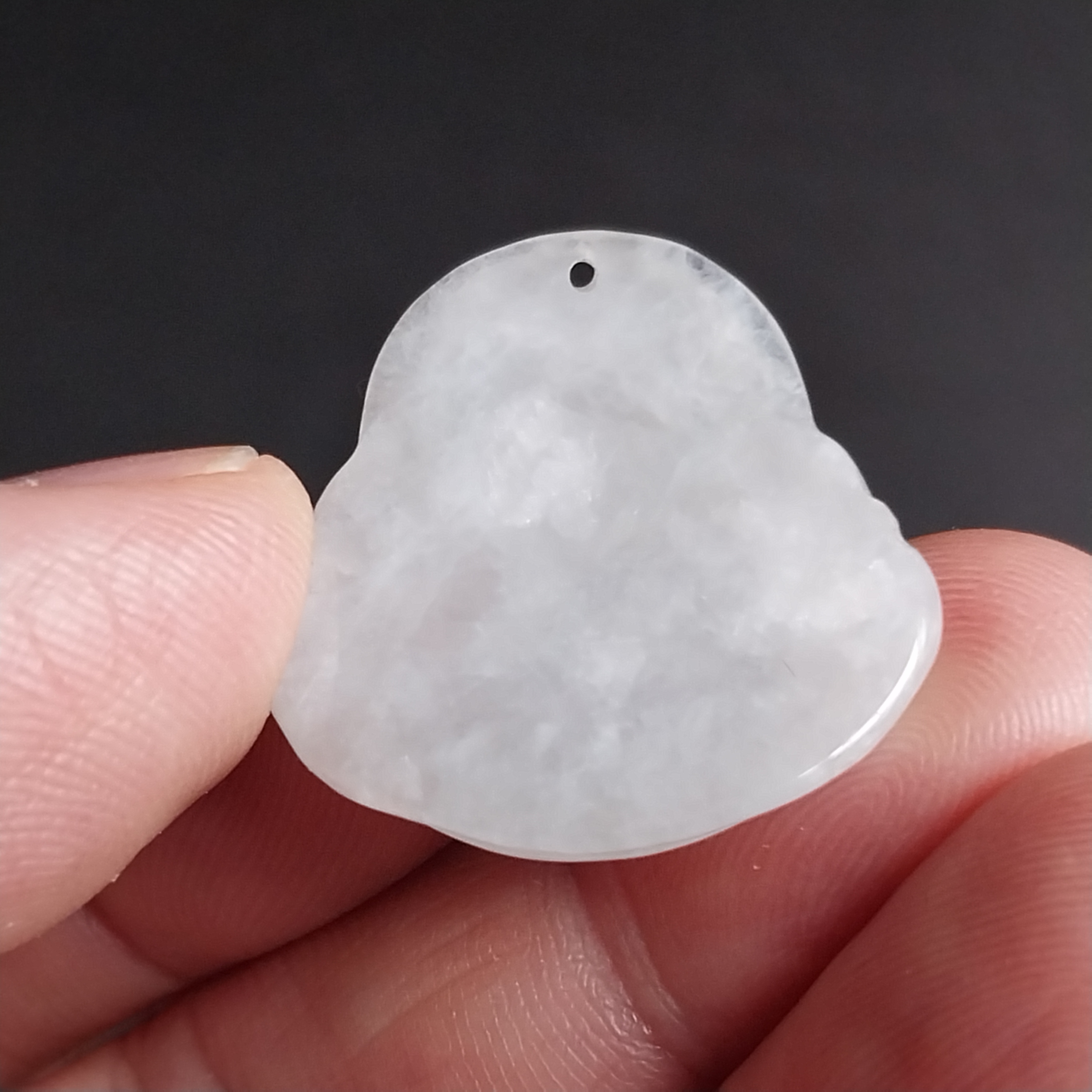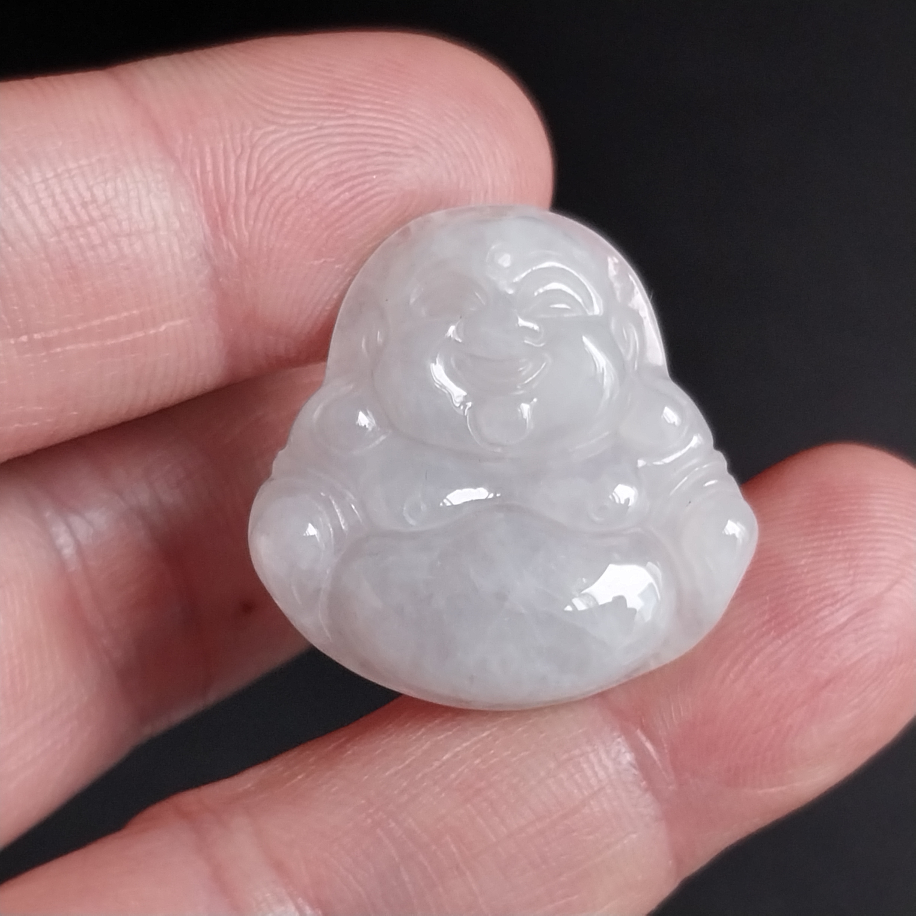 • 冰糯白小笑佛吊墜, 天然翡翠A玉, 緬甸玉, Jade, Jadeite