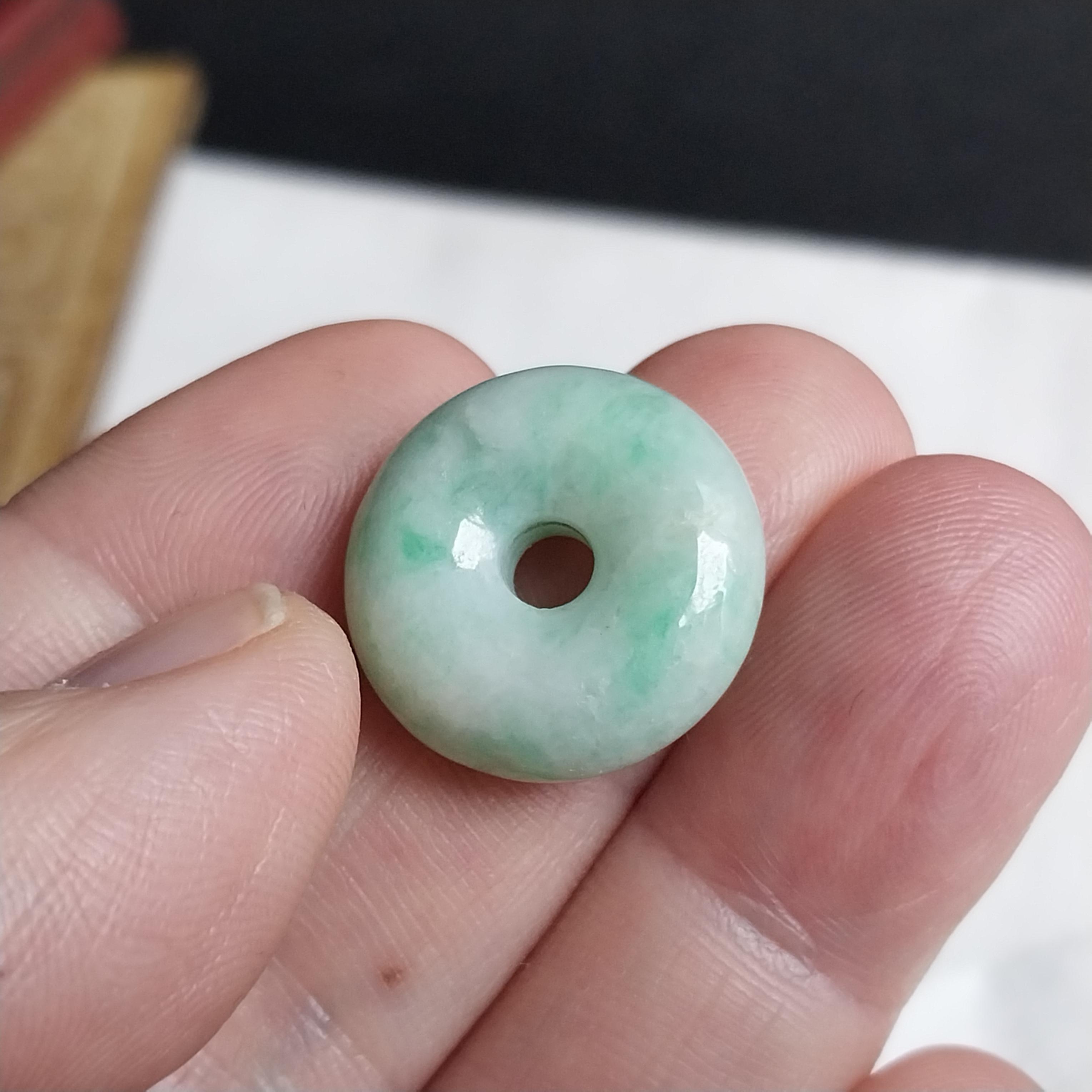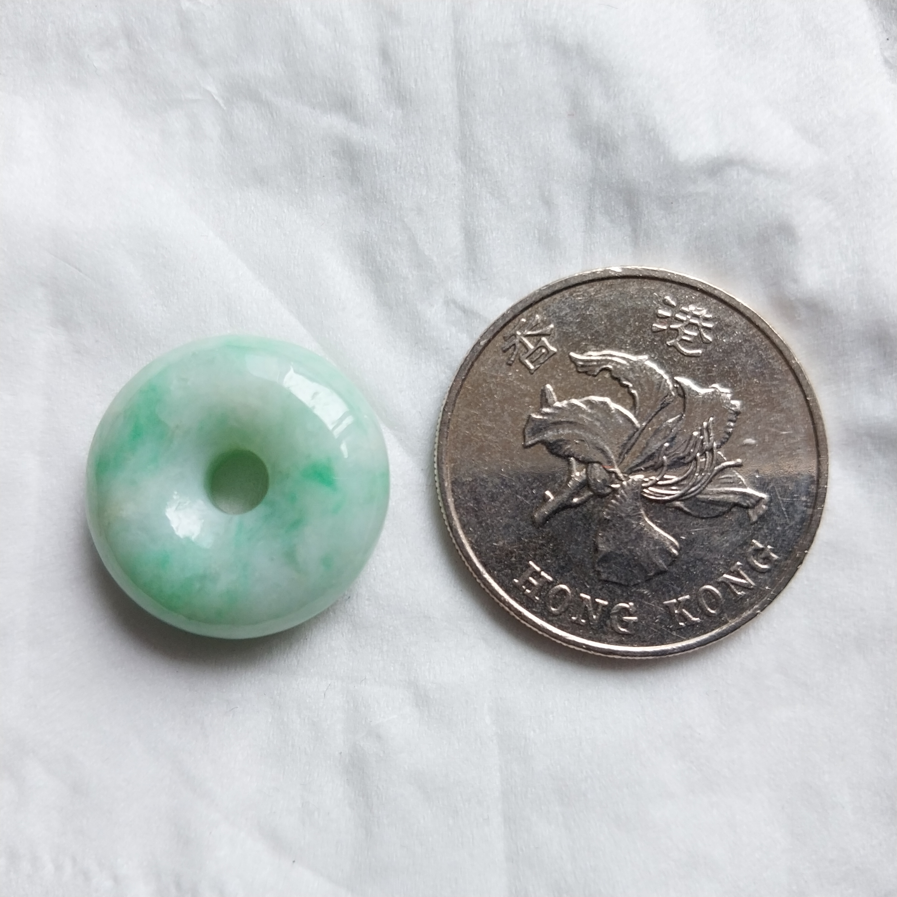 • 冰糯小平安扣 (19mm直徑), 天然翡翠A玉, 緬甸玉, Jade, Jadeite