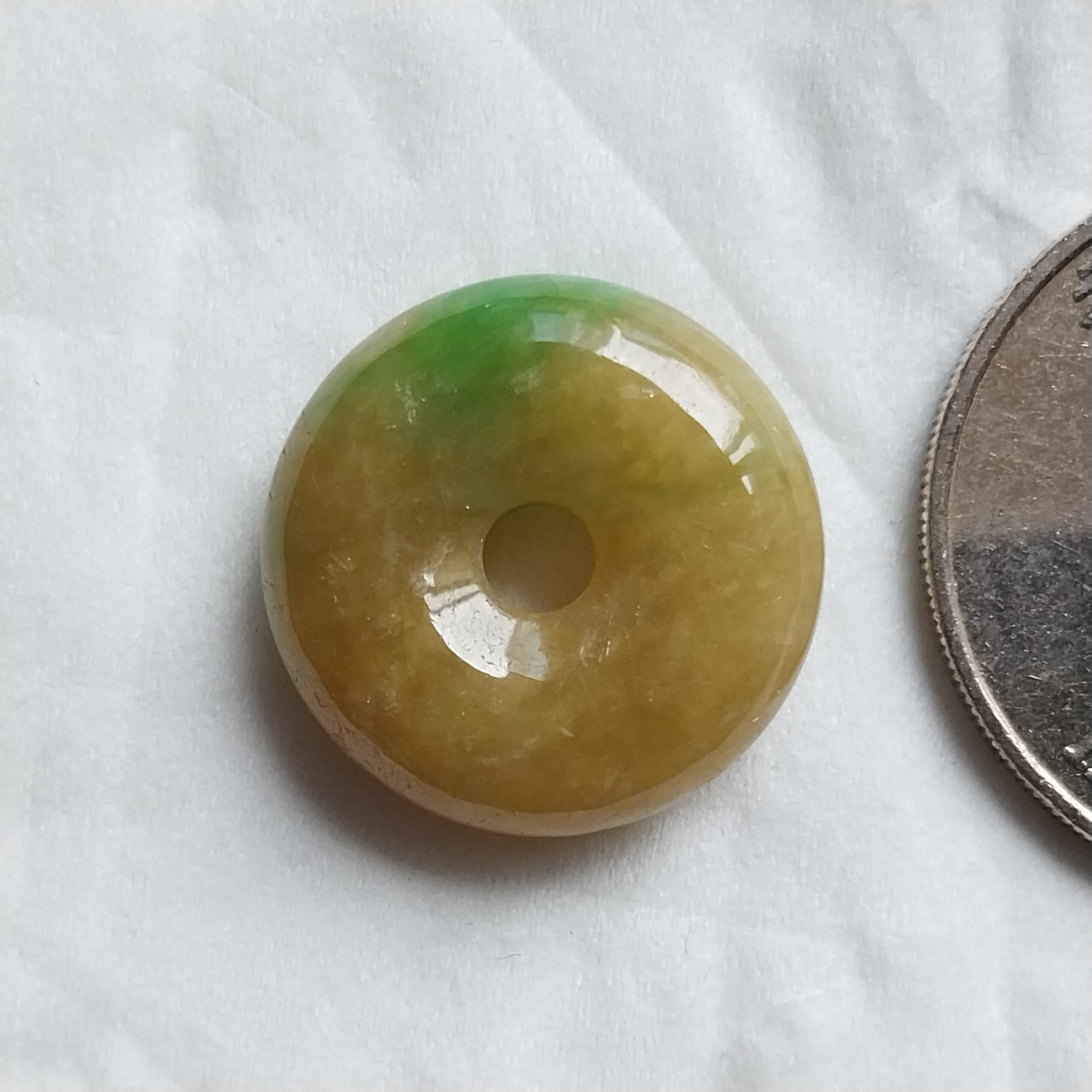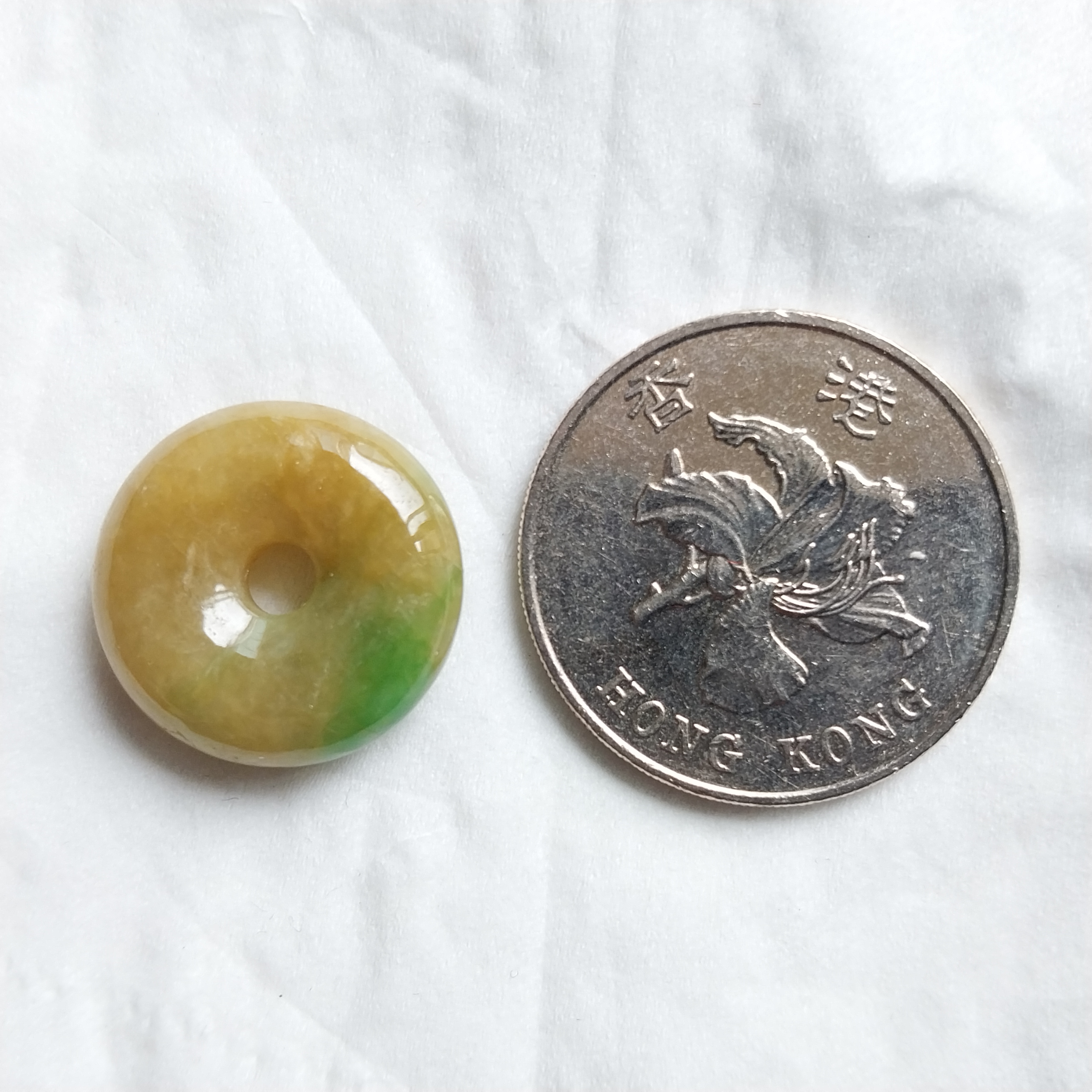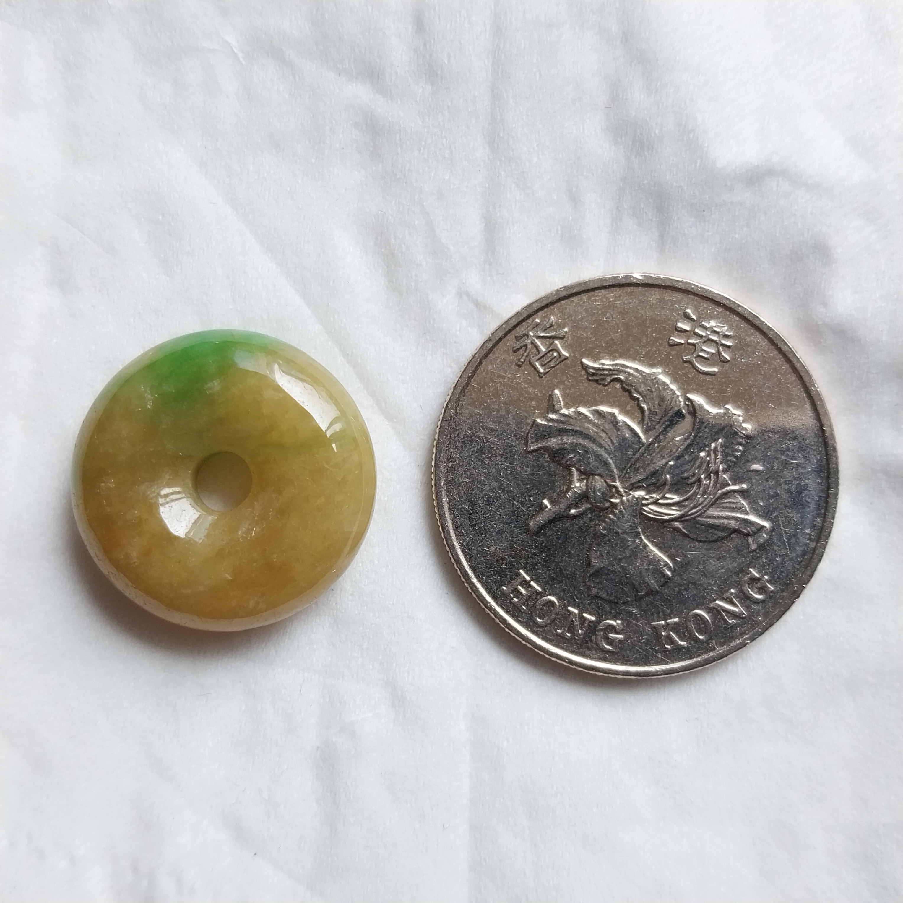 • 冰糯黃翡飄綠小平安扣 (18.5mm直徑), 天然翡翠A玉, 緬甸玉, Jade, Jadeite