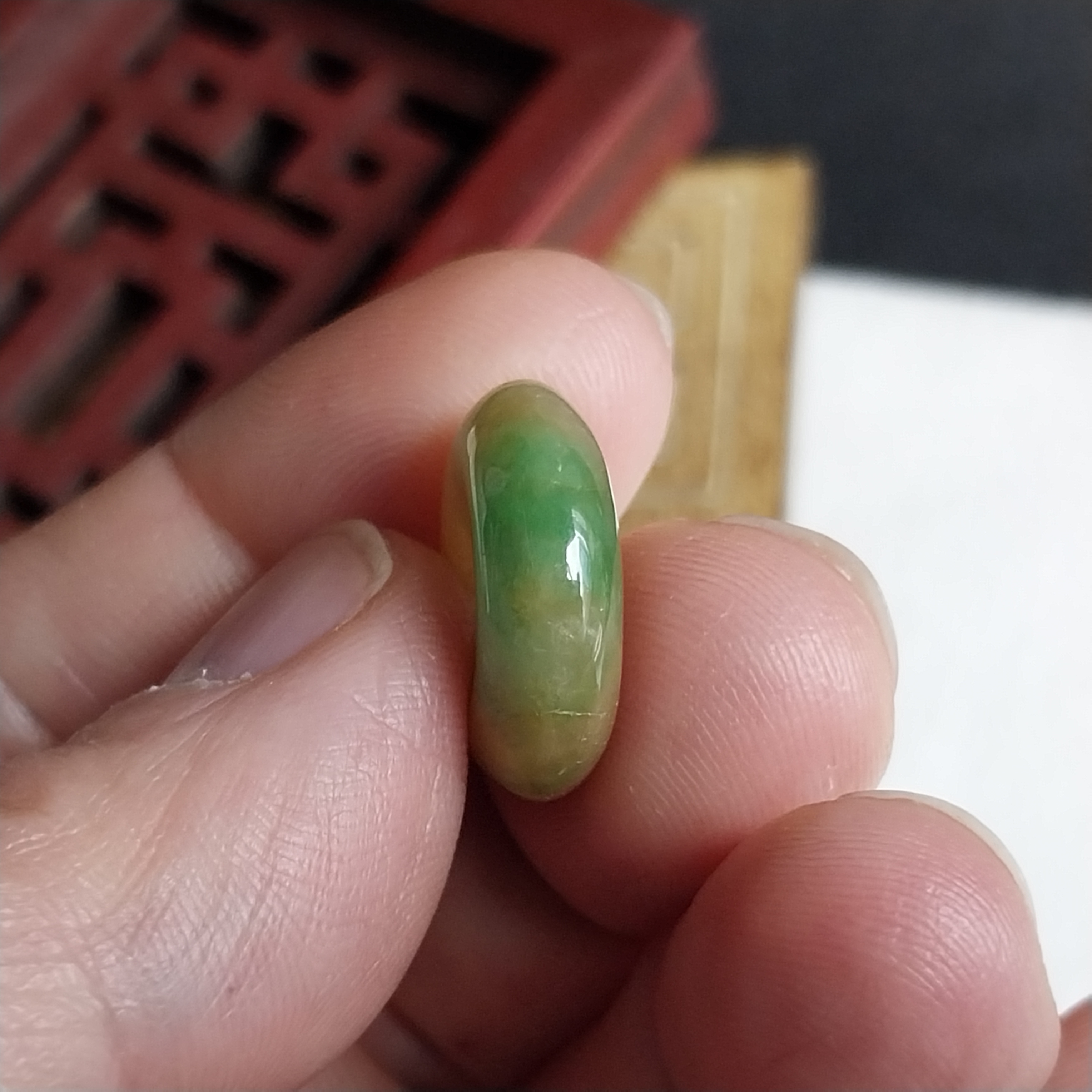 - 天然玉石在不同光線下,會呈現出不同的顏色變化;