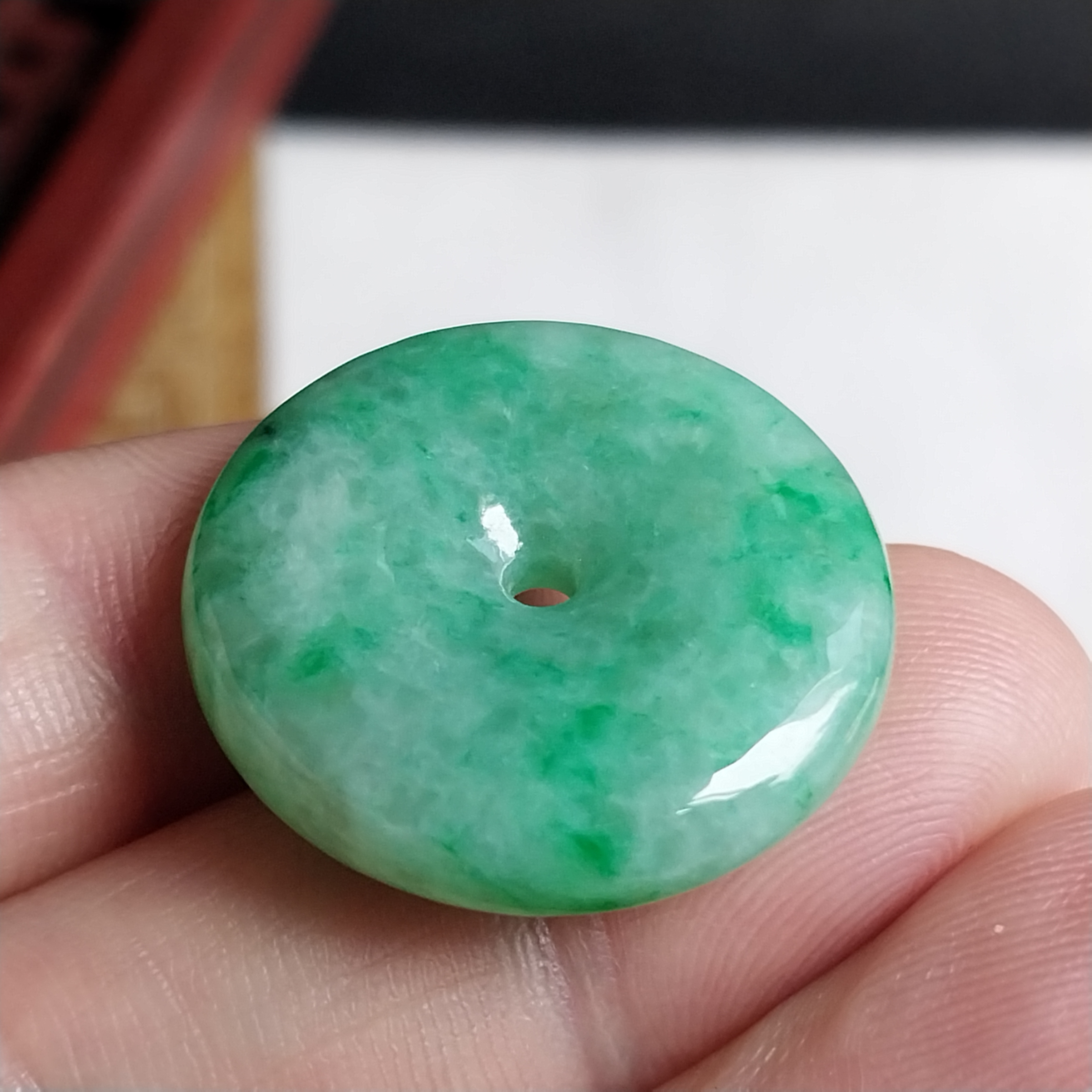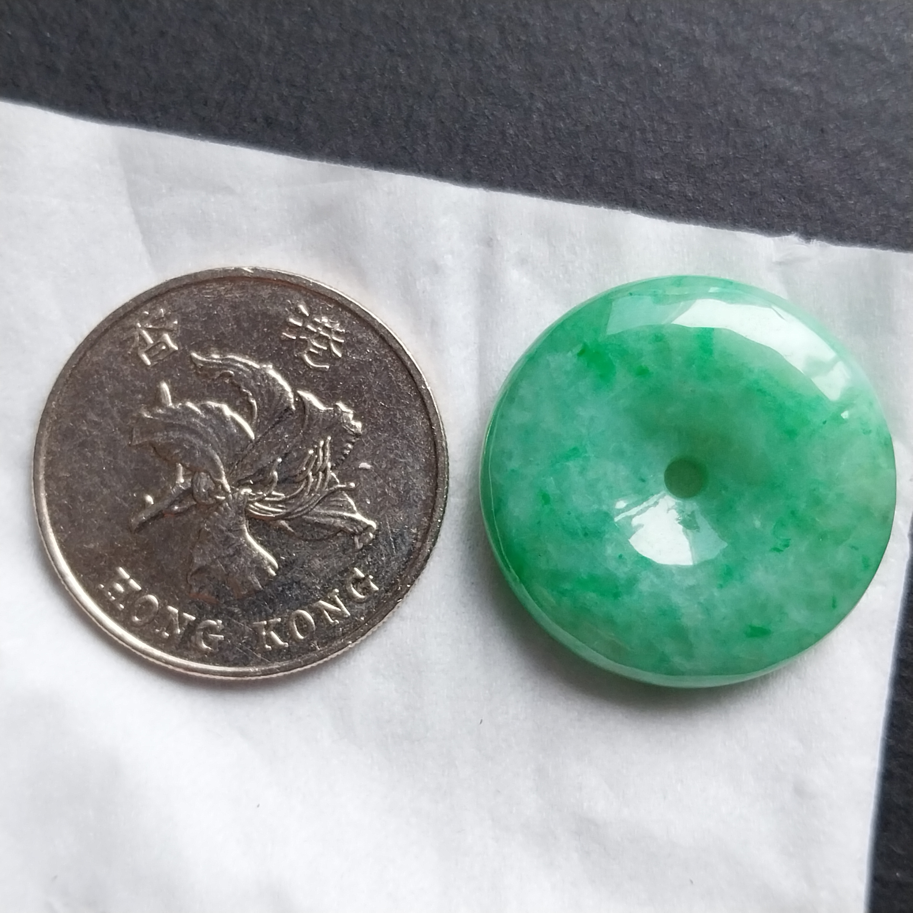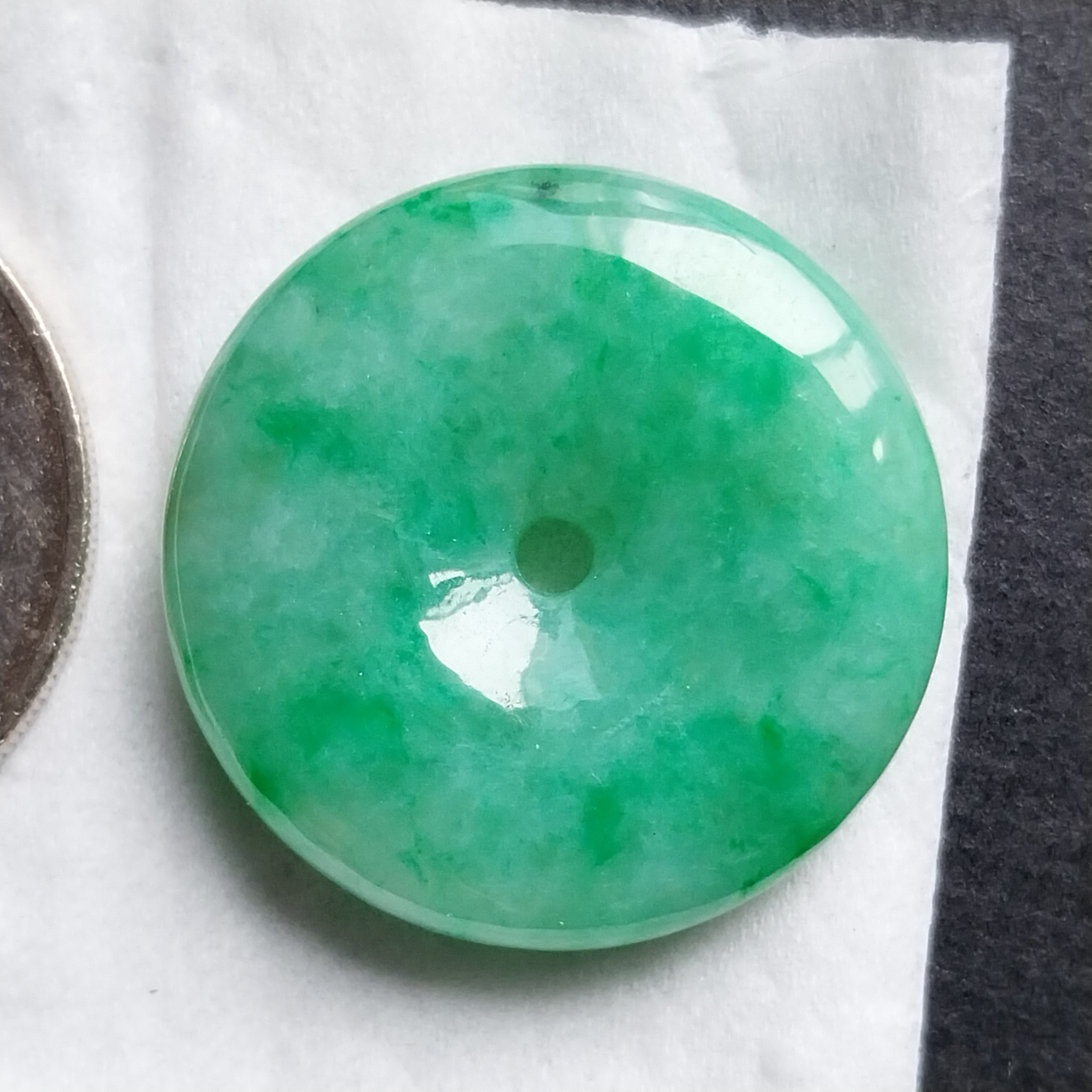 • 冰飄陽綠花平安扣 (24.8mm直徑), 天然翡翠A玉, 緬甸玉, Jade, Jadeite