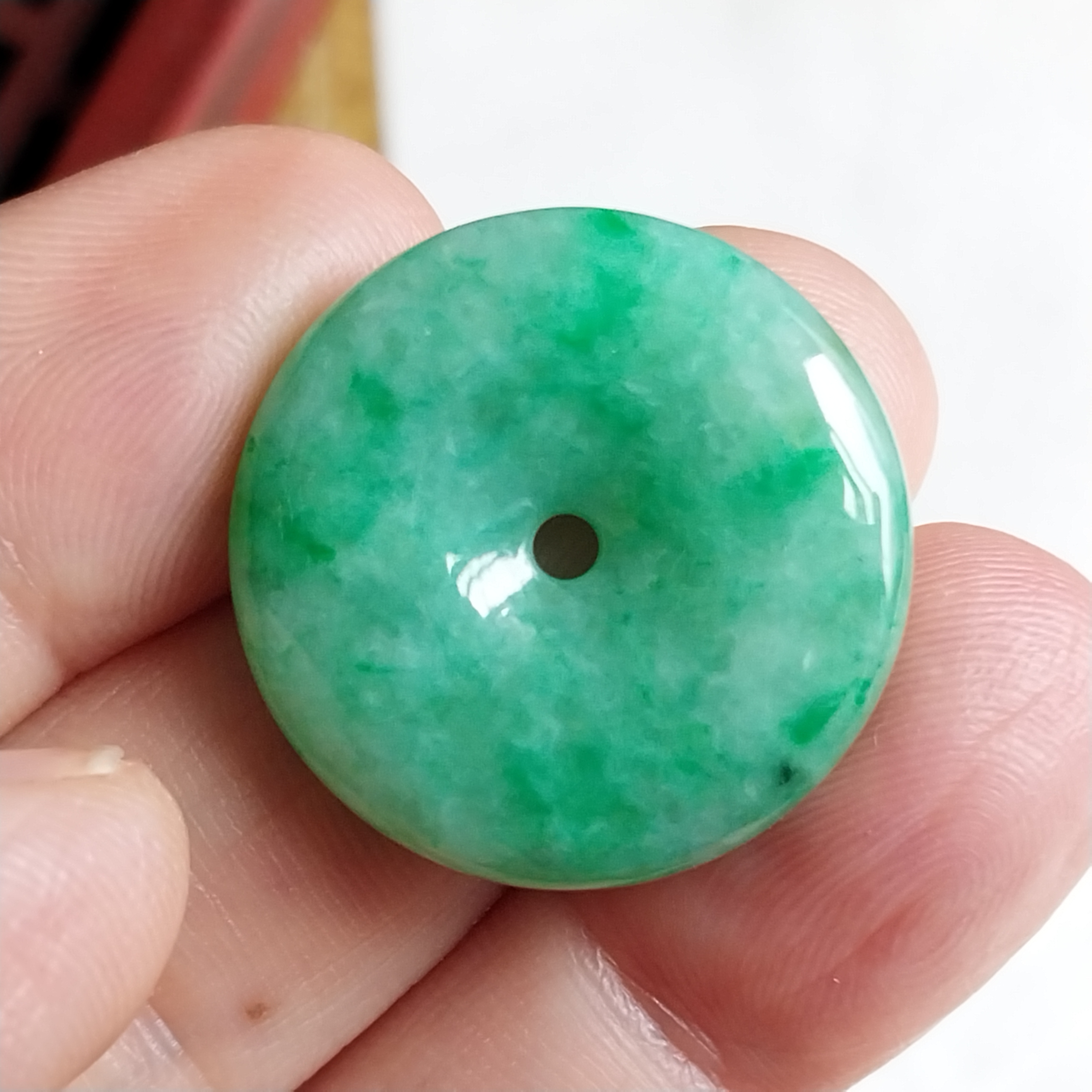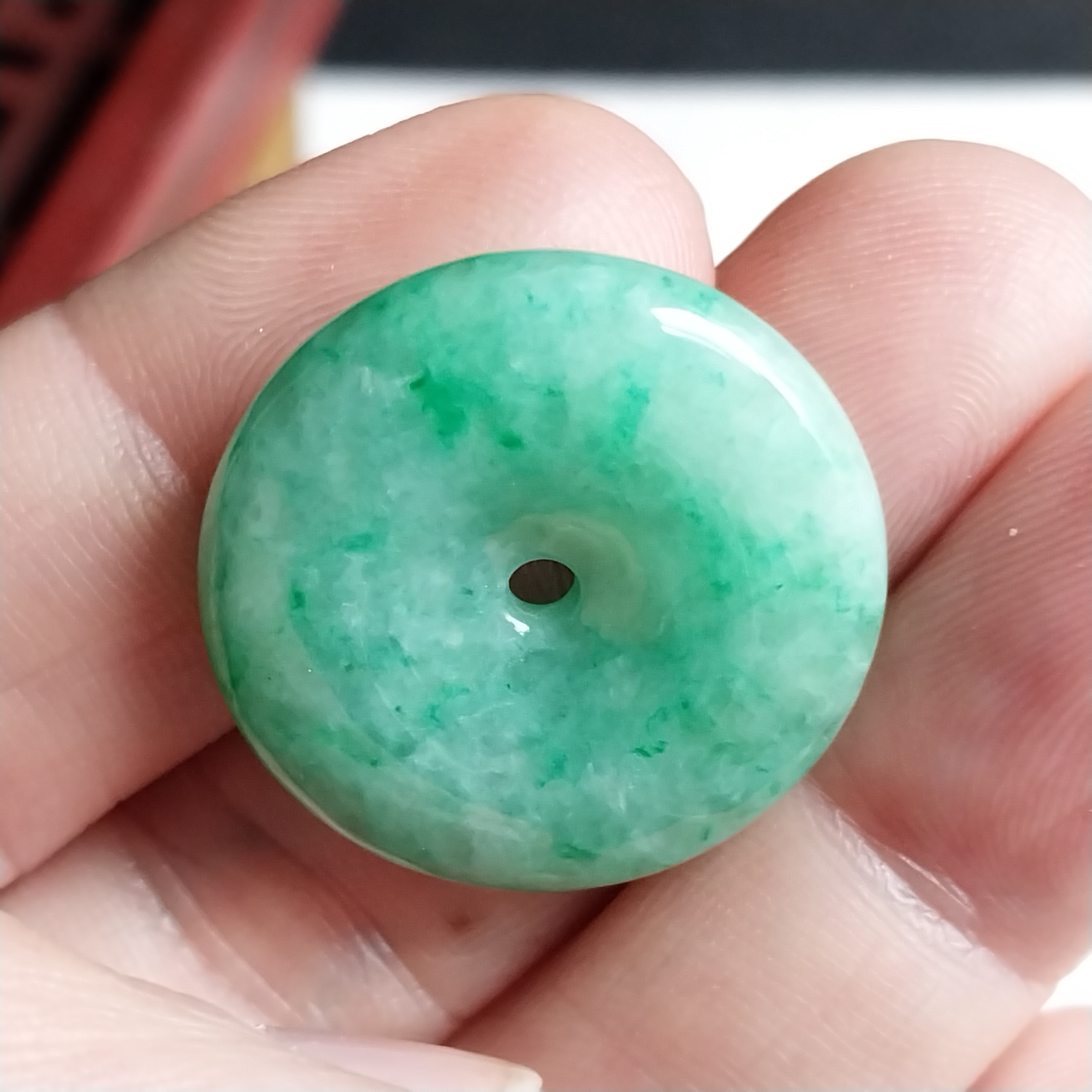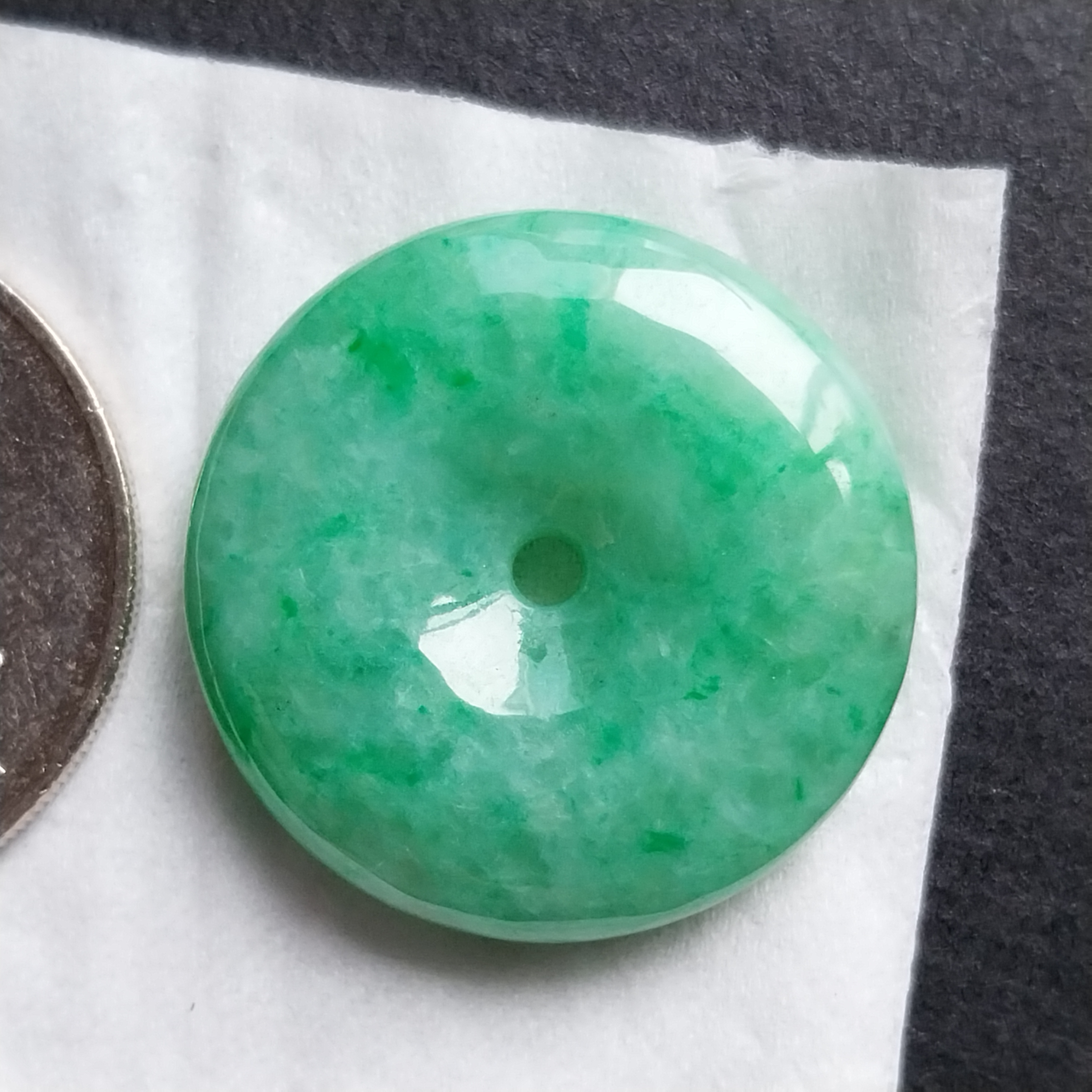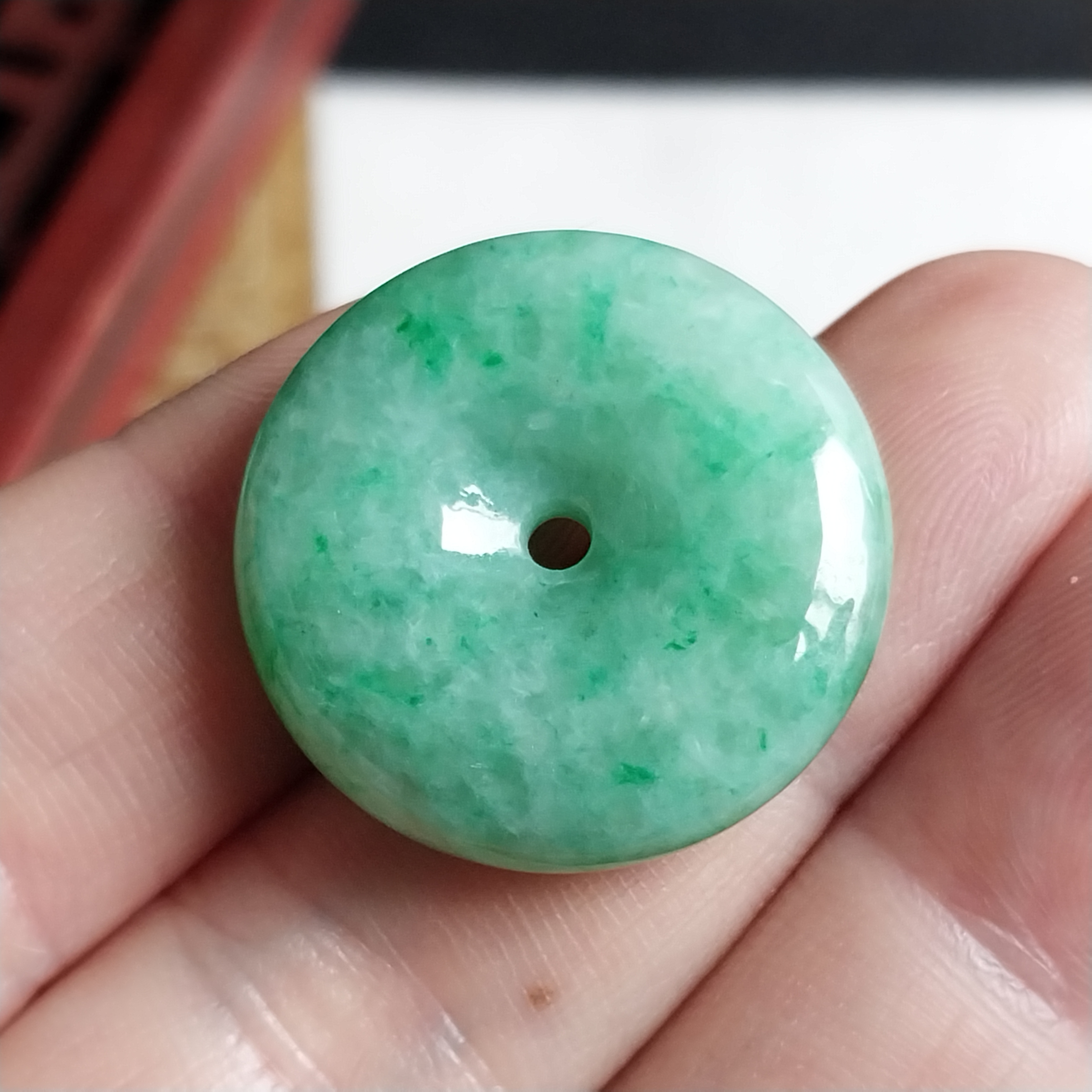 • 冰飄陽綠花平安扣 (24.8mm直徑), 天然翡翠A玉, 緬甸玉, Jade, Jadeite