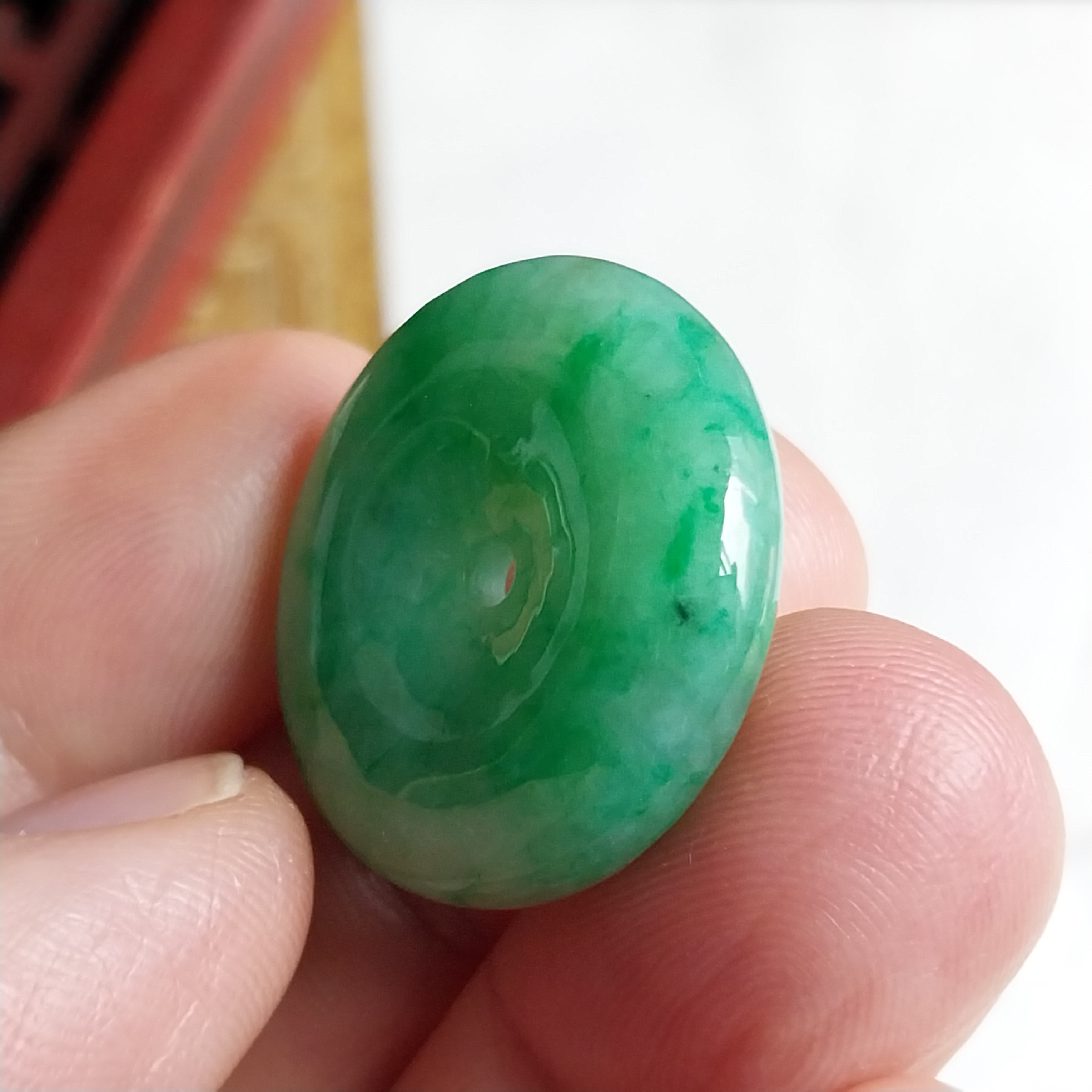 - 天然玉石在不同光線下,會呈現出不同的顏色變化;