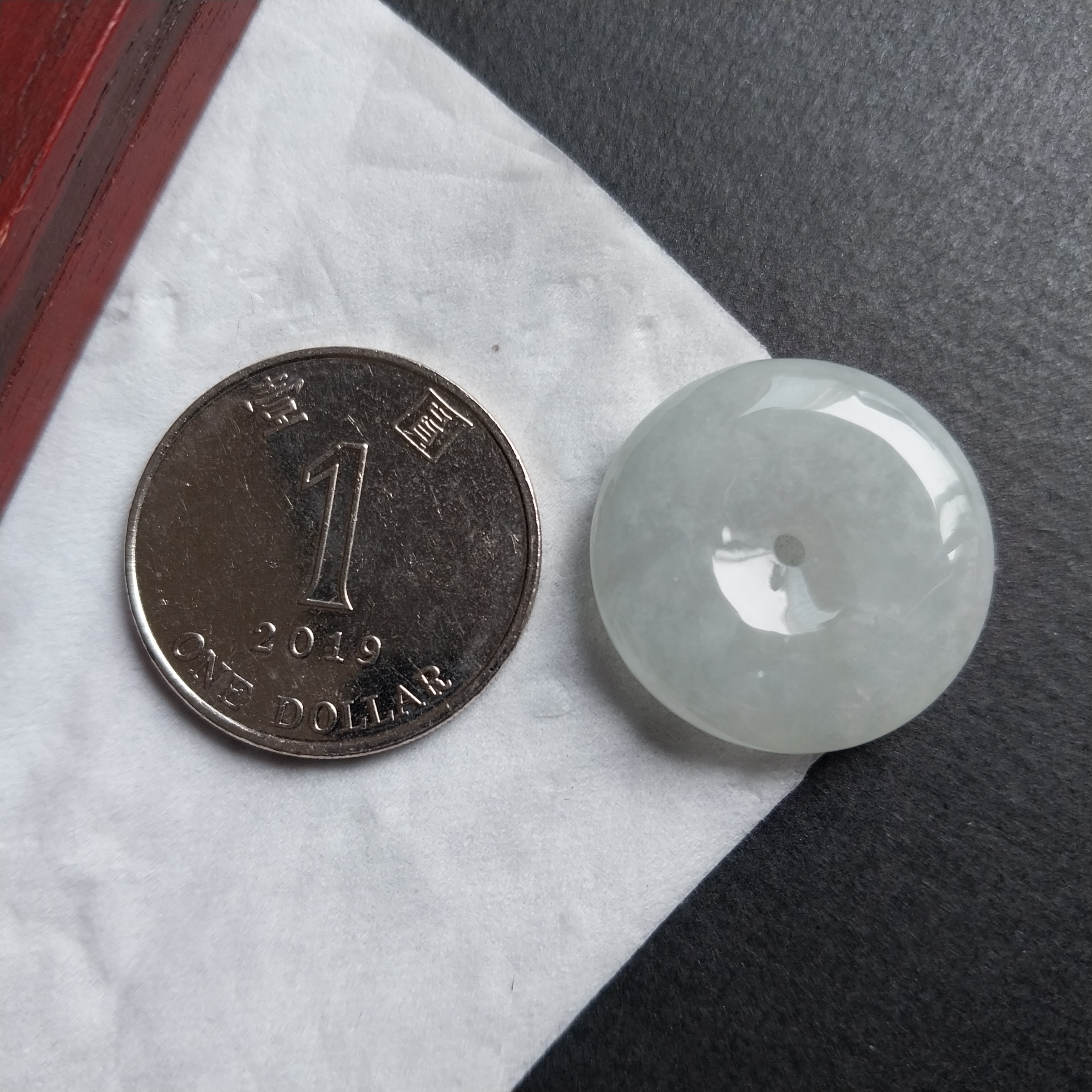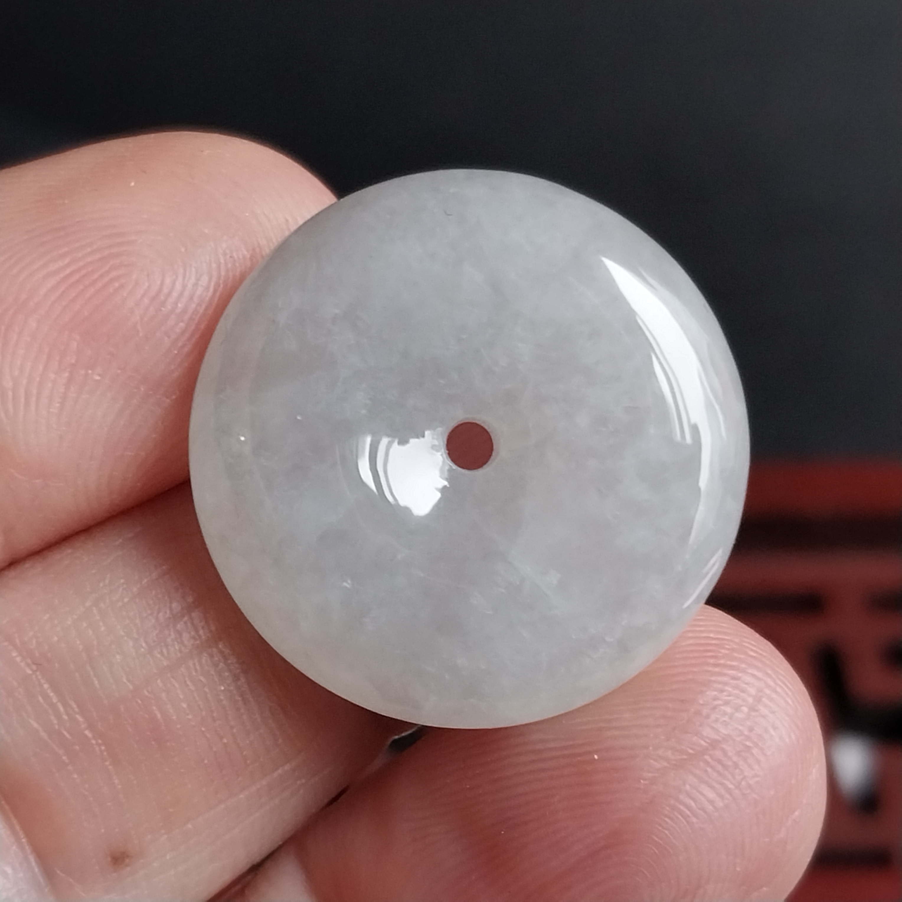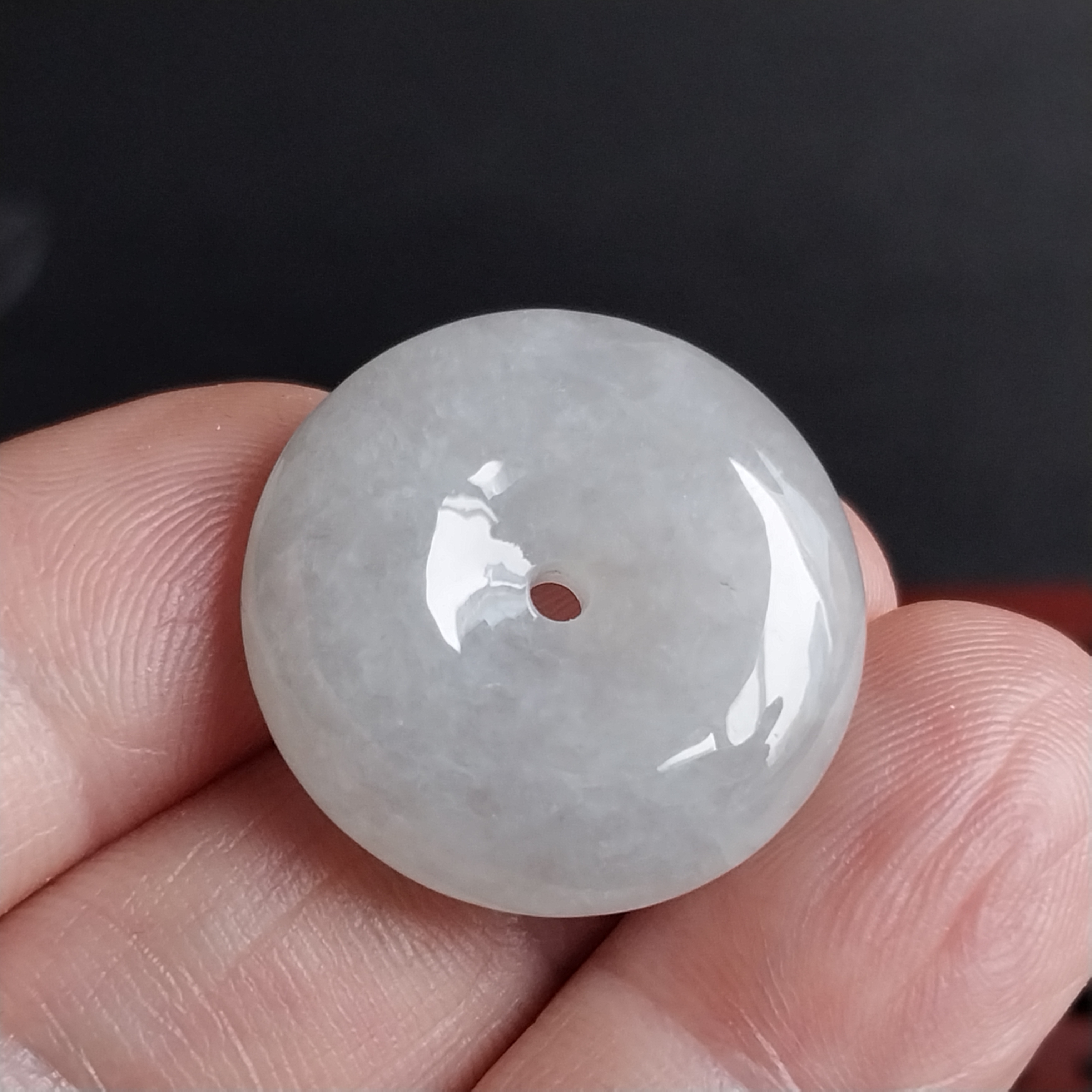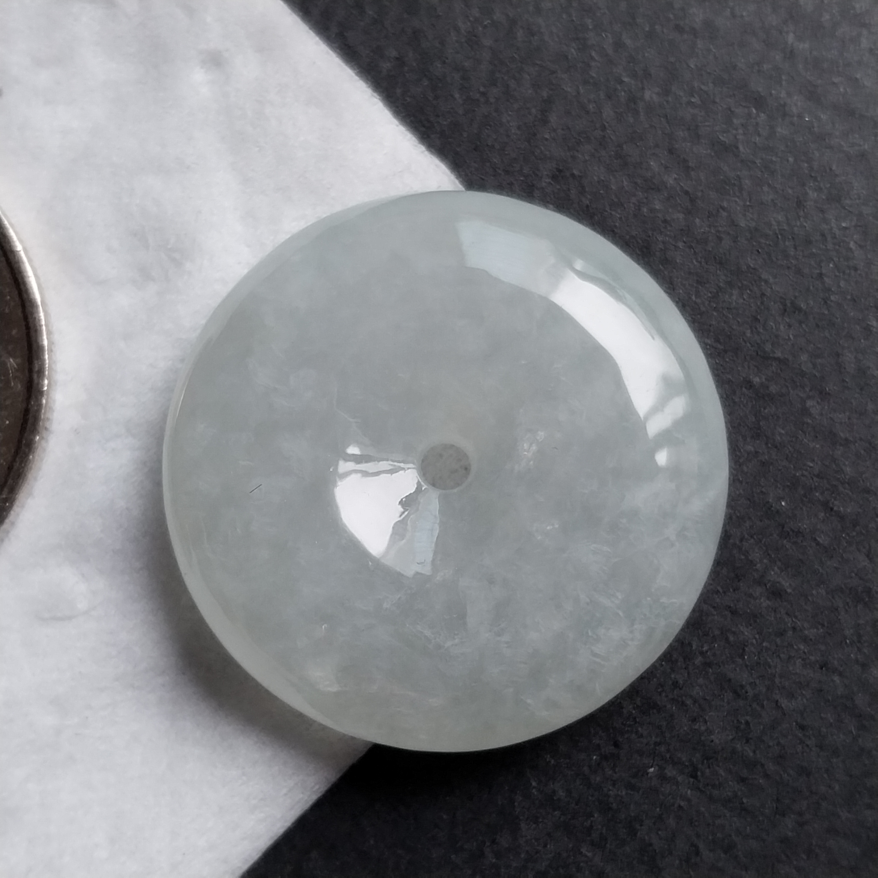 • 冰白平安扣 (23.4mm直徑), 天然翡翠A玉, 緬甸玉, Jade, Jadeite