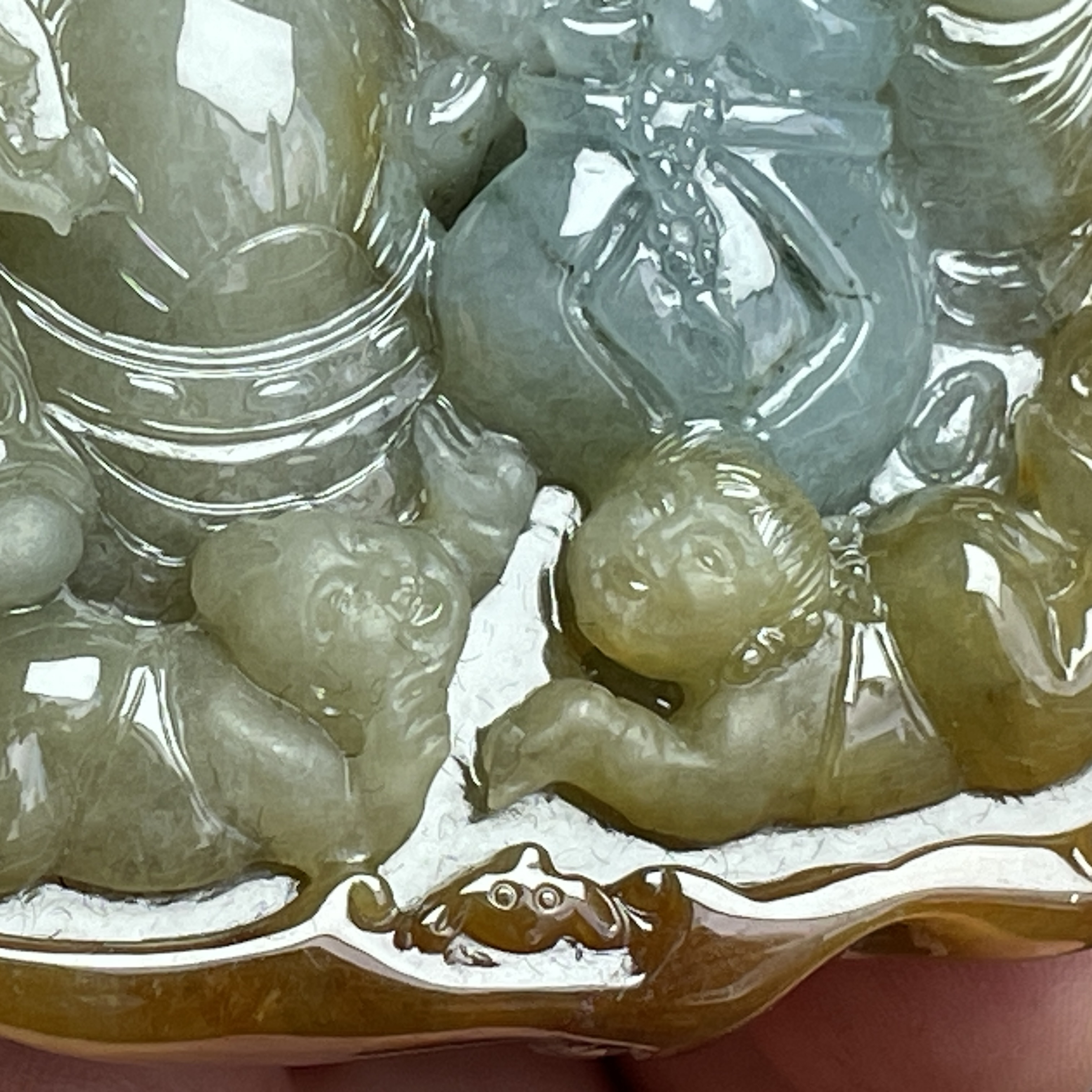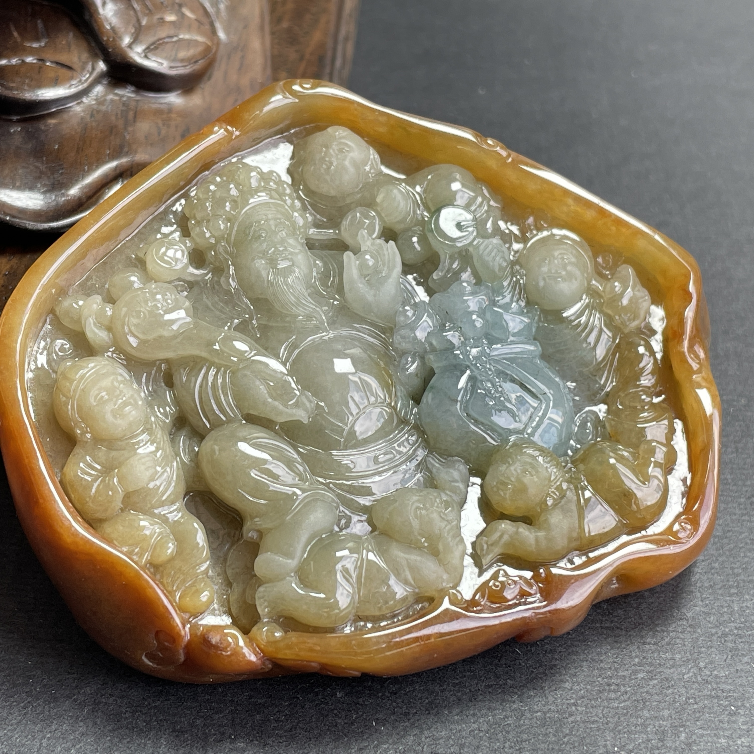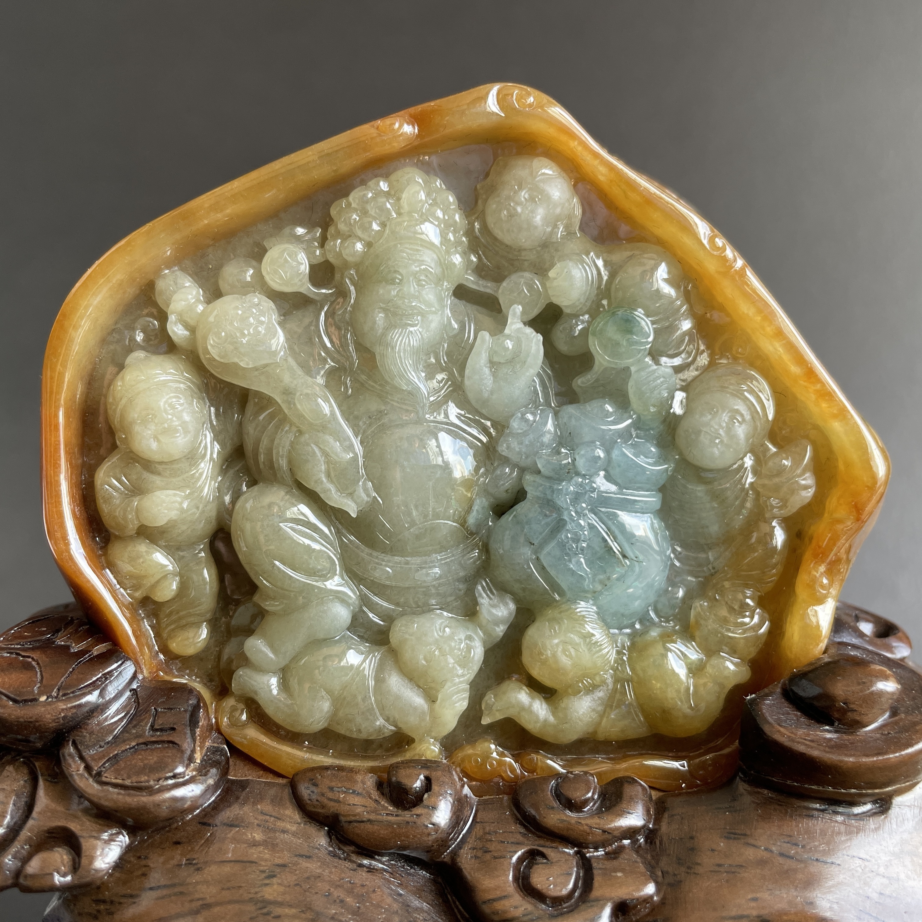 • 五子登科龍托印擺件,天然翡翠A玉, 緬甸玉, Jade, Jadeite