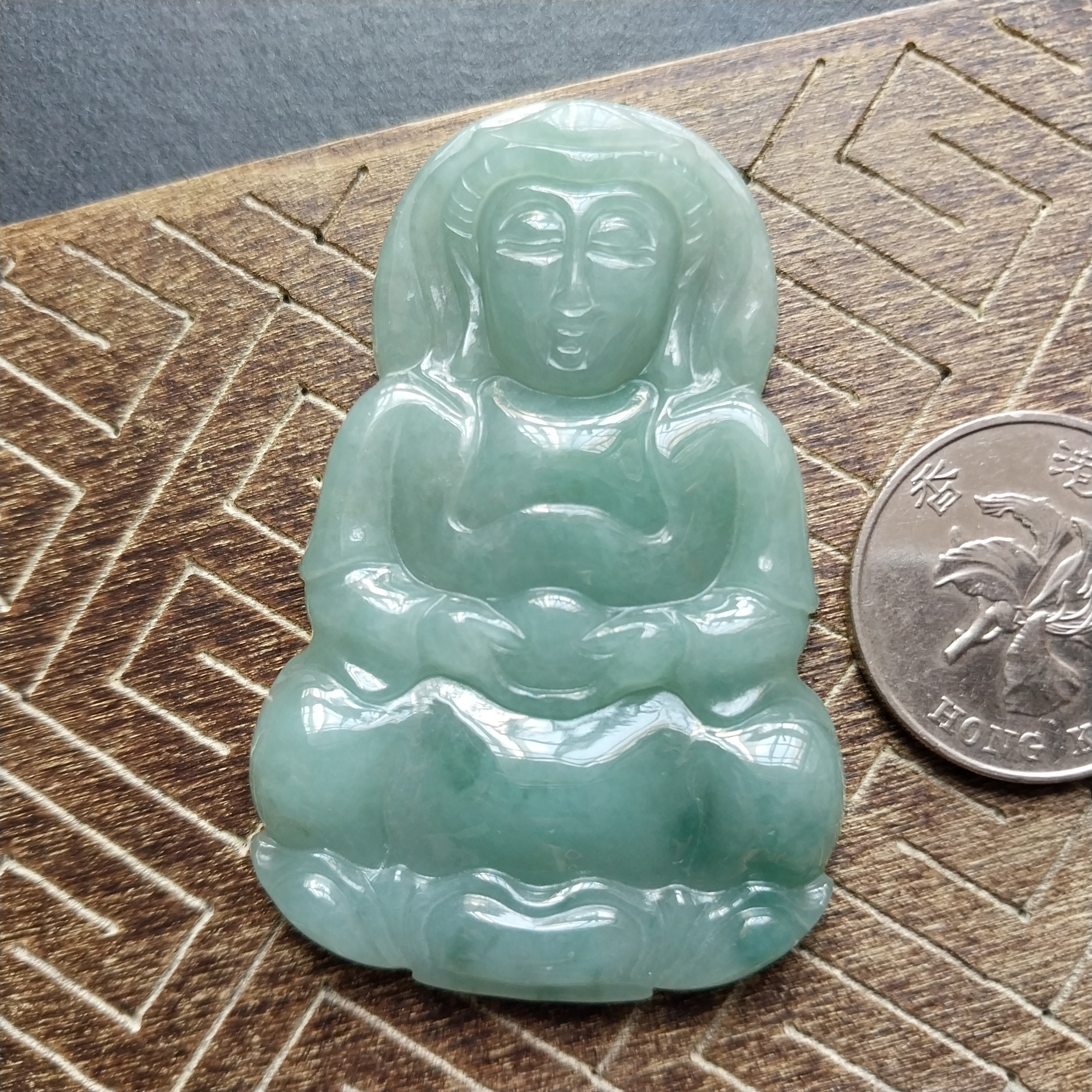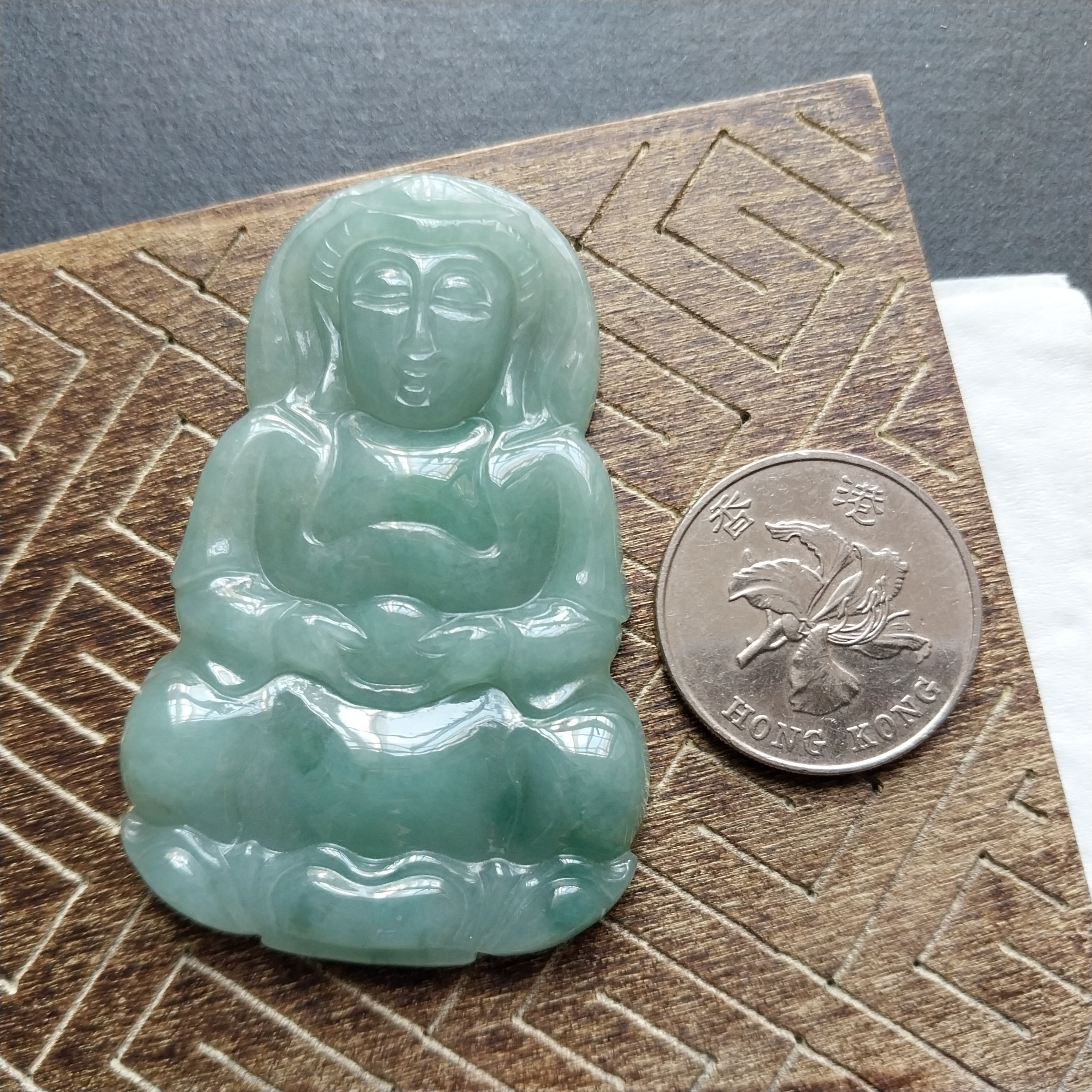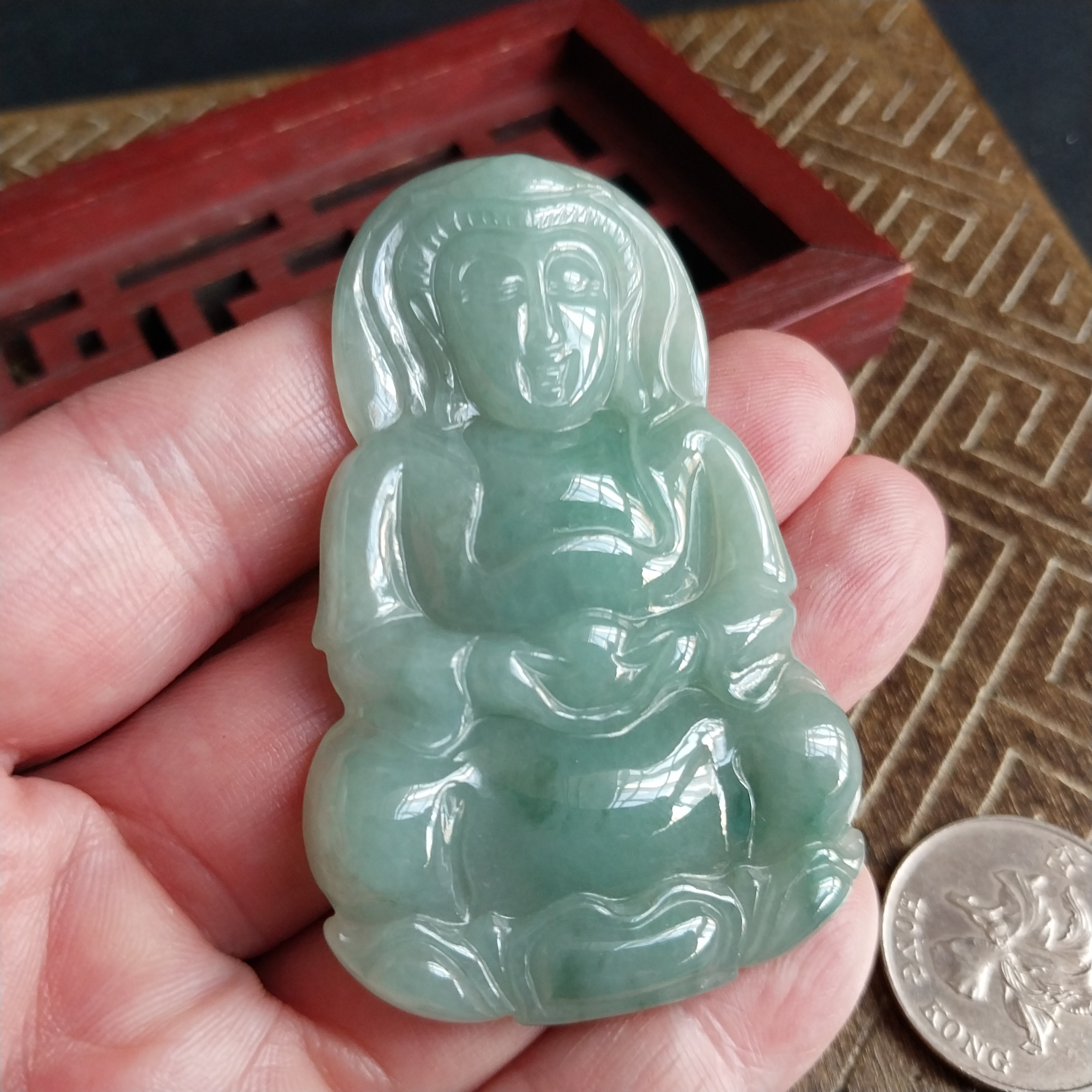 • 冰綠坐蓮觀音吊墜,天然翡翠A玉, 緬甸玉, Jade, Jadeite