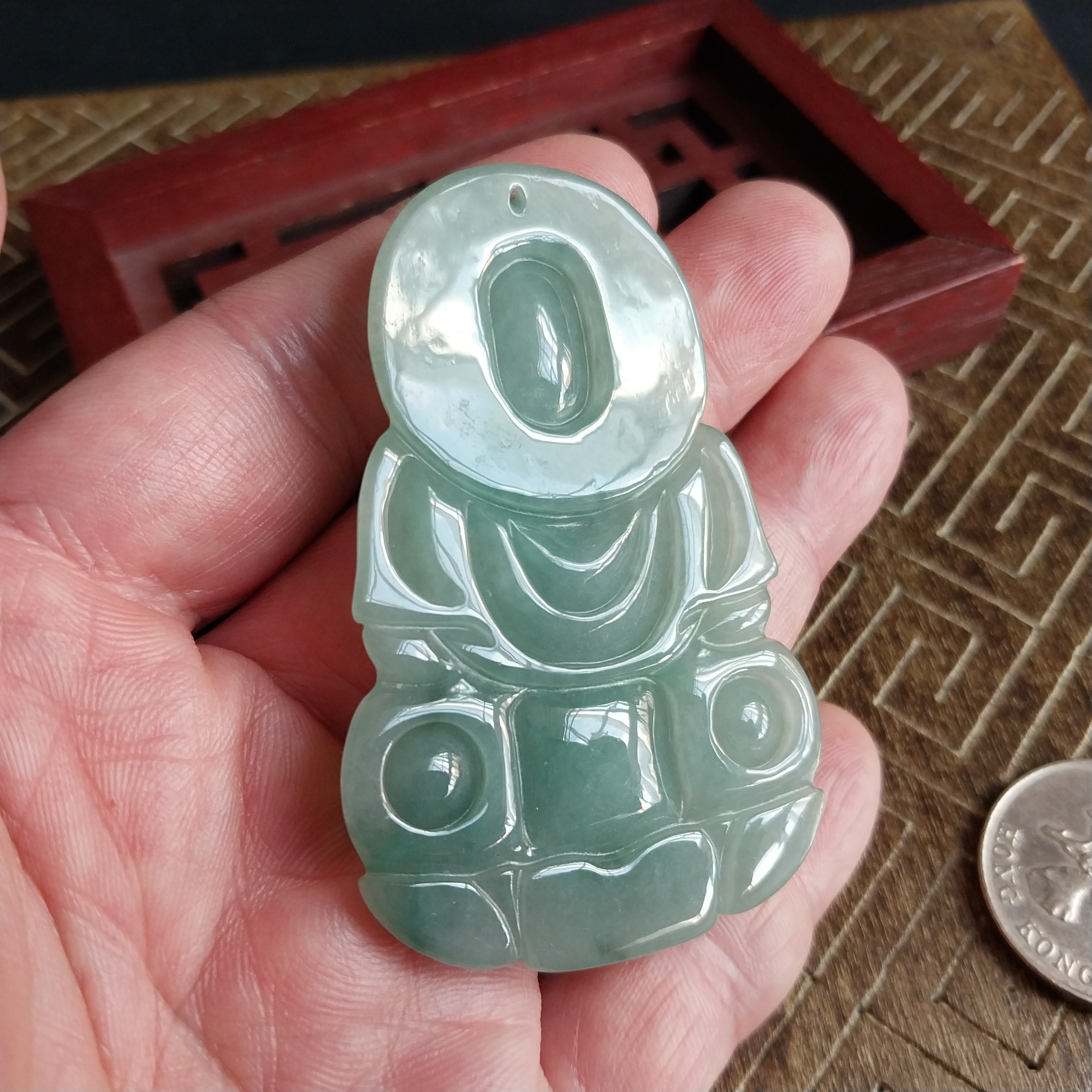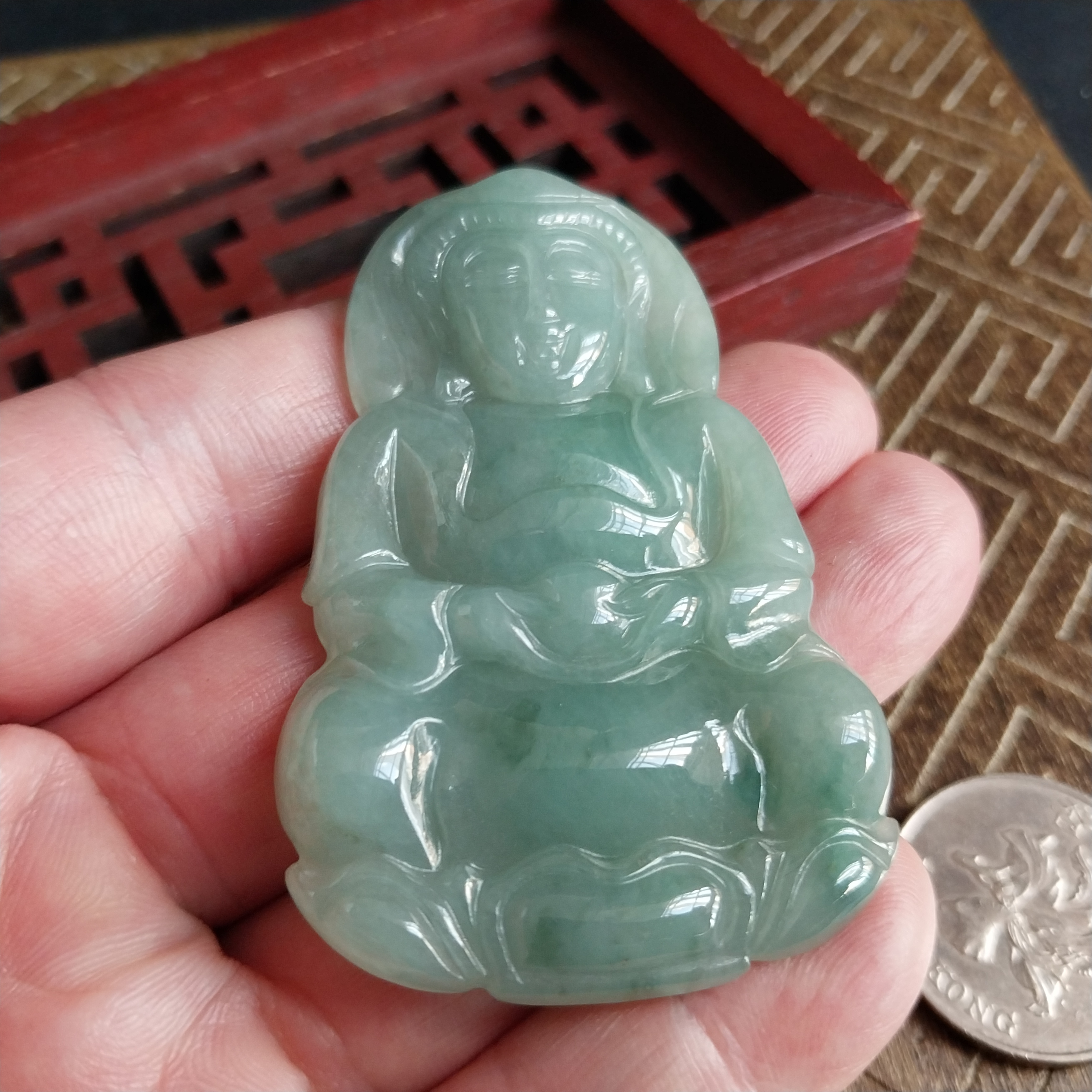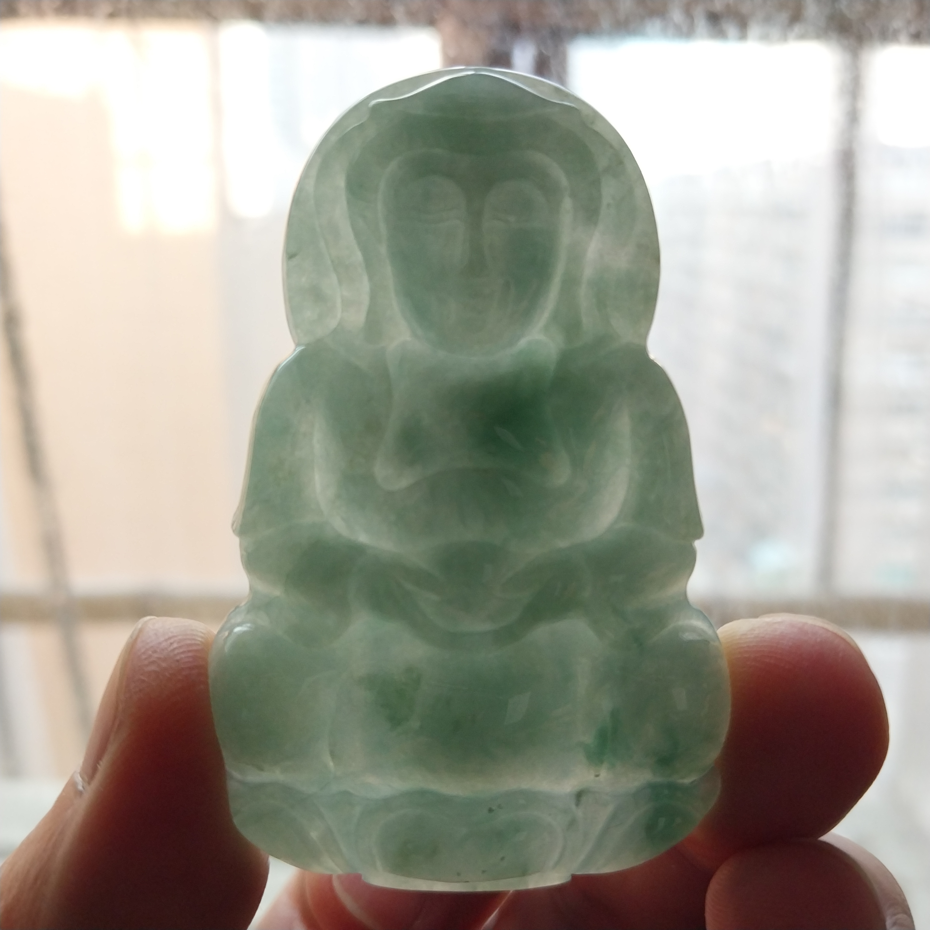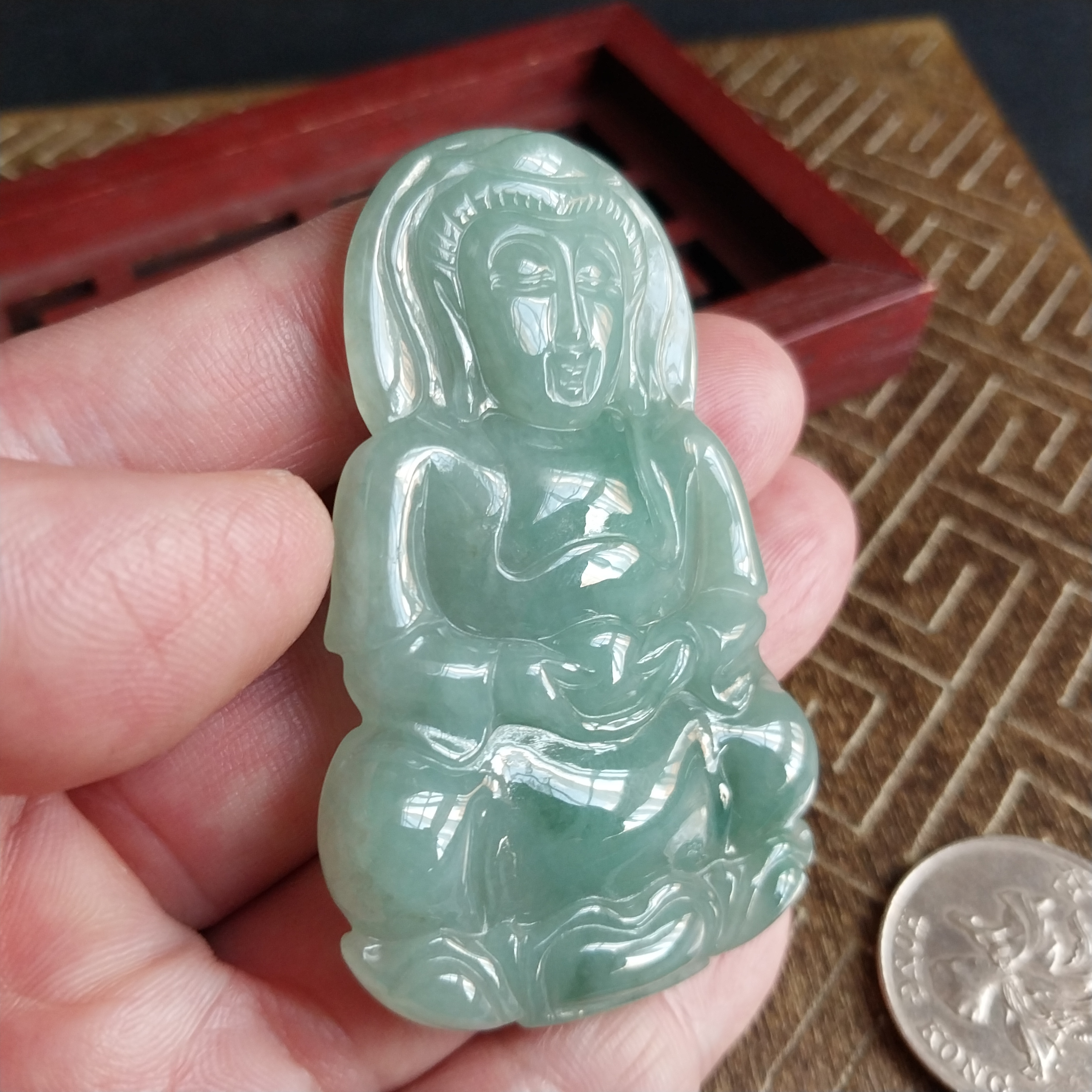 • 冰綠坐蓮觀音吊墜,天然翡翠A玉, 緬甸玉, Jade, Jadeite