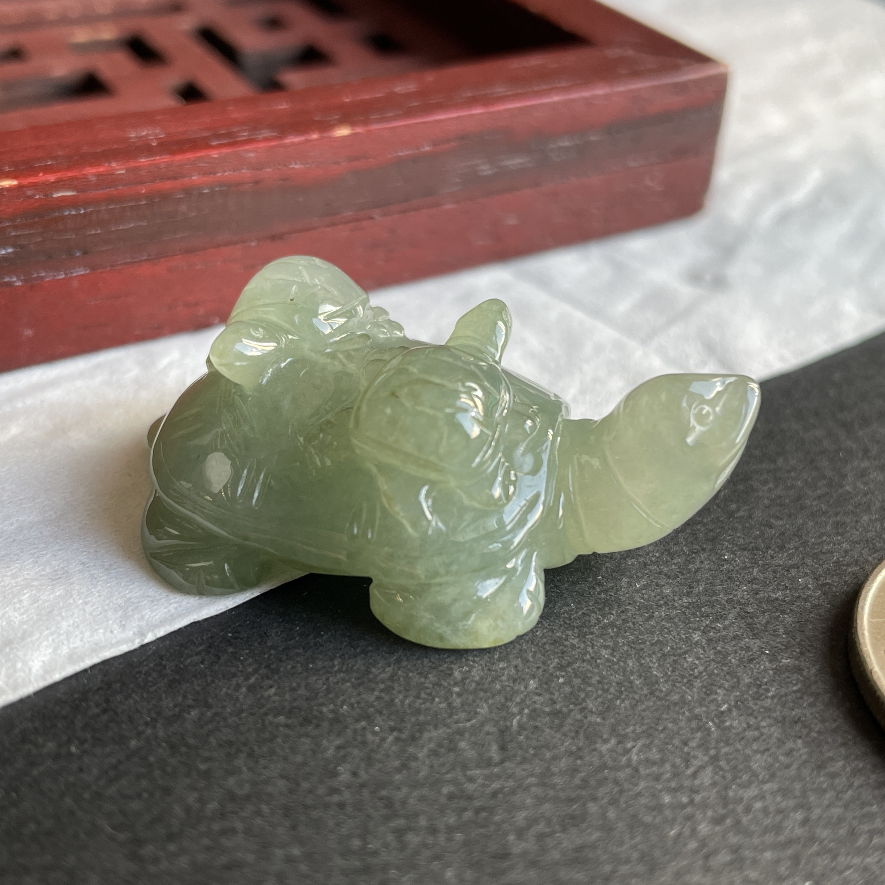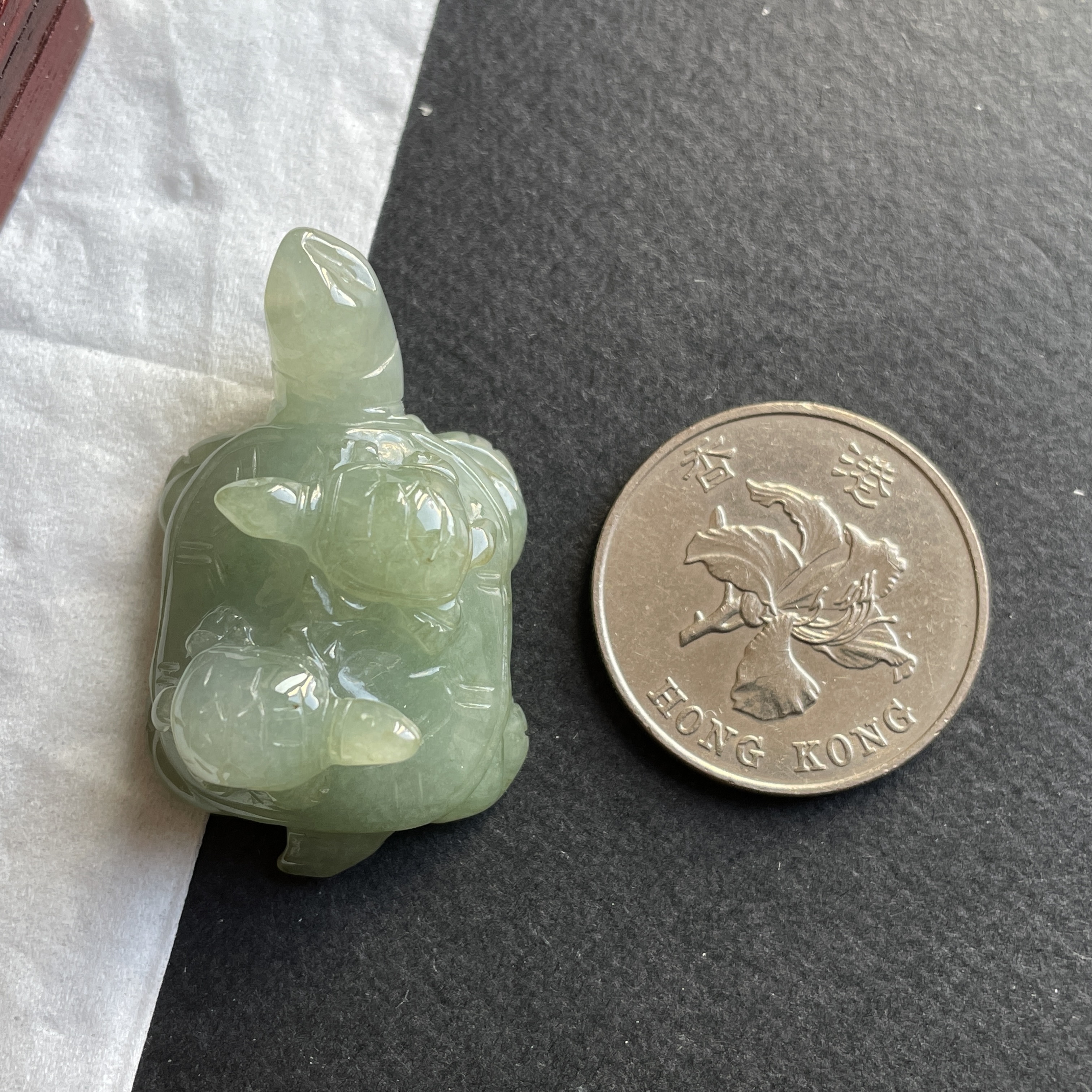 • 翡翠冰綠長壽龜一族吊墜/小擺件,天然翡翠A玉, 緬甸玉, Jade, Jadeite