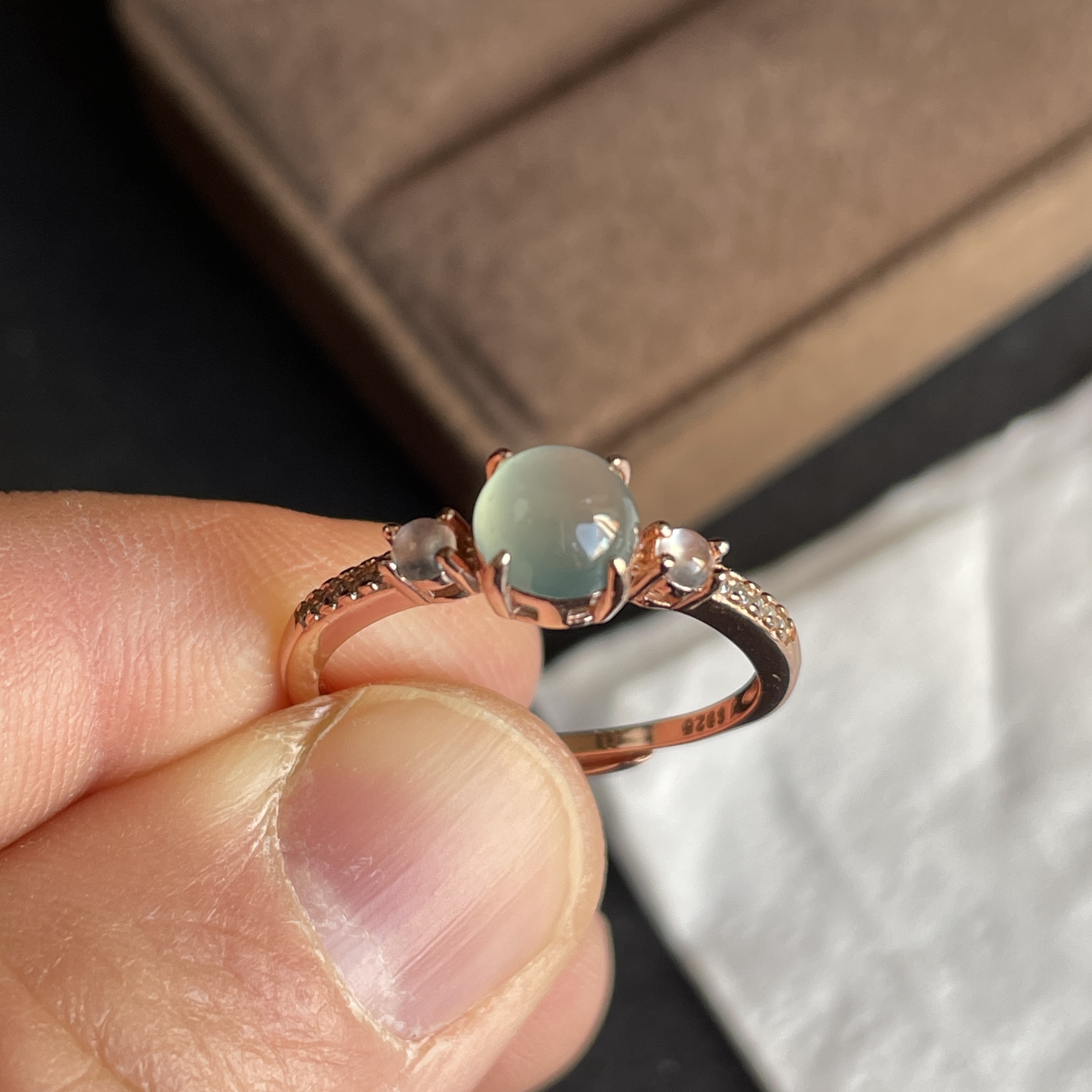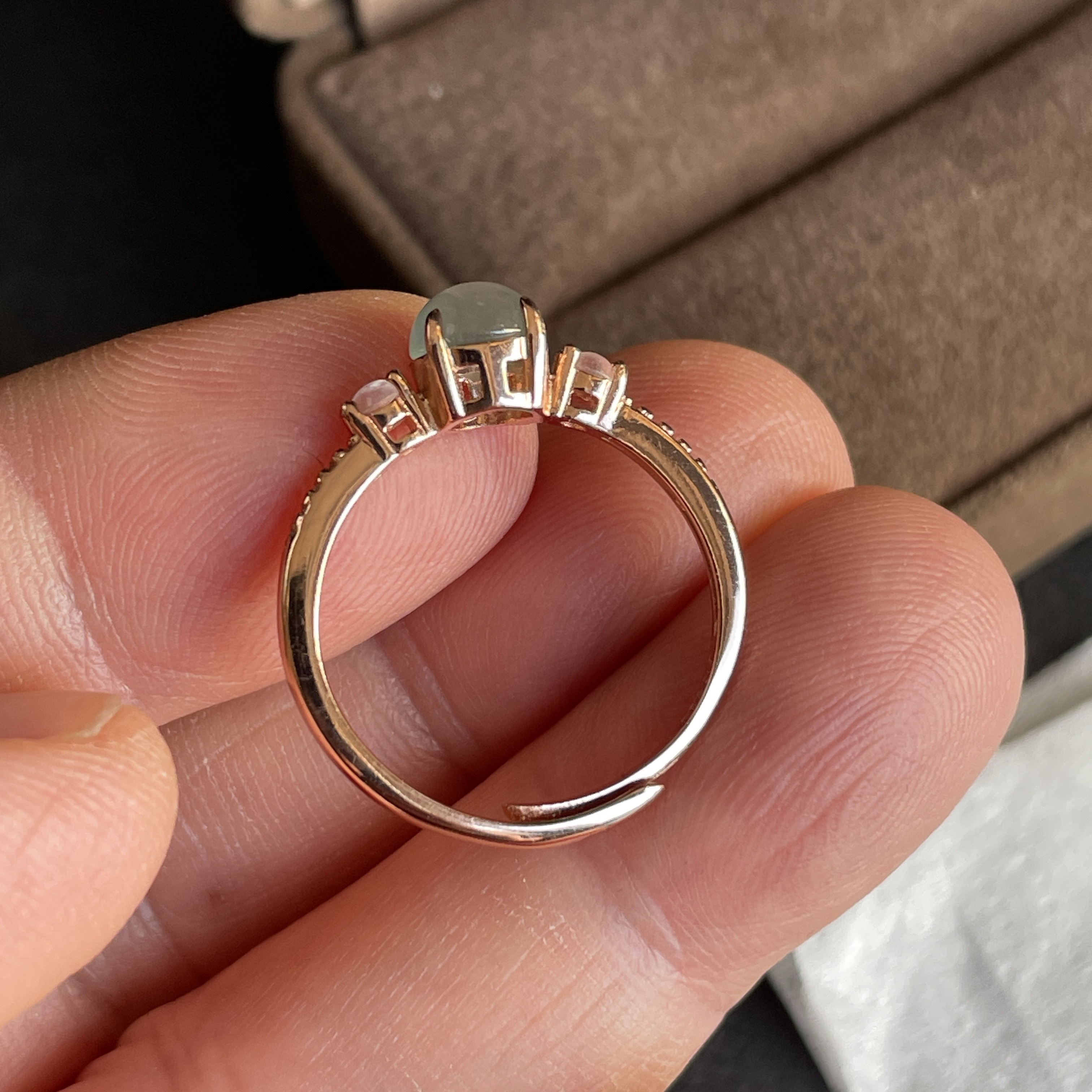 • 翡翠銀鑲戒指 (開口),天然翡翠A玉, 緬甸玉, Jade, Jadeite