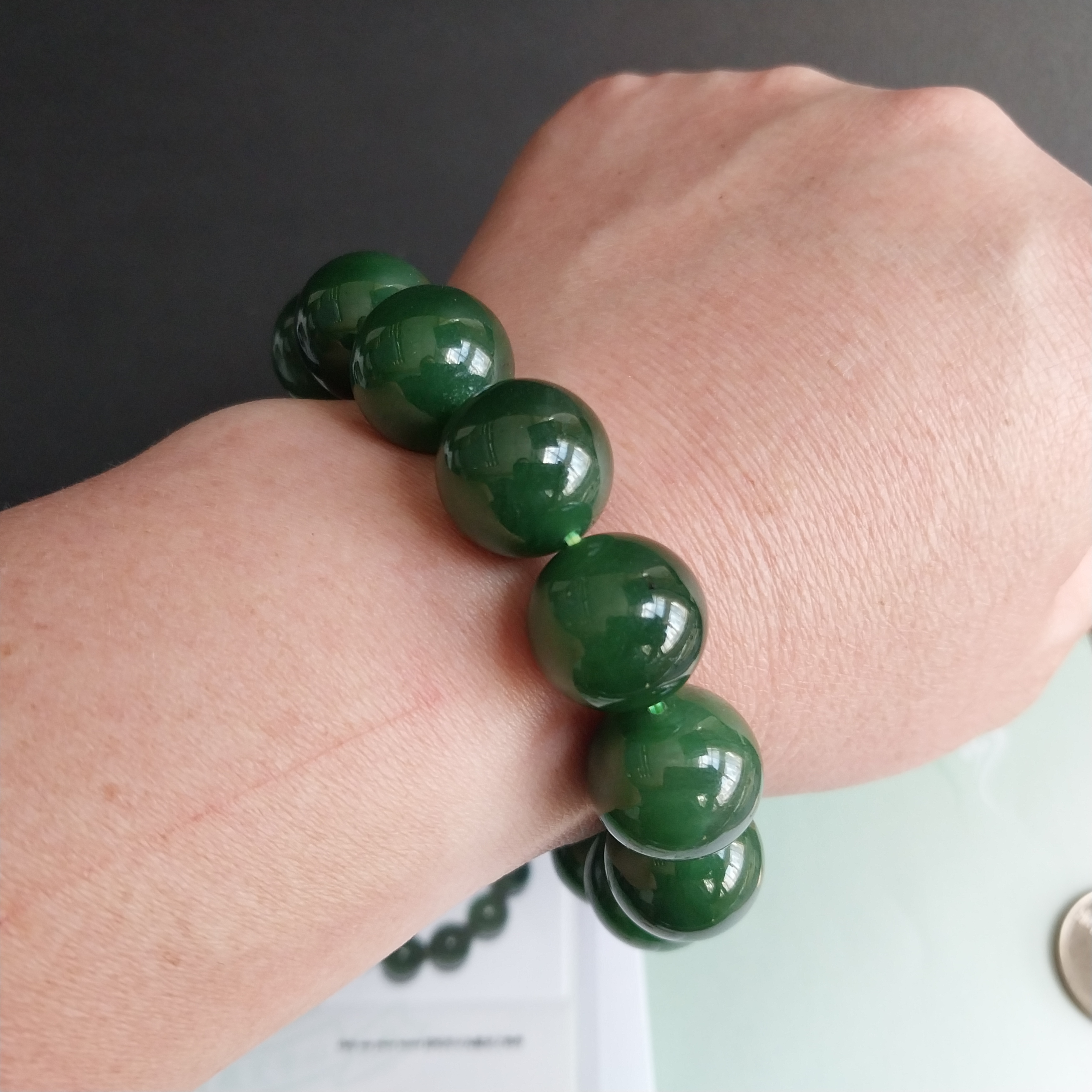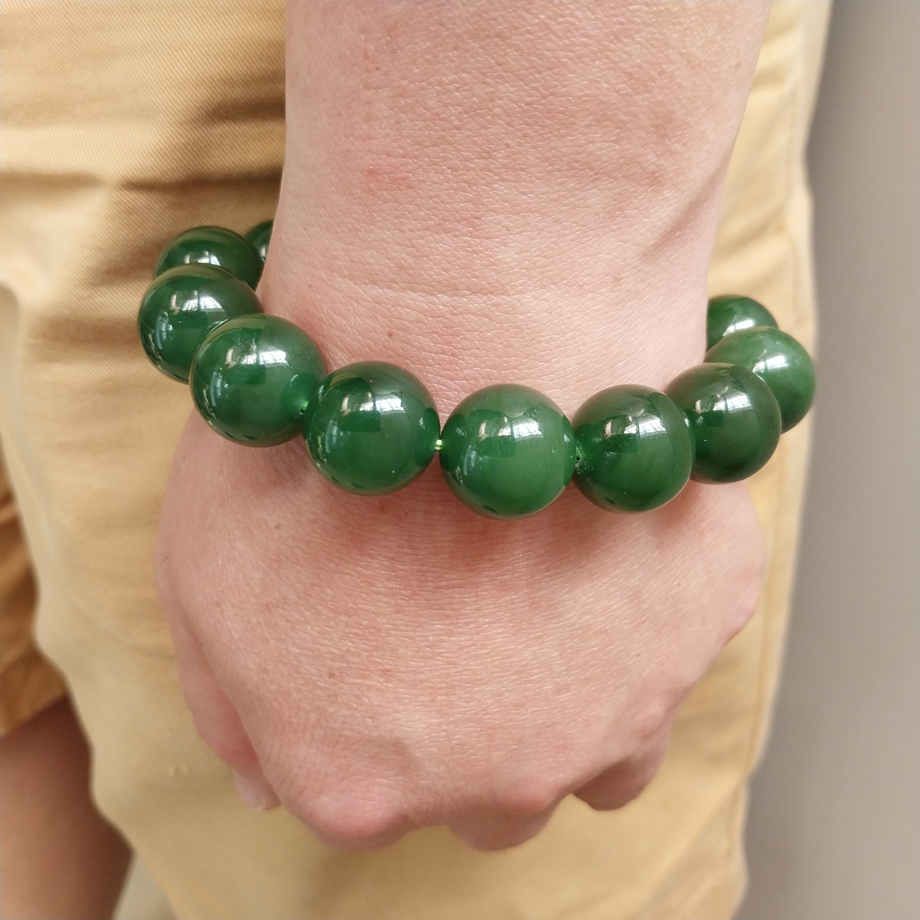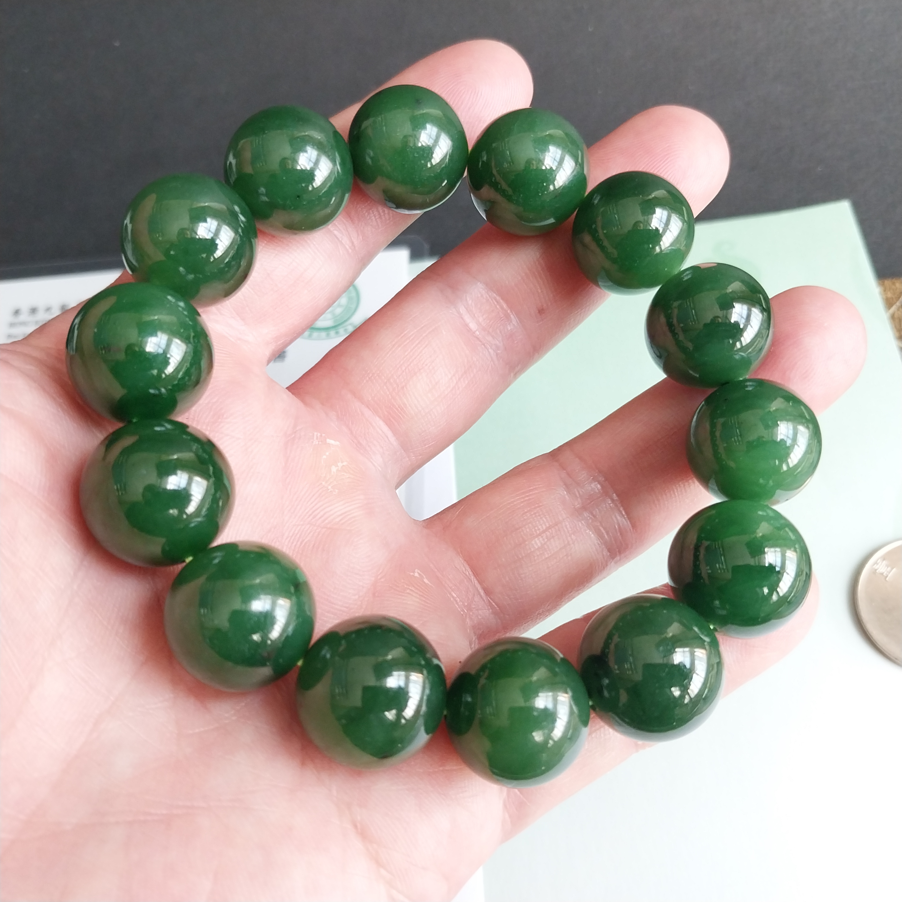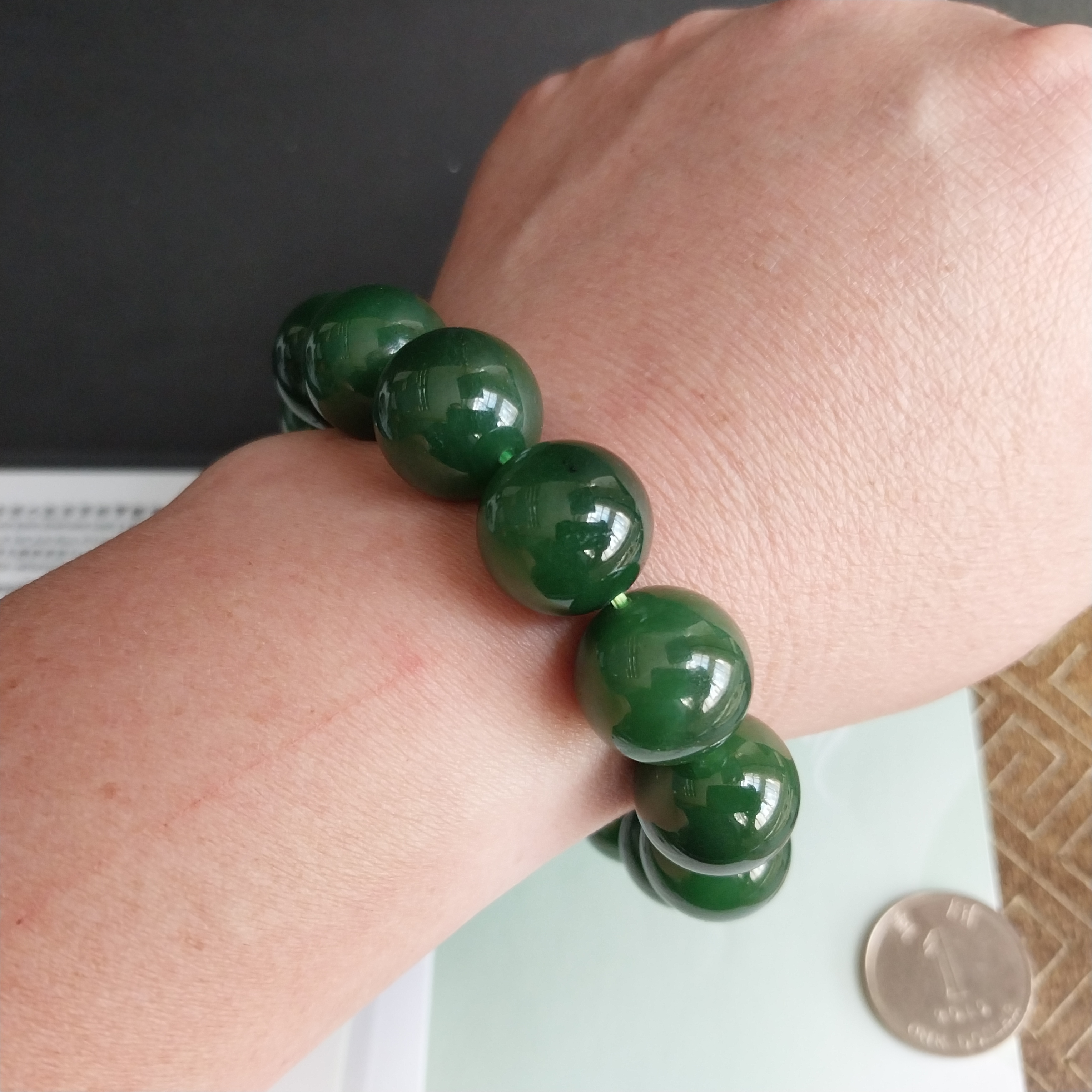 • 和田玉碧玉手串 (16mm直徑),天然和田玉軟玉