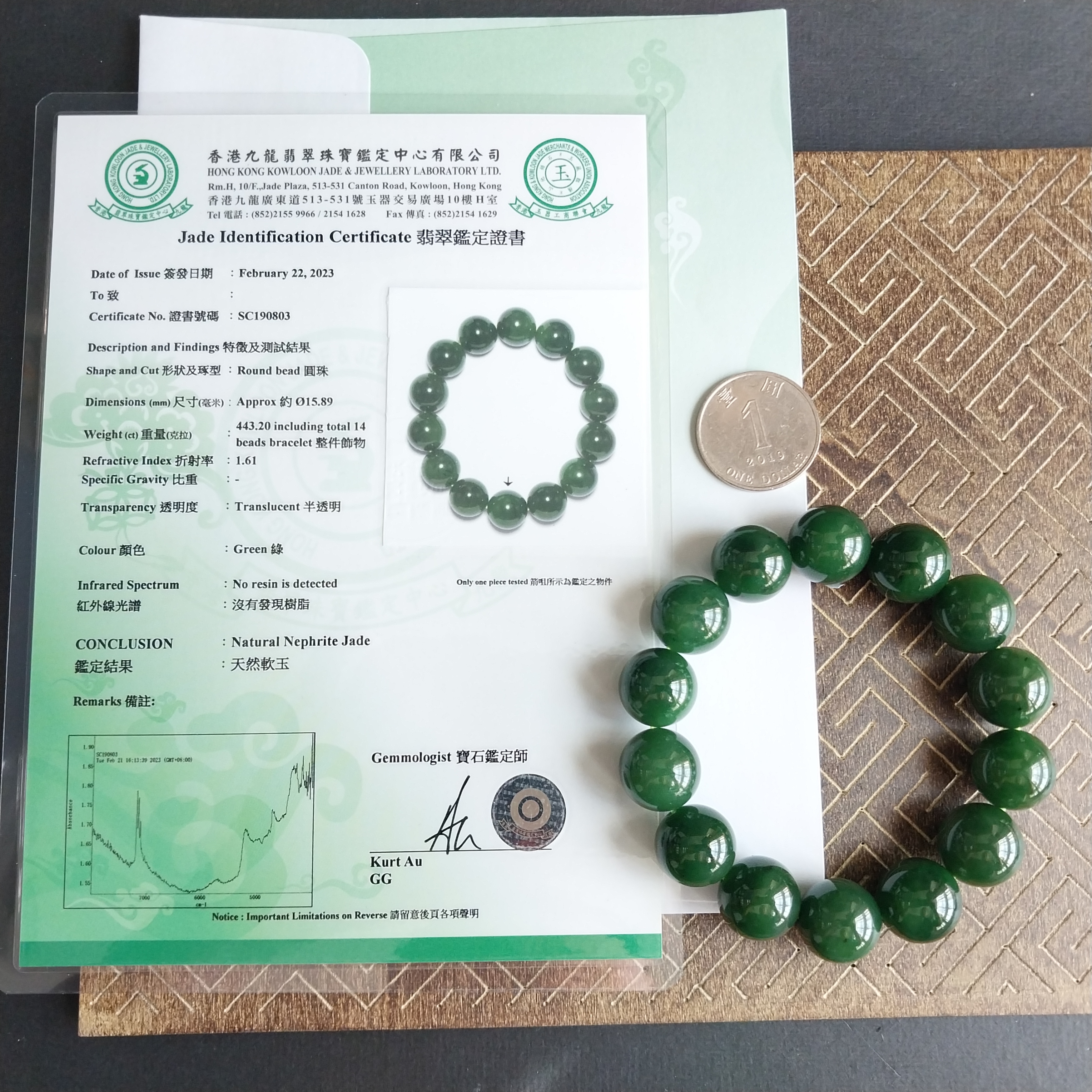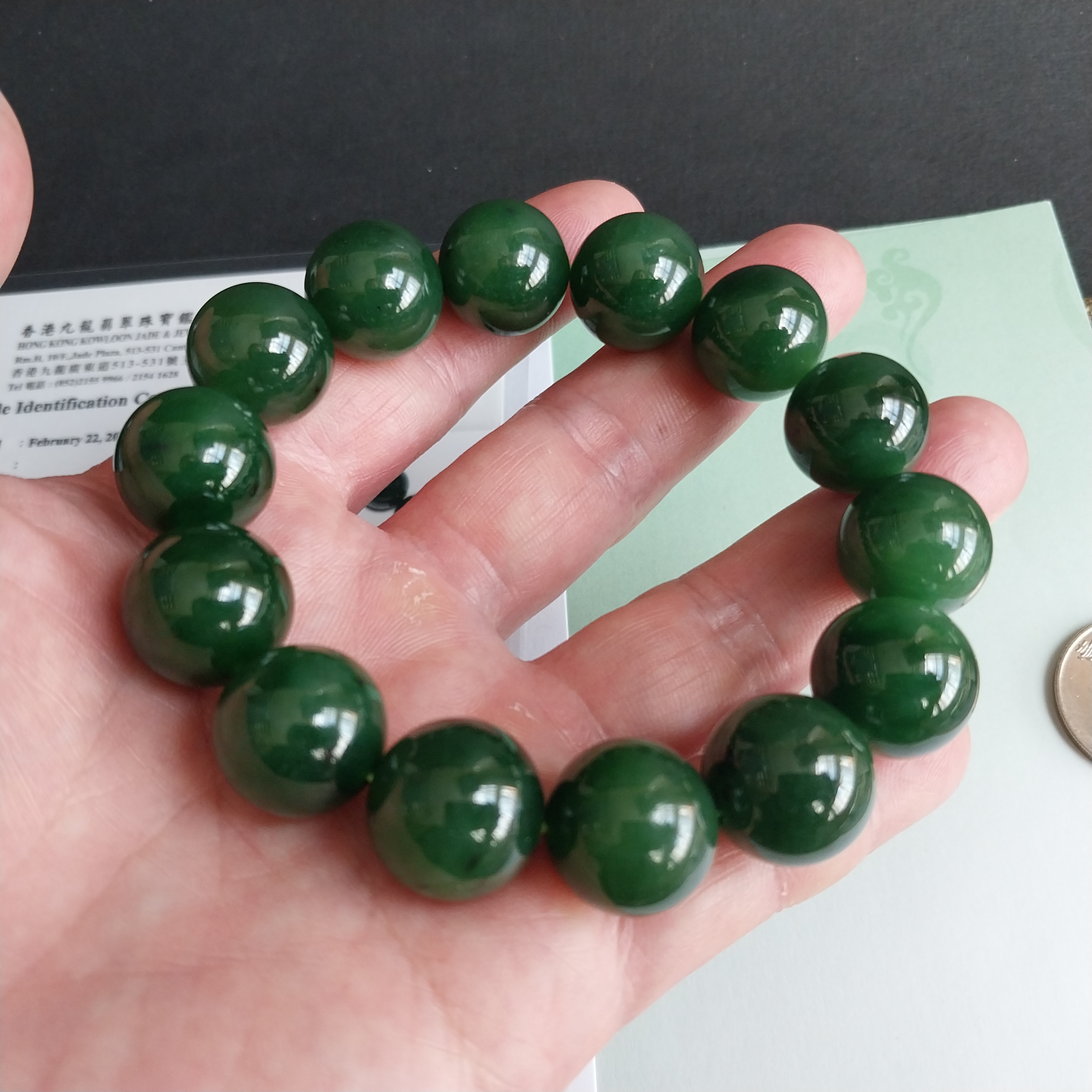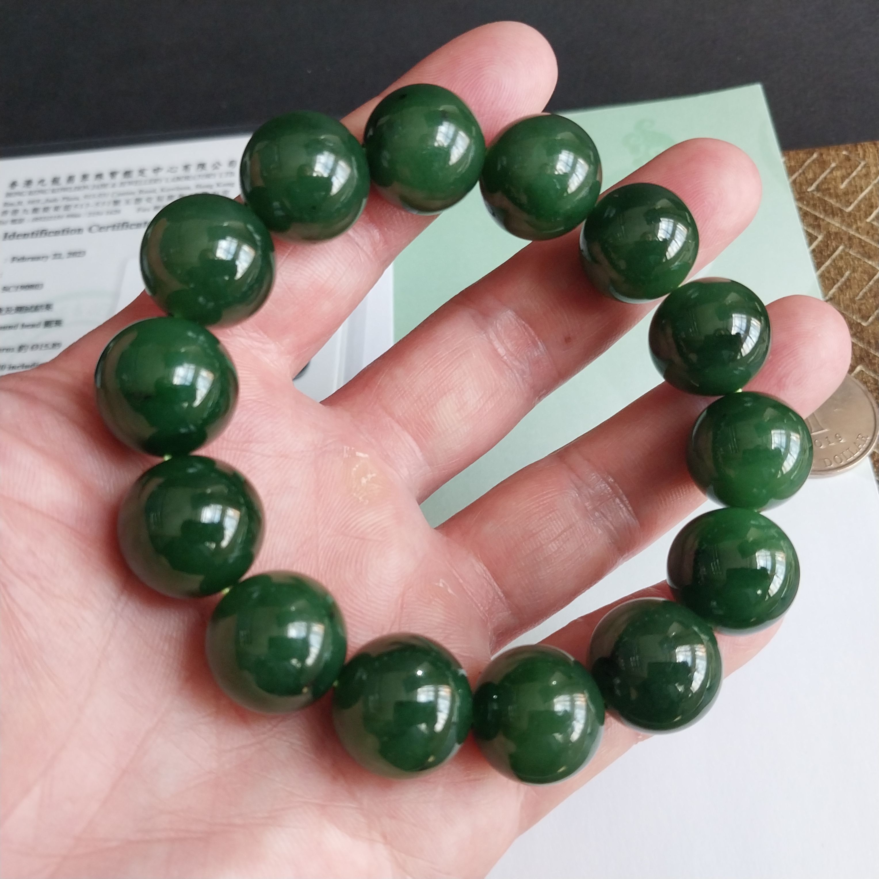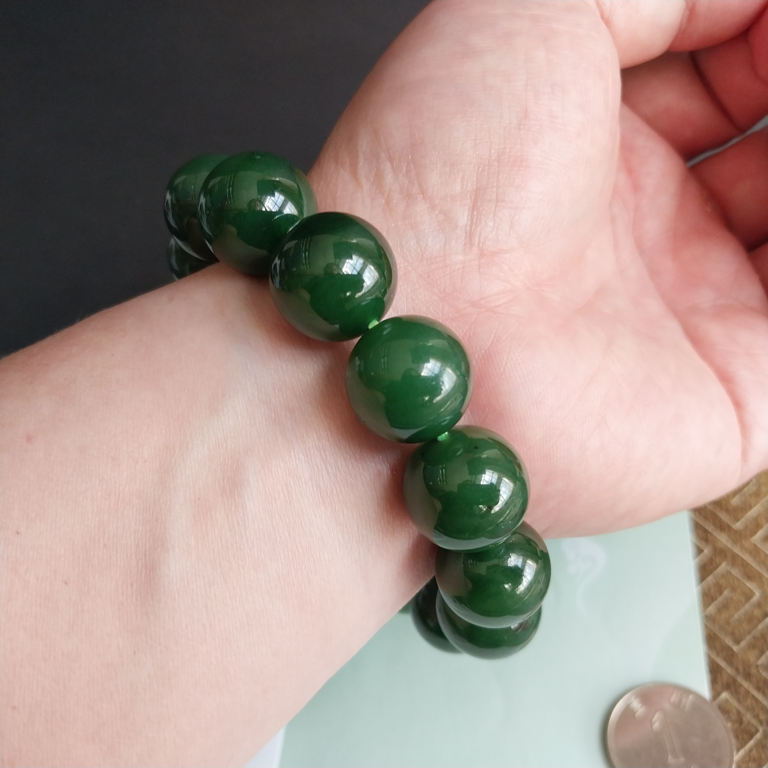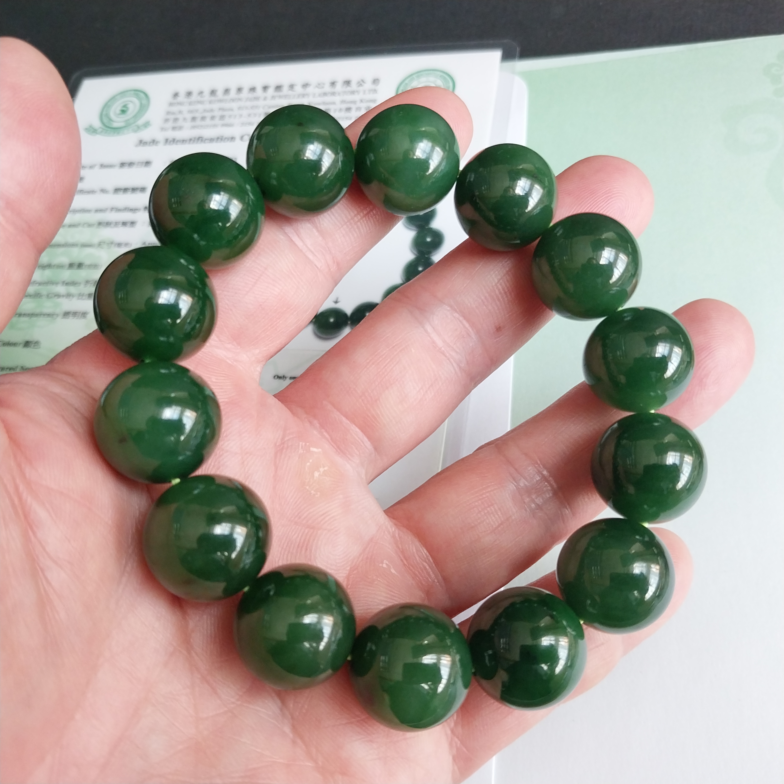 • 和田玉碧玉手串 (16mm直徑),天然和田玉軟玉