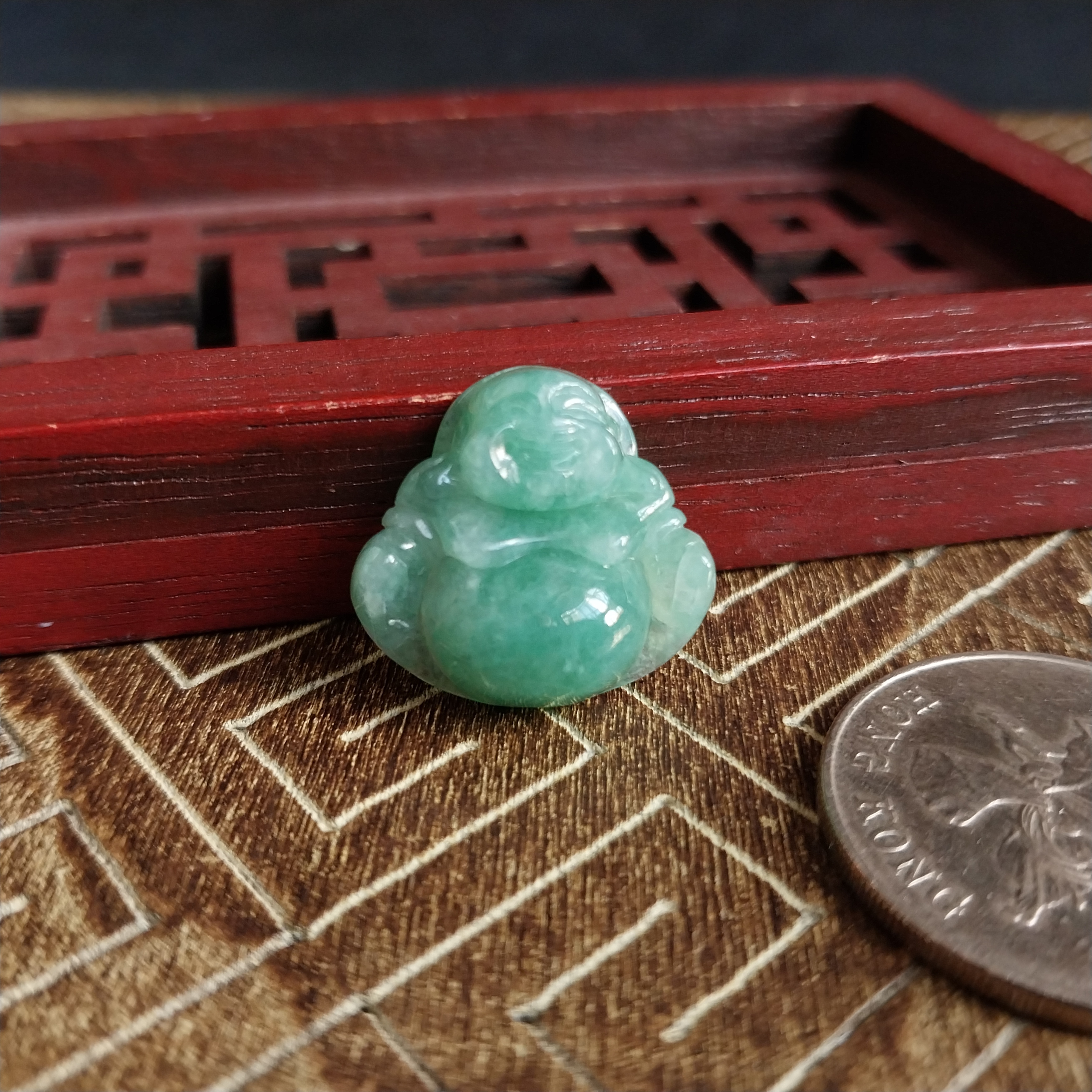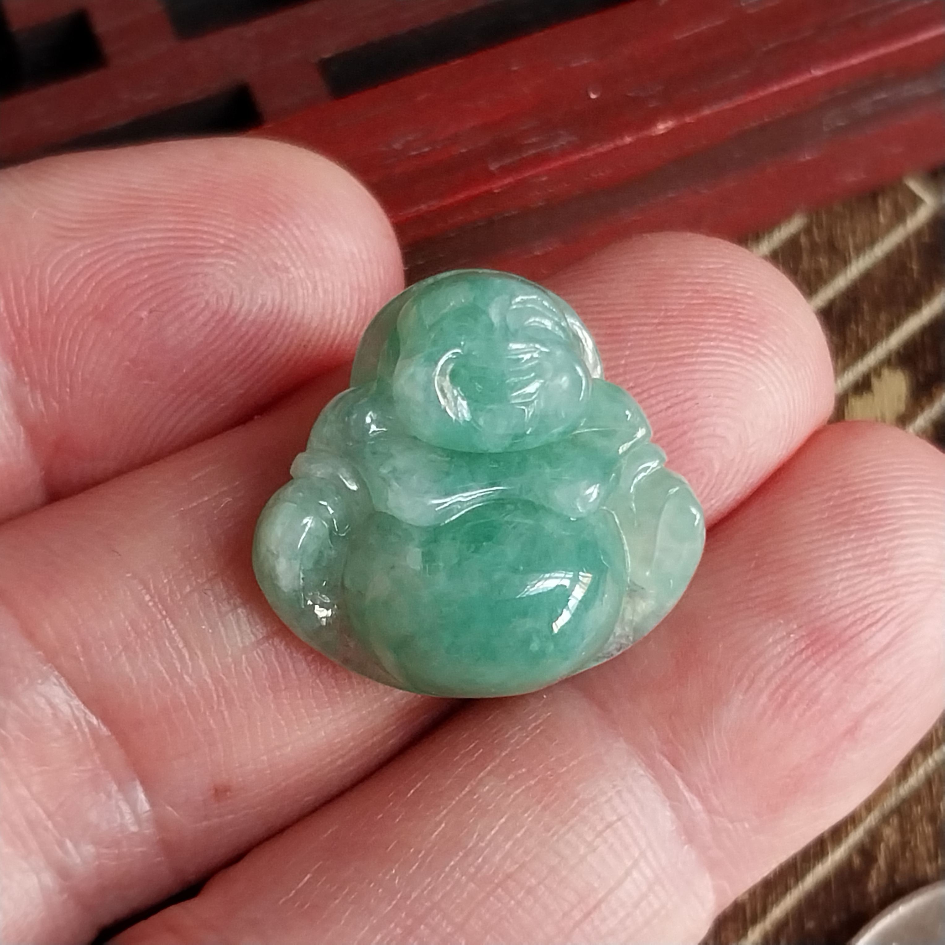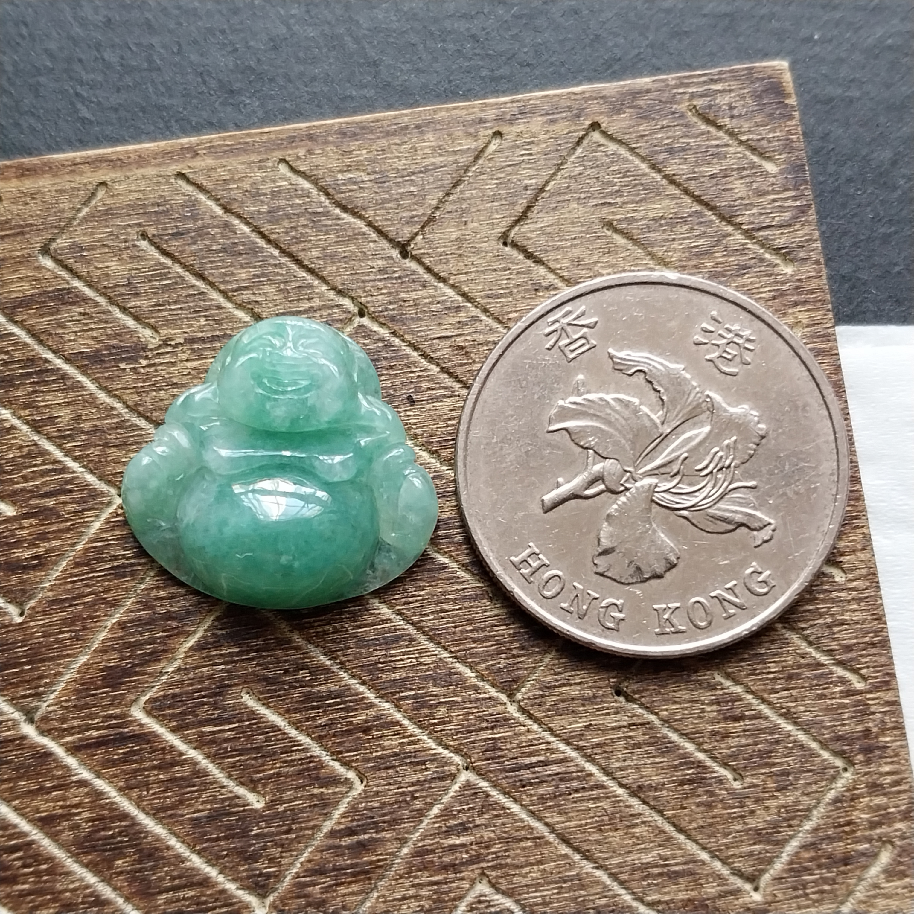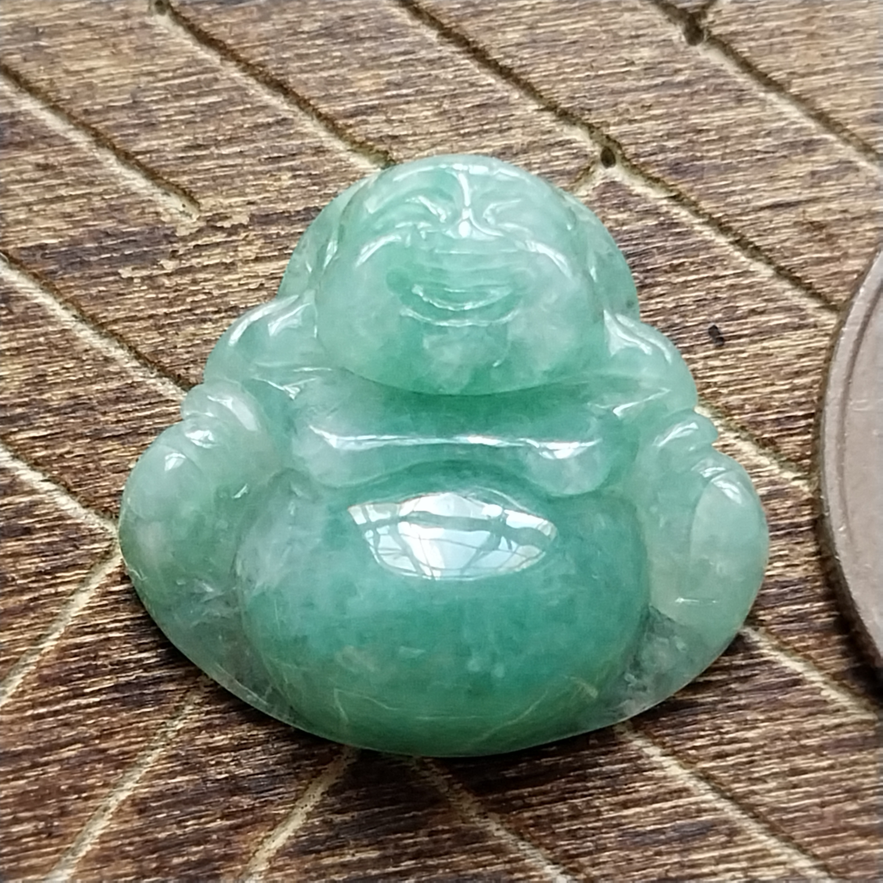 • 冰陽綠小笑佛,天然翡翠A玉, 緬甸玉, Jade, Jadeite