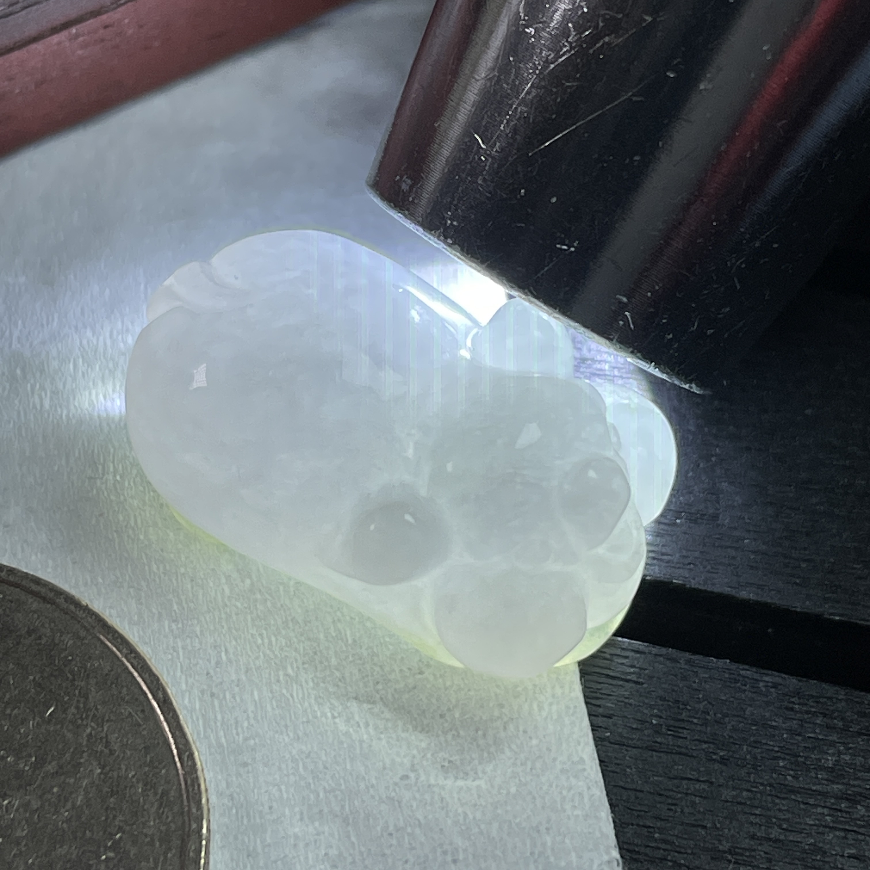 - 天然玉石在不同光線下,會呈現出不同的顏色變化;