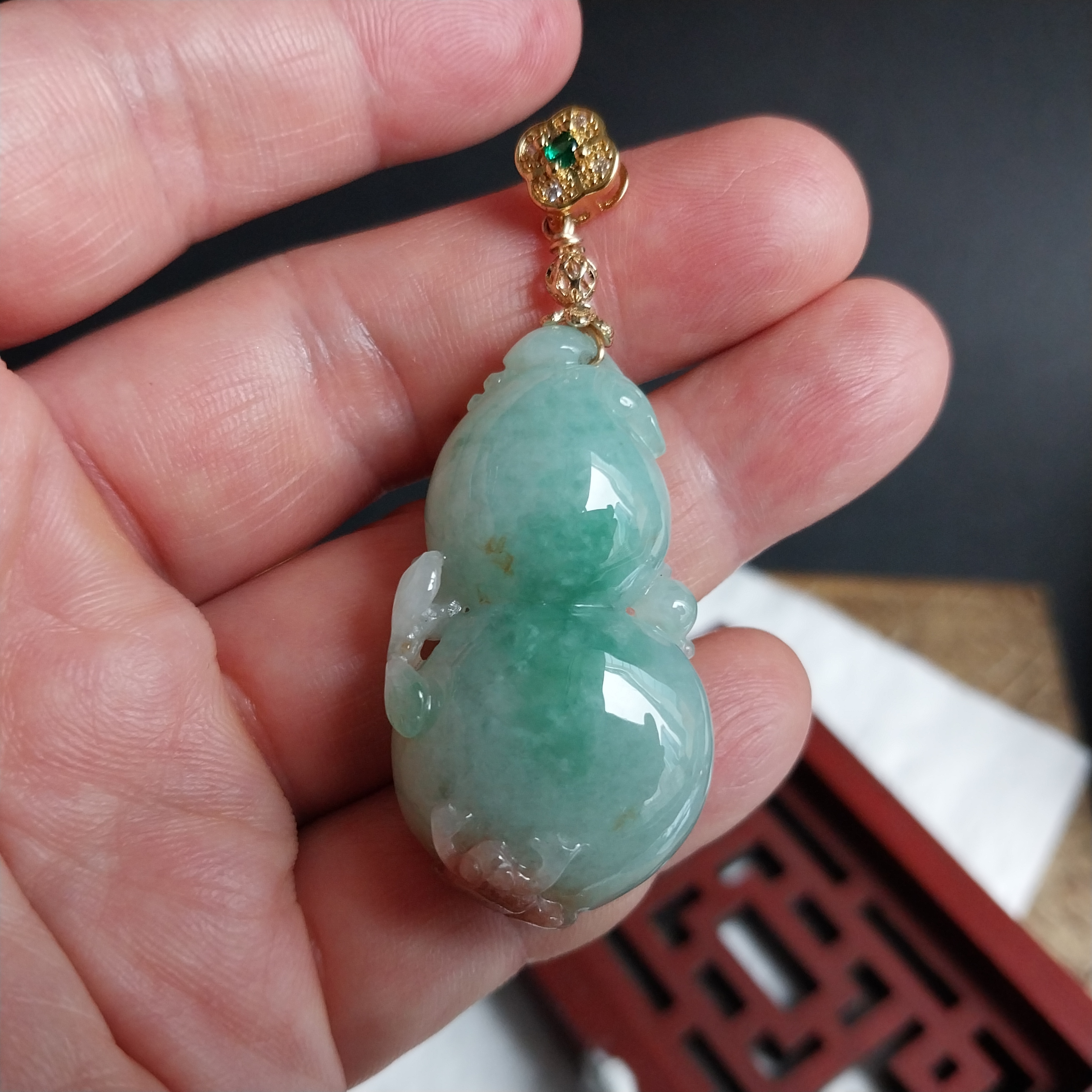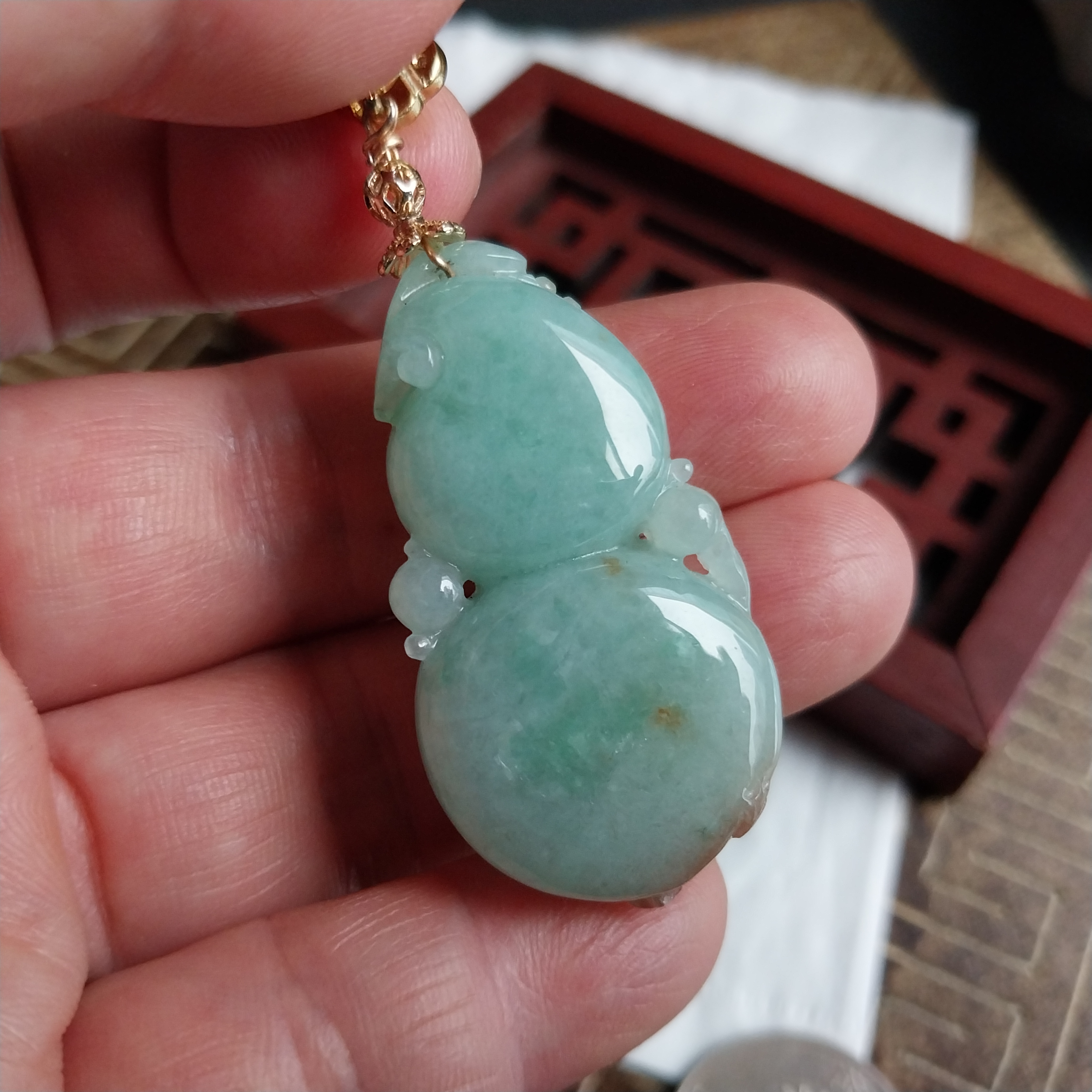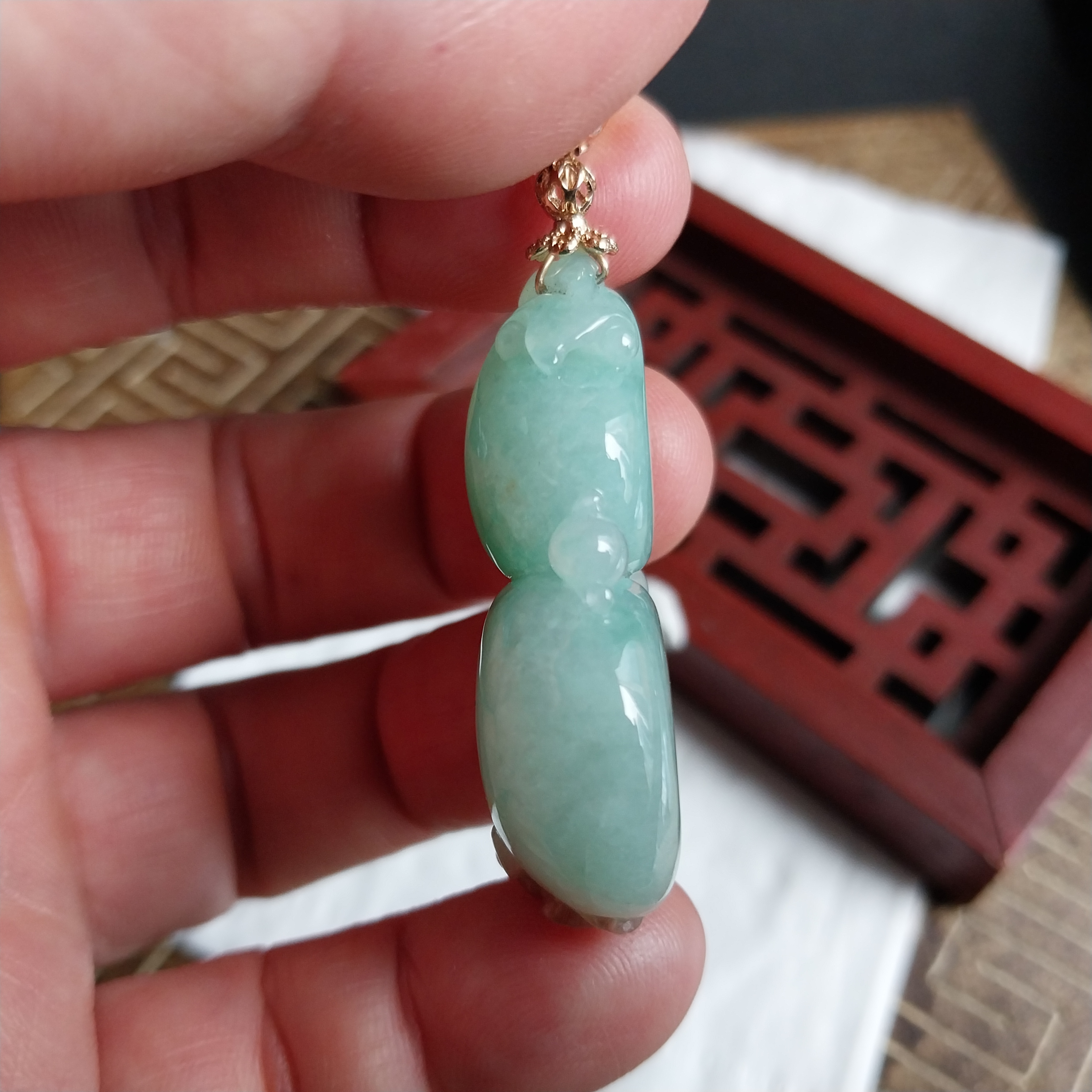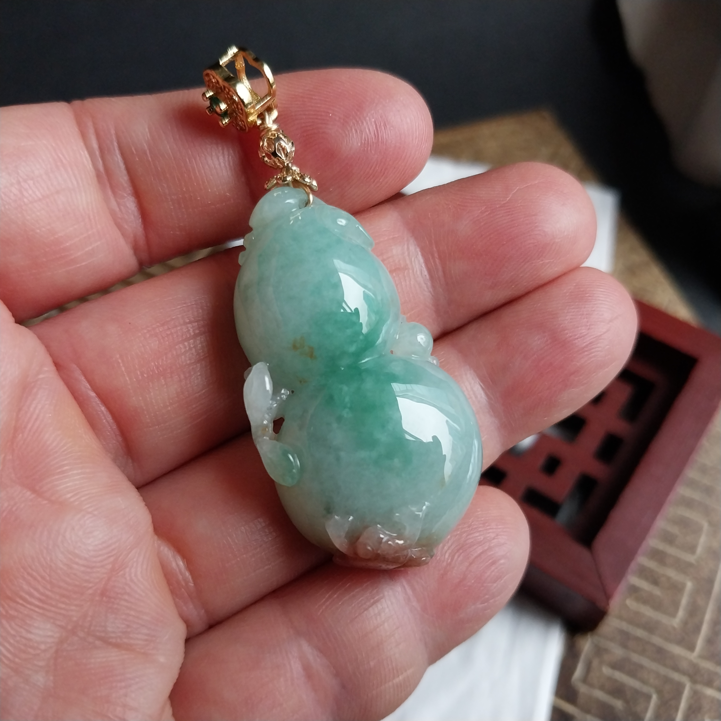 • 翡翠冰糯特色葫蘆吊墜,天然翡翠A玉, 緬甸玉, Jade, Jadeite