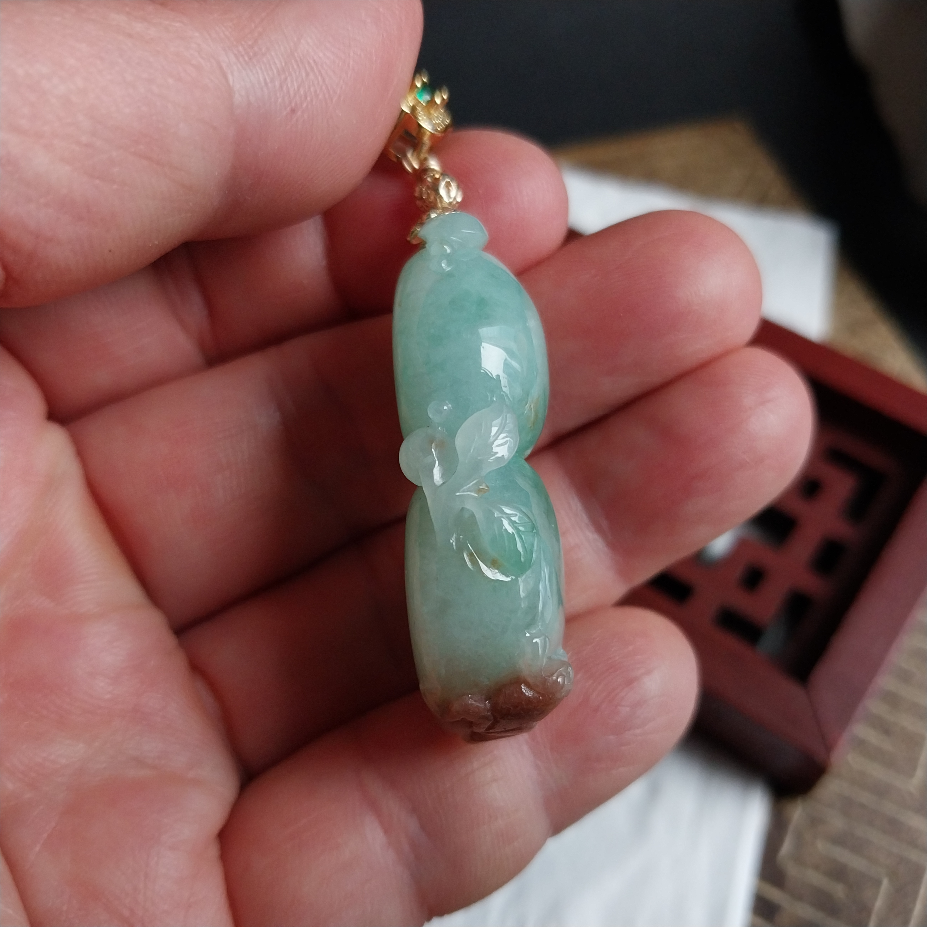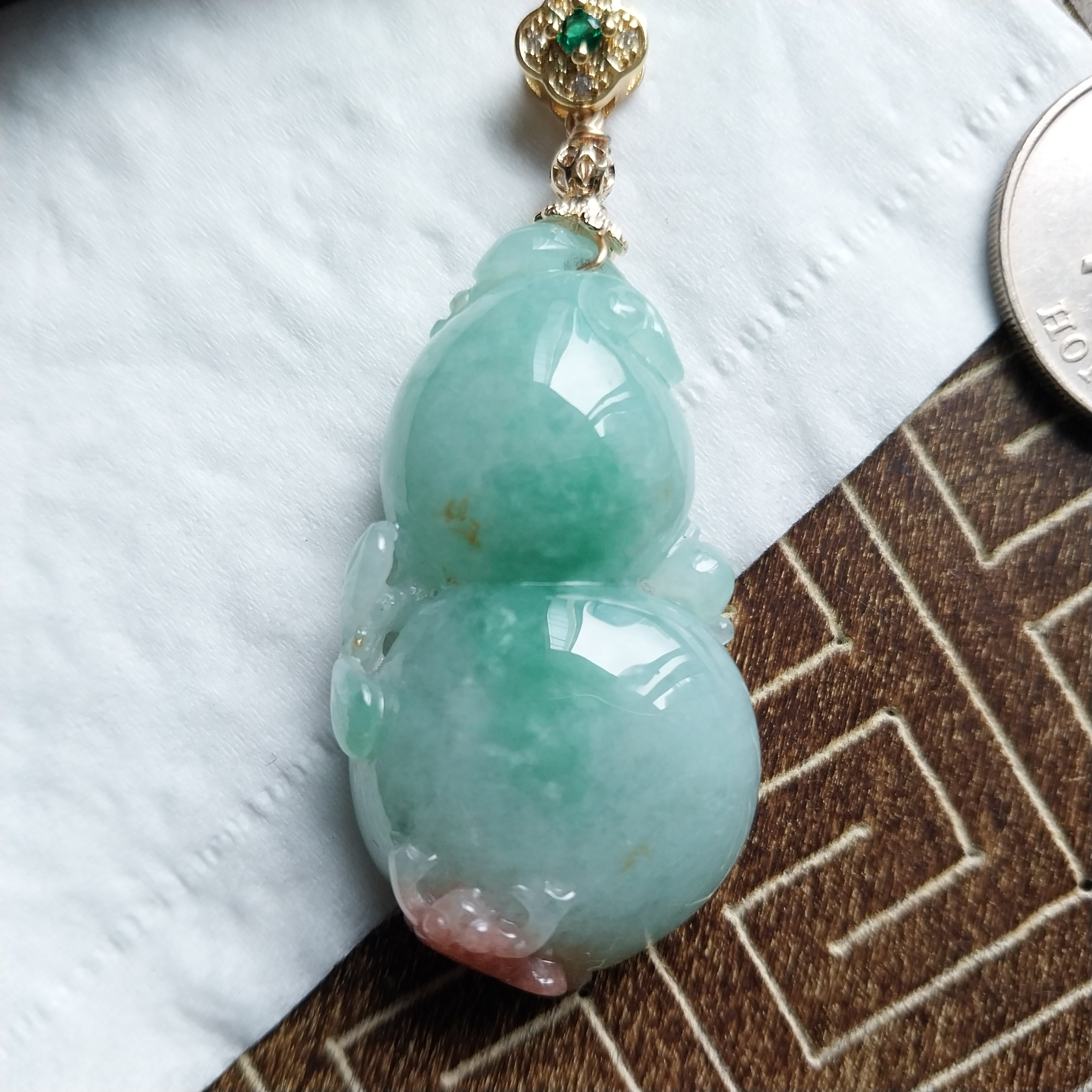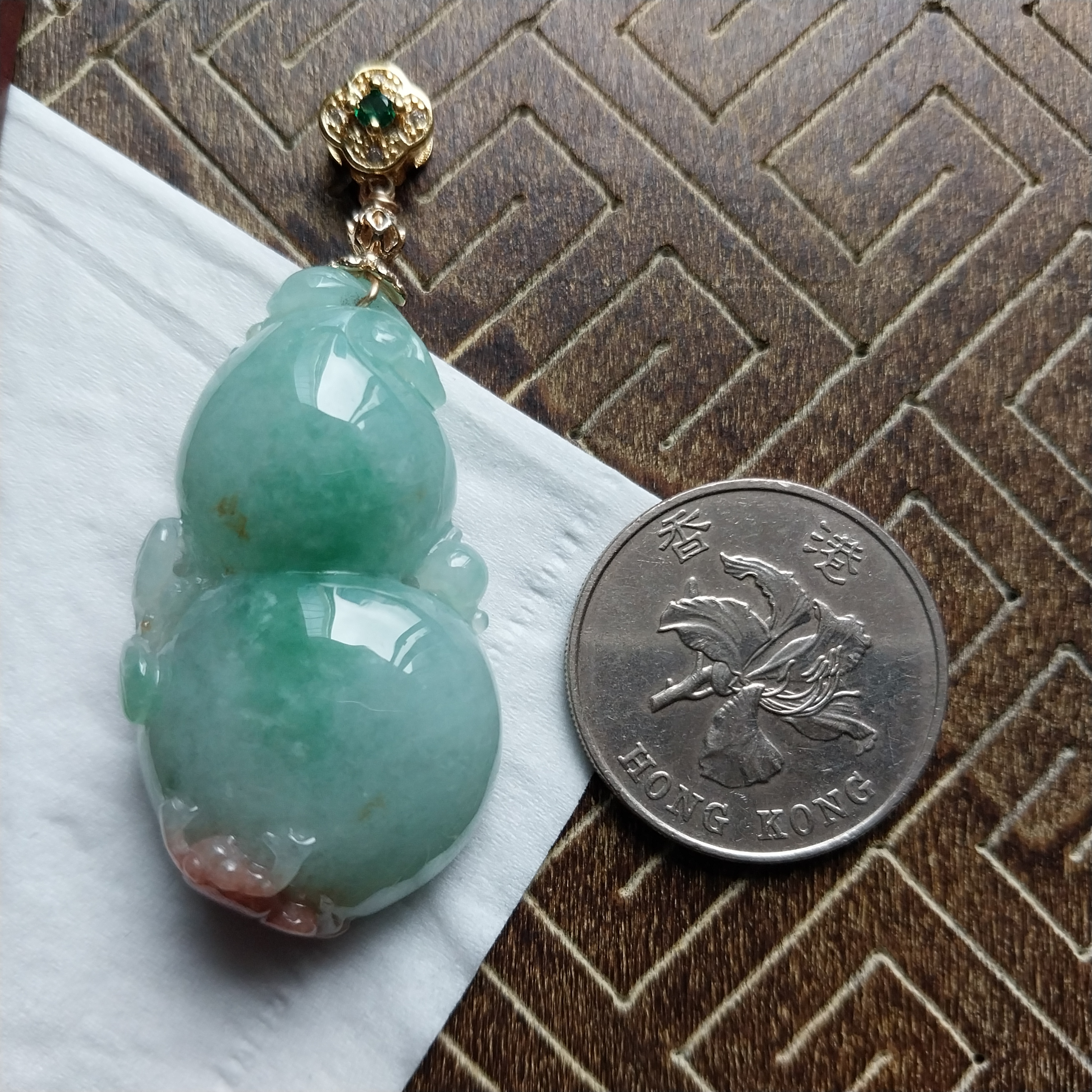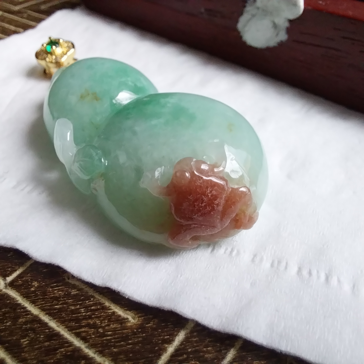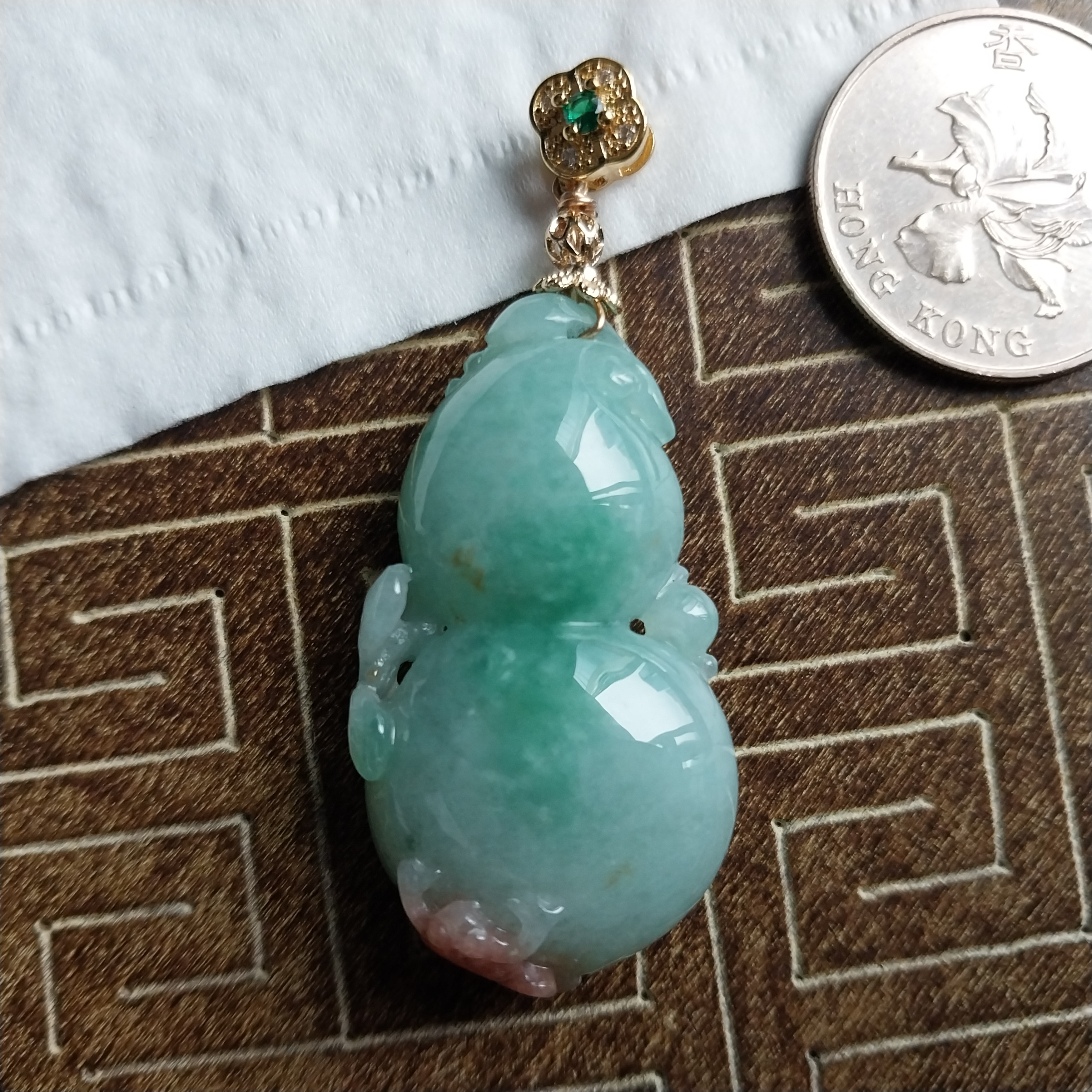 • 翡翠冰糯特色葫蘆吊墜,天然翡翠A玉, 緬甸玉, Jade, Jadeite