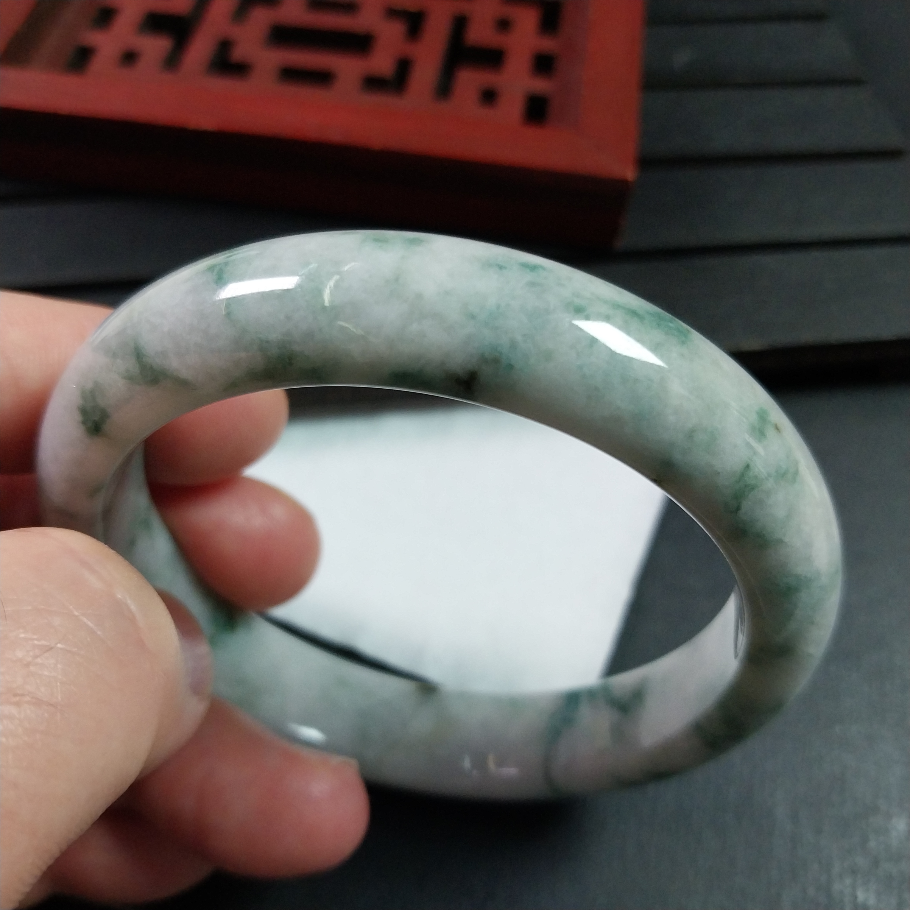 • 冰綠飄綠玉鐲 59.4mm,天然翡翠A玉, 緬甸玉, Jade, Jadeite