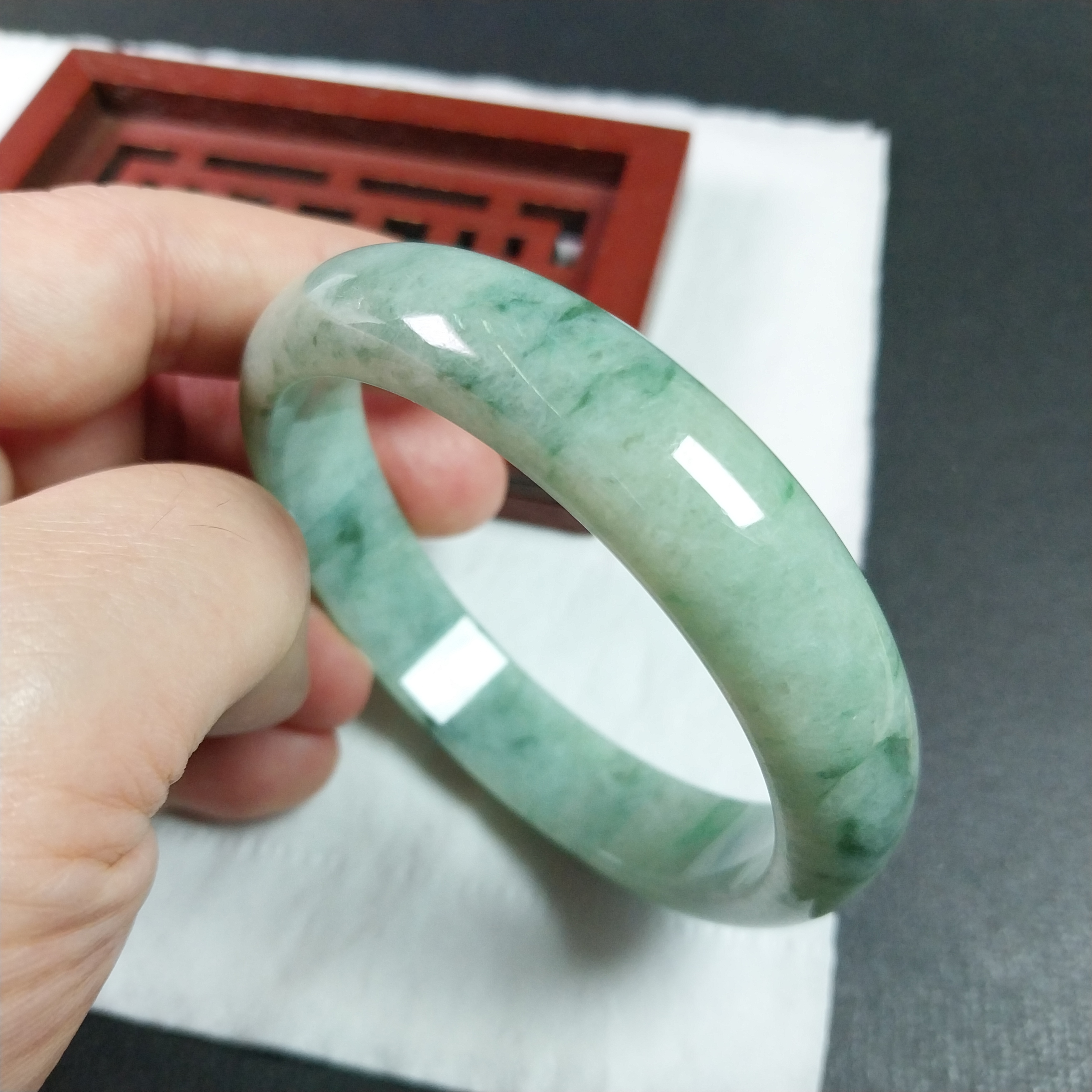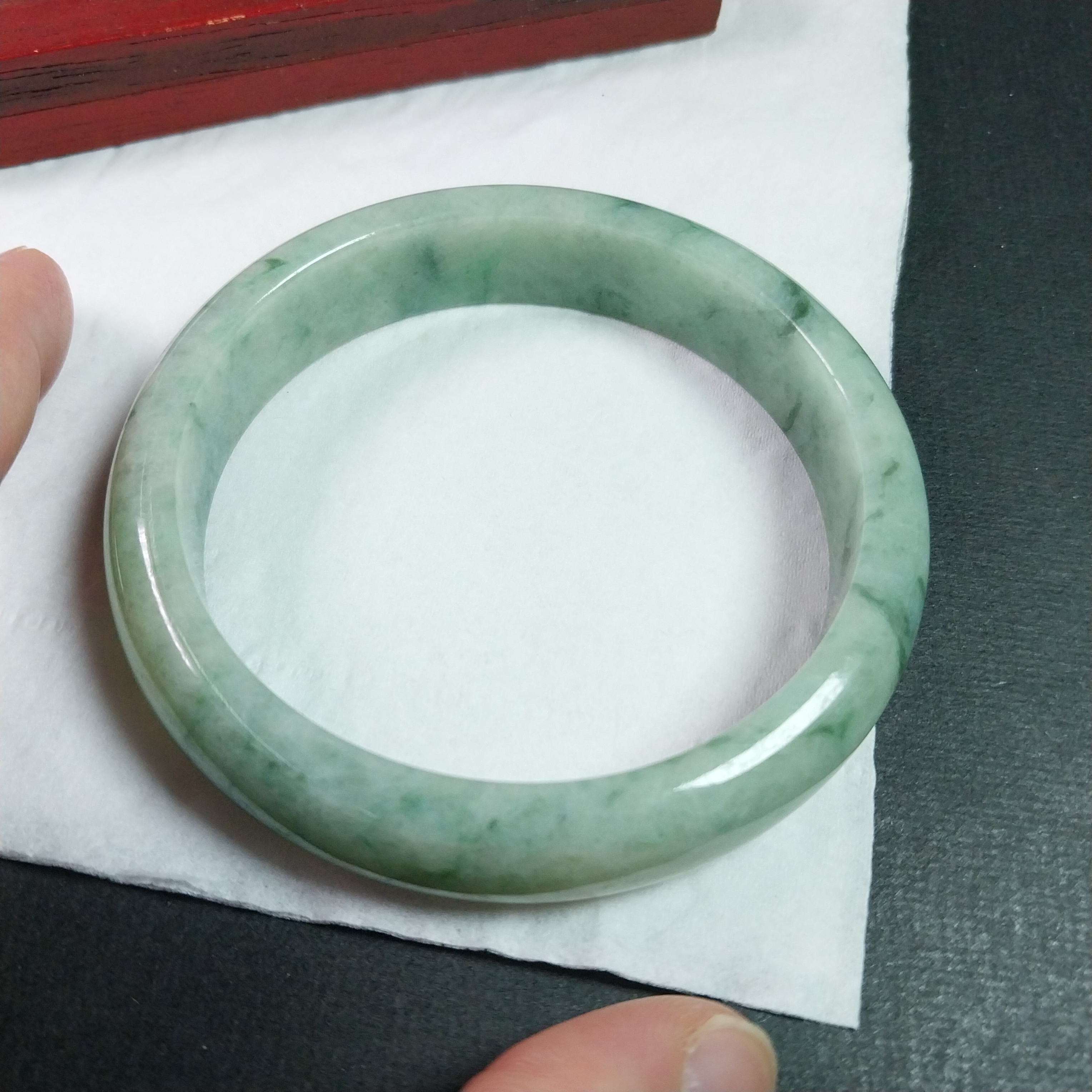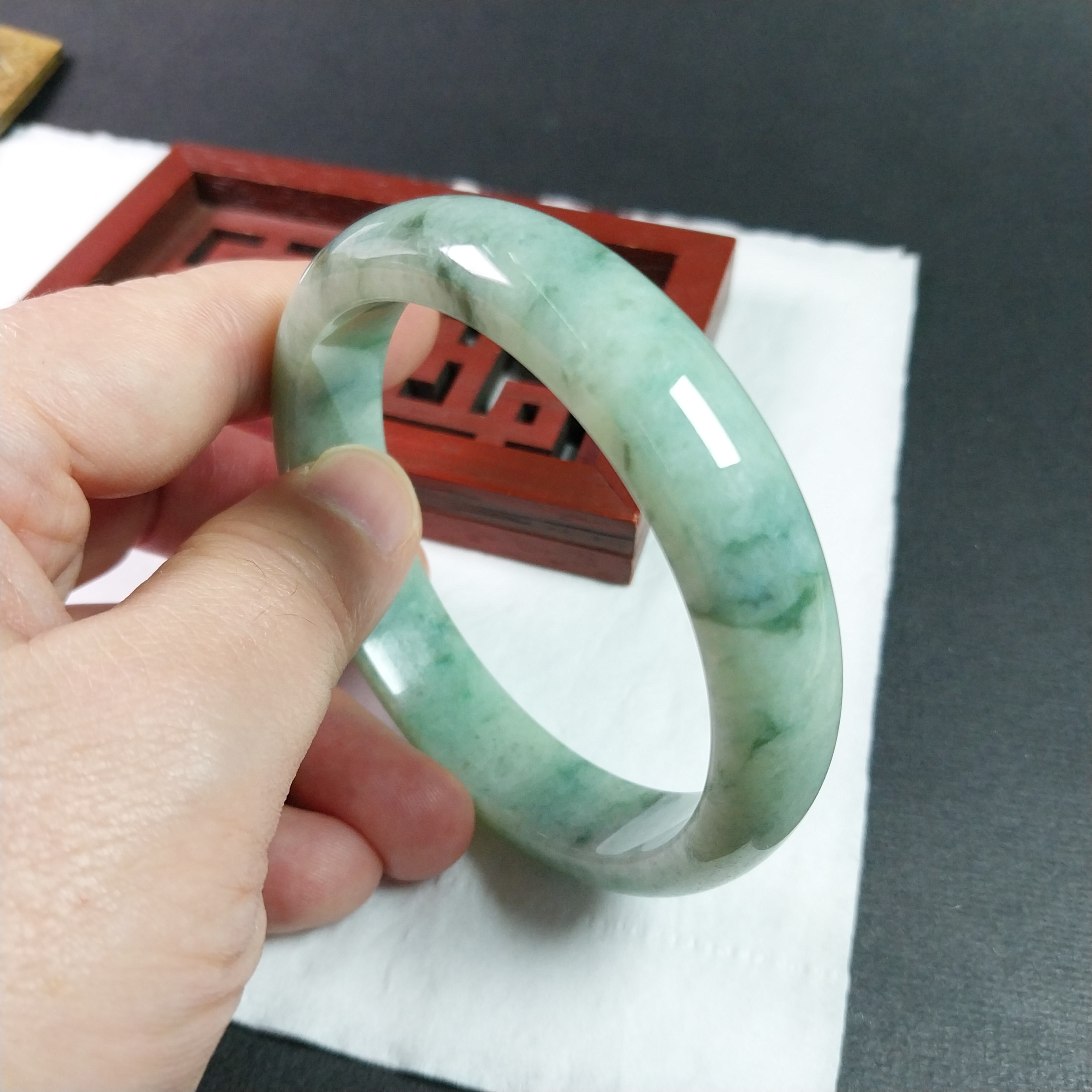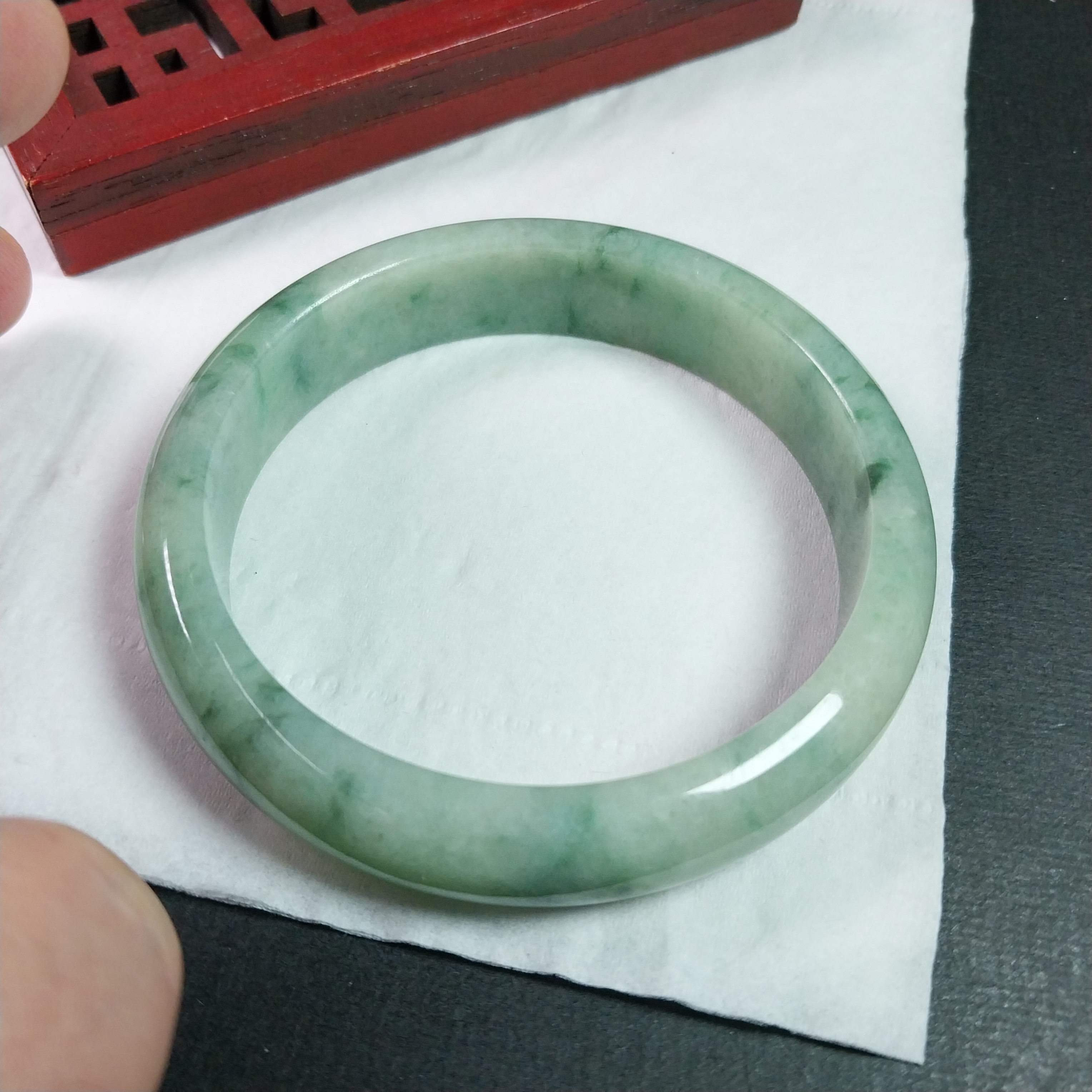 • 冰糯飄花福鐲 61.4mm,天然翡翠A玉, 緬甸玉, Jade, Jadeite