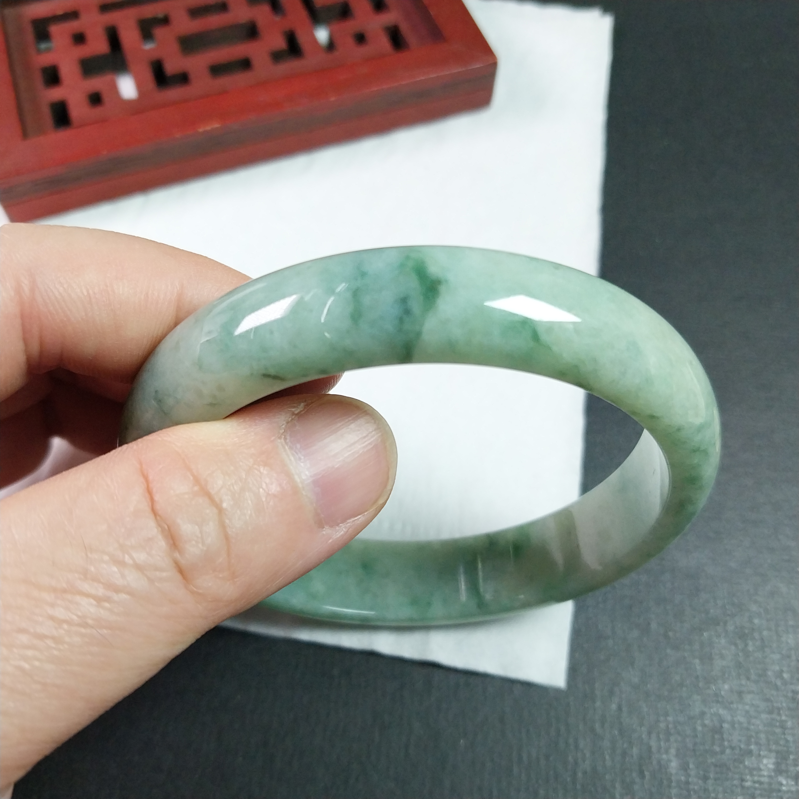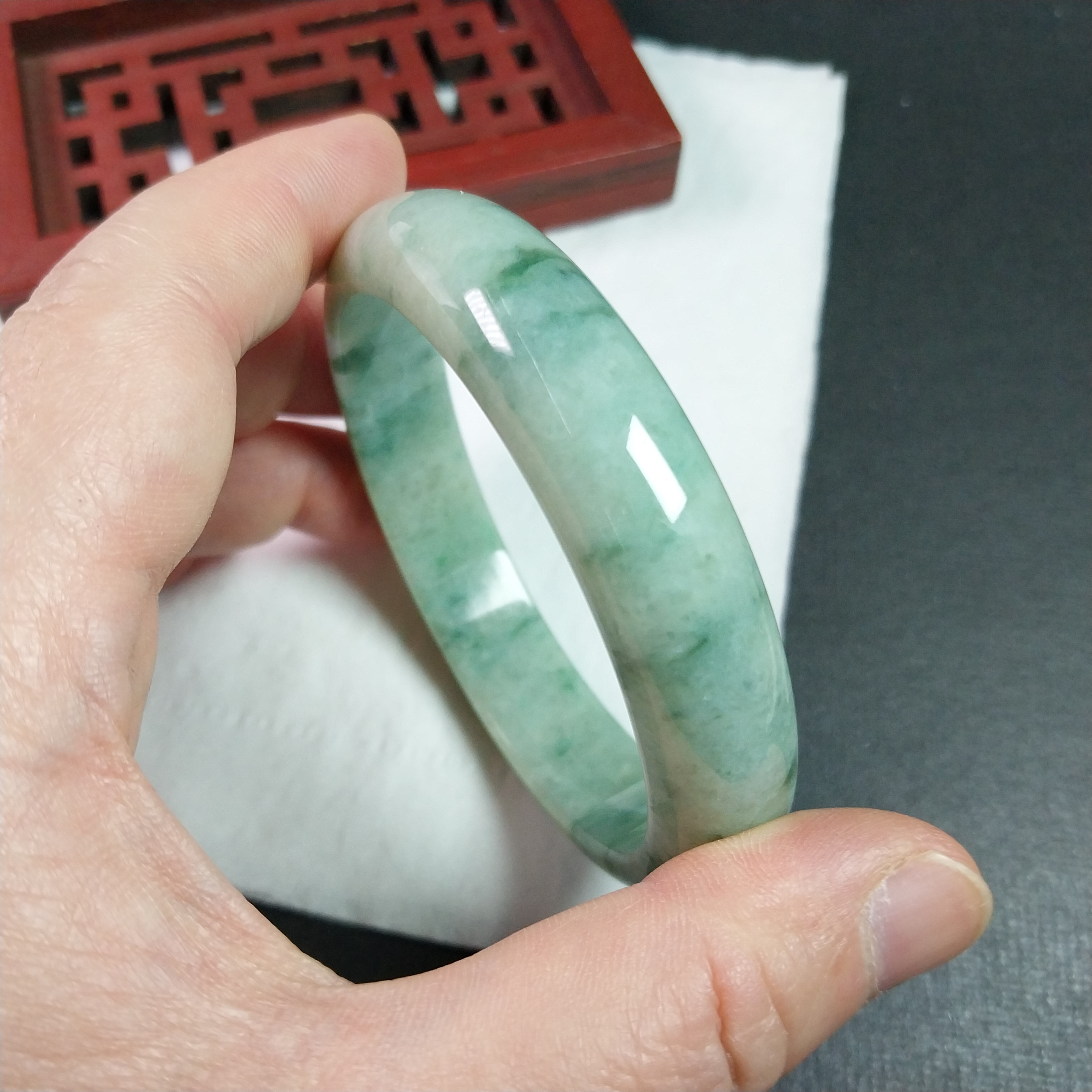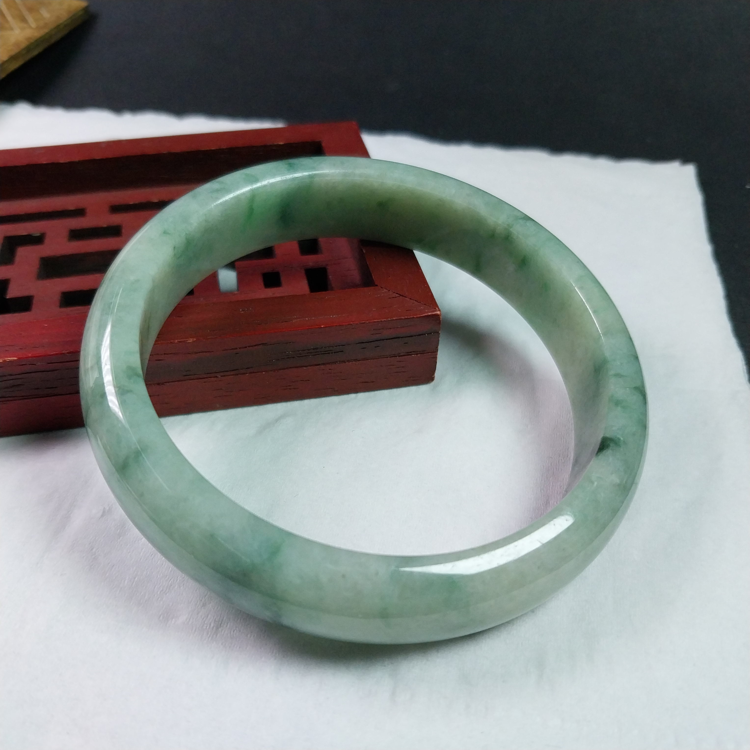 • 冰糯飄花福鐲 61.4mm,天然翡翠A玉, 緬甸玉, Jade, Jadeite