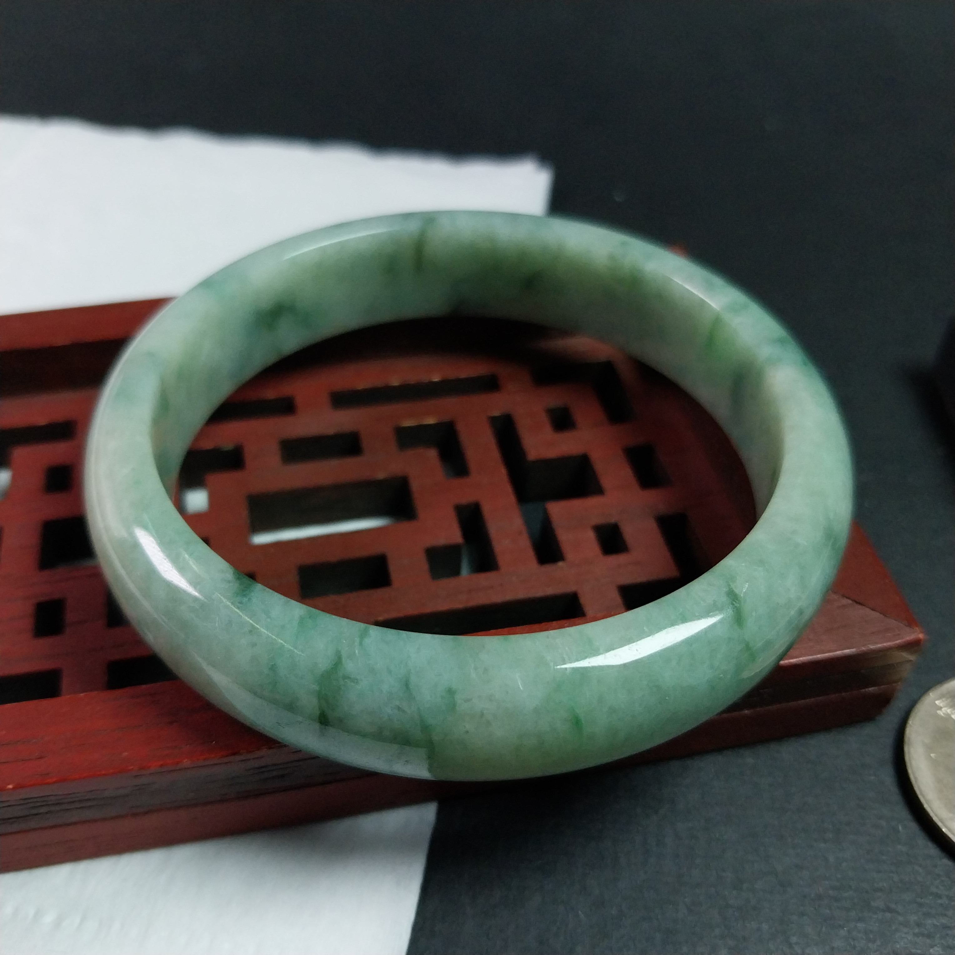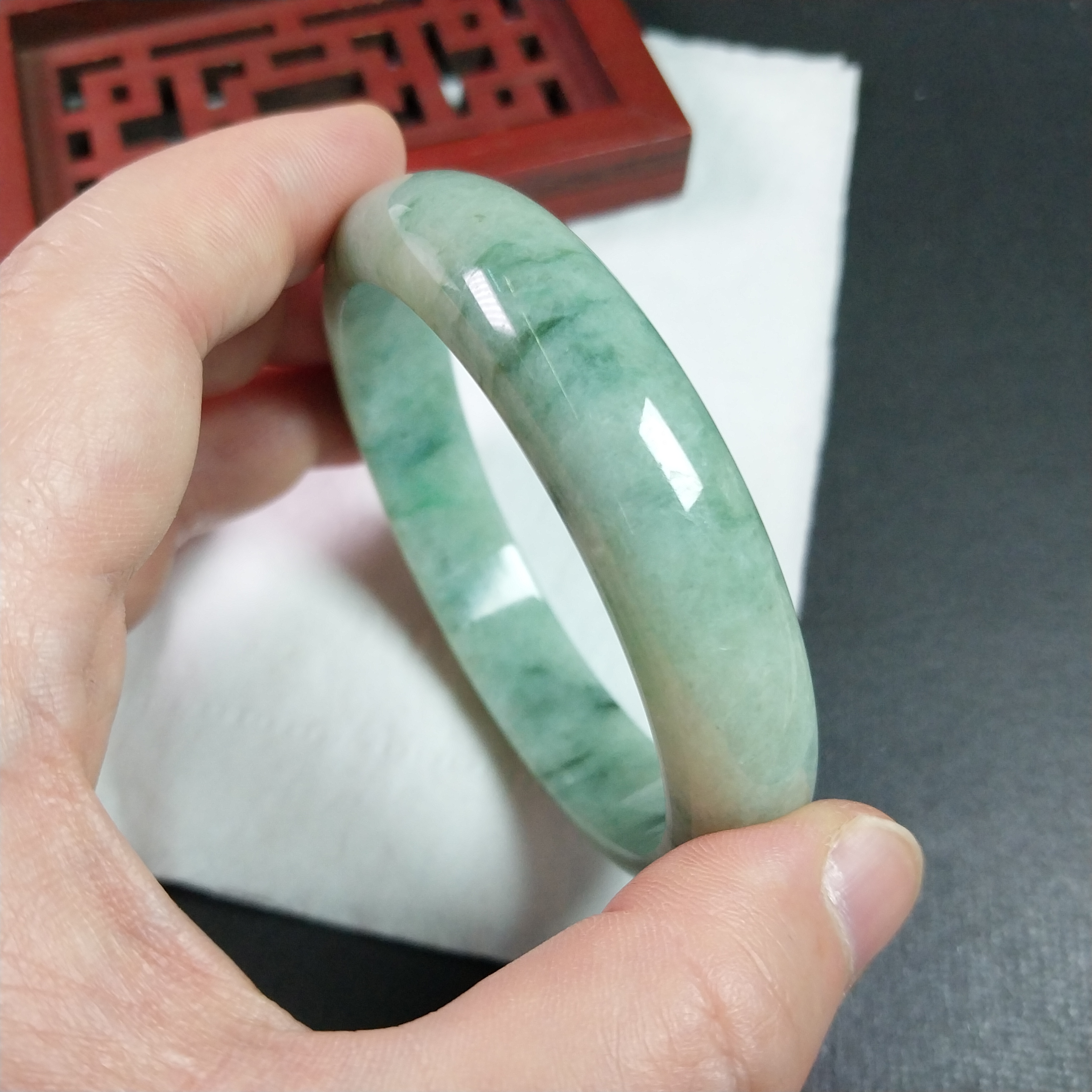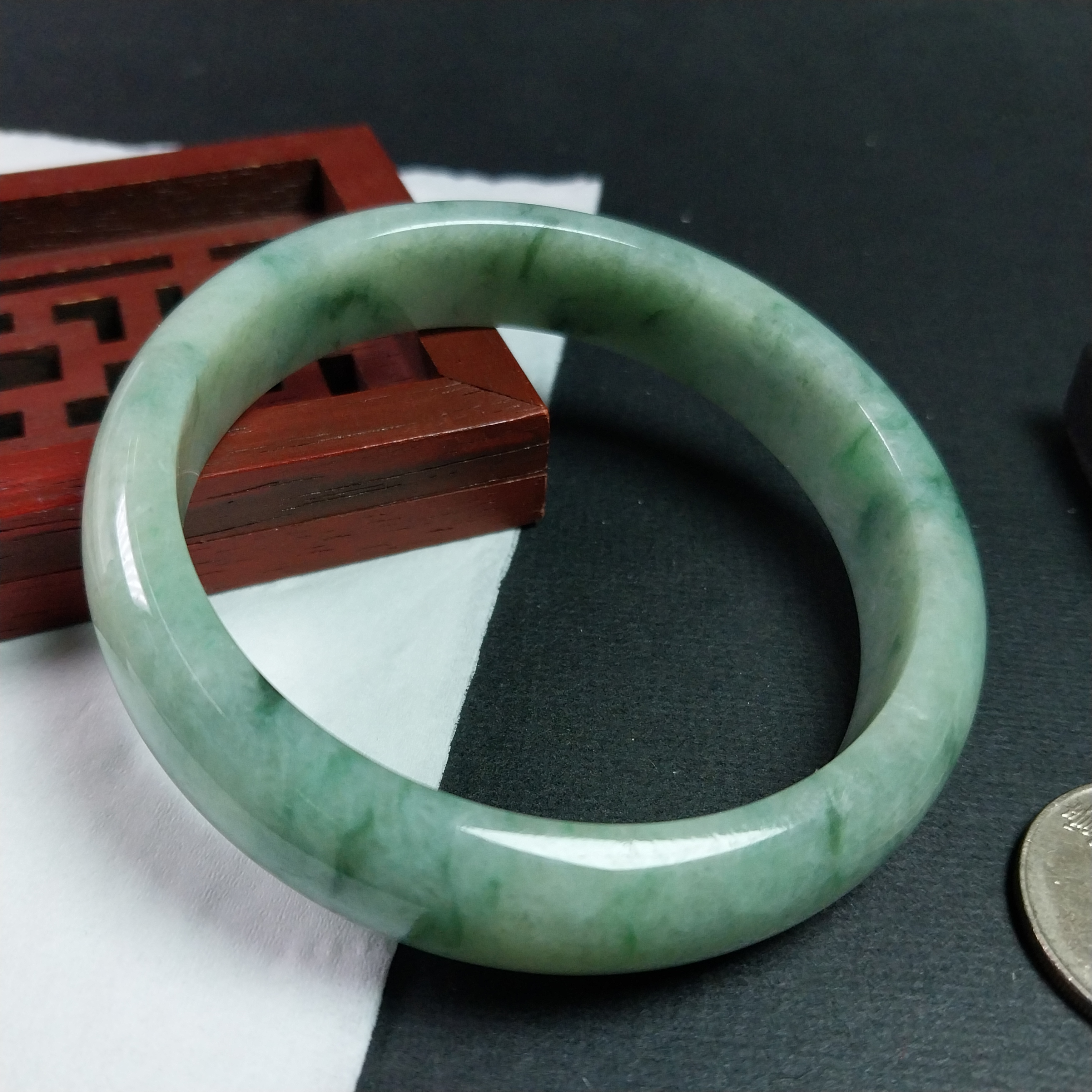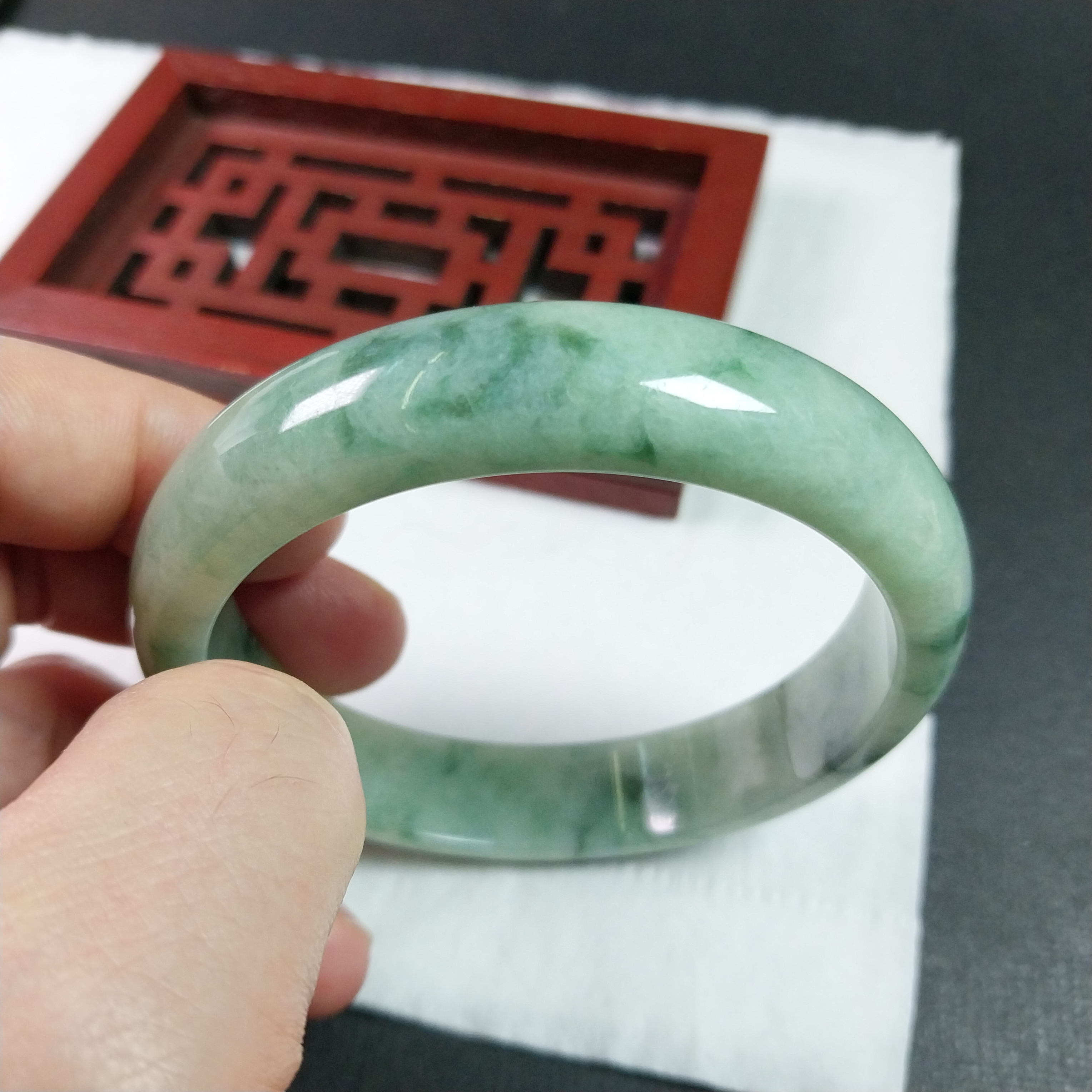 • 冰糯飄花福鐲 61.4mm,天然翡翠A玉, 緬甸玉, Jade, Jadeite