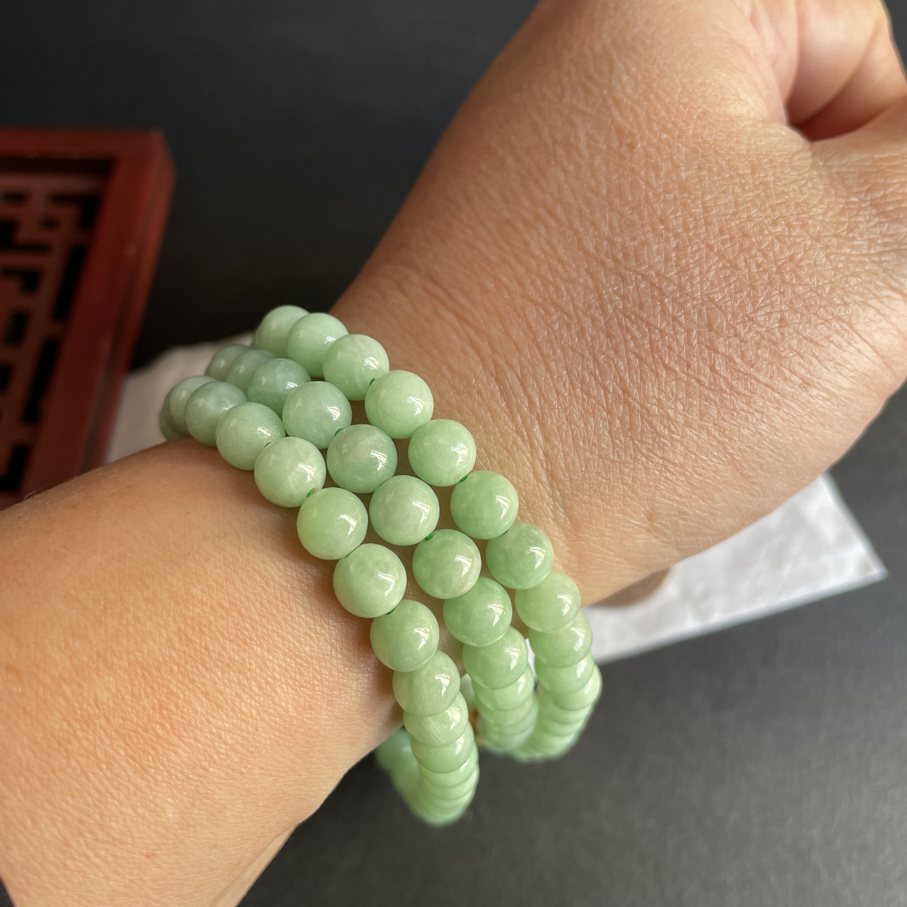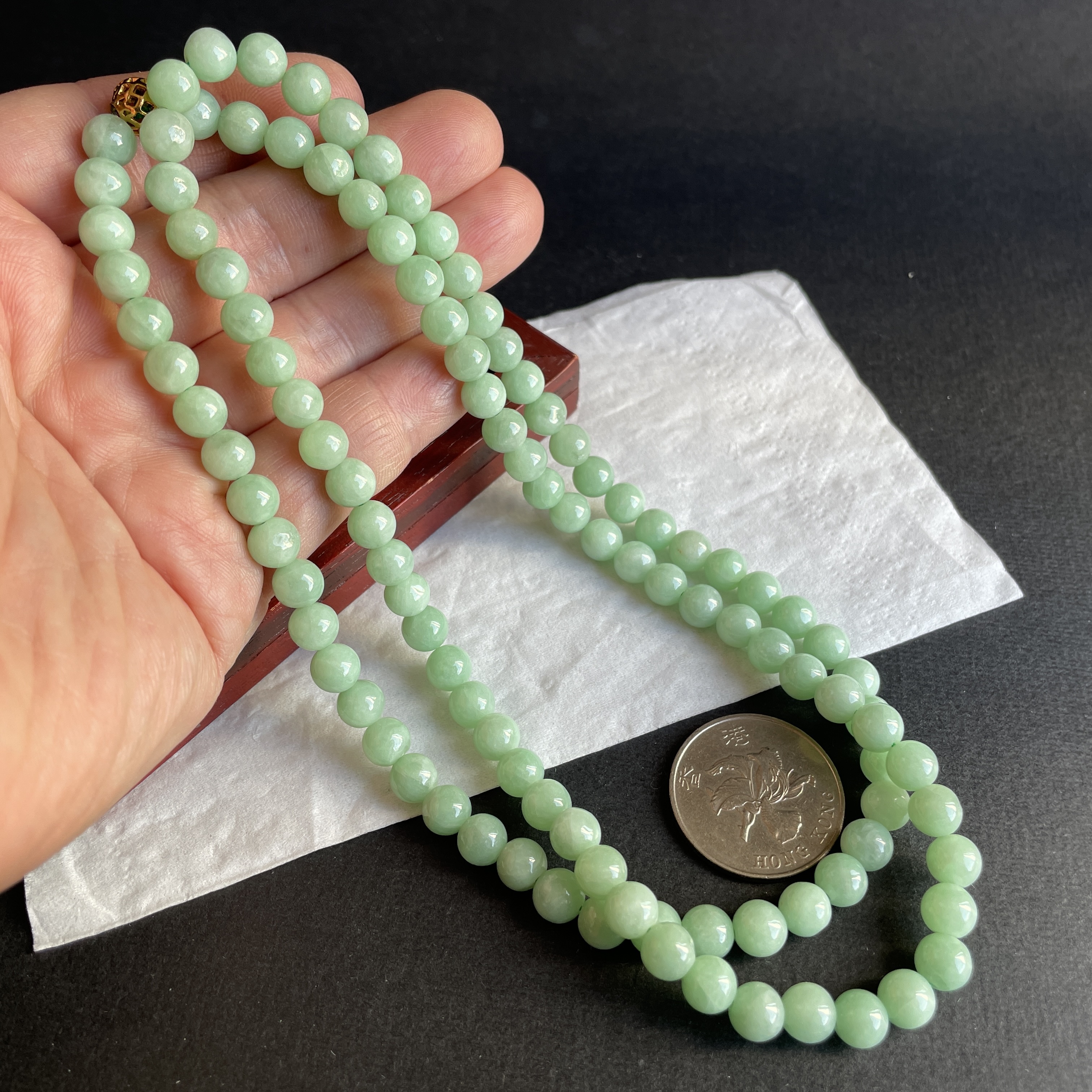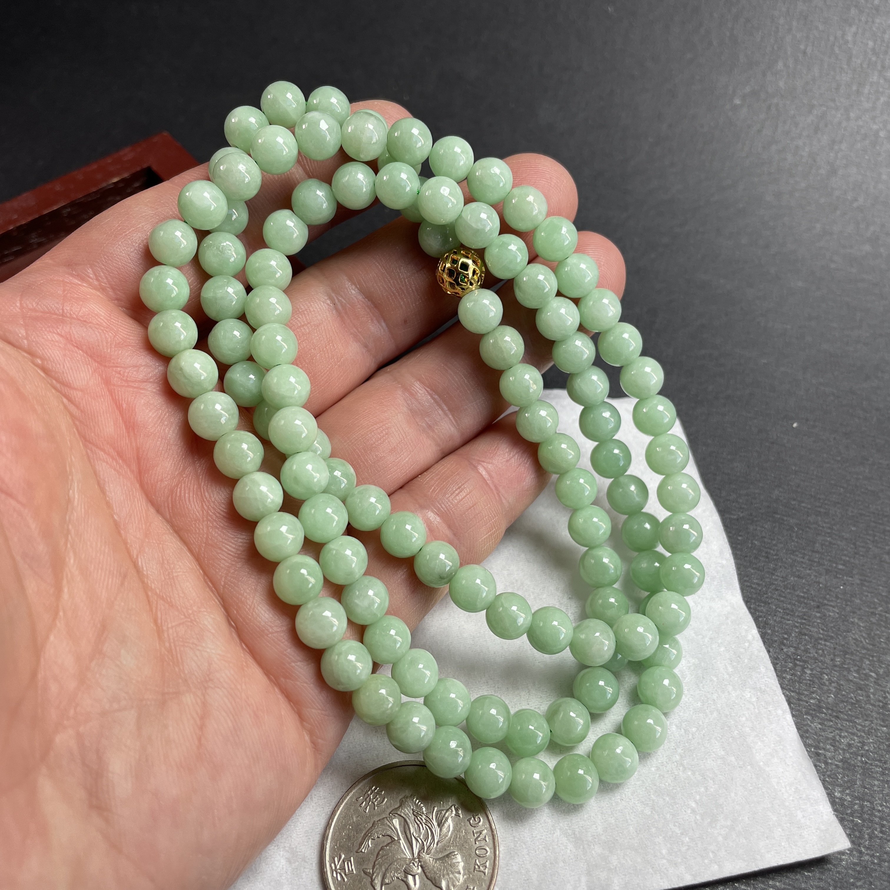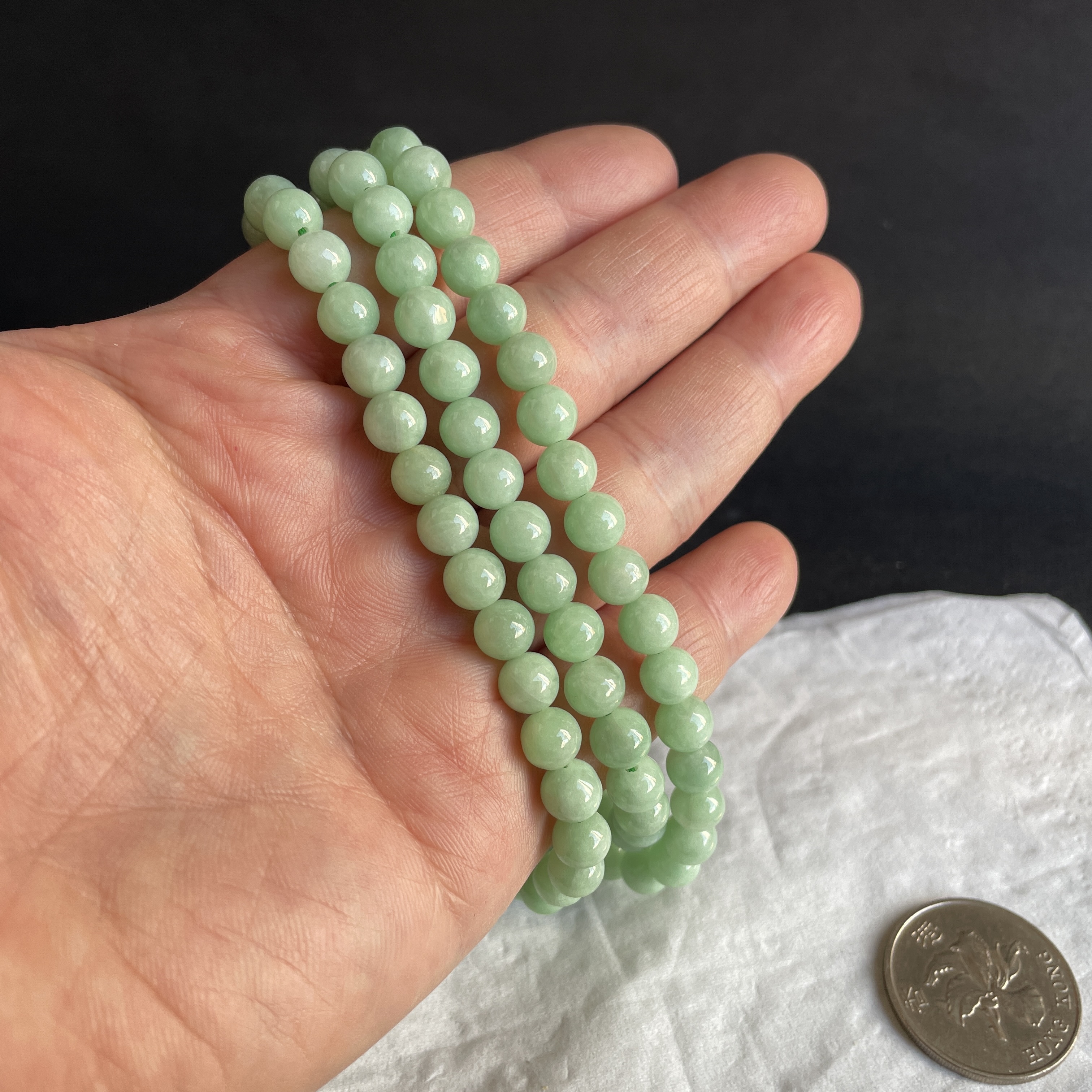 • 翡翠冰糯萍果綠珠鏈 (7mm直徑),天然翡翠A玉, 緬甸玉, Jade, Jadeite