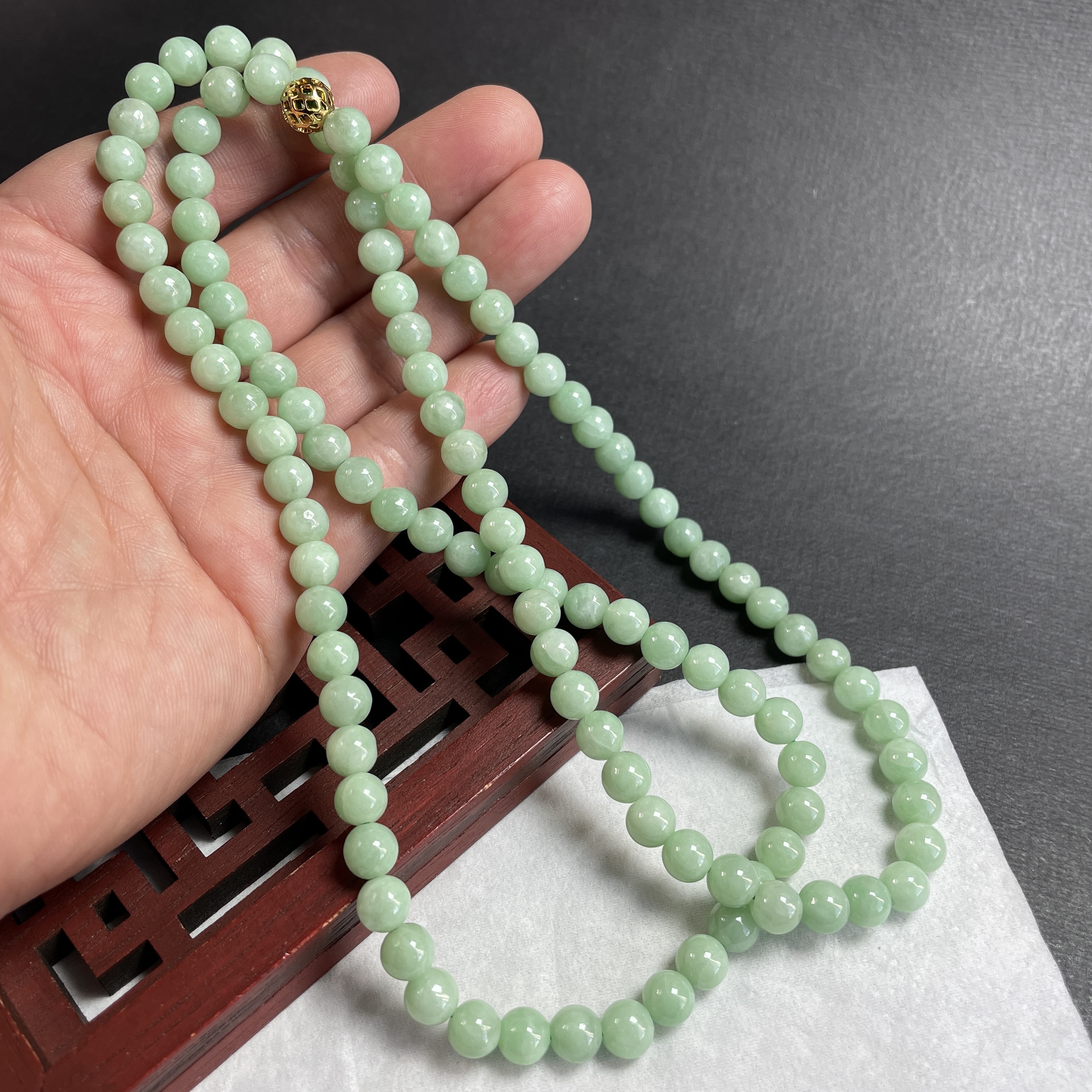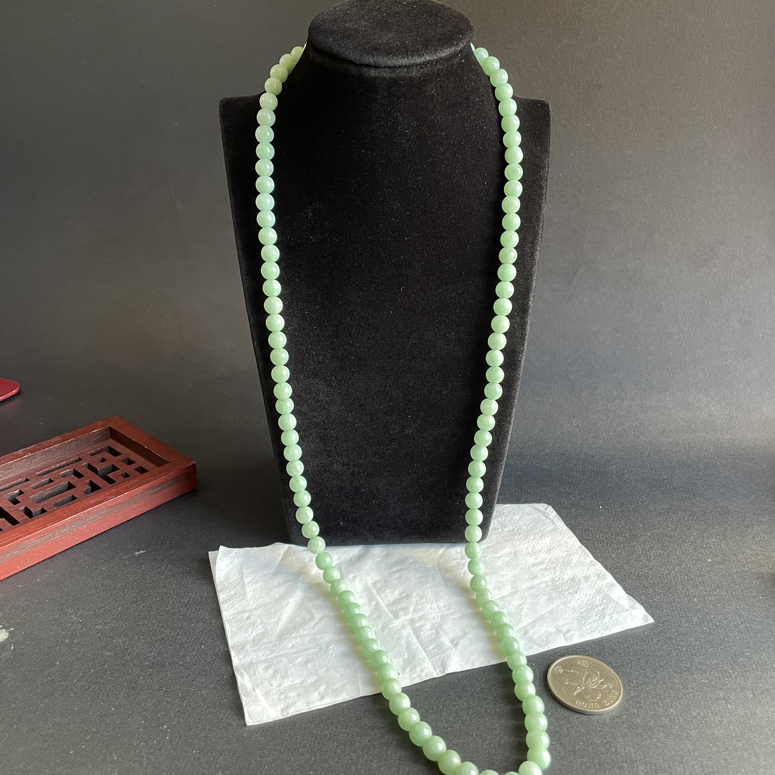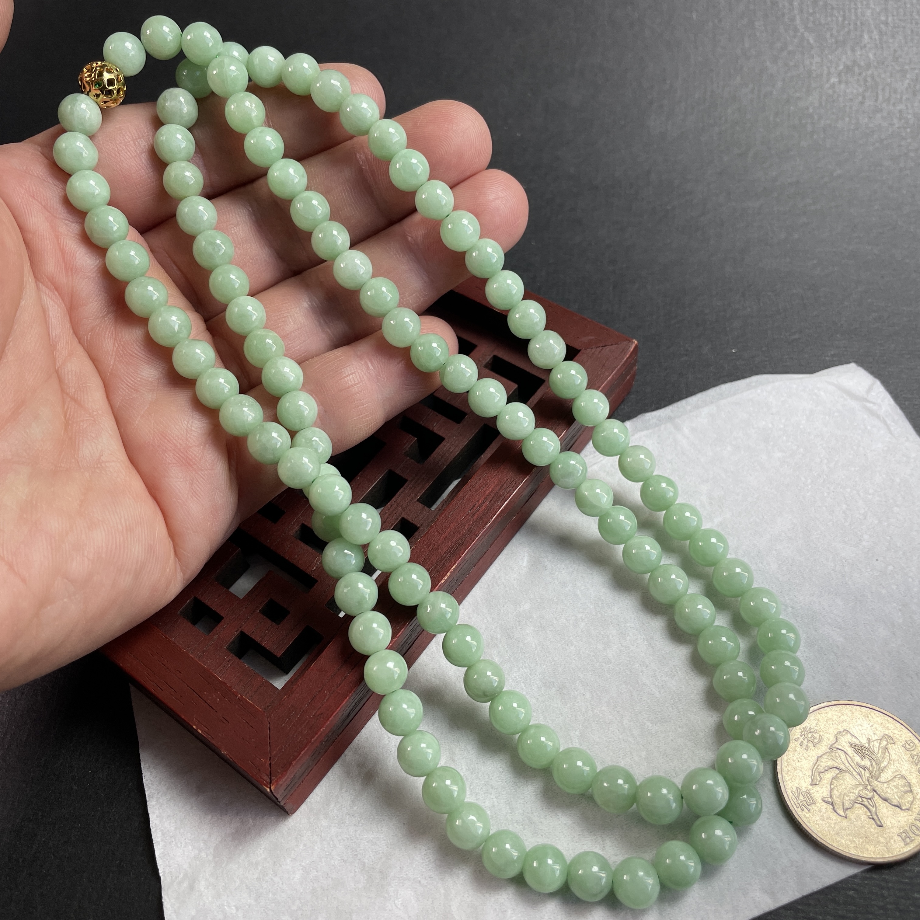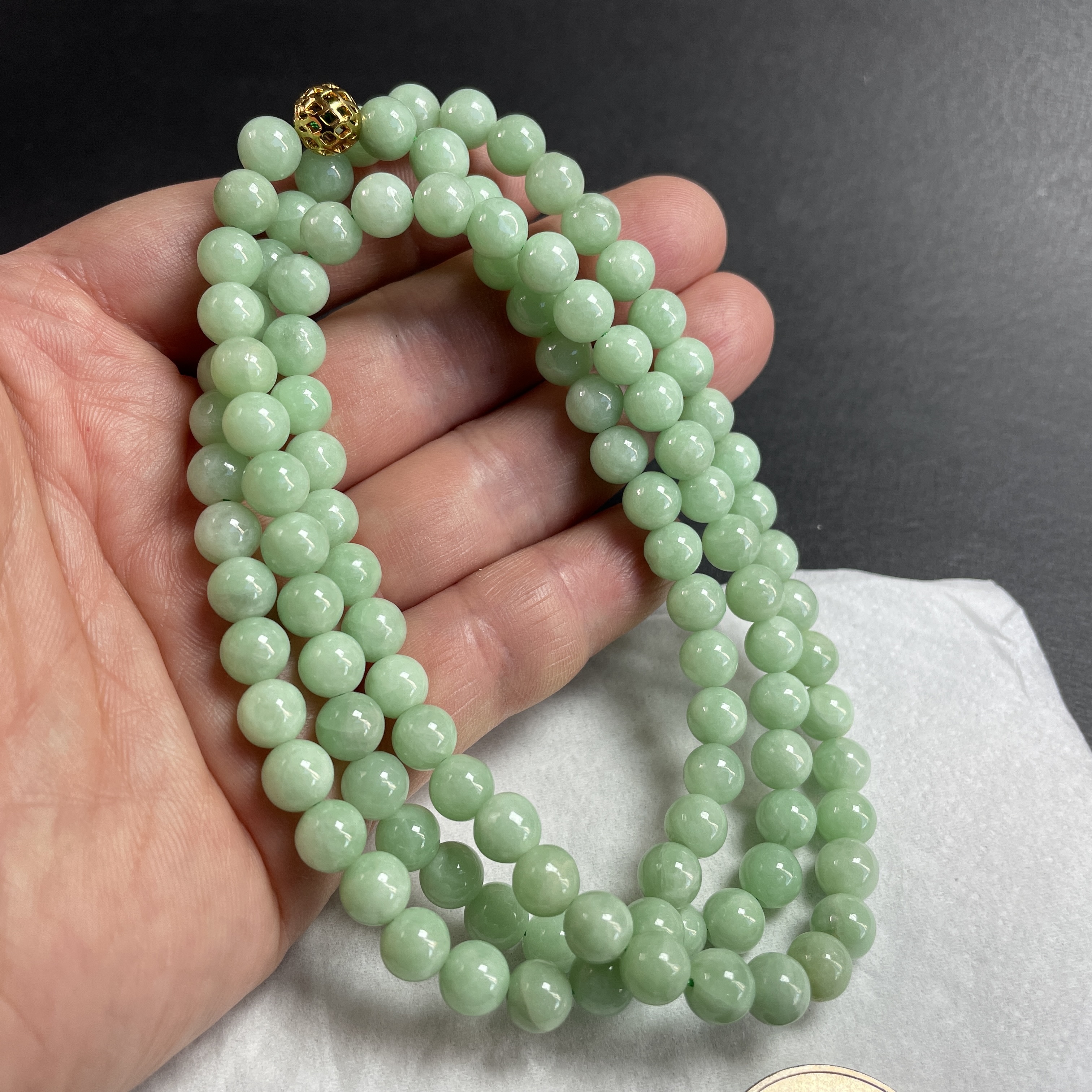 • 翡翠冰糯萍果綠珠鏈 (7mm直徑),天然翡翠A玉, 緬甸玉, Jade, Jadeite