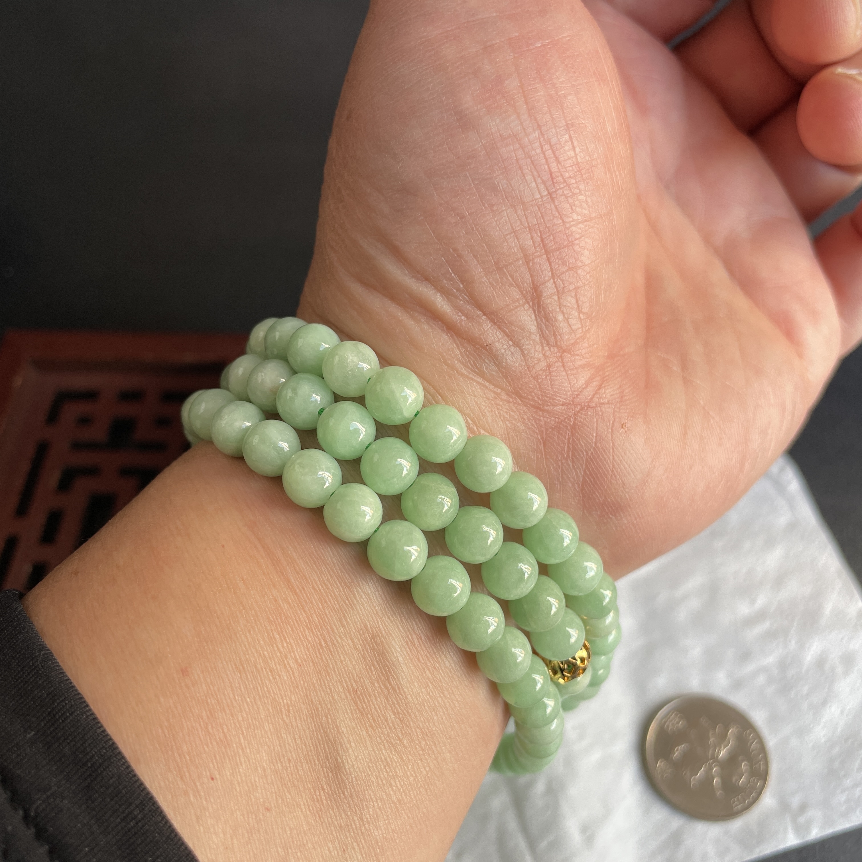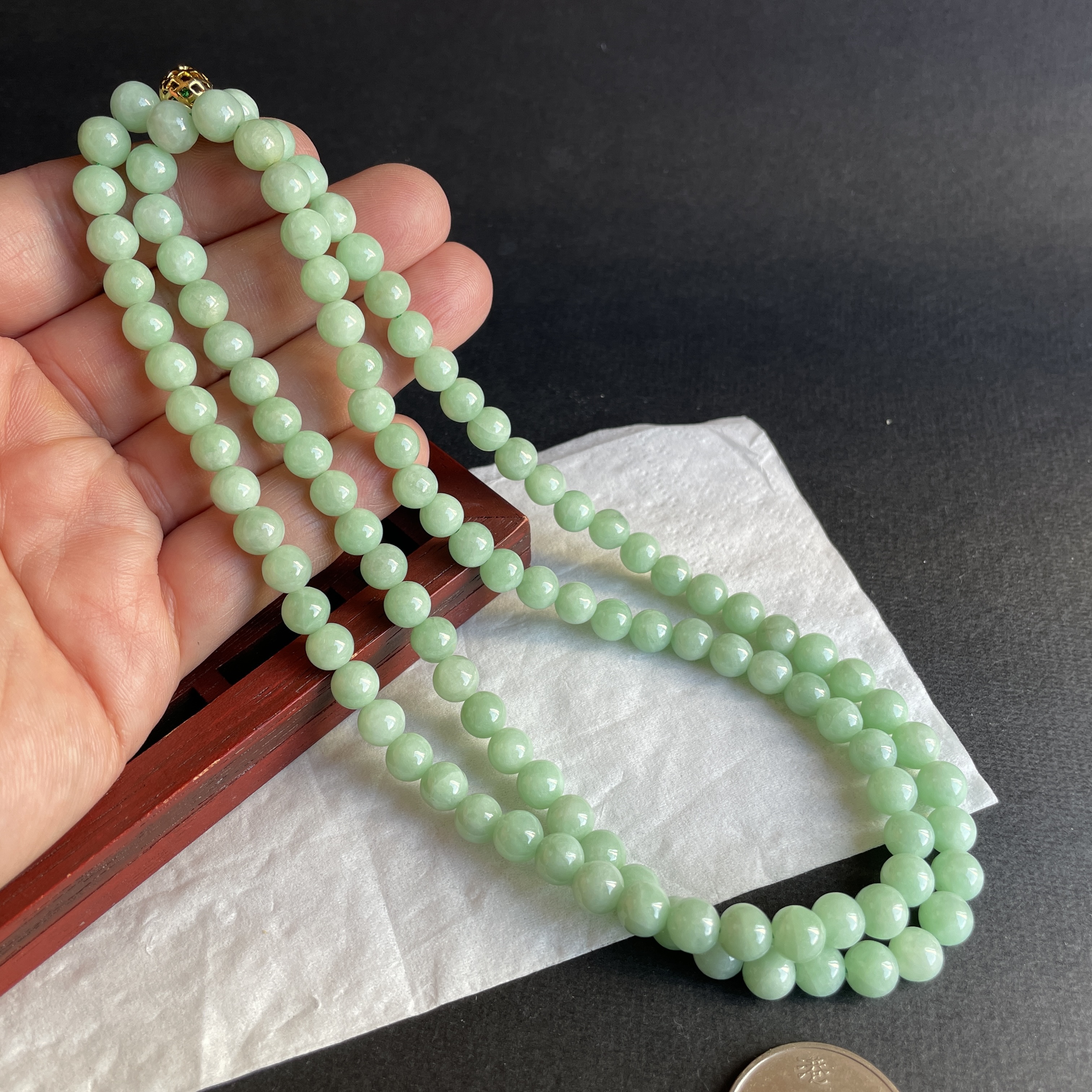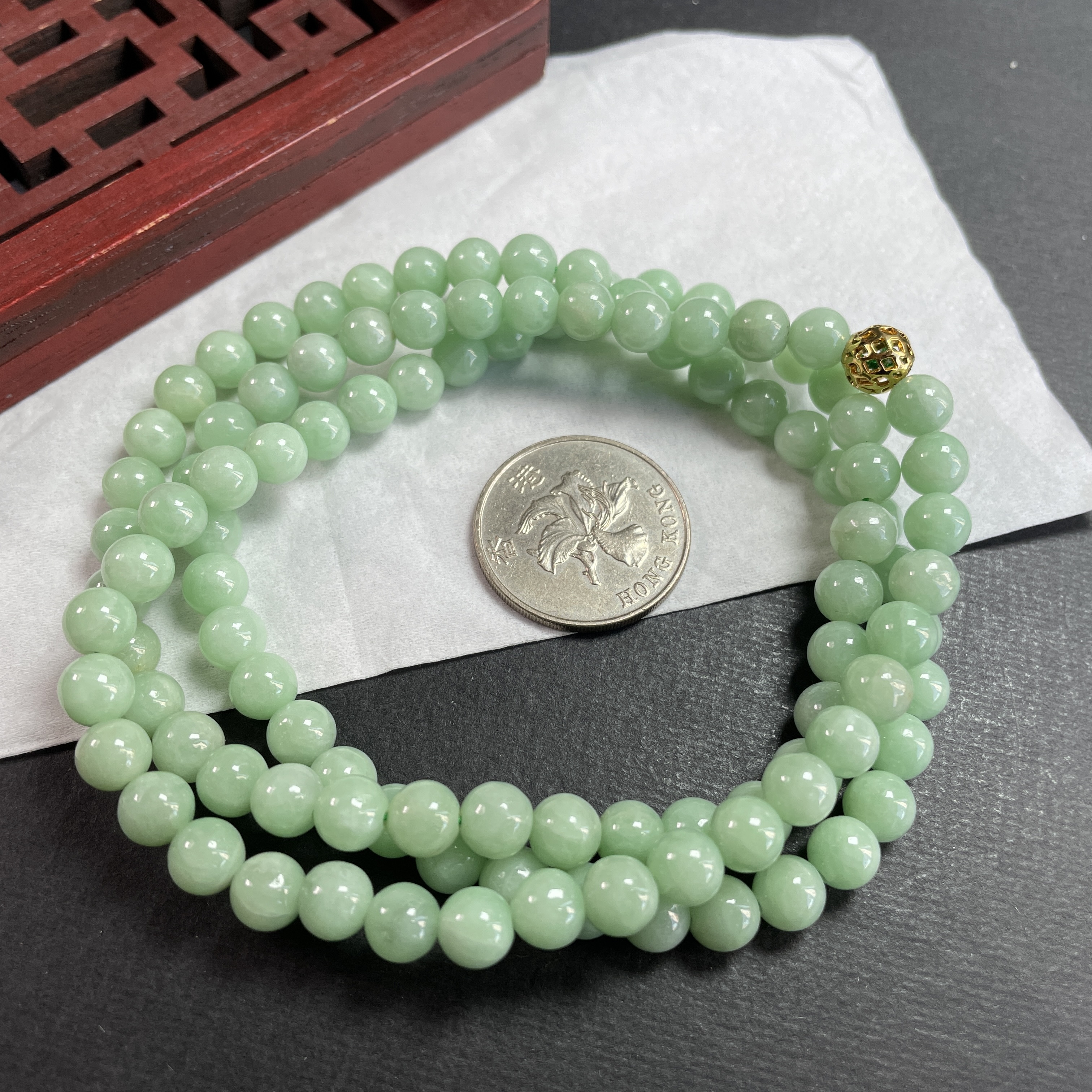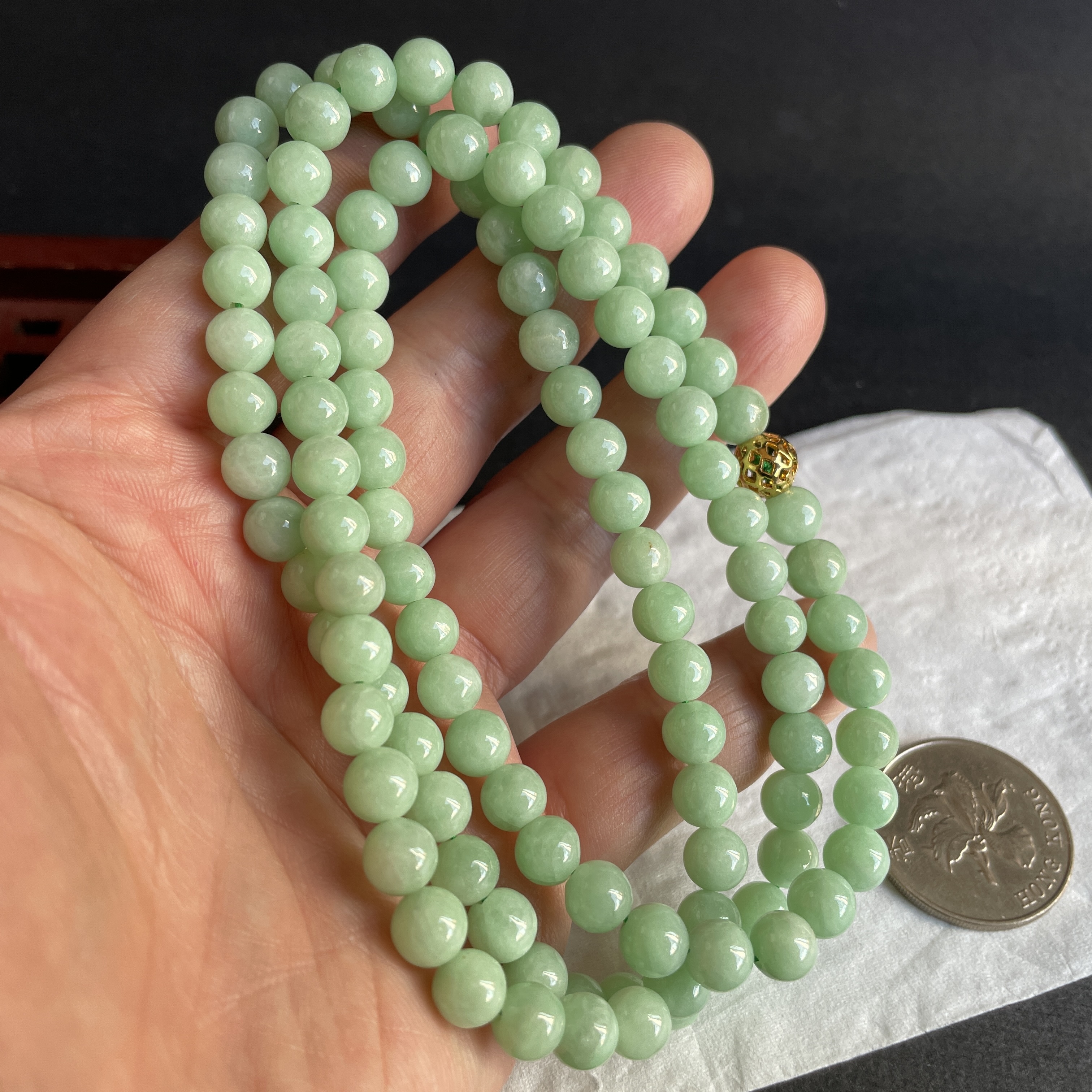 • 翡翠冰糯萍果綠珠鏈 (7mm直徑),天然翡翠A玉, 緬甸玉, Jade, Jadeite