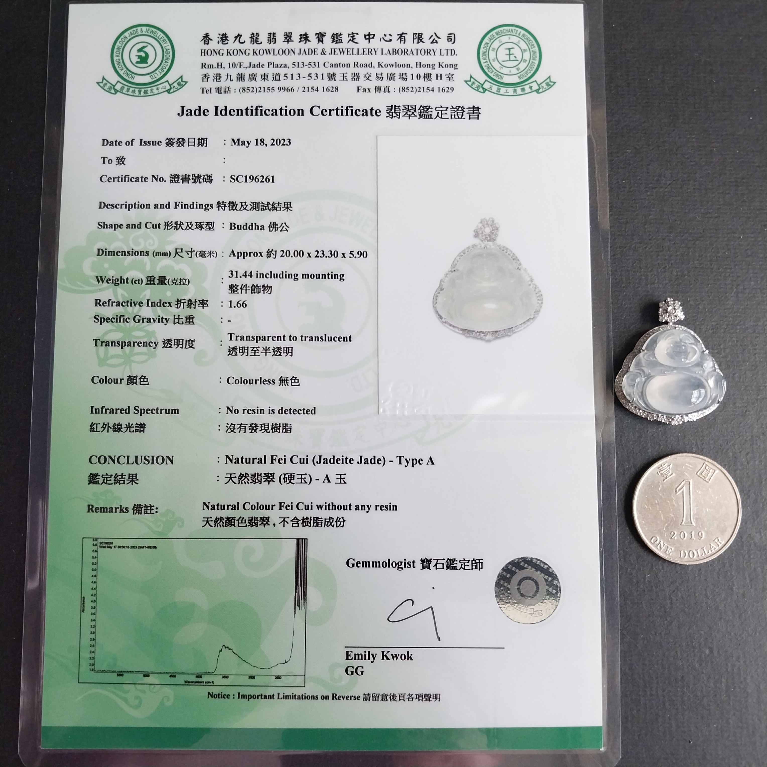 超過$1萬的貨品均包香港翡翠鑑定証書;