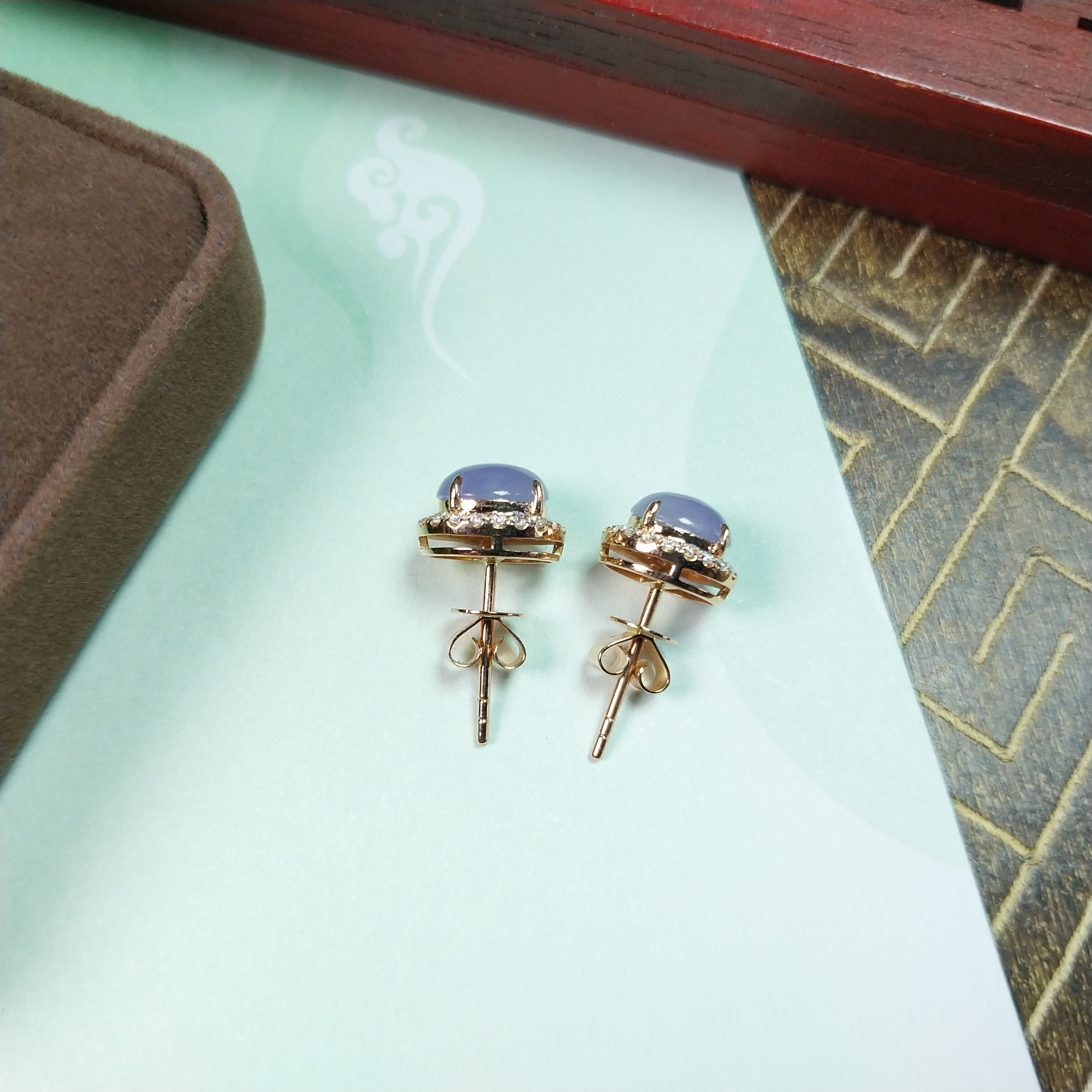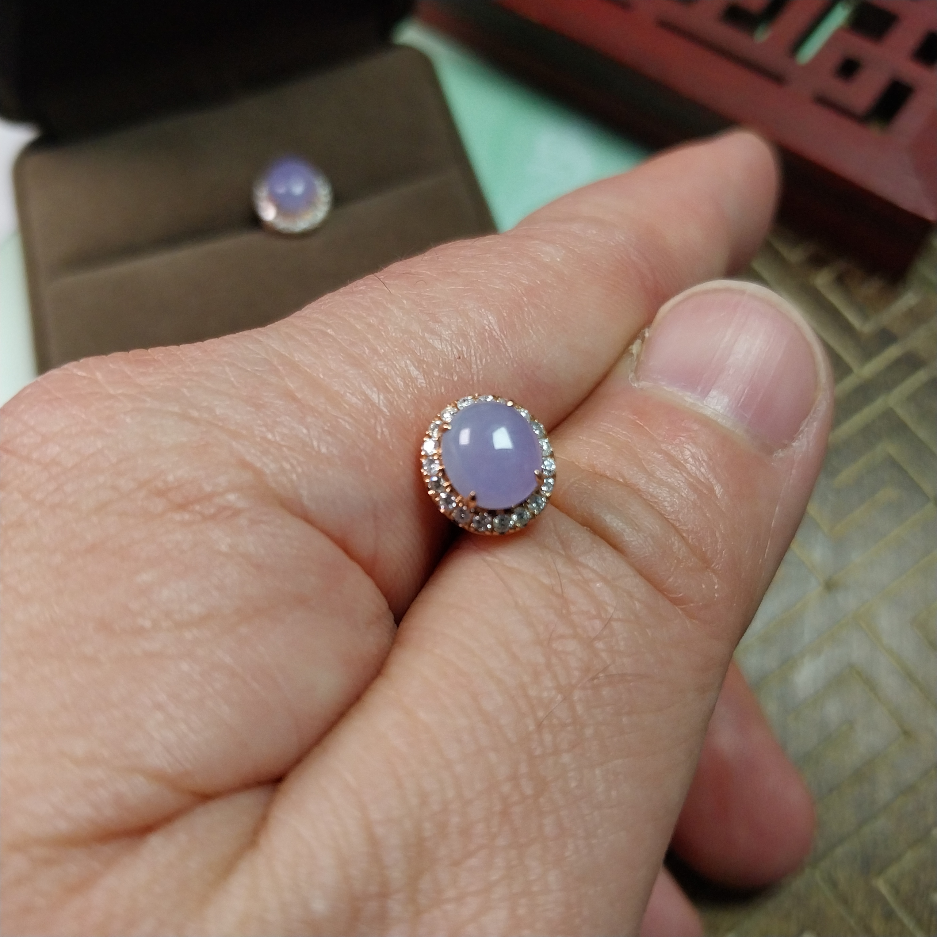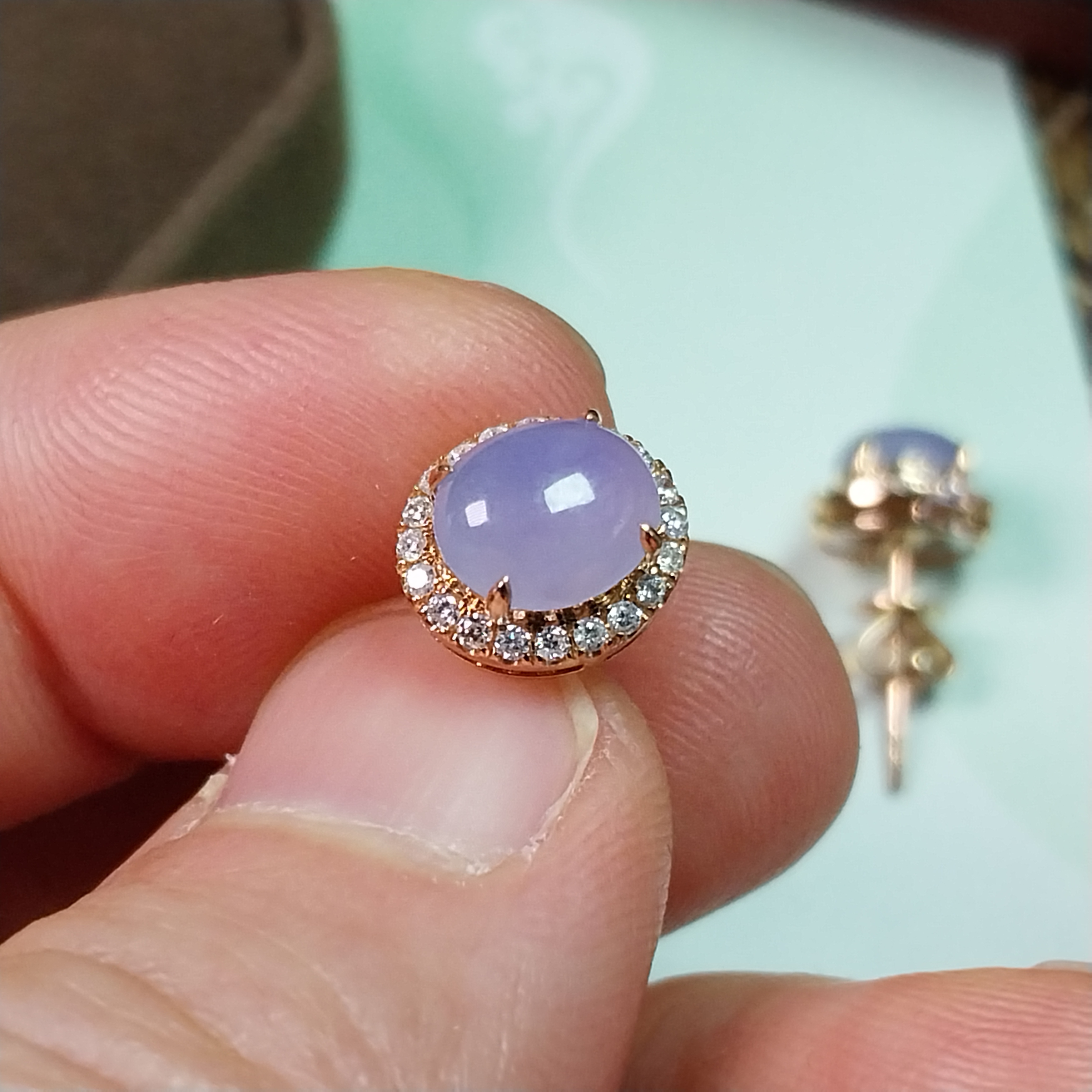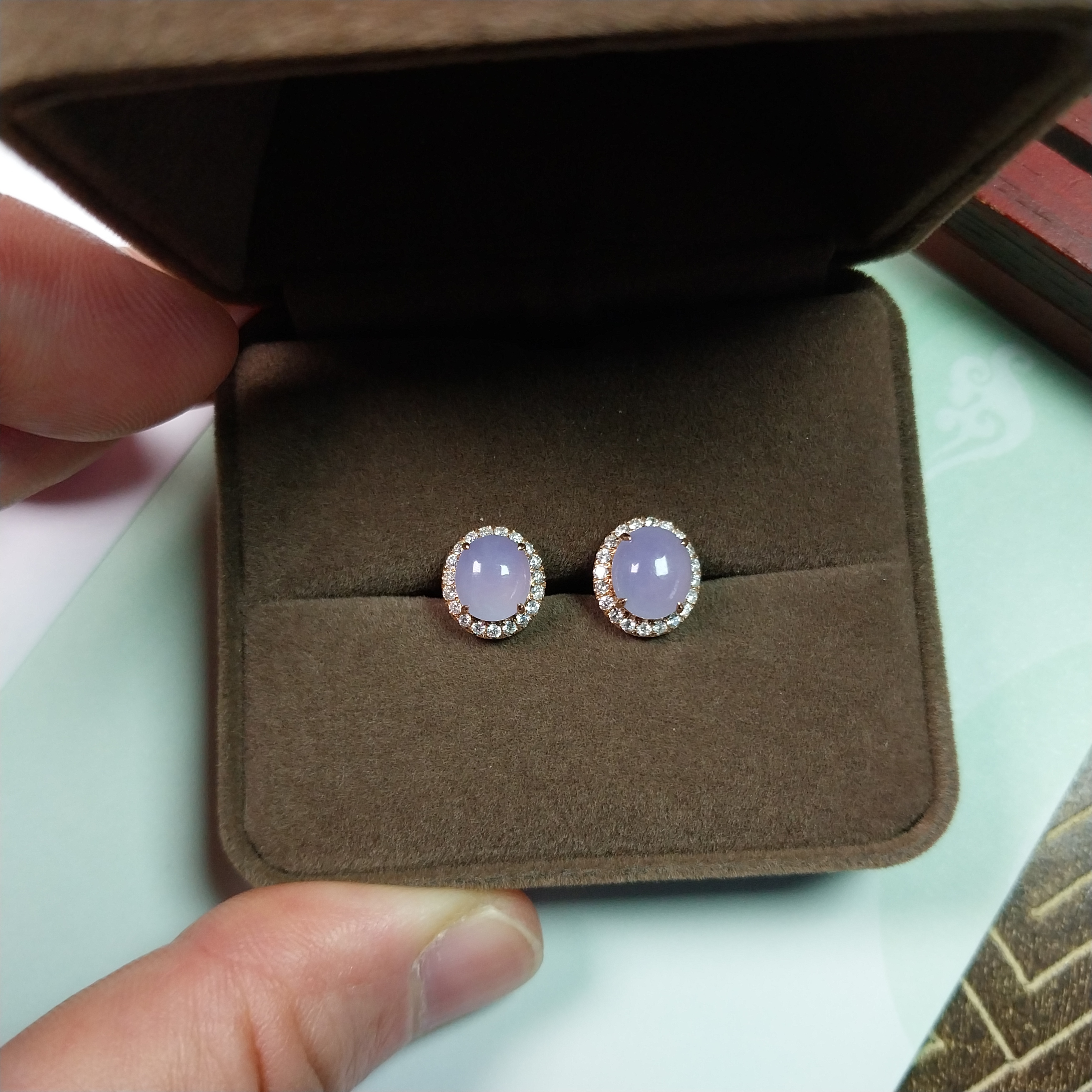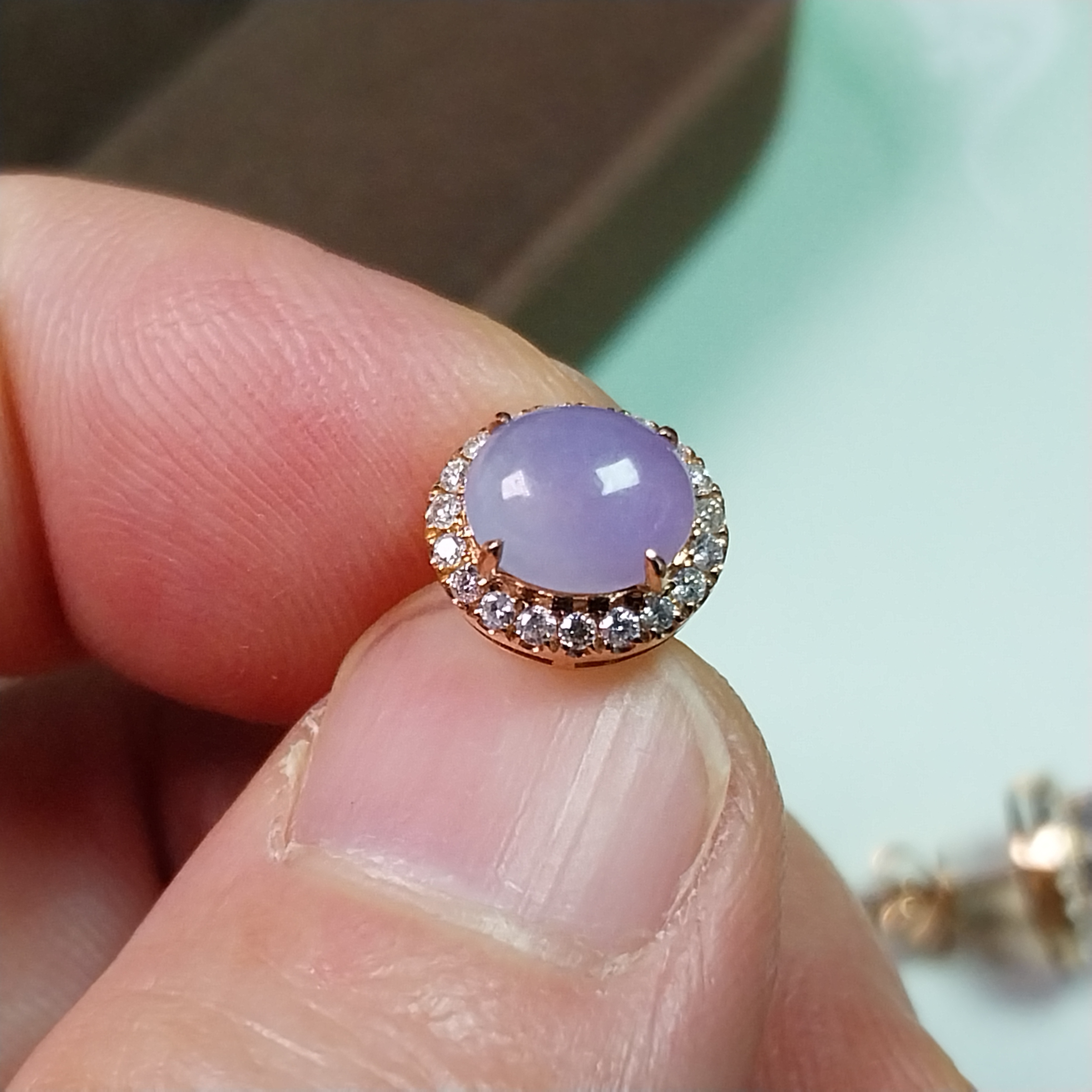 • 冰紫羅蘭蛋面耳釘,天然翡翠A玉, 緬甸玉, Jade, Jadeite
