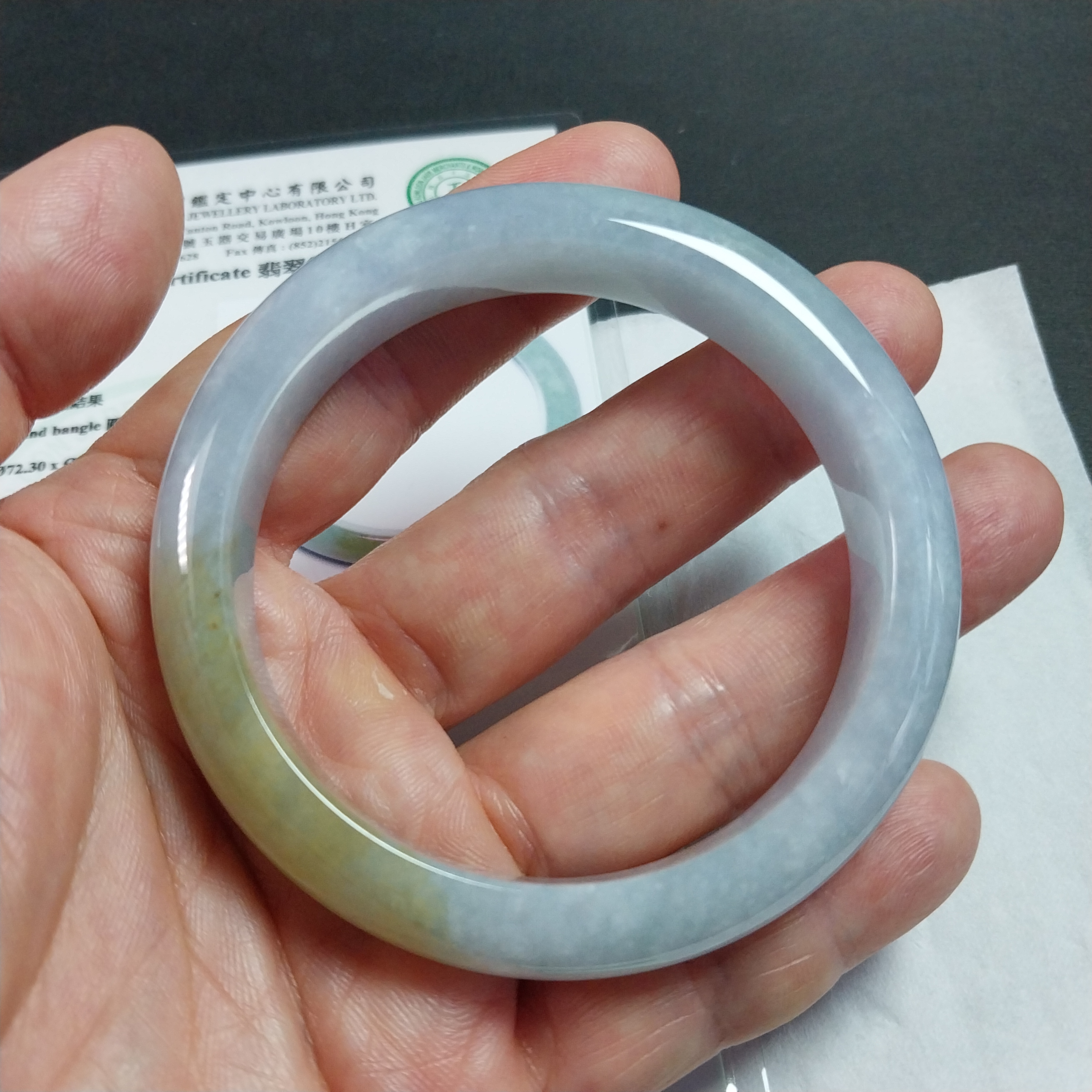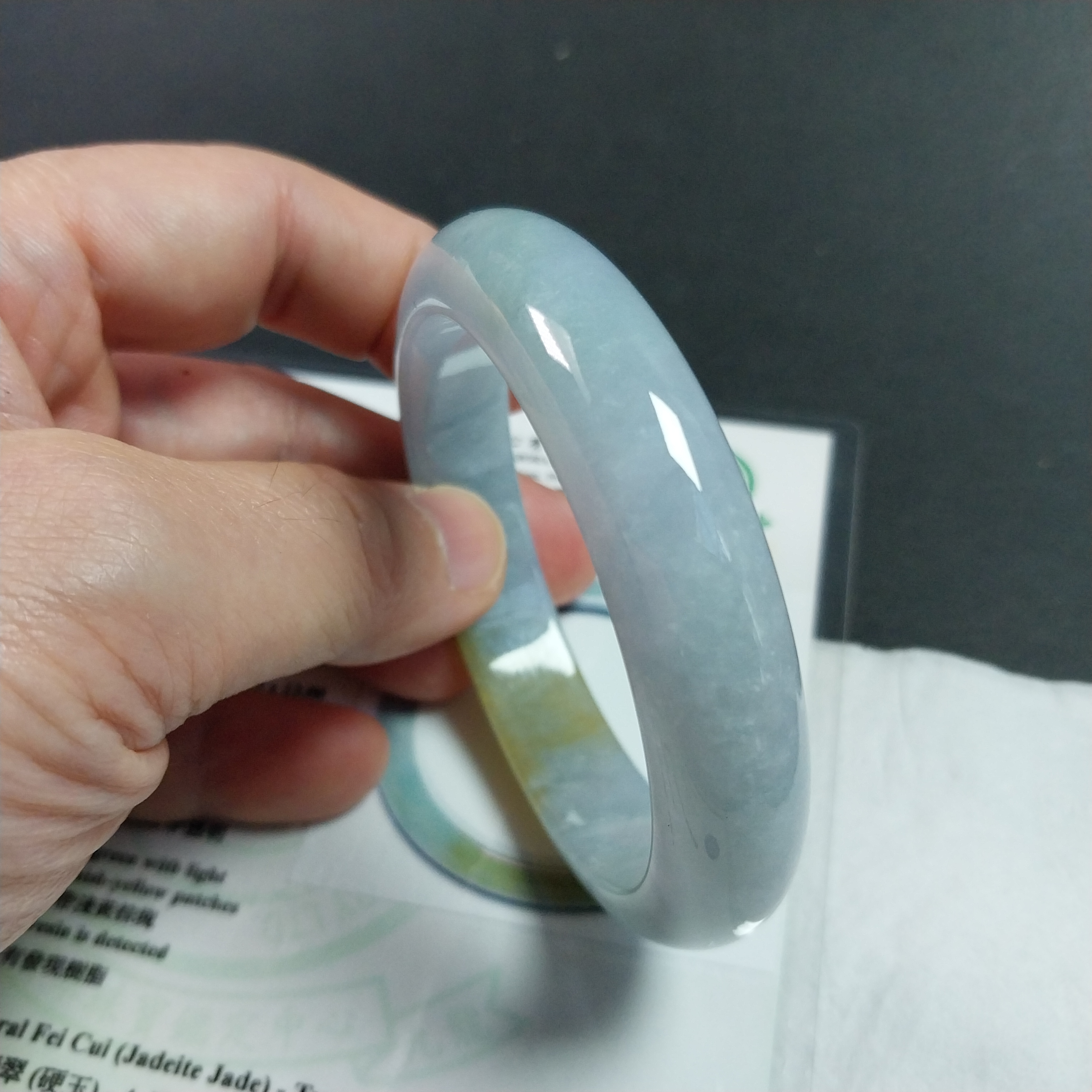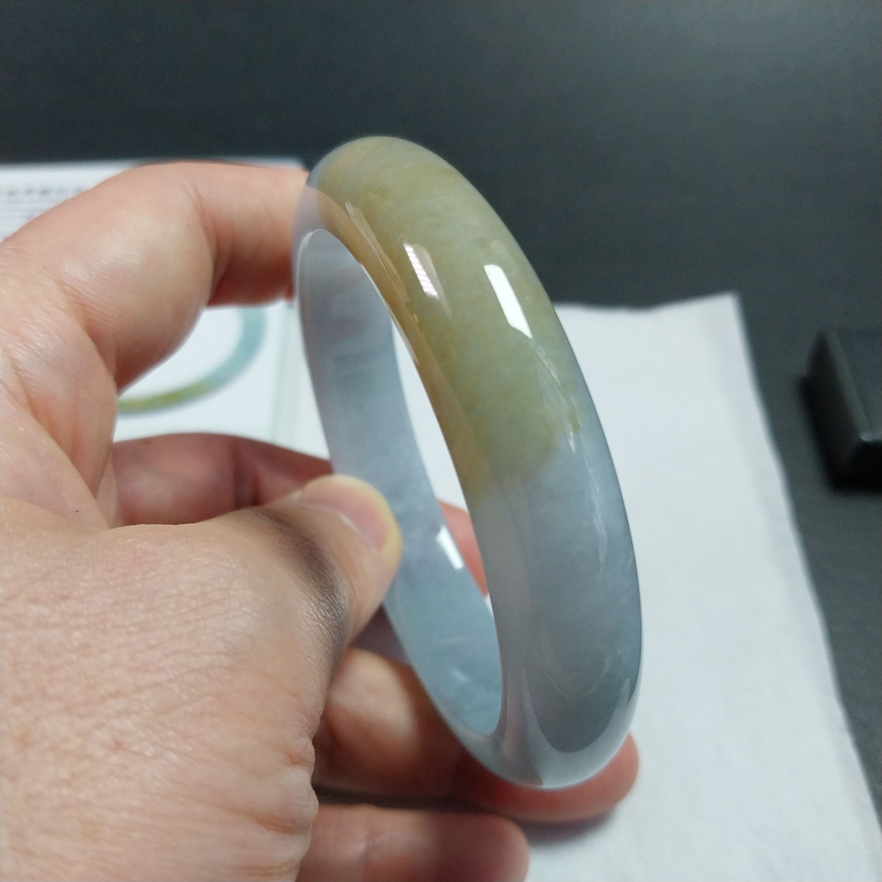 • 冰糯天空藍黃翡福鐲 56mm,天然翡翠A玉, 緬甸玉, Jade, Jadeite