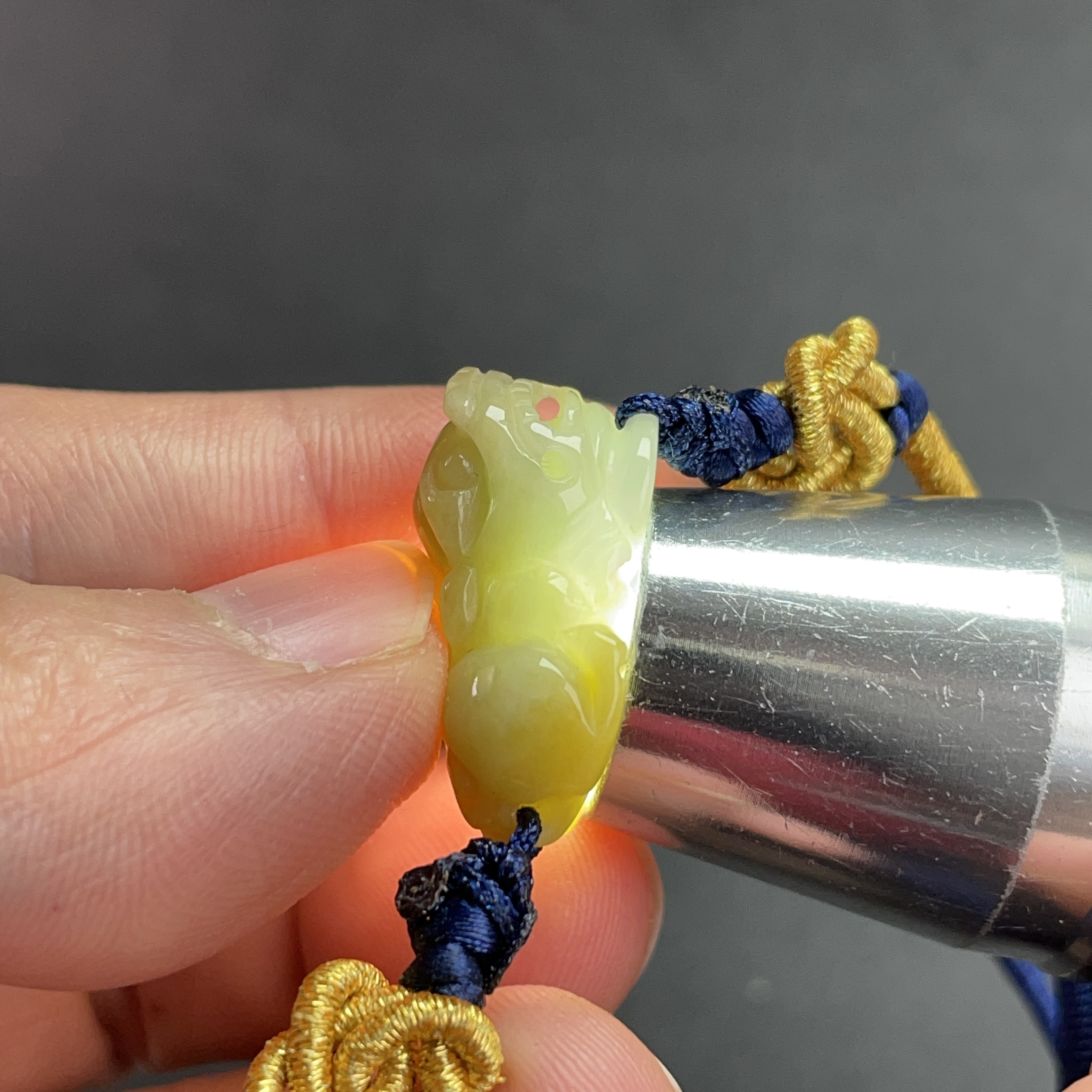 - 天然玉石在不同光線下,會呈現出不同的顏色變化;