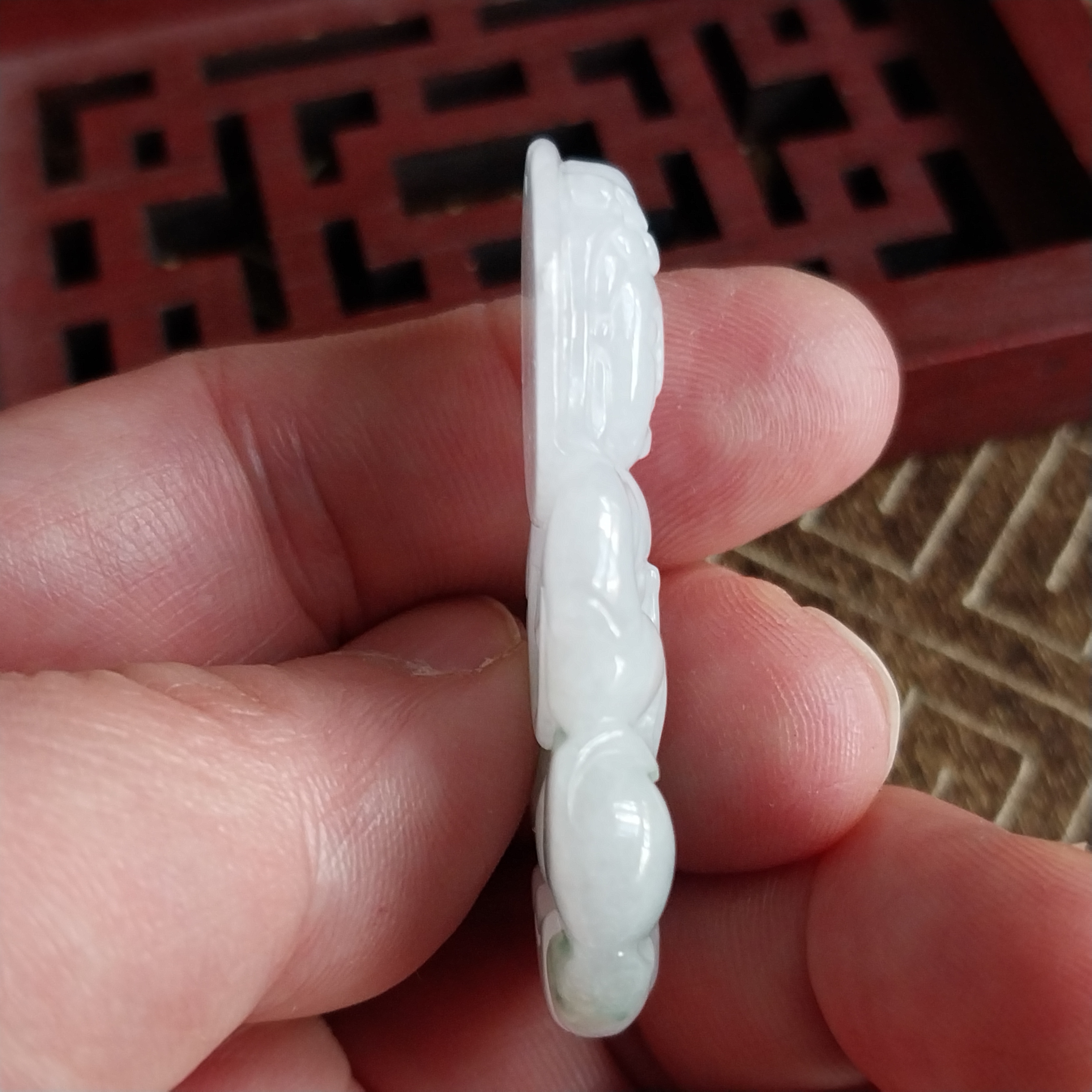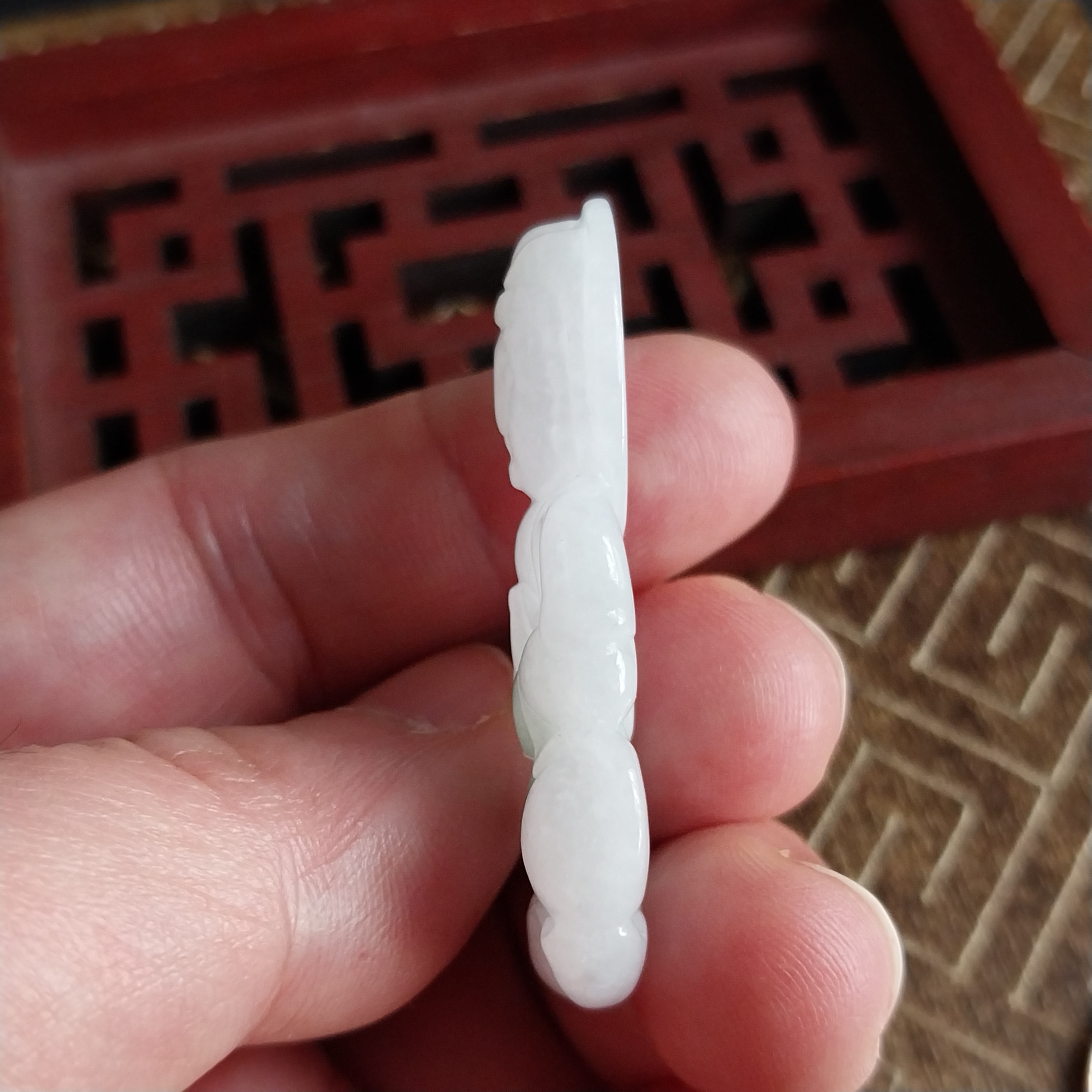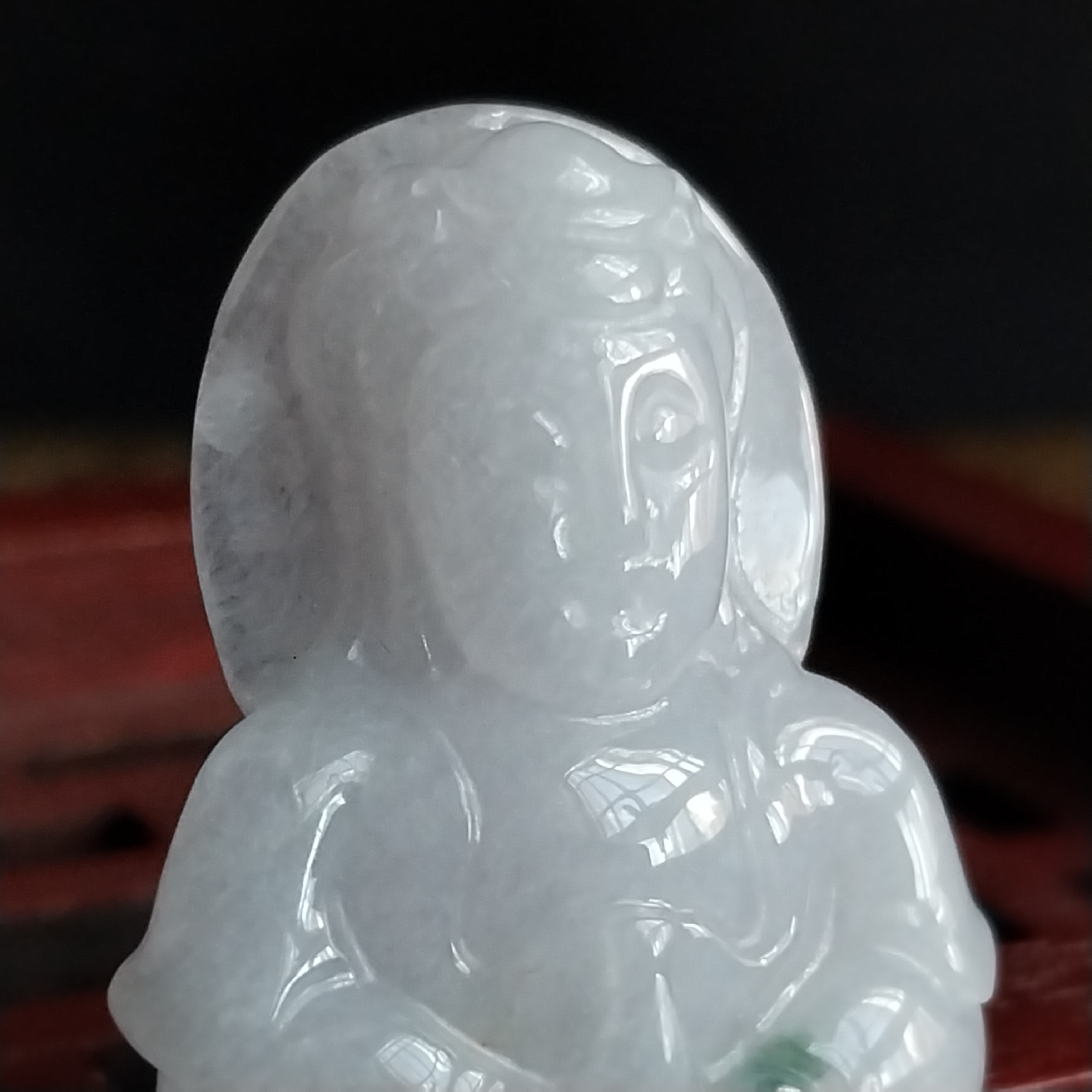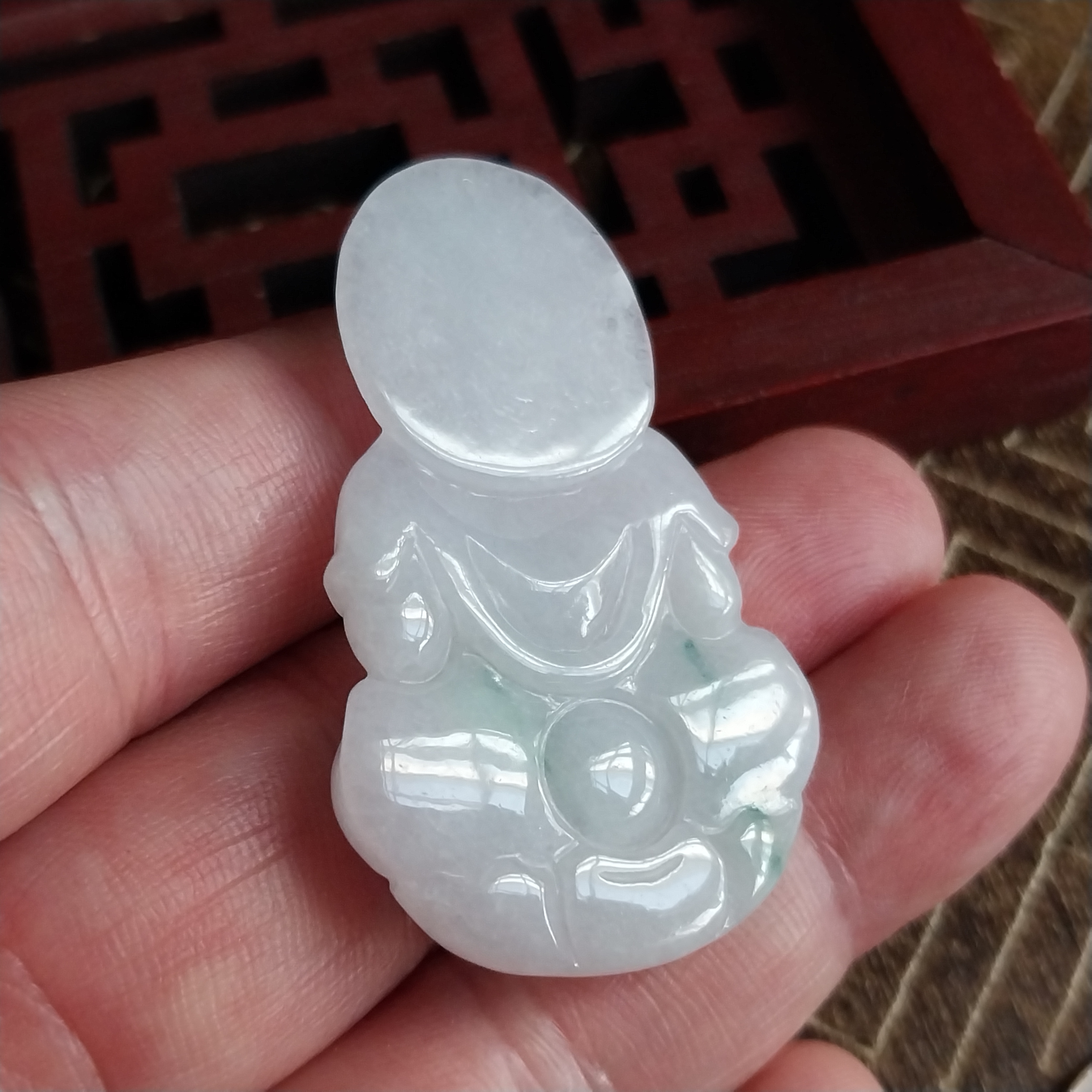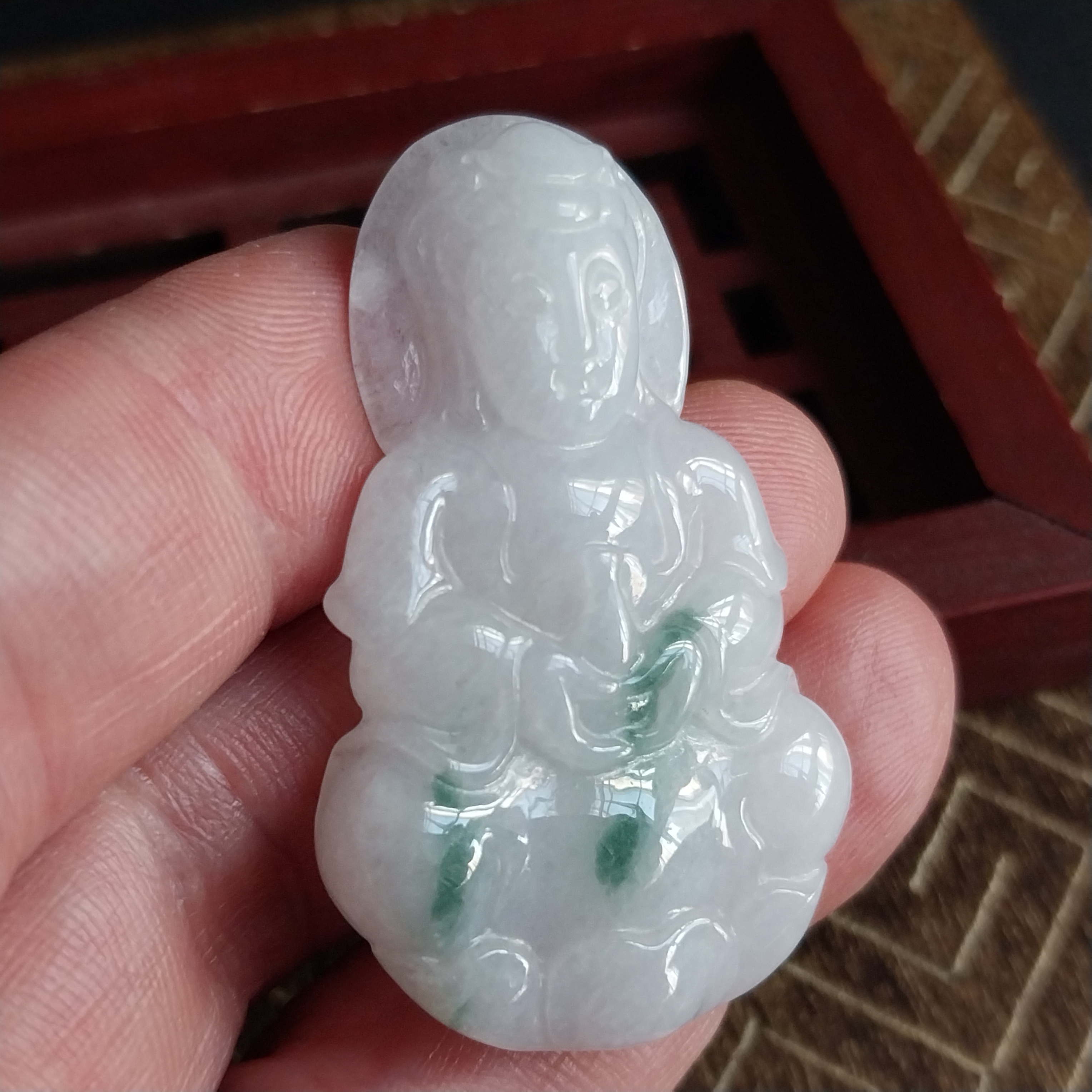 • 冰白飄綠坐蓮觀音吊墜,天然翡翠A玉, 緬甸玉, Jade, Jadeite