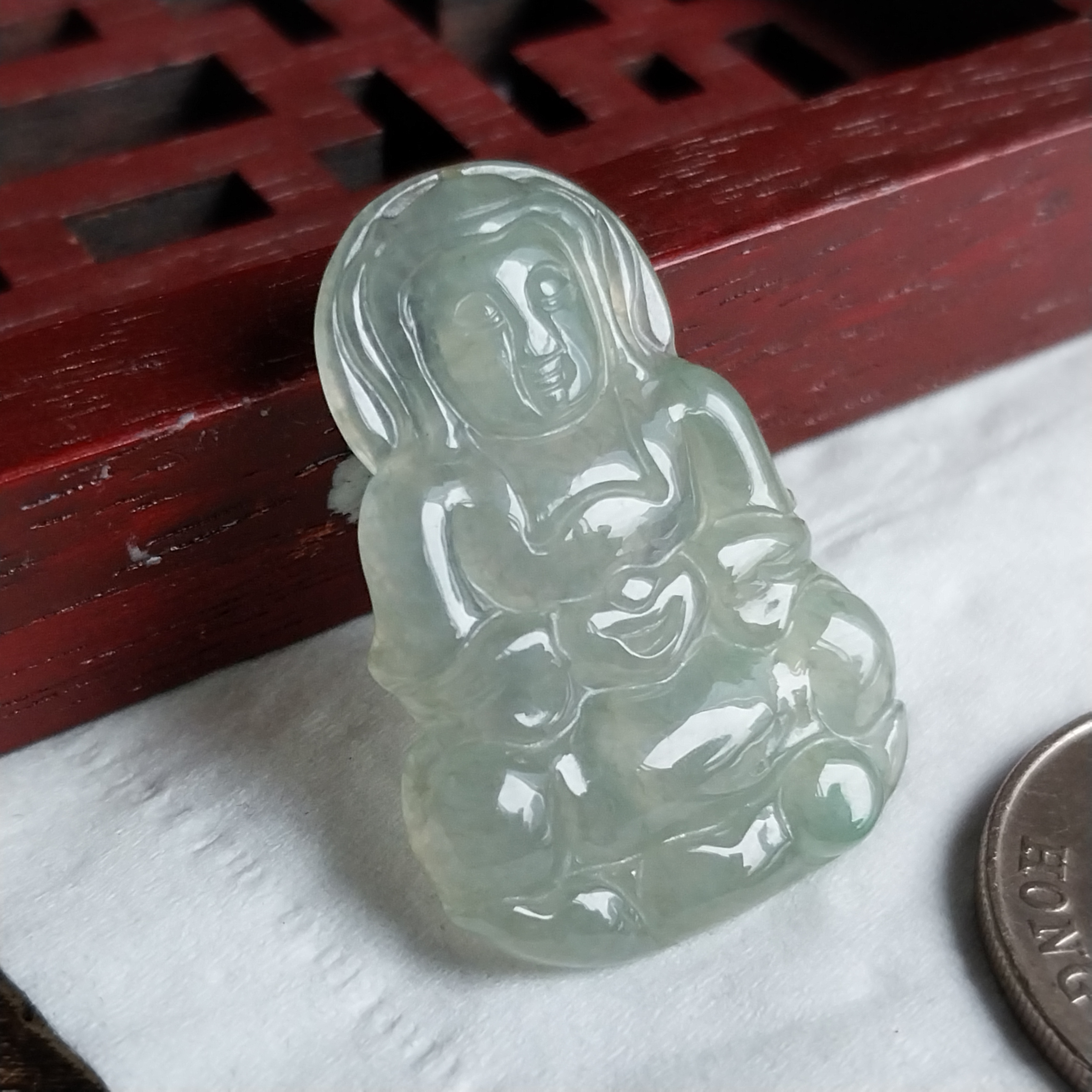 J2247 翡翠冰晴水綠坐蓮觀音吊墜